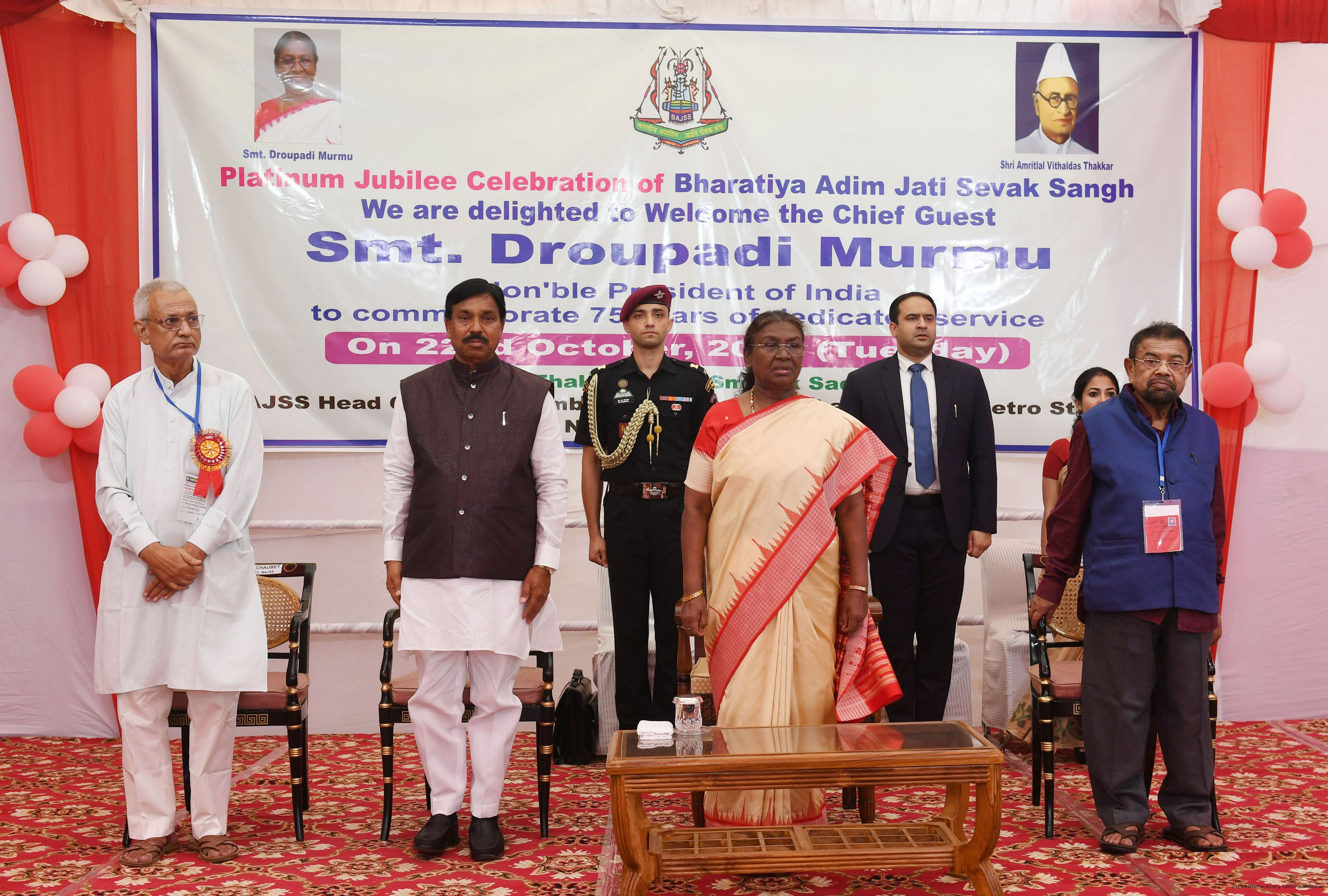 | Category: | The President graced completion of 75 years of Bharatiya Adim Jati Sevak Sangh on 22-10-2024 |