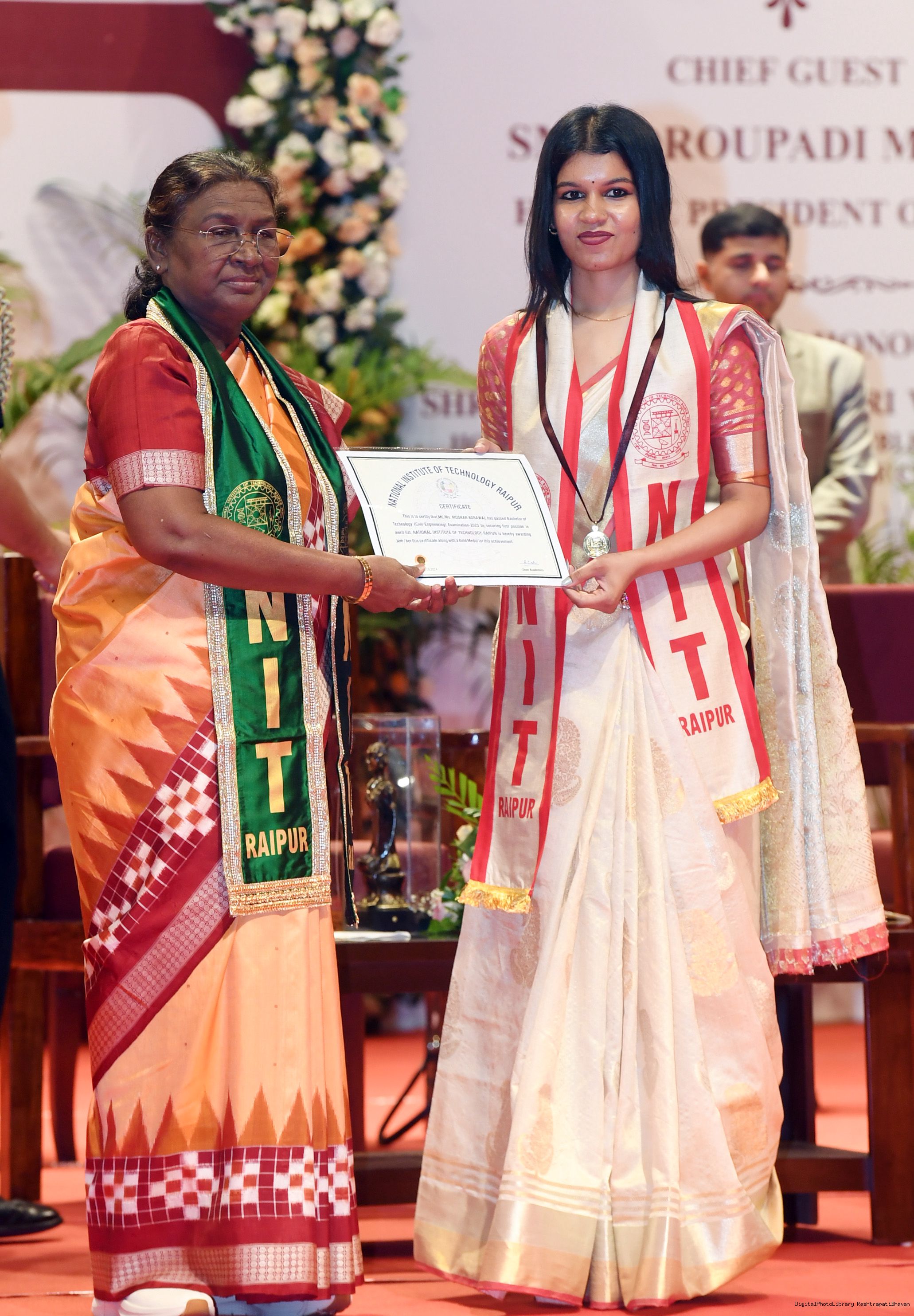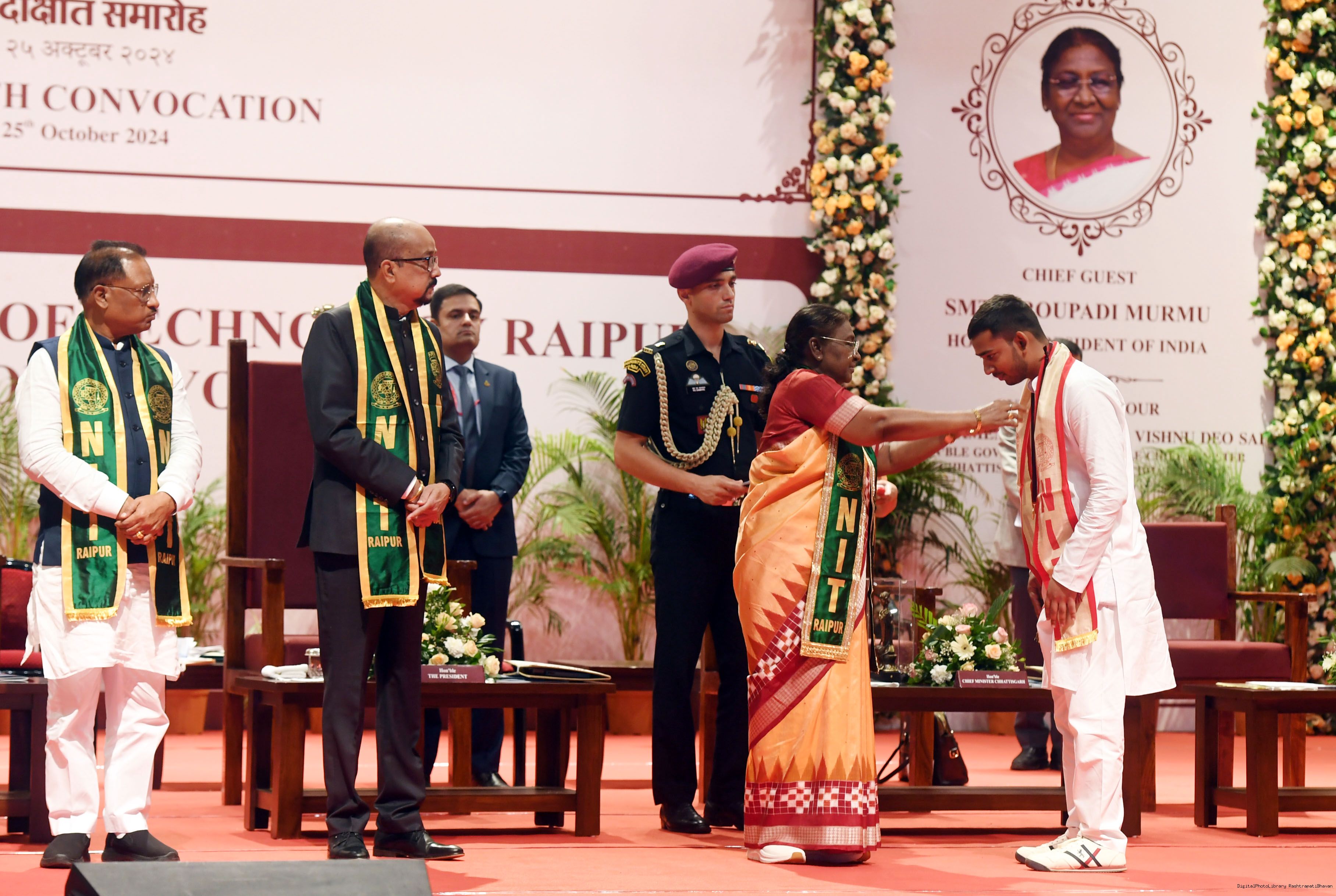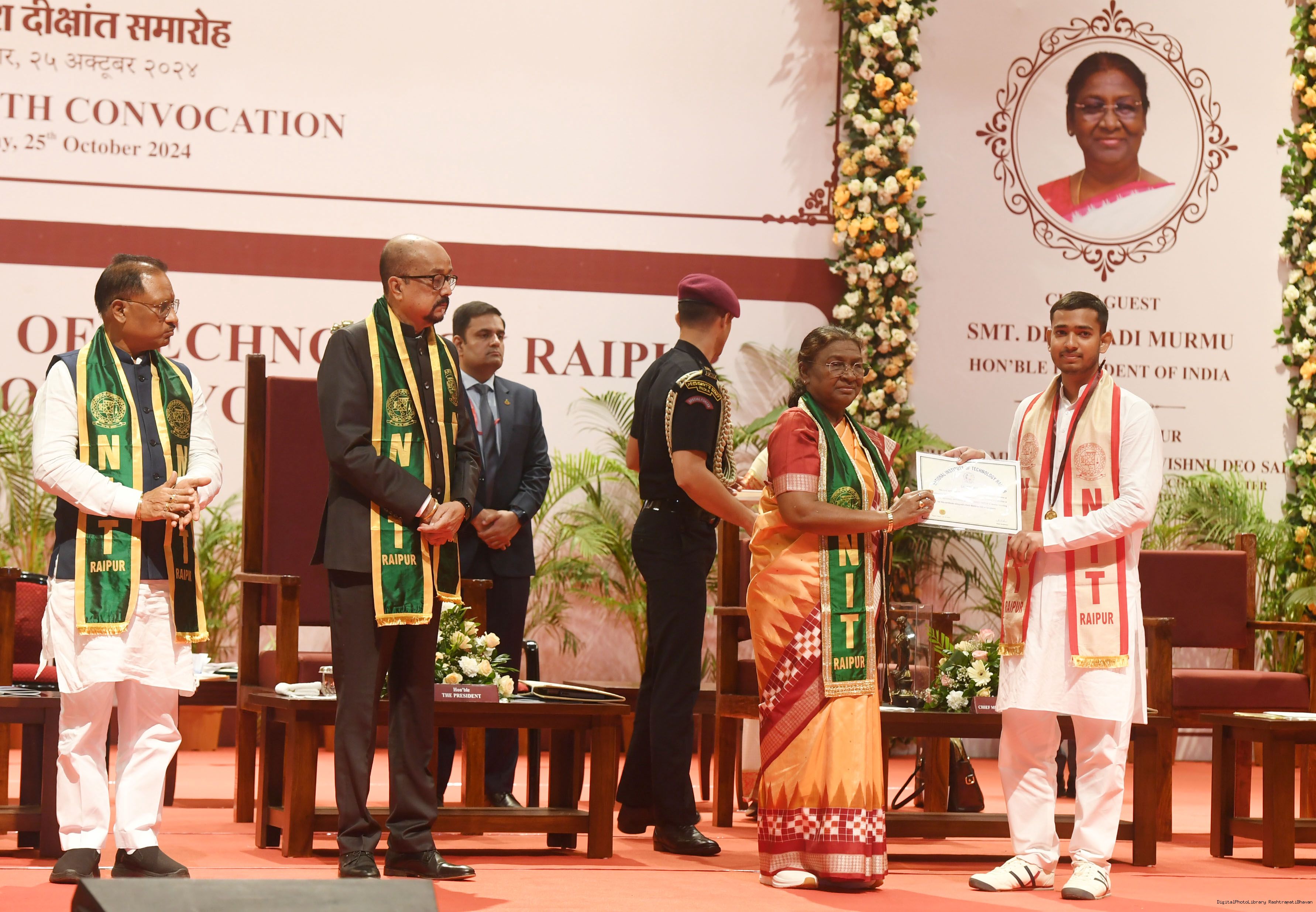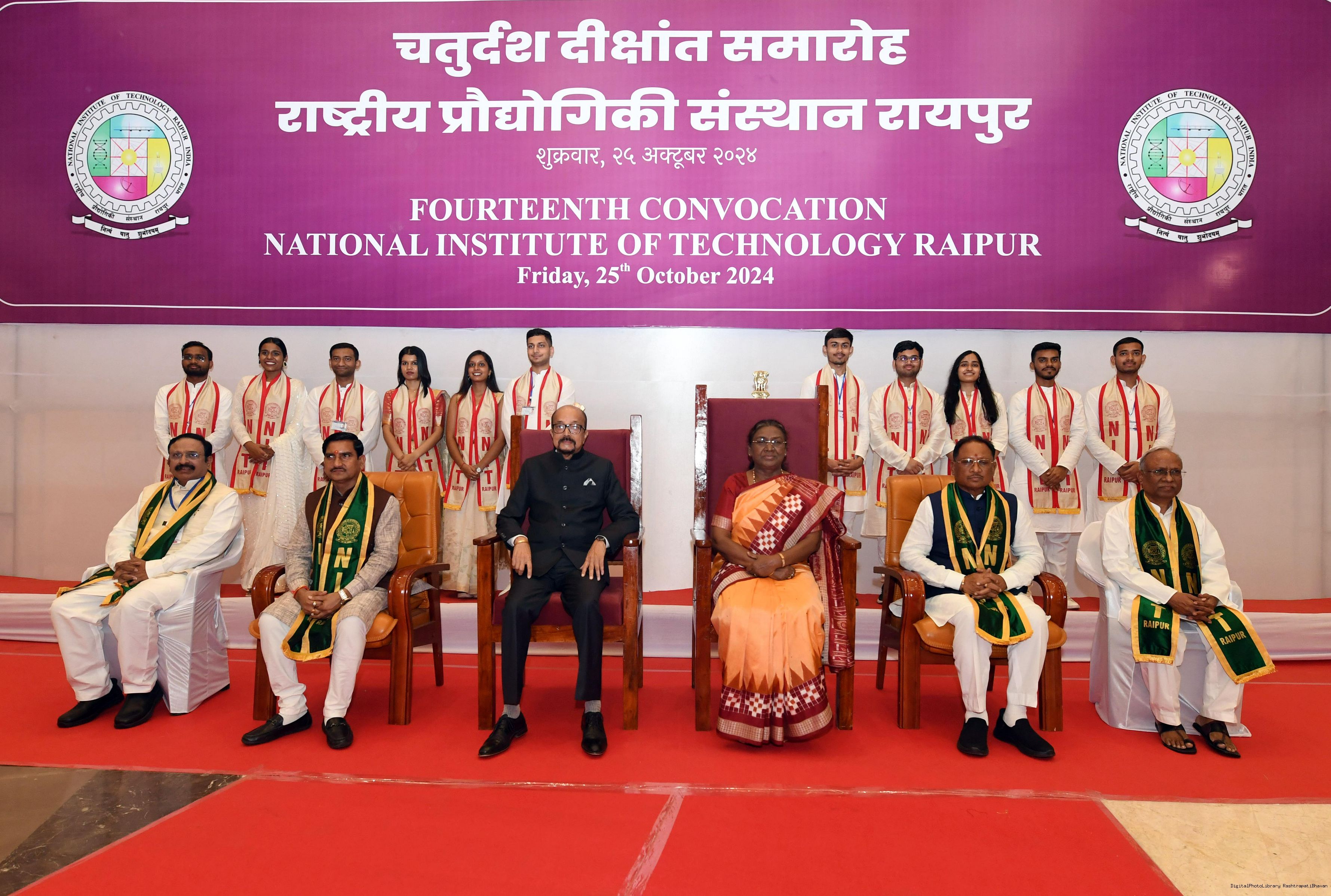 | Caption: | The President of India, Smt. Droupadi Murmu graced and addressed the 14th convocation of the National Institute of Technology (NIT) Raipur on October 25, 2024. |