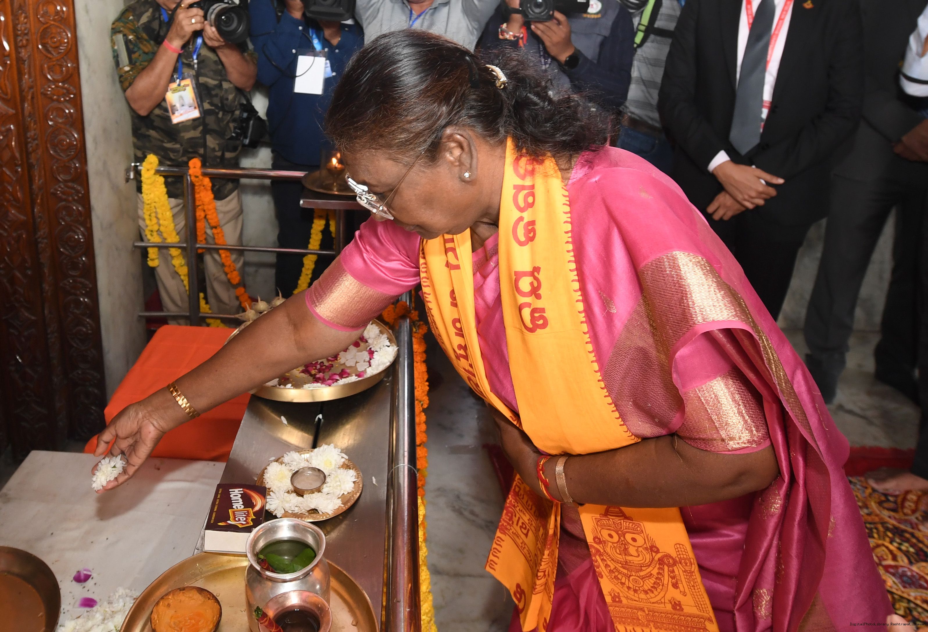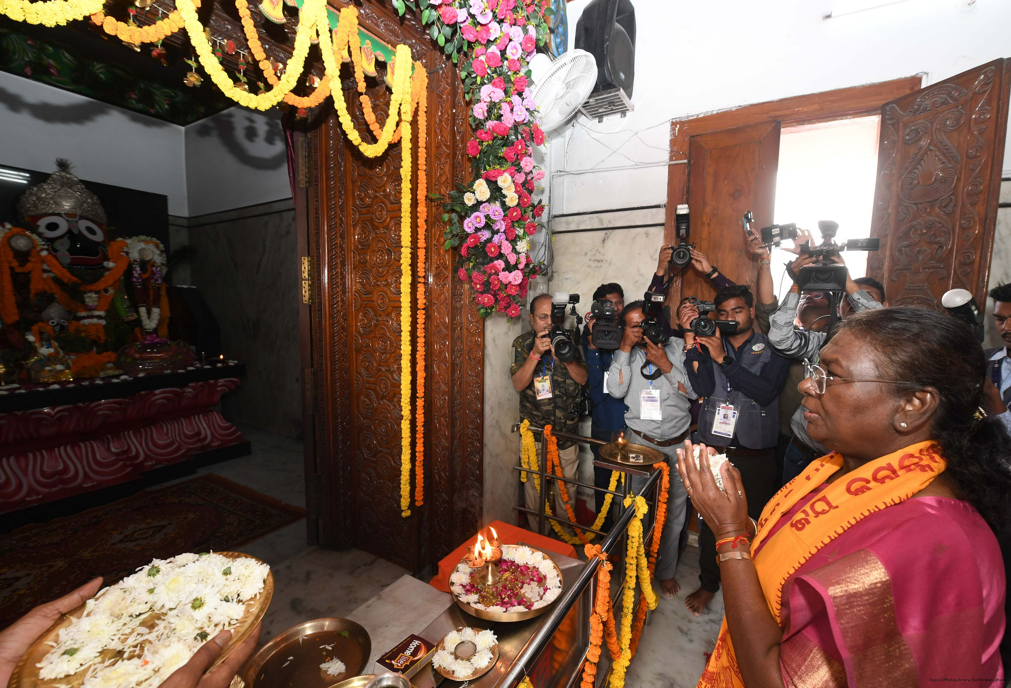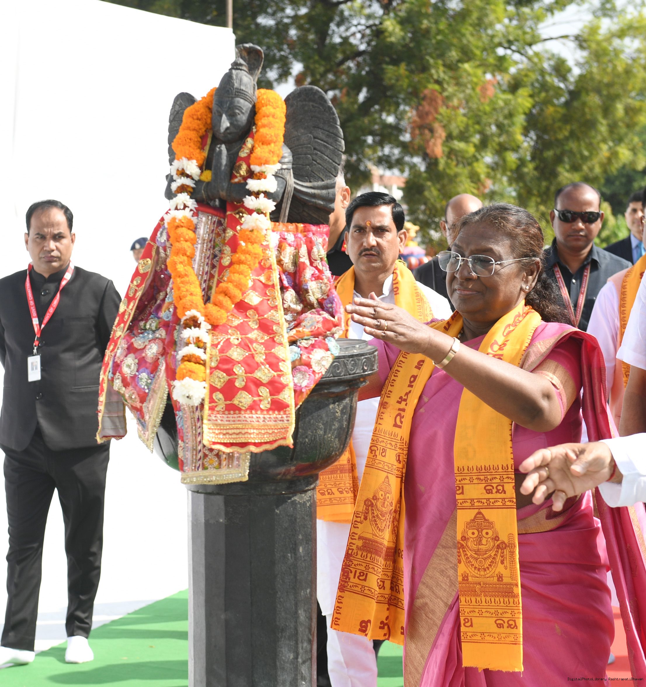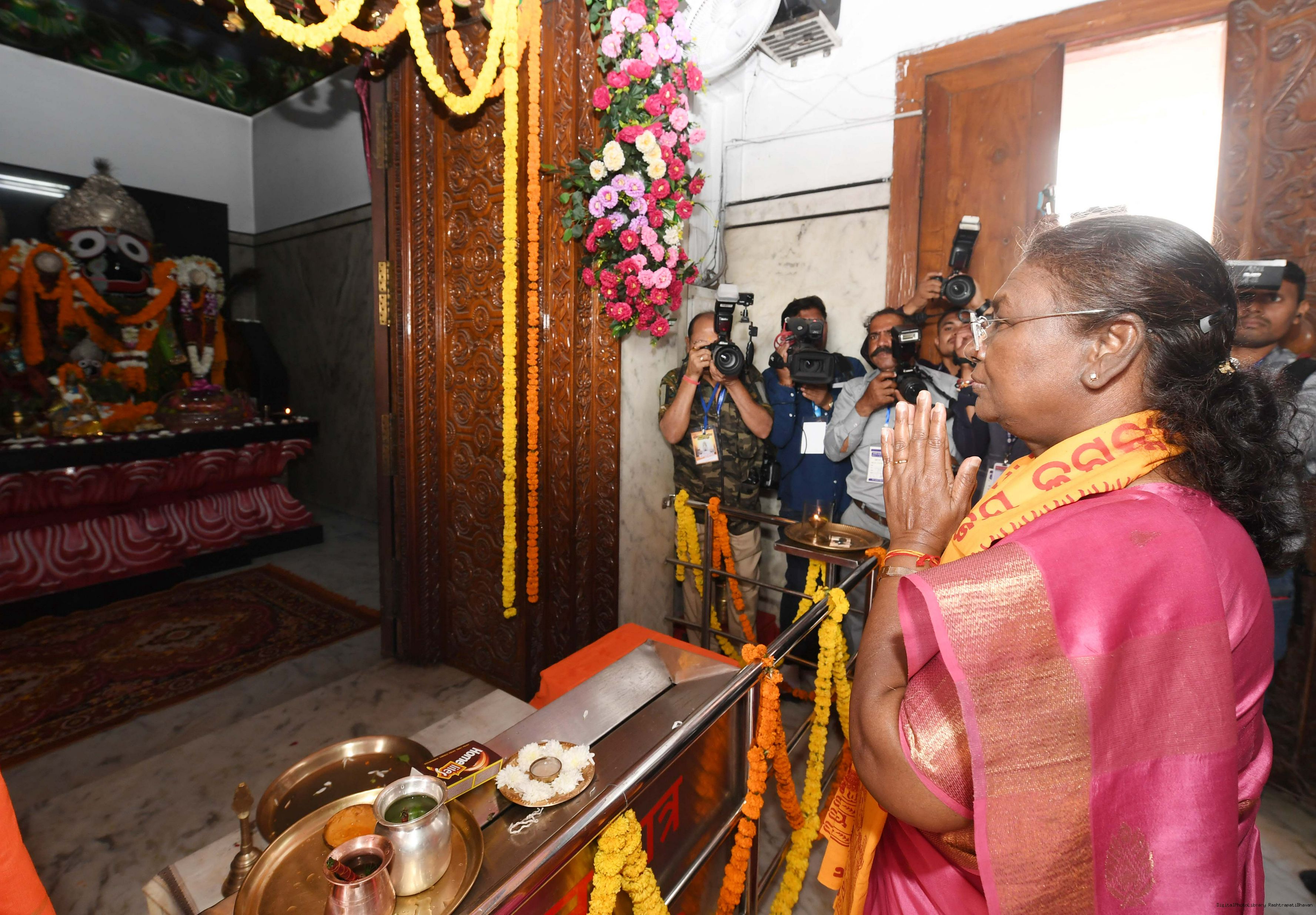 | Caption: | The President of India, Smt Droupadi Murmu Darshan Aarti at Shree Jagannth Temple Gayatri Nagar at Raipur, Chhattisgarh on October 25, 2024. |