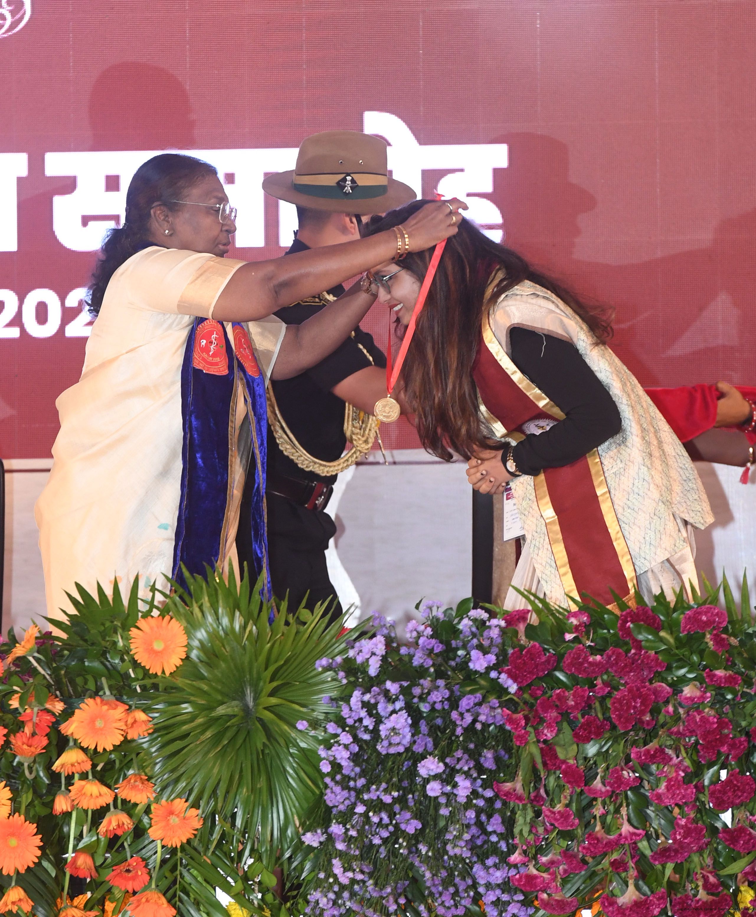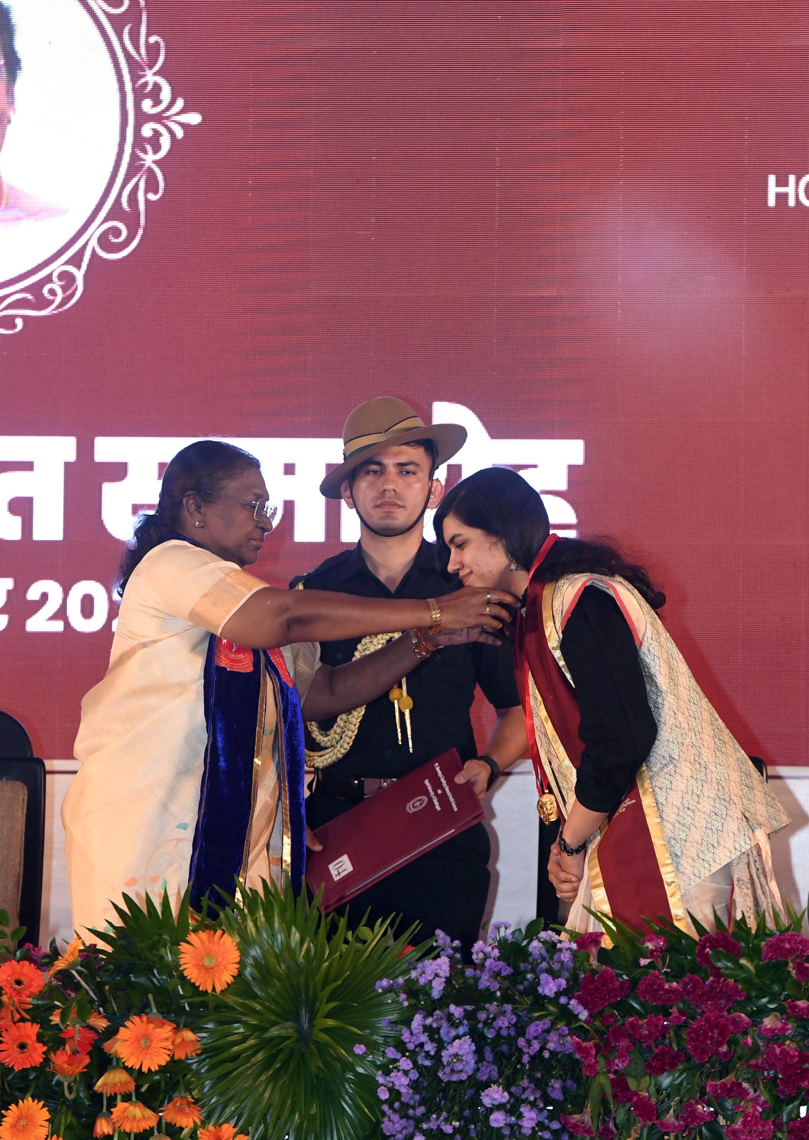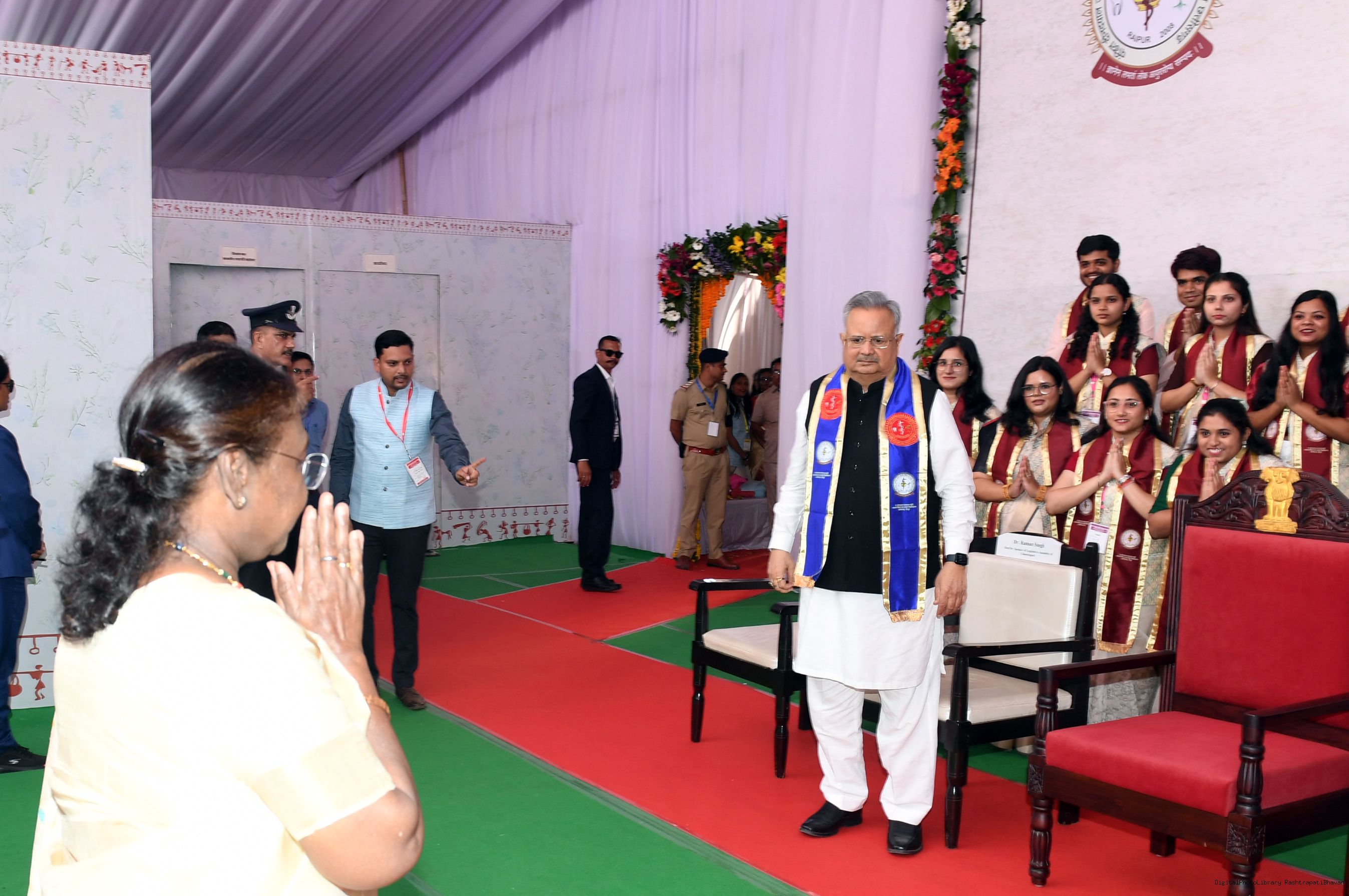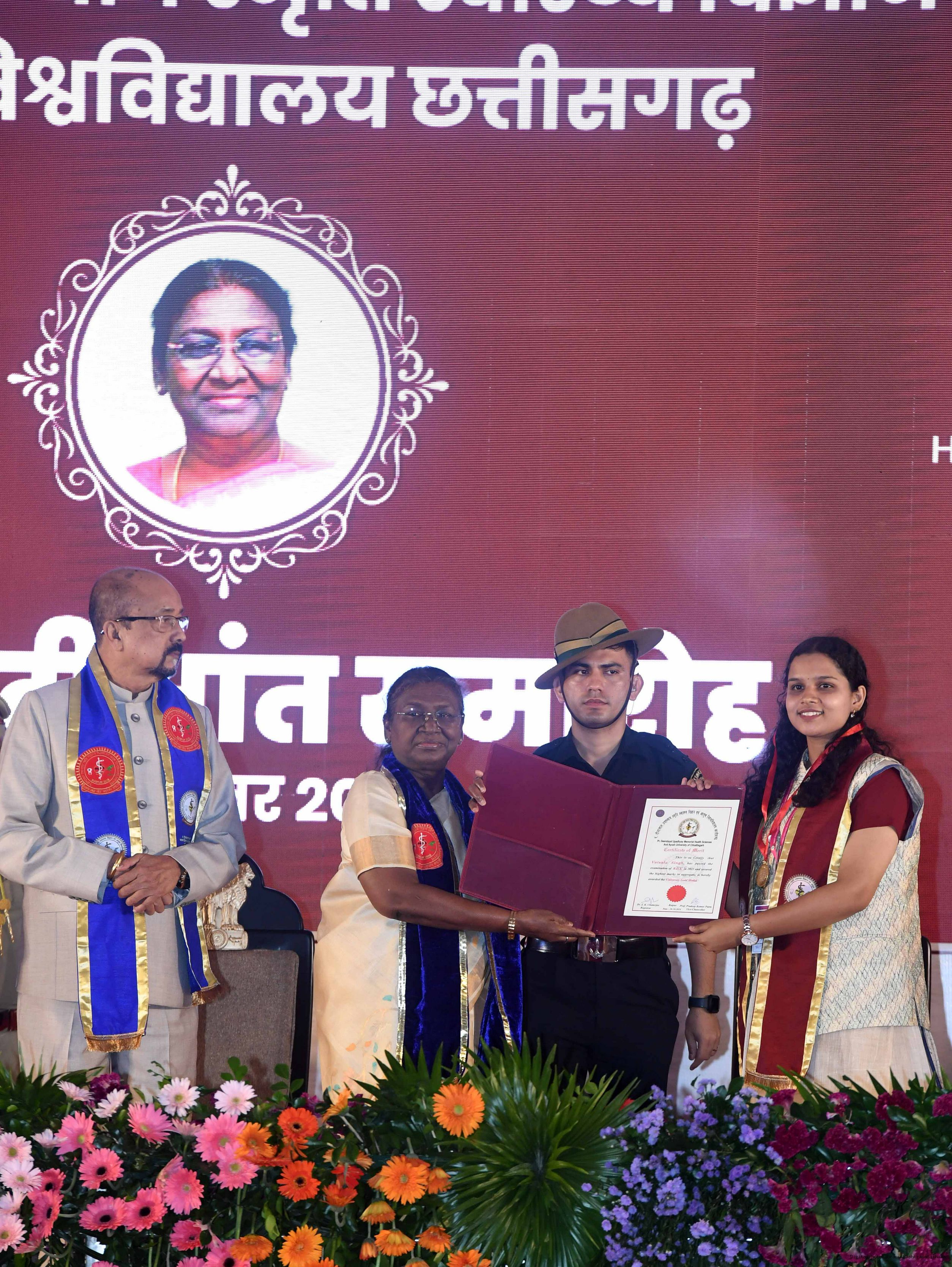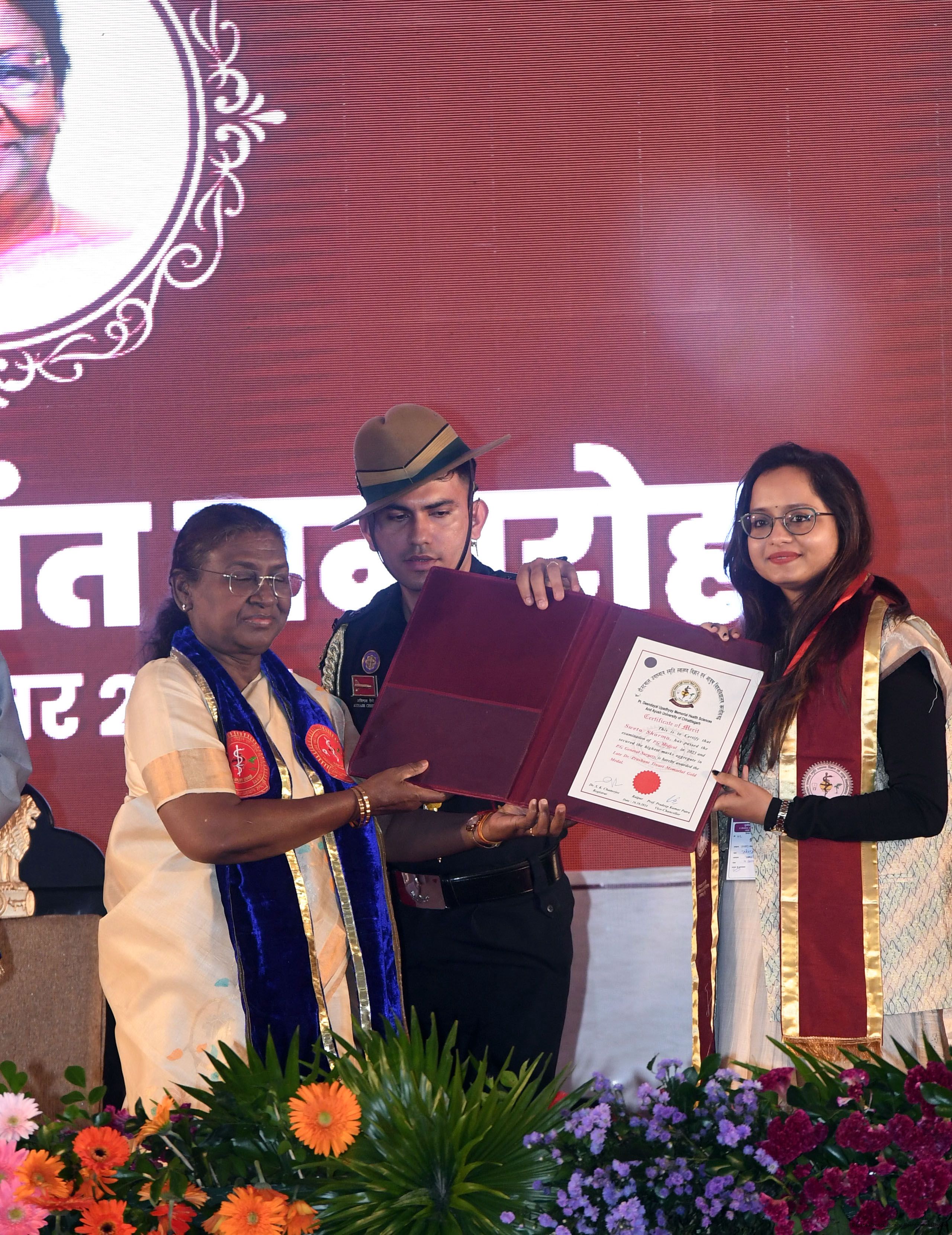 | Caption: | The President of India, Smt. Droupadi Murmu graced the convocation ceremony of Pt. Deendayal Upadhyaya Memorial Health Science and Ayush University of Chhattisgarh at Raipur on October 26, 2024. |