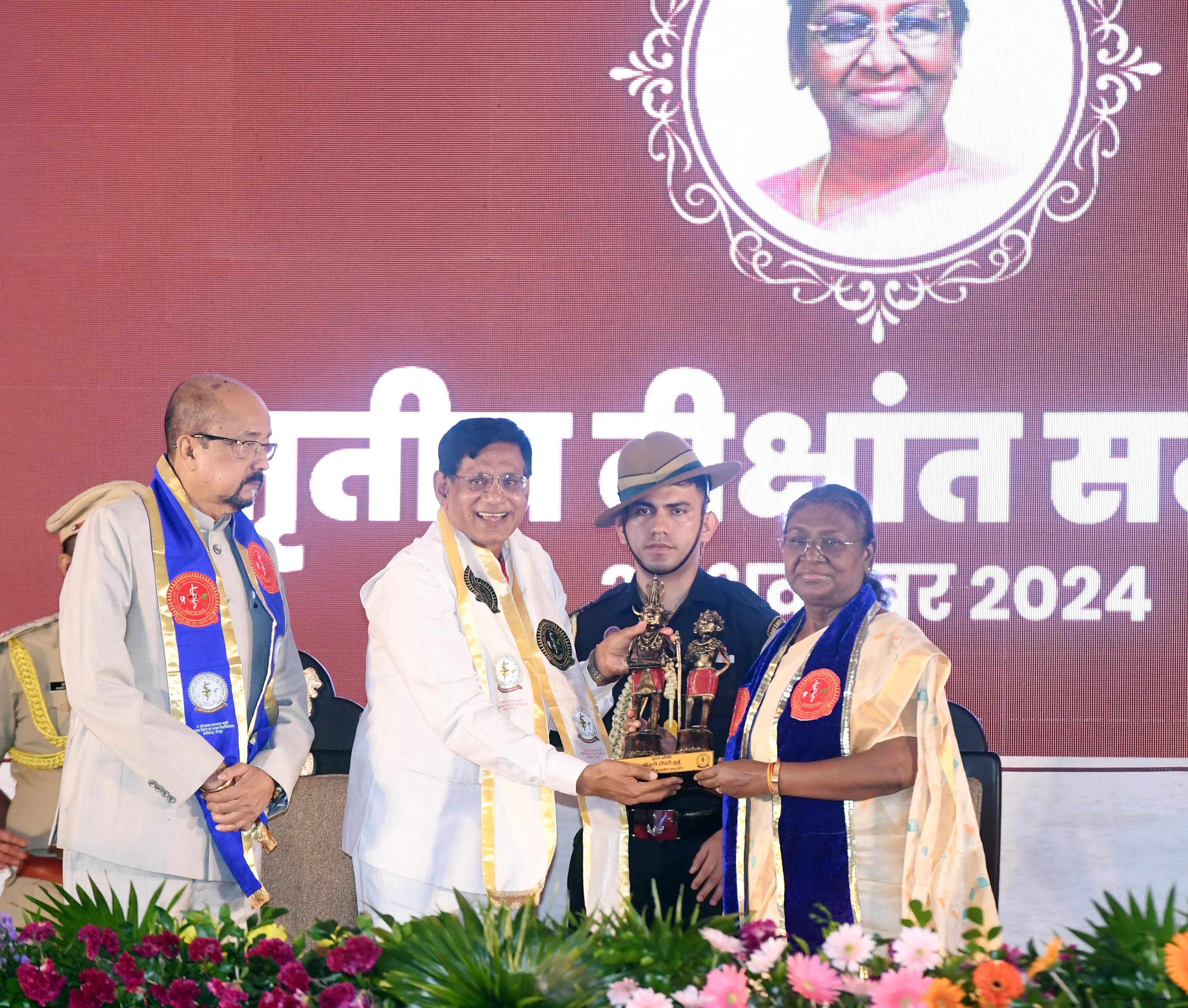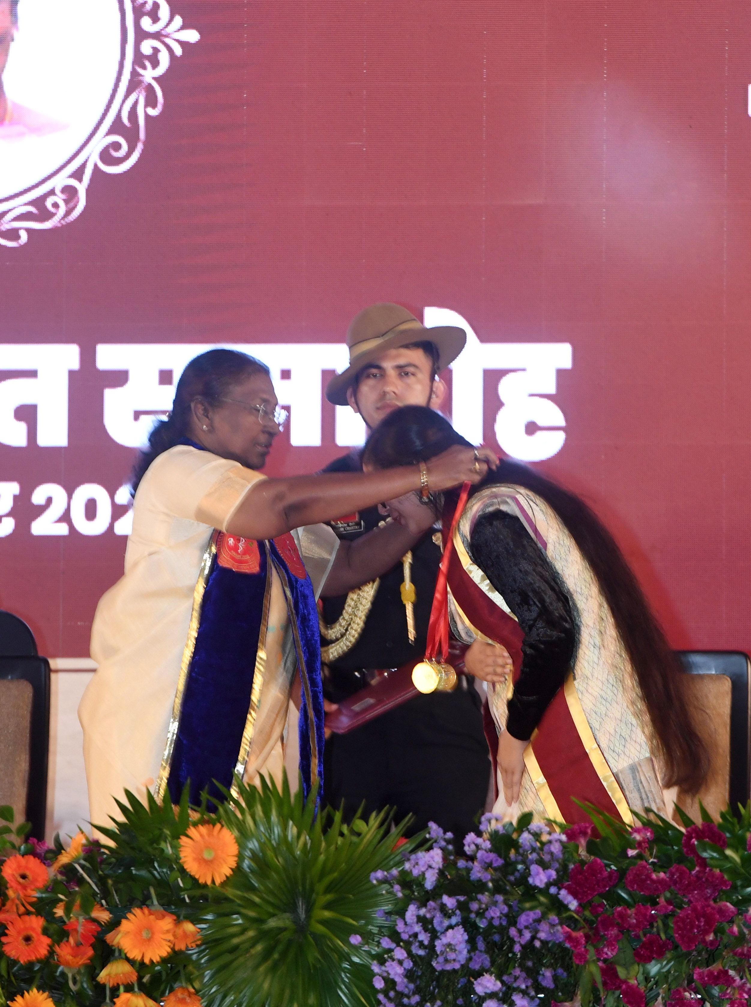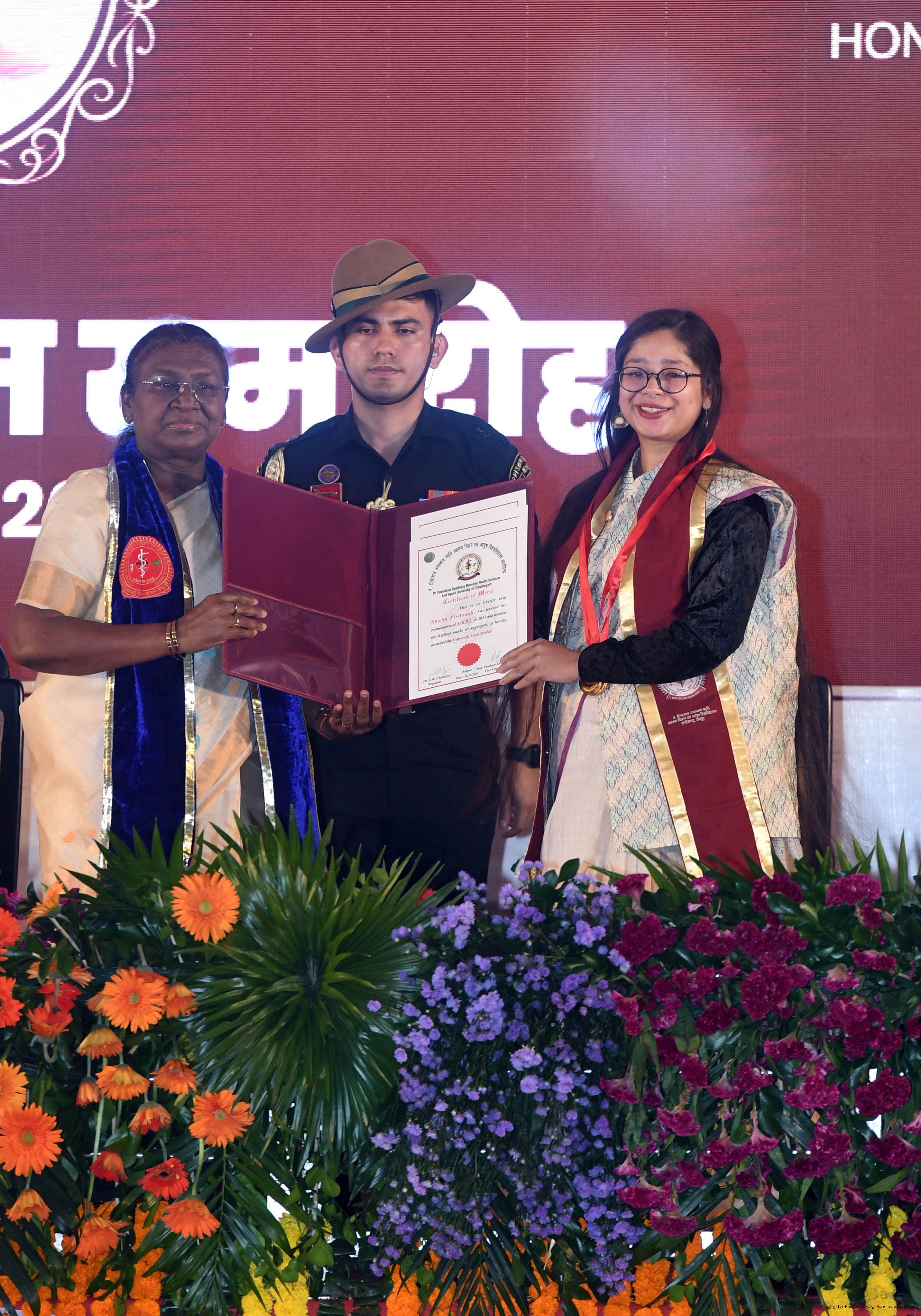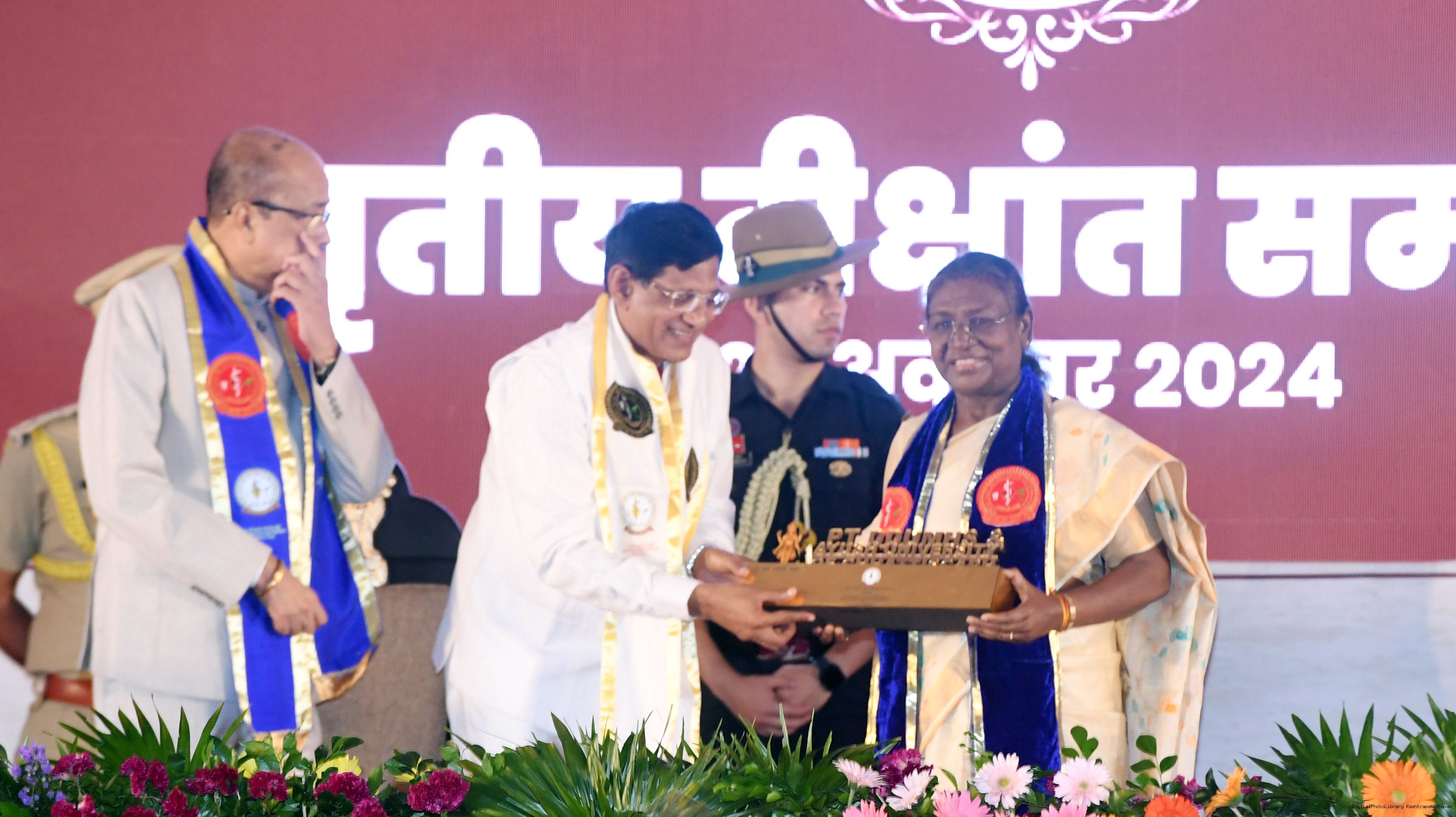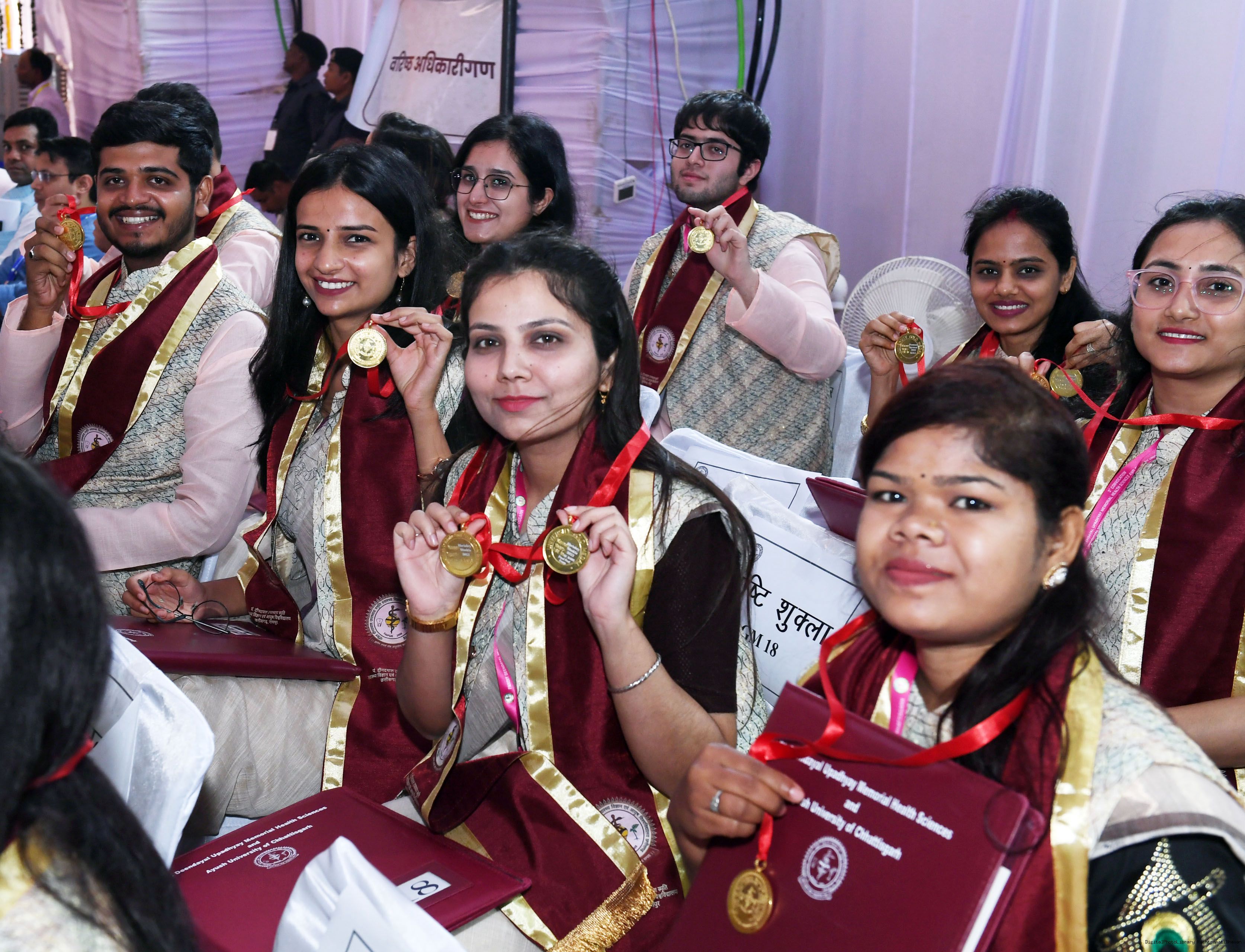 | Caption: | The President of India, Smt. Droupadi Murmu graced the convocation ceremony of Pt. Deendayal Upadhyaya Memorial Health Science and Ayush University of Chhattisgarh at Raipur on October 26, 2024. |
