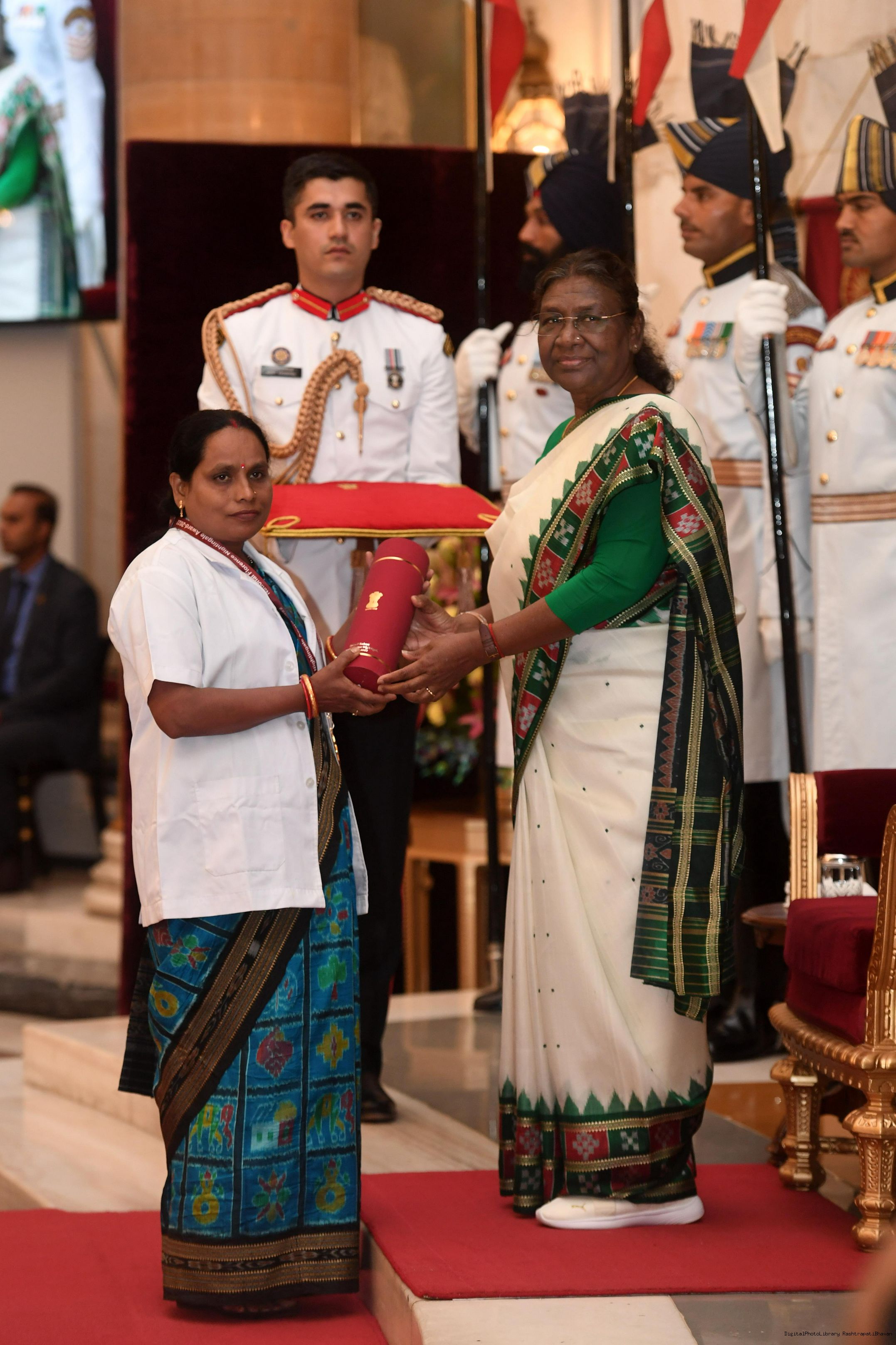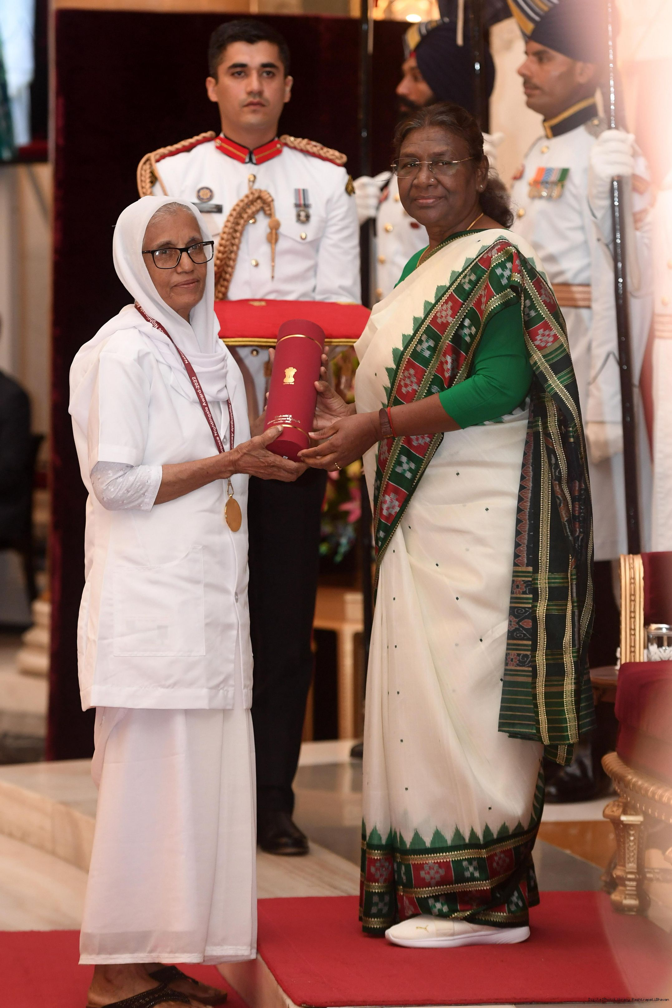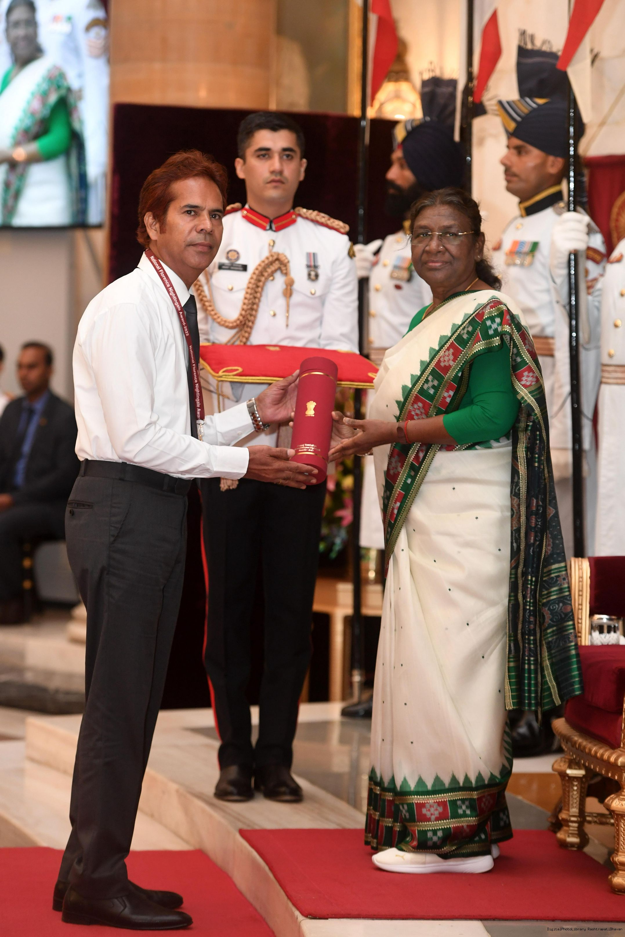 | Caption: | The President of India, Smt Droupadi Murmu presented the National Florence Nightingale Awards for the years 2022 and 2023 to the Nursing professionals at a function held at Rashtrapati Bhavan on June 22, 2023. |