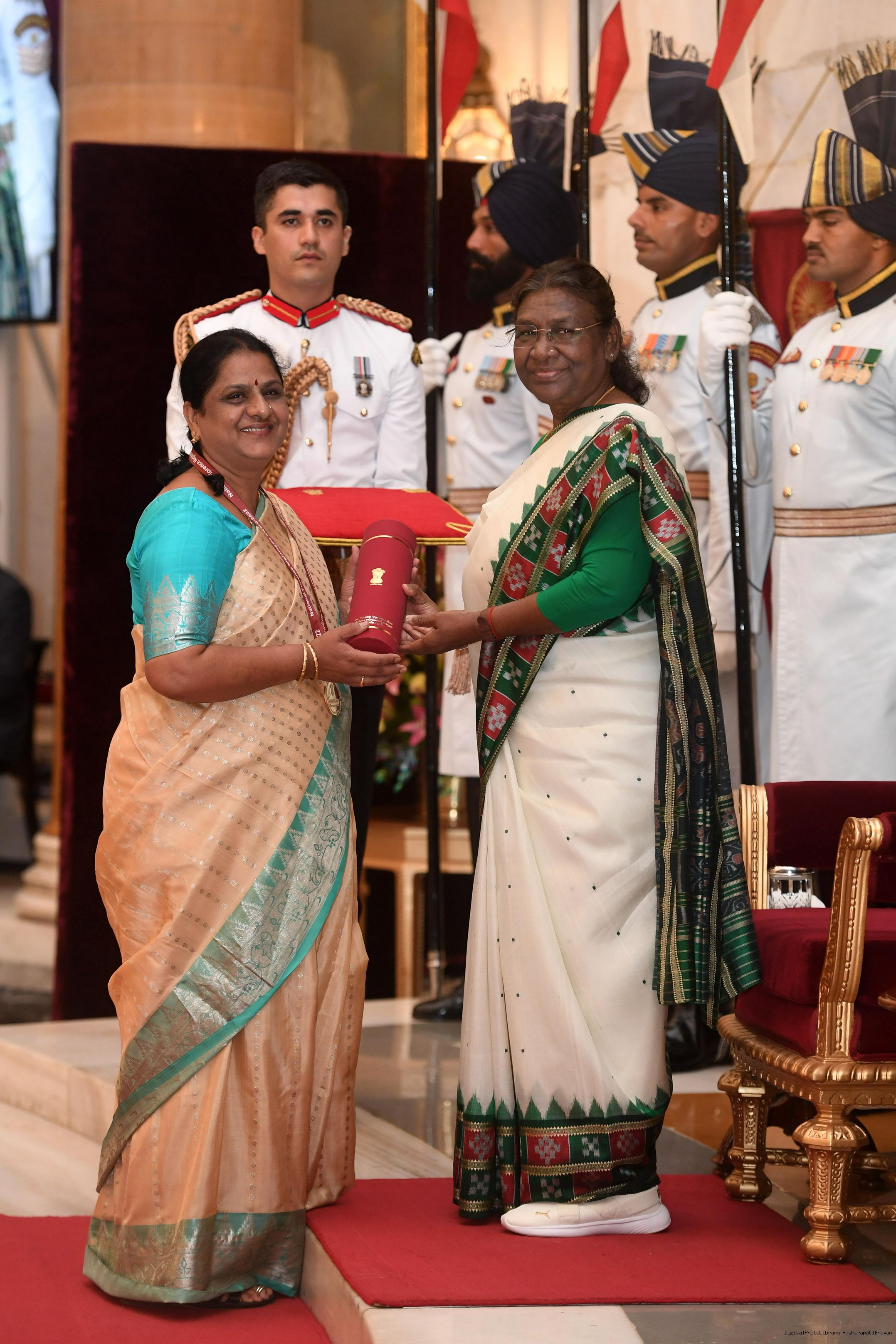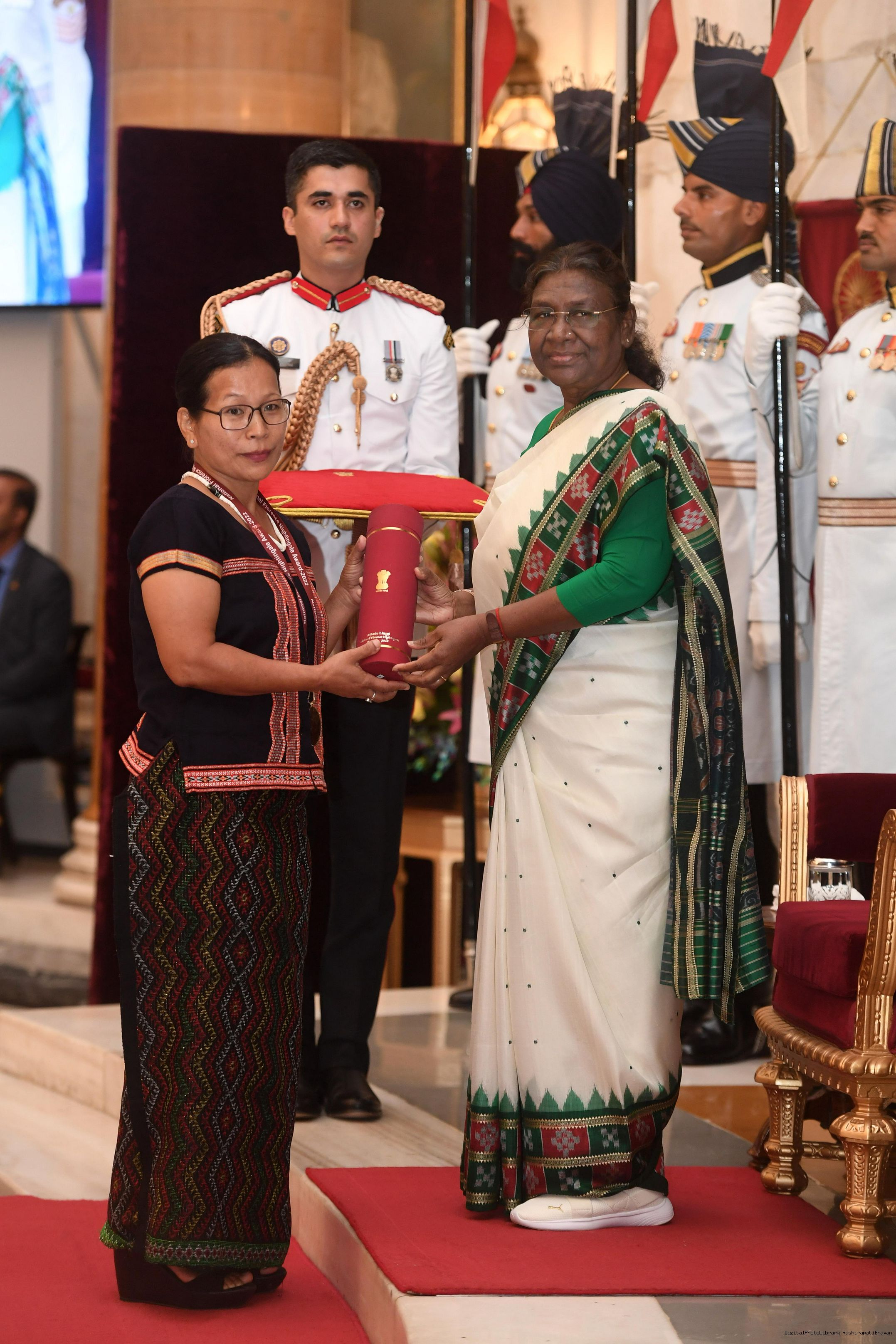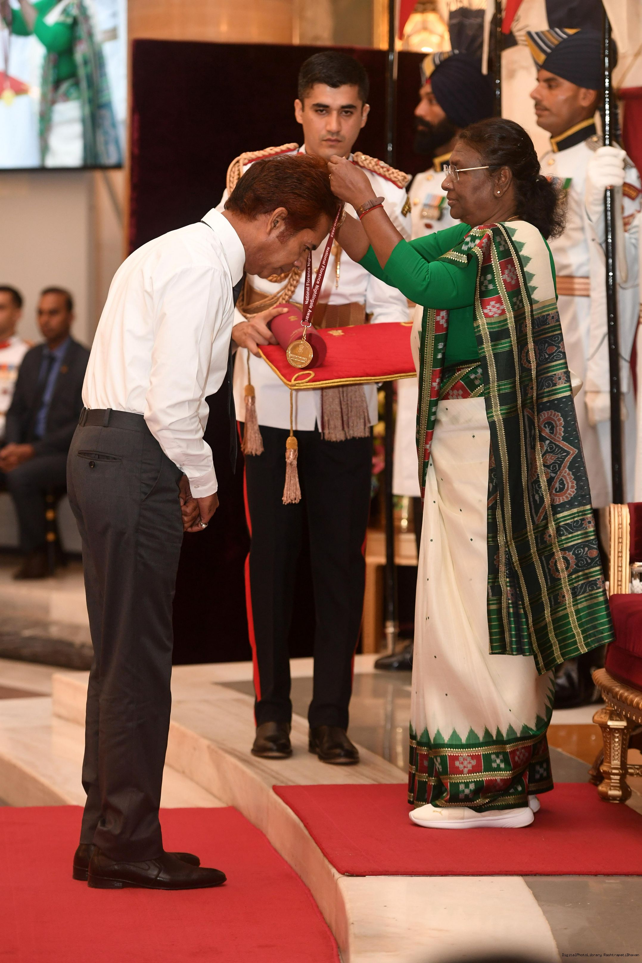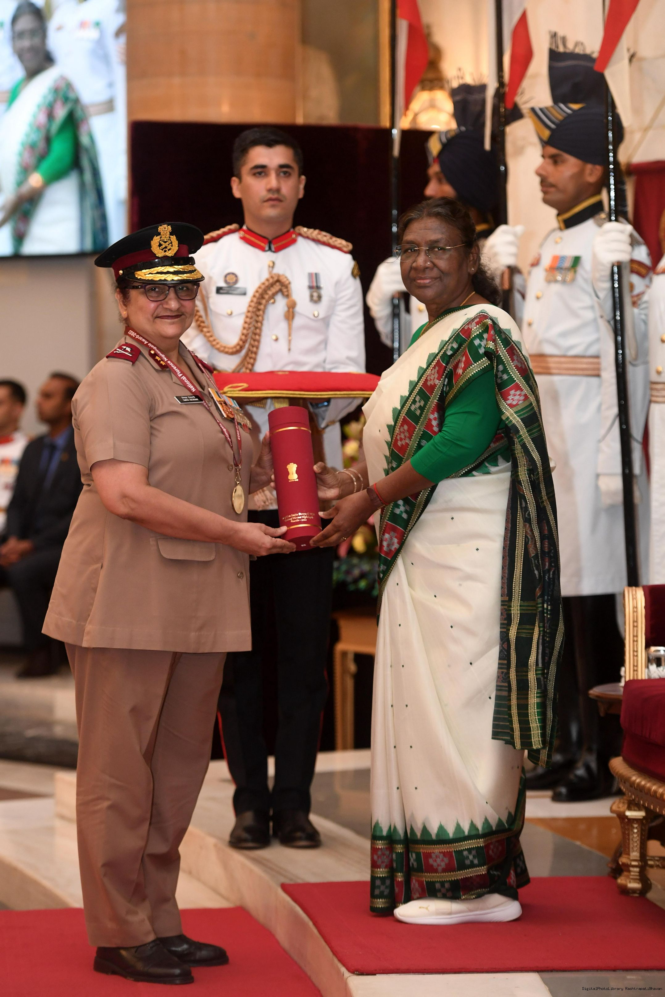 | Caption: | The President of India, Smt Droupadi Murmu presented the National Florence Nightingale Awards for the years 2022 and 2023 to the Nursing professionals at a function held at Rashtrapati Bhavan on June 22, 2023. |