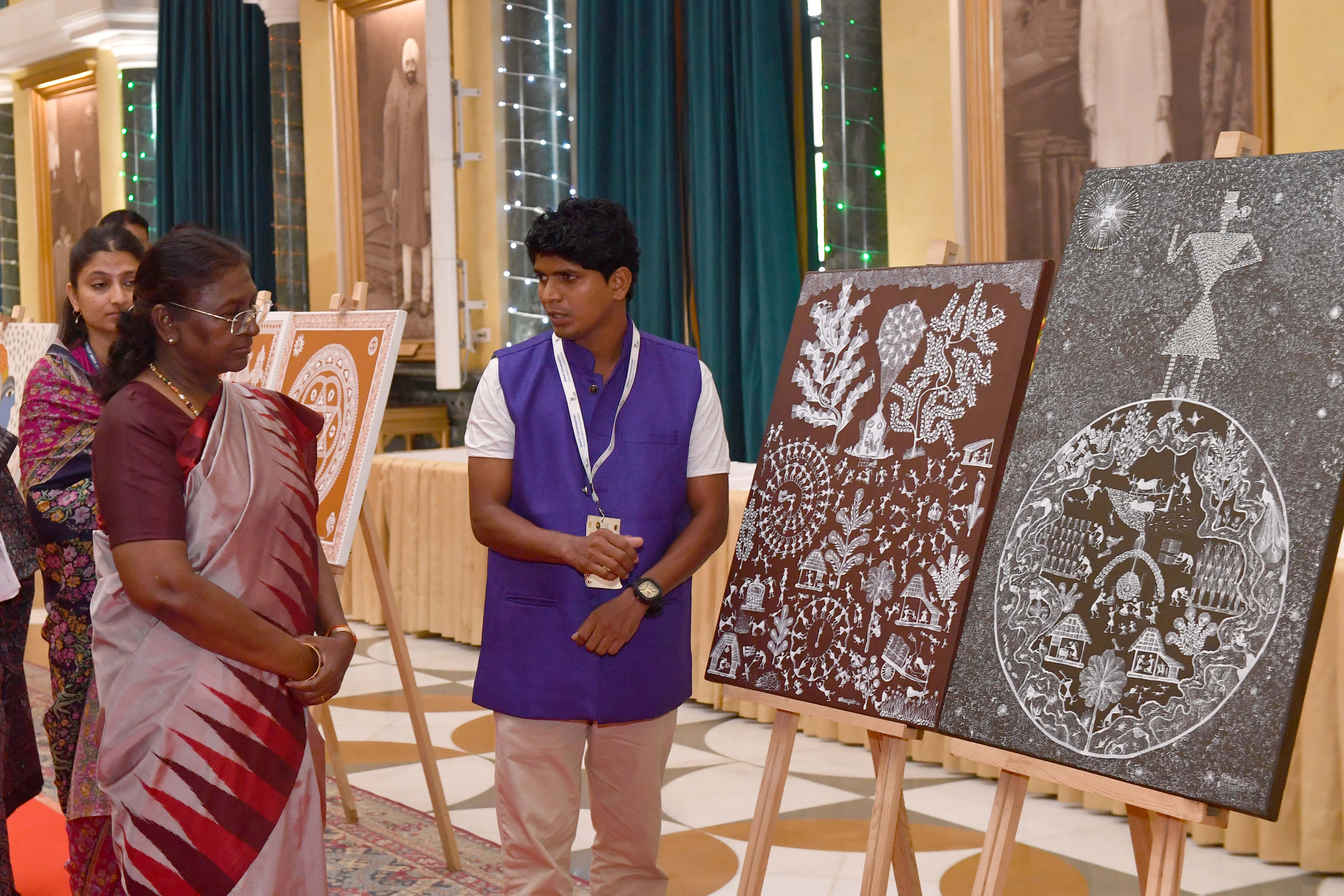 | Caption: | A group of artists called on the President of India, Smt. Droupadi Murmu at Rashtrapati Bhavan on October 29, 2024. |