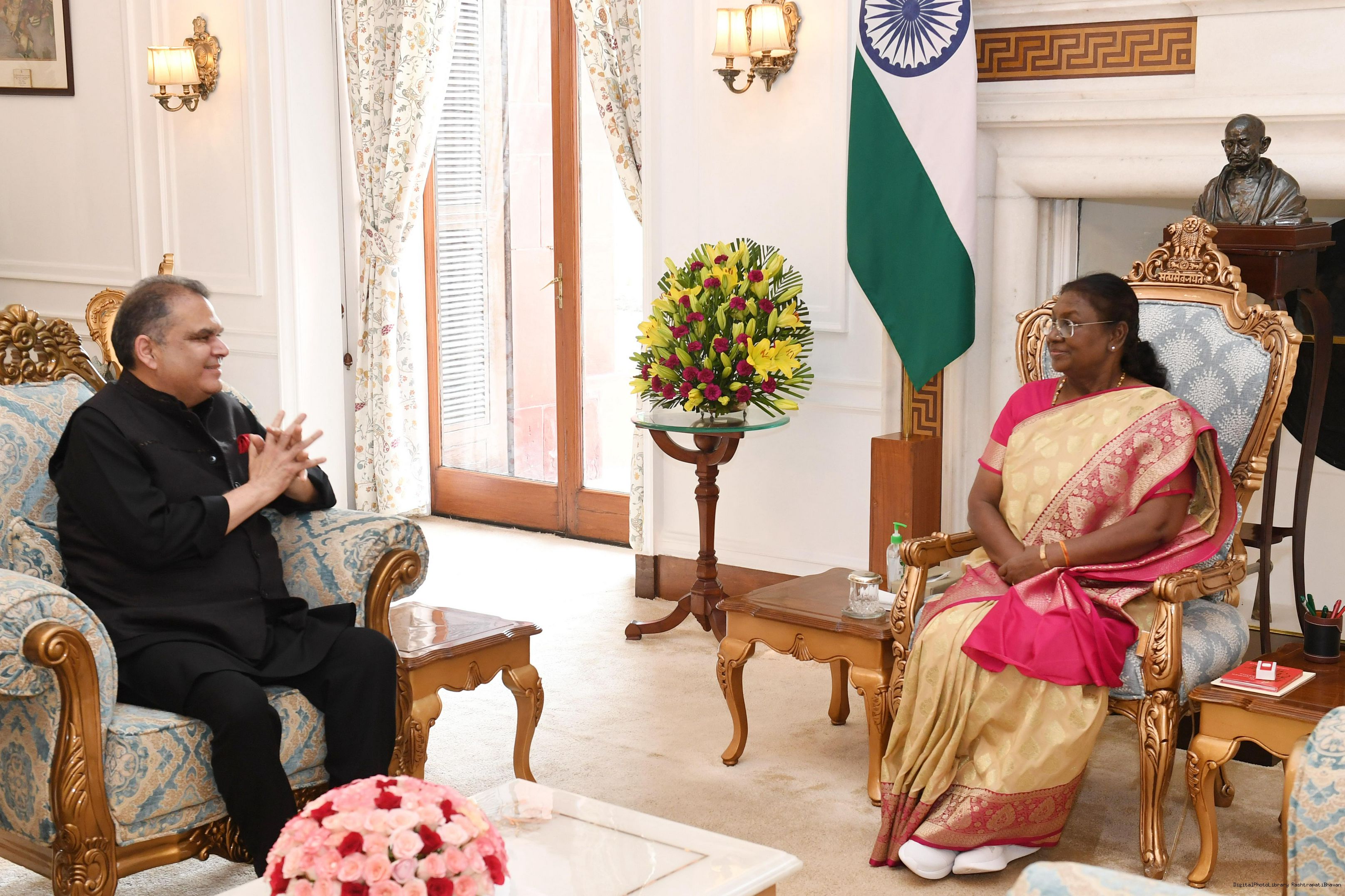 | Caption: | Shri Sanjeev Arora, MP (Rajya Sabha) meeting with the President of India, Smt Droupadi Murmu at Rashtrapati Bhavan on October 30, 2024. |