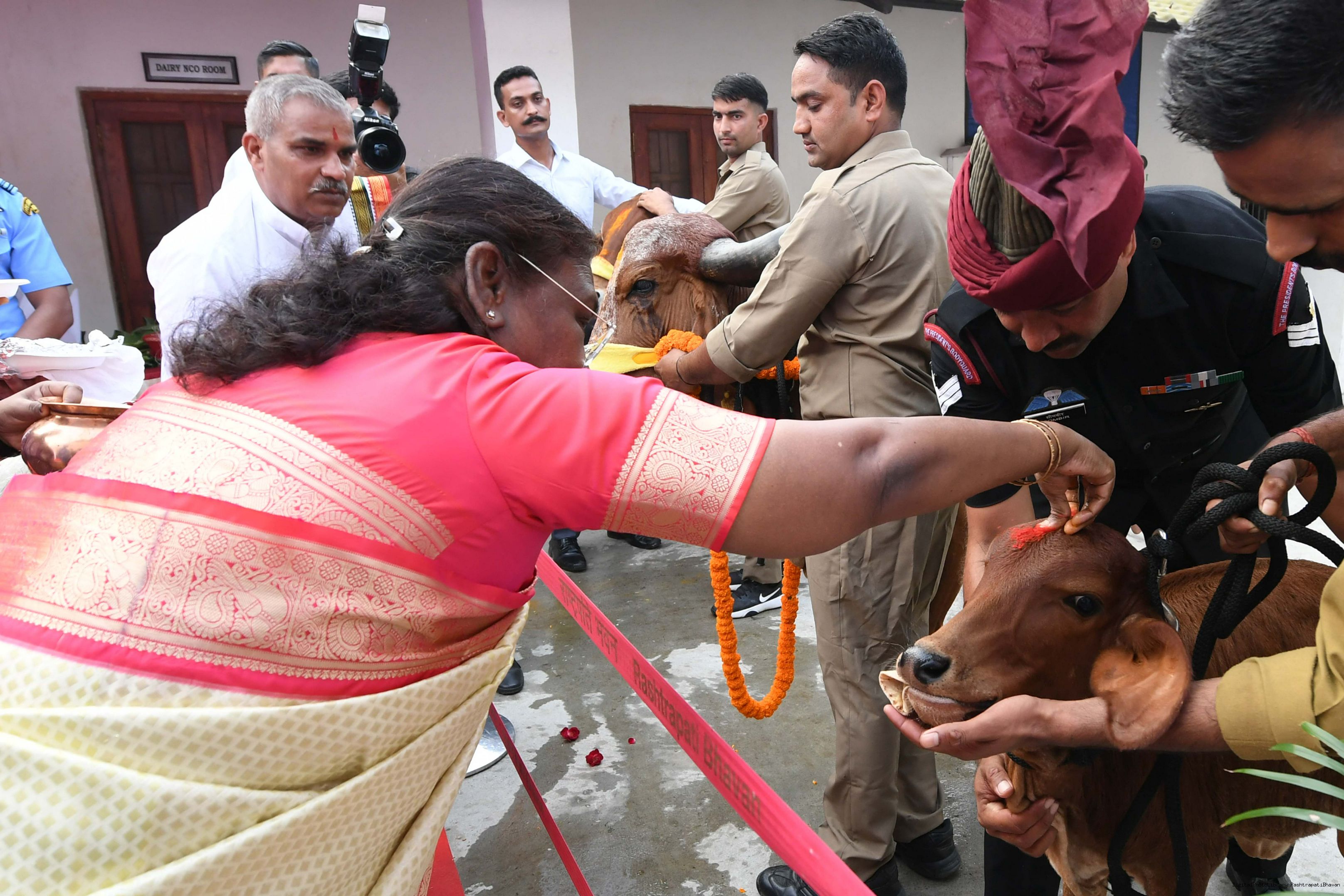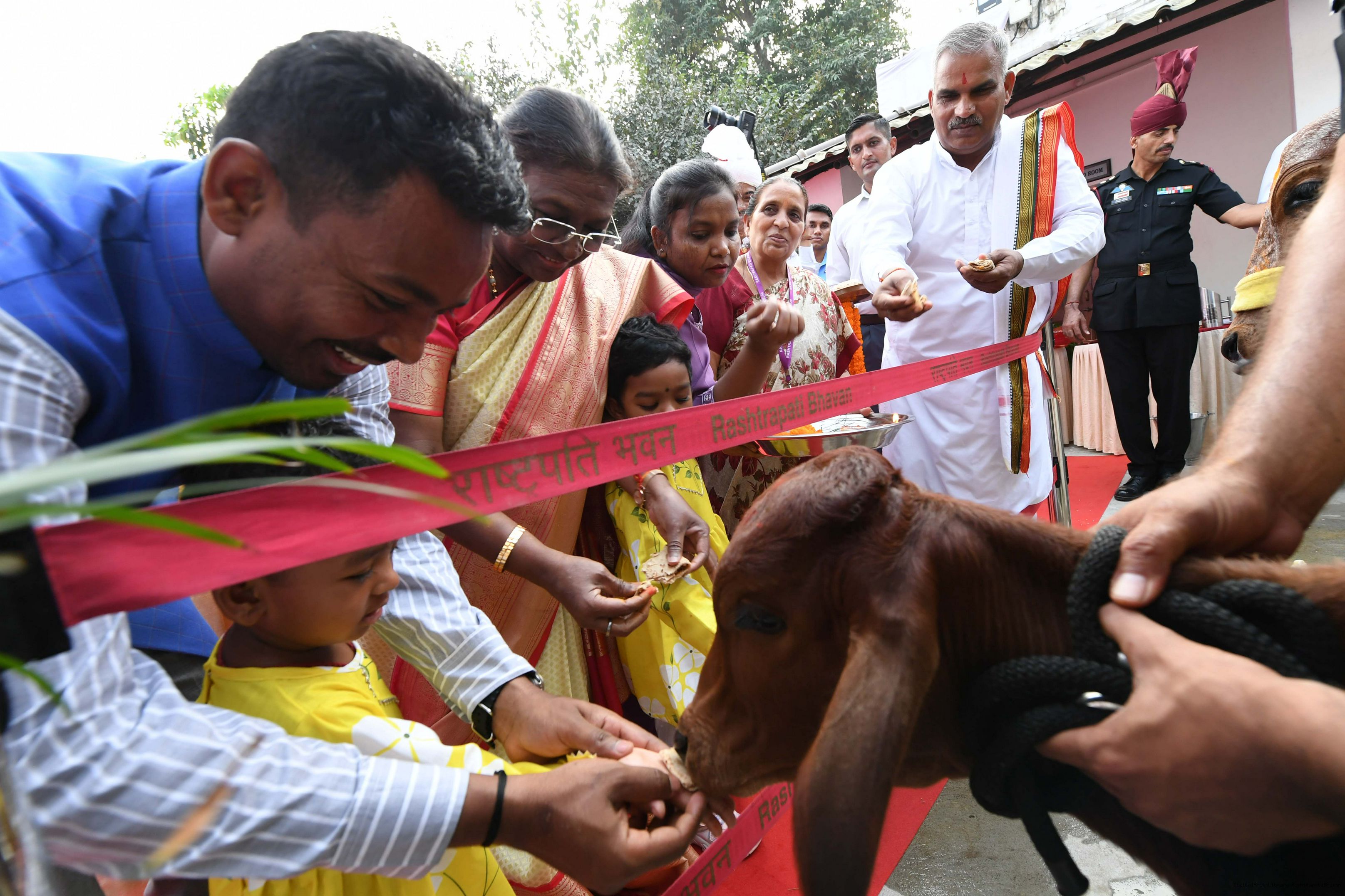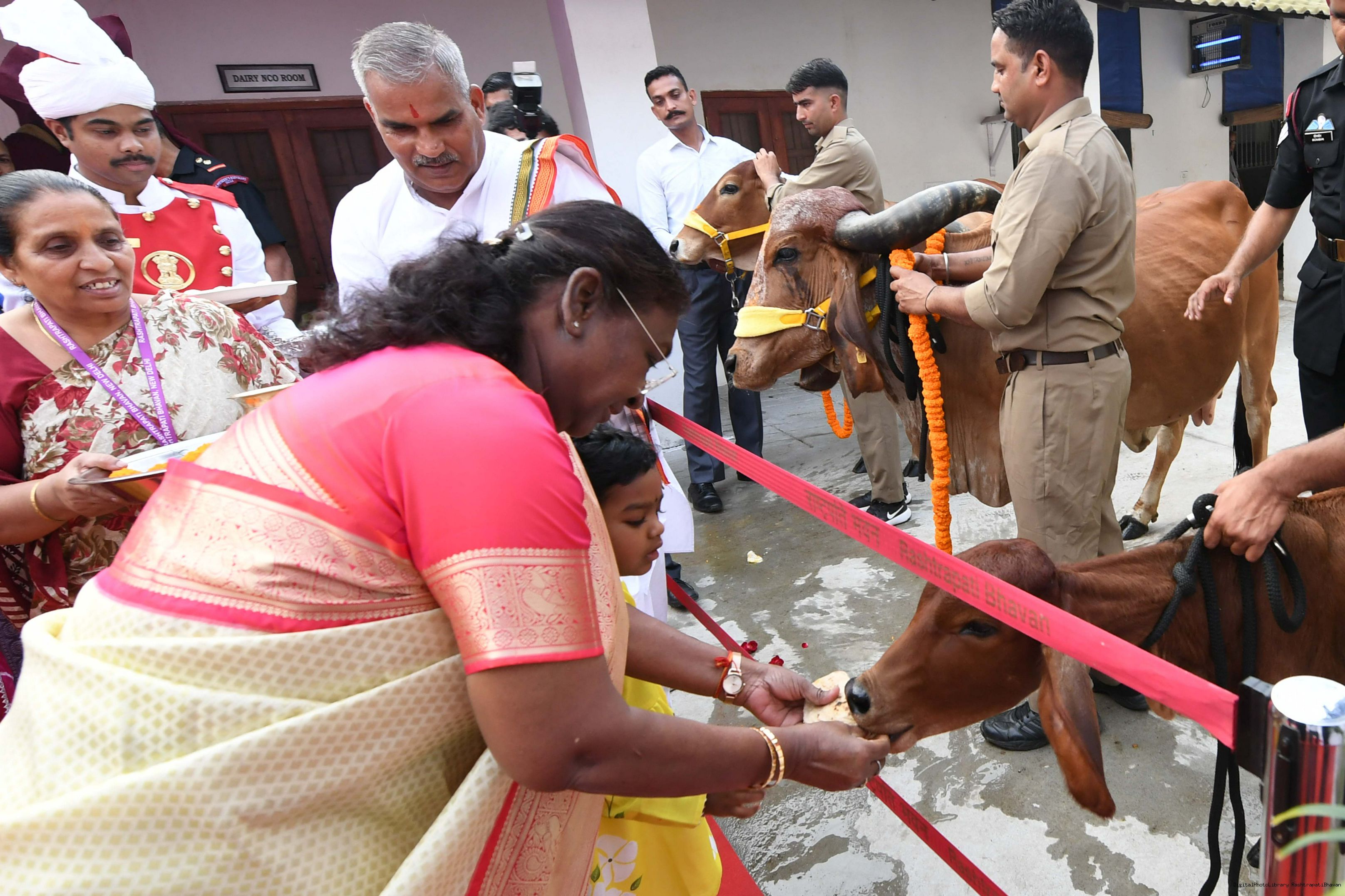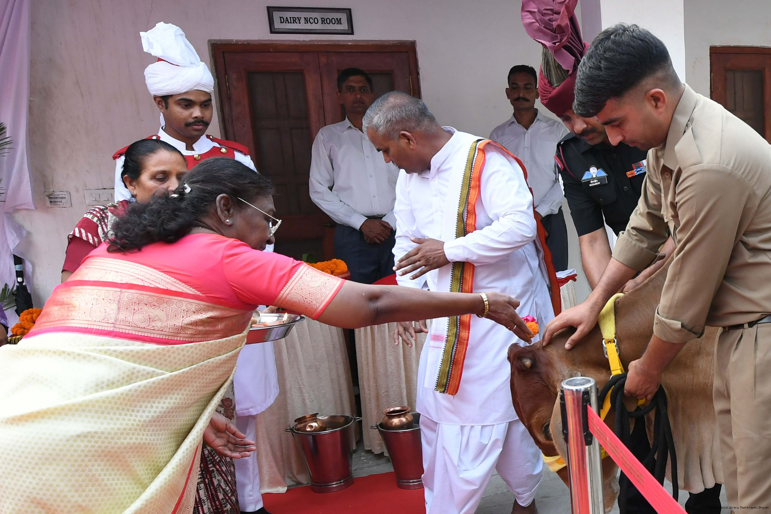 | Caption: | The President of India, Smt Droupadi Murmu visited Gaushala at PBG, Sch 'A', President's Estate at Rashtrapati Bhavan on October 30, 2024. |