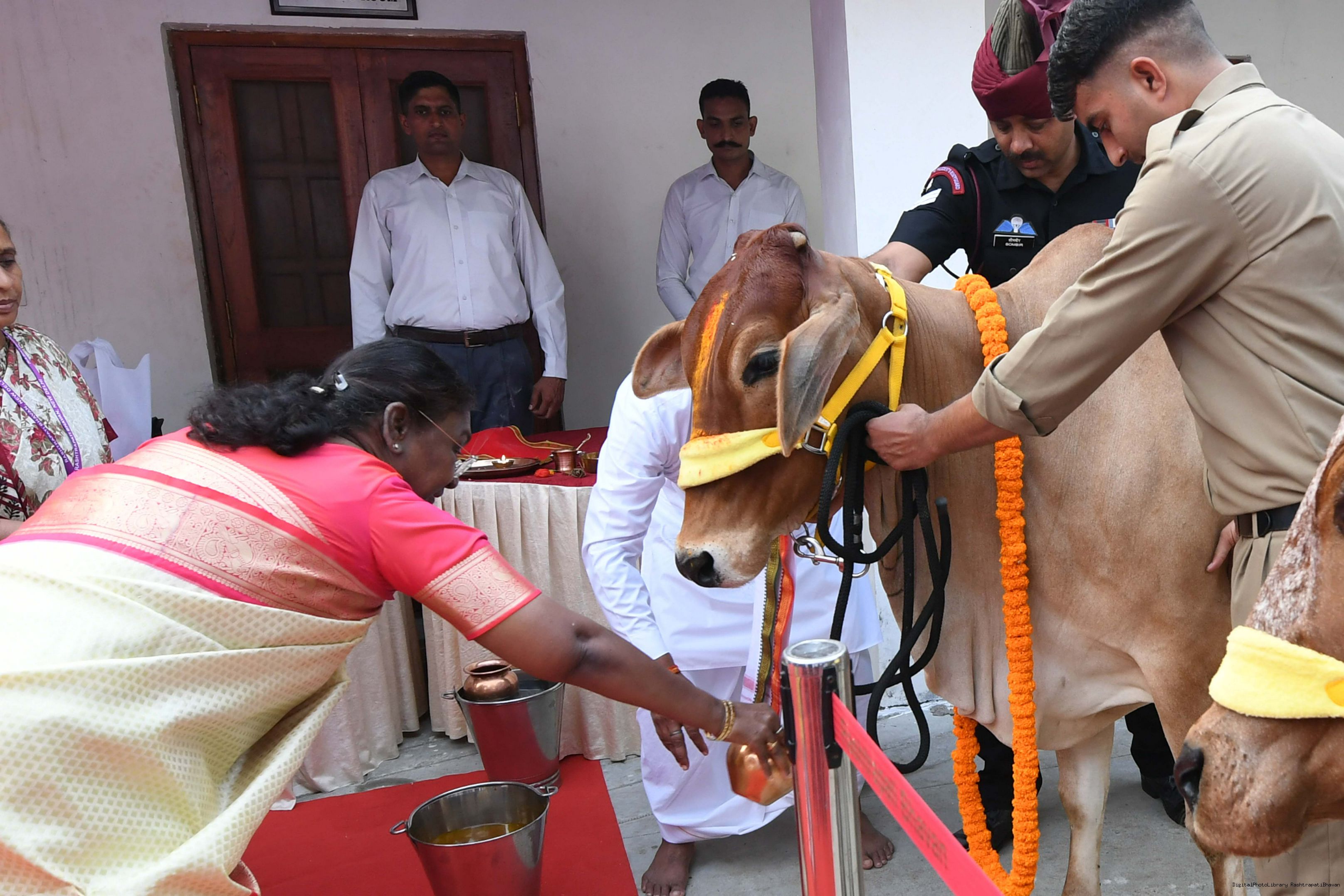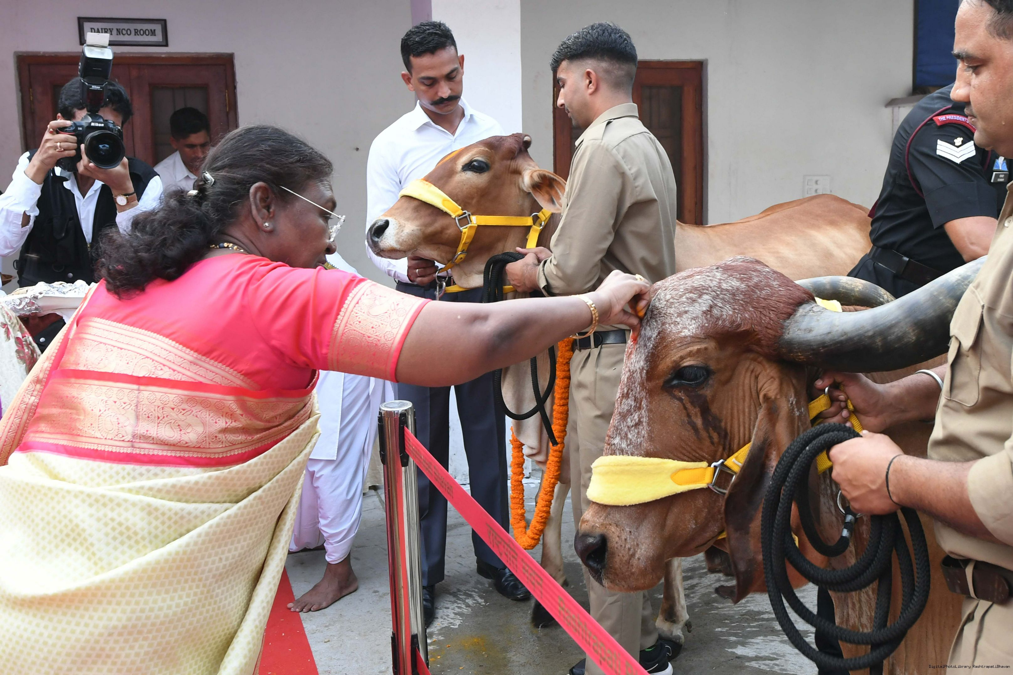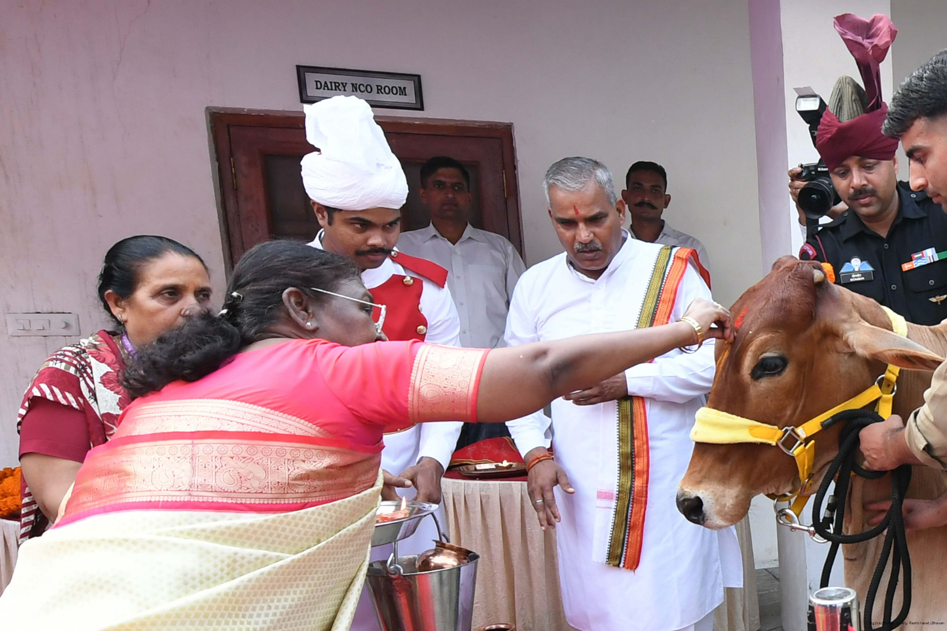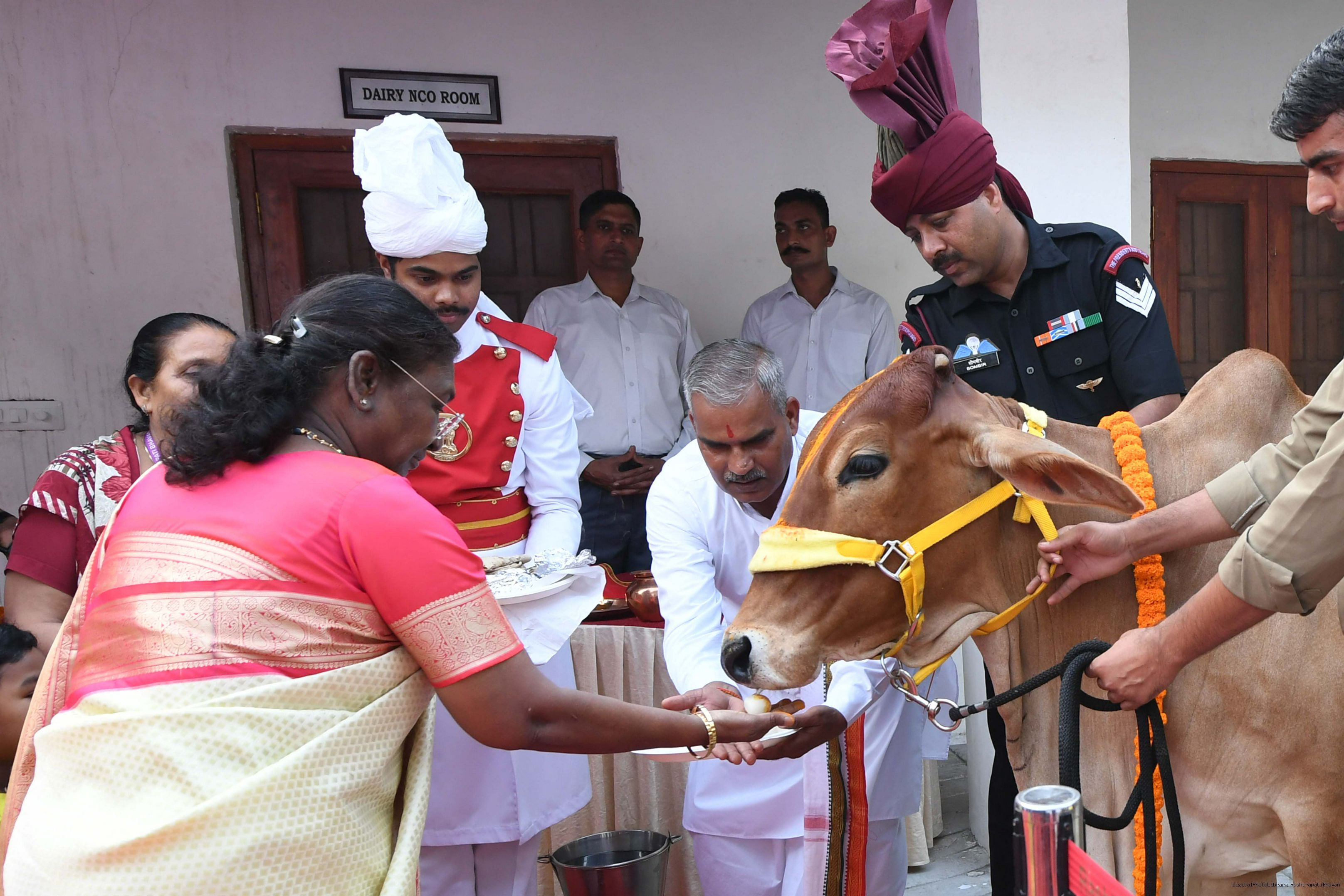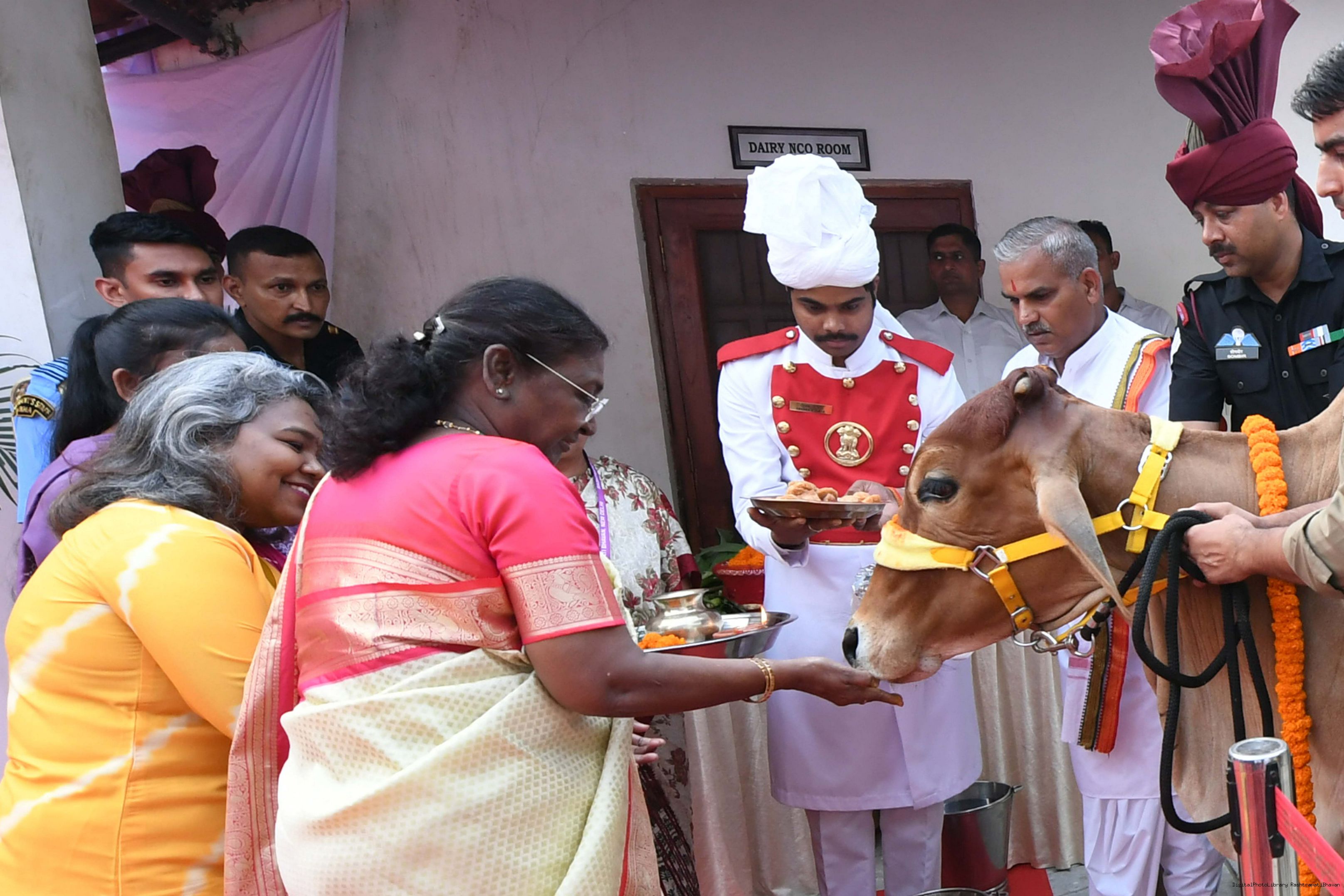 | Caption: | The President of India, Smt Droupadi Murmu visited Gaushala at PBG, Sch 'A', President's Estate at Rashtrapati Bhavan on October 30, 2024. |