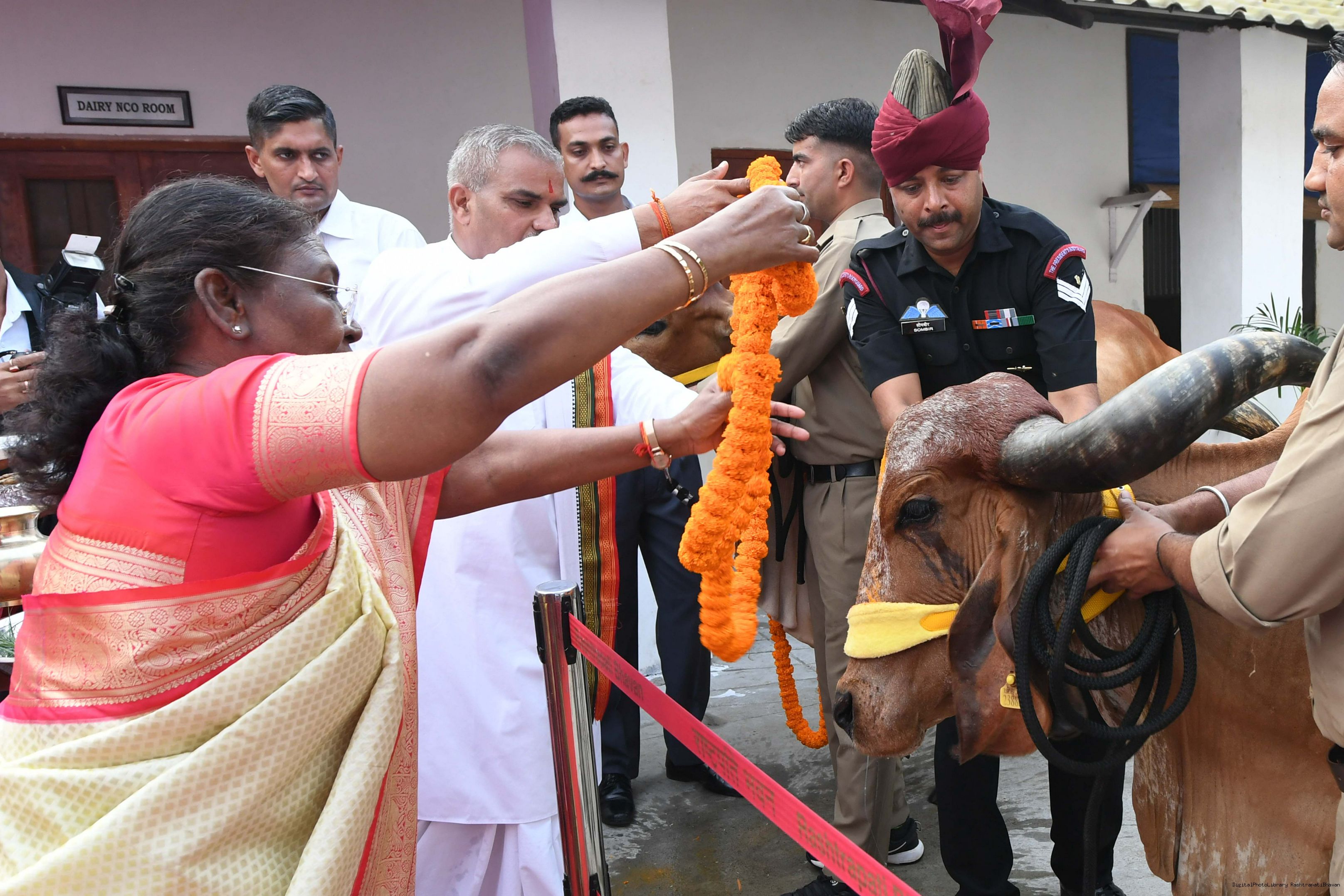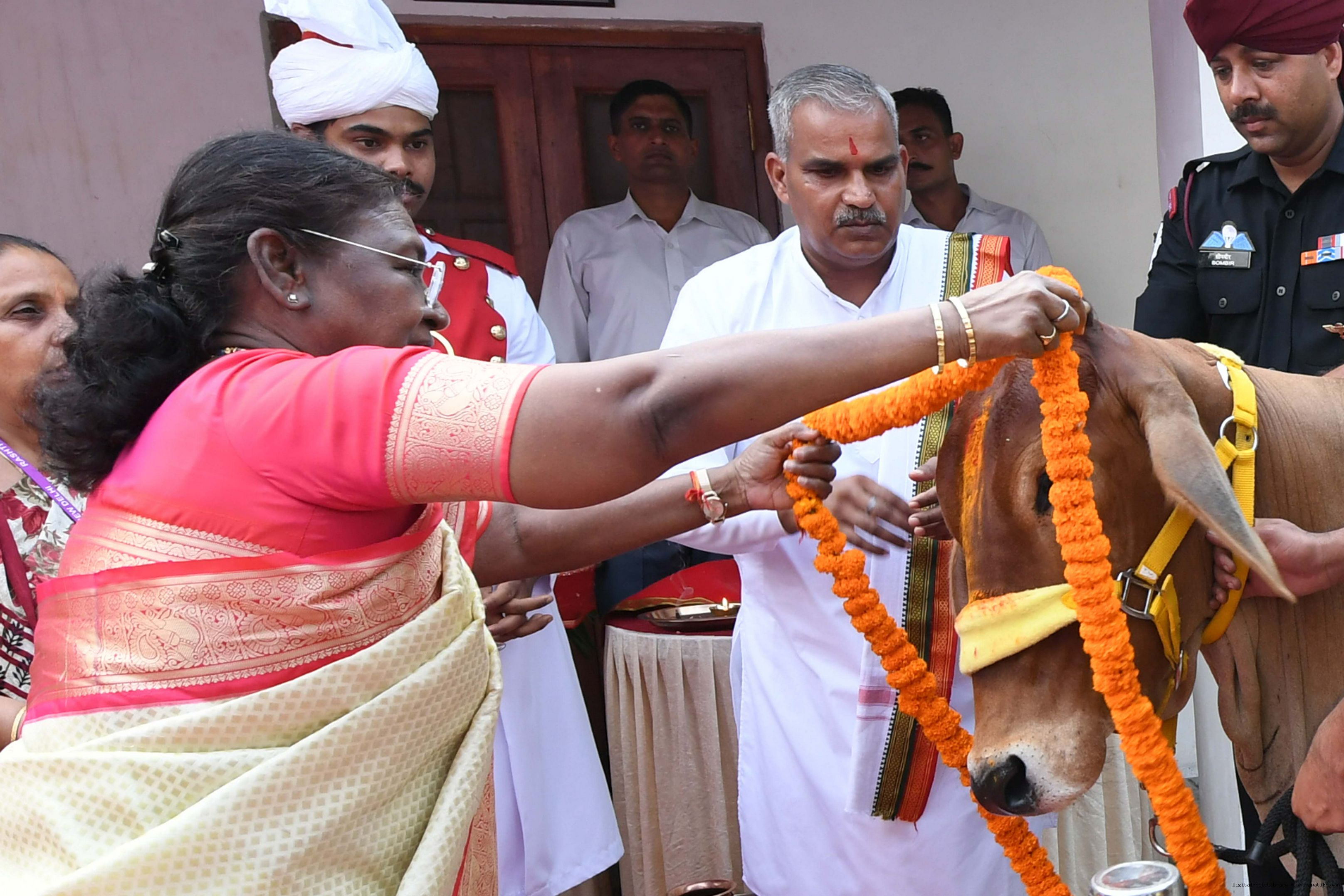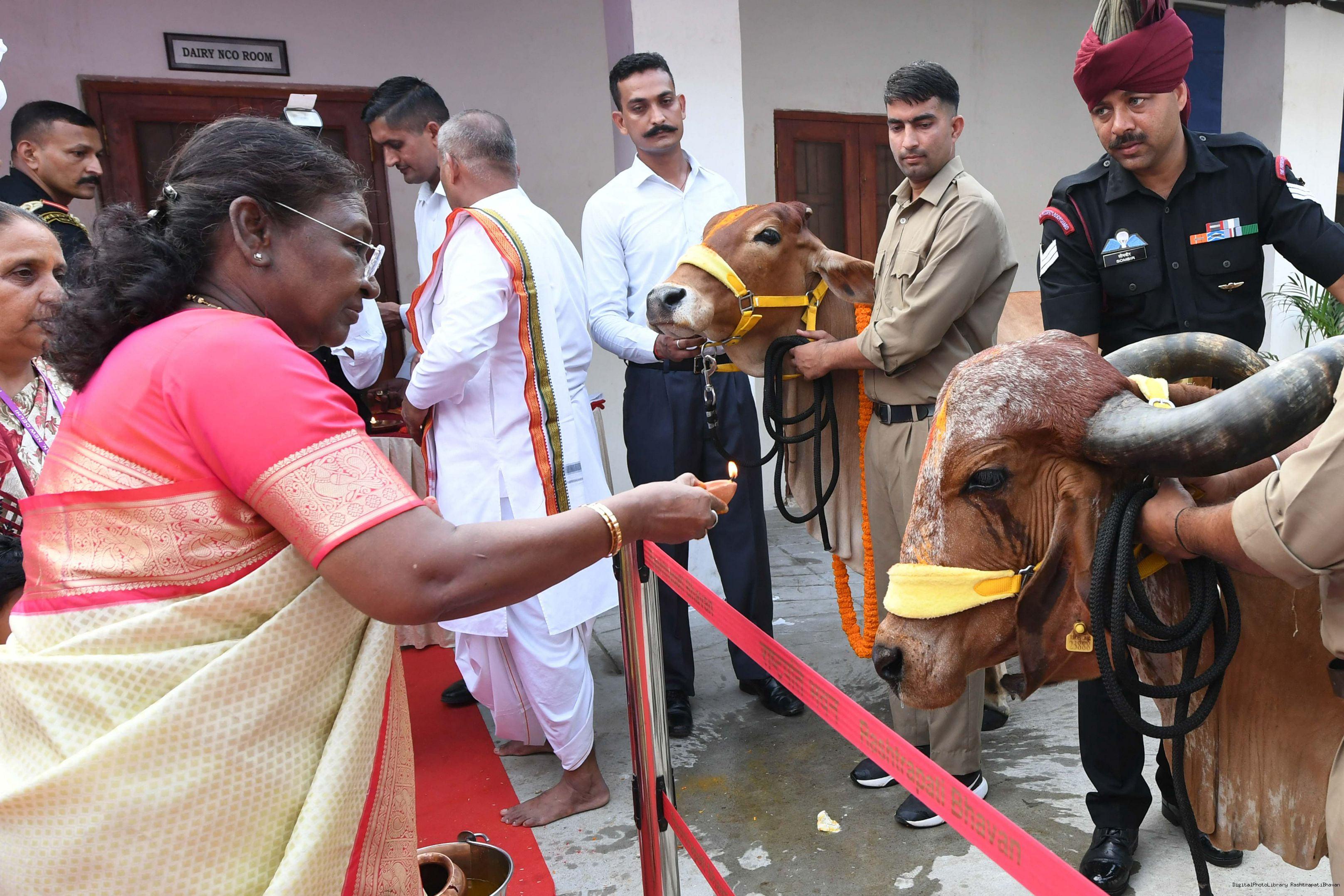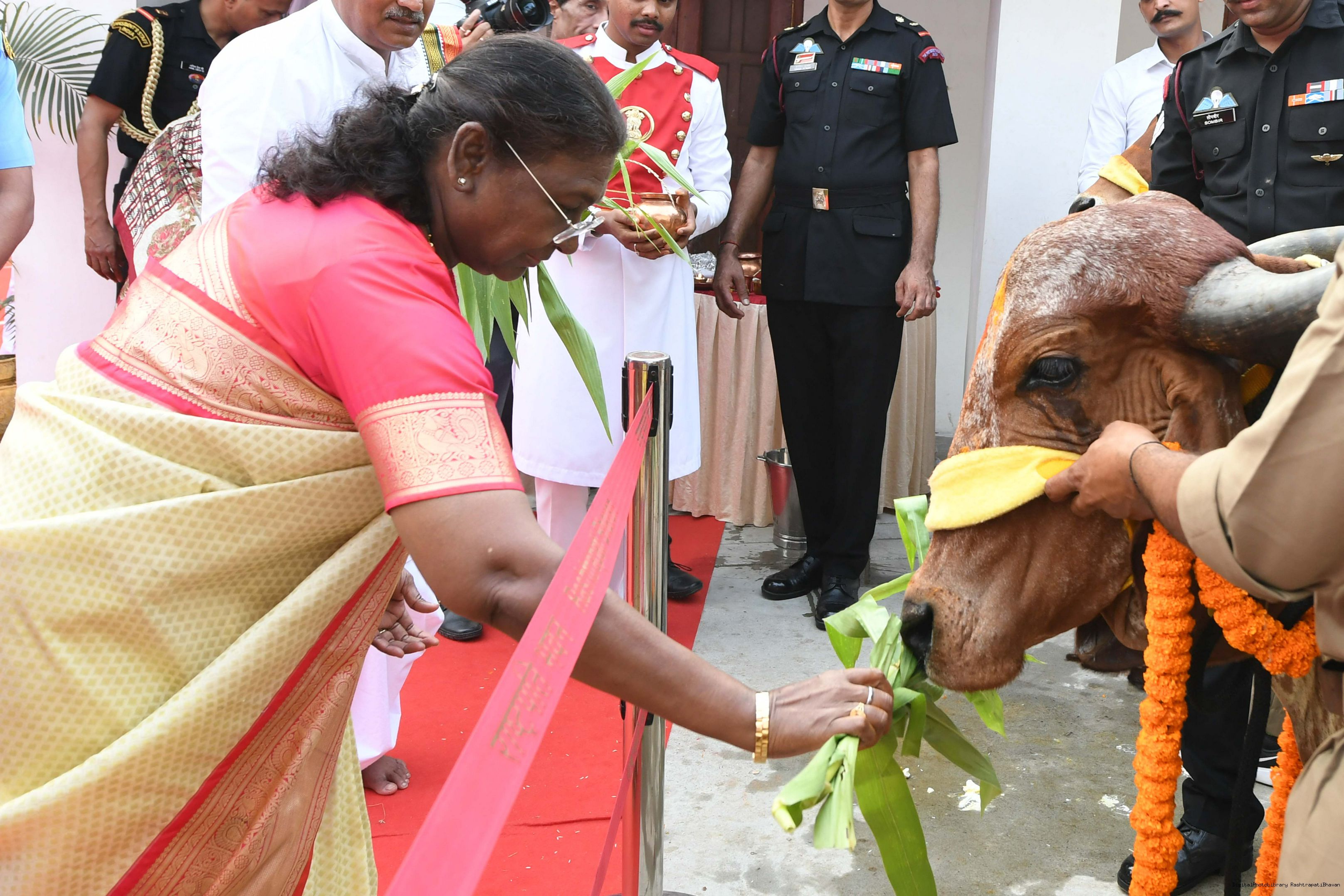 | Caption: | The President of India, Smt Droupadi Murmu visited Gaushala at PBG, Sch 'A', President's Estate at Rashtrapati Bhavan on October 30, 2024. |