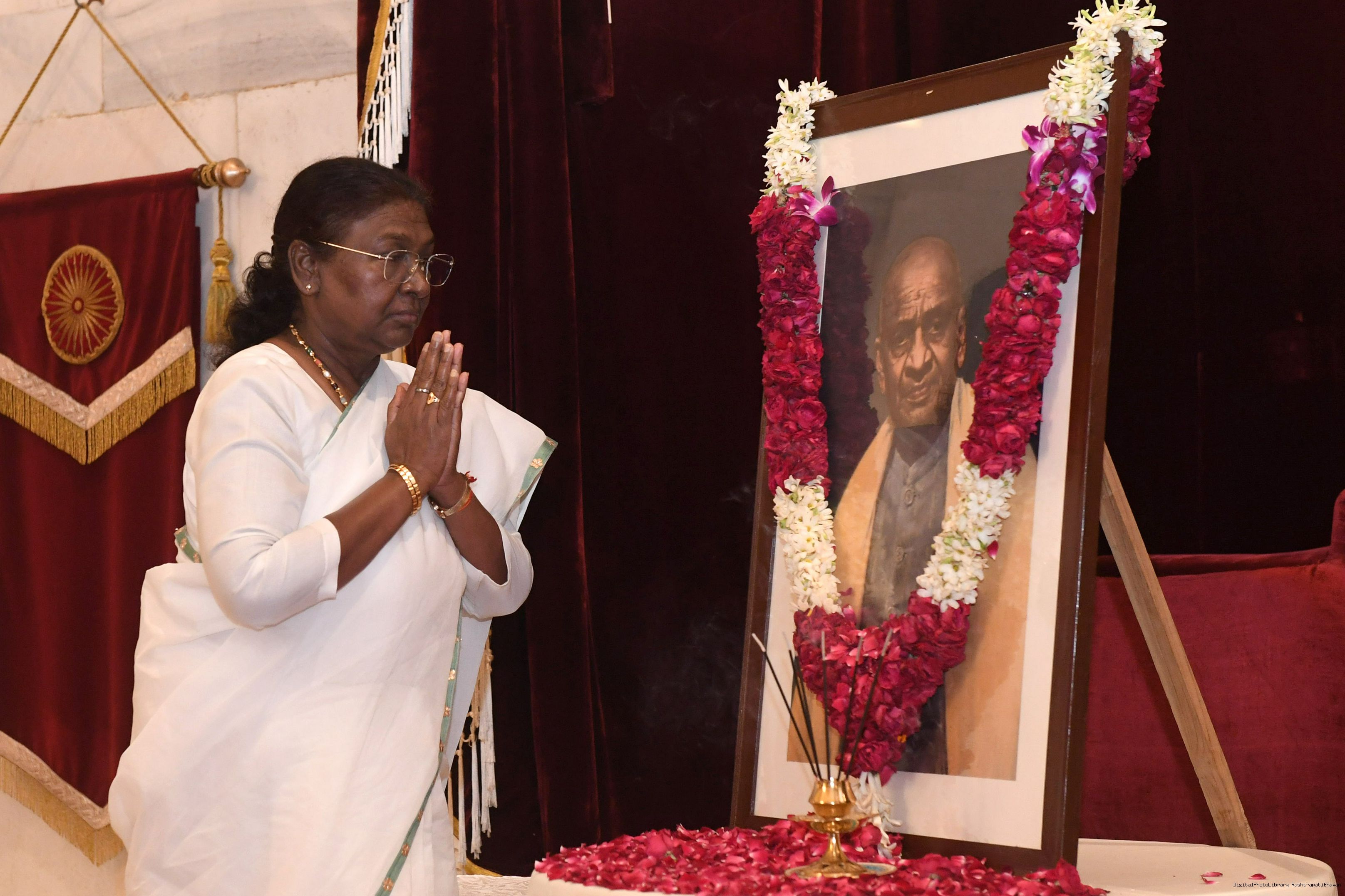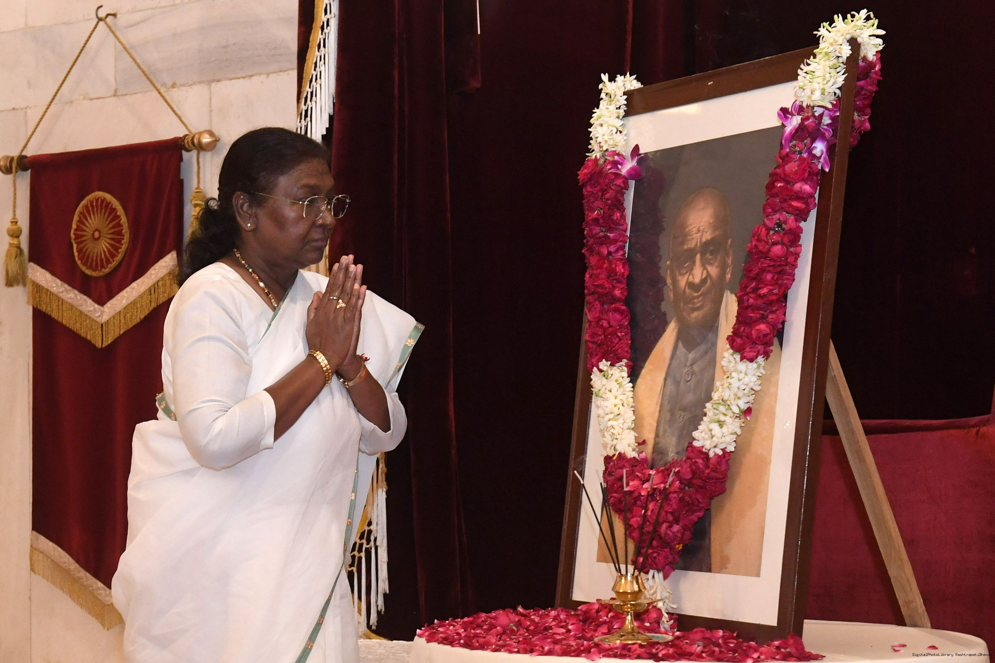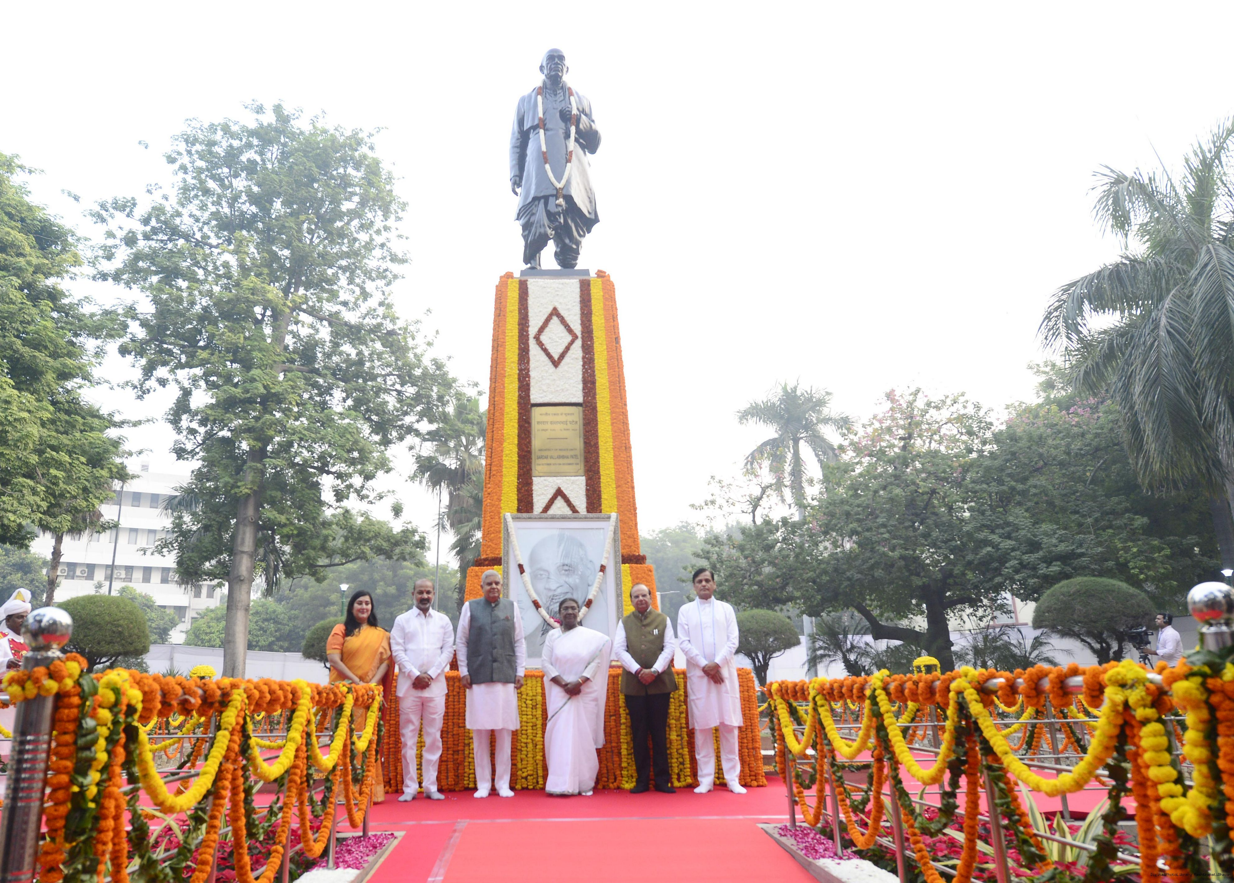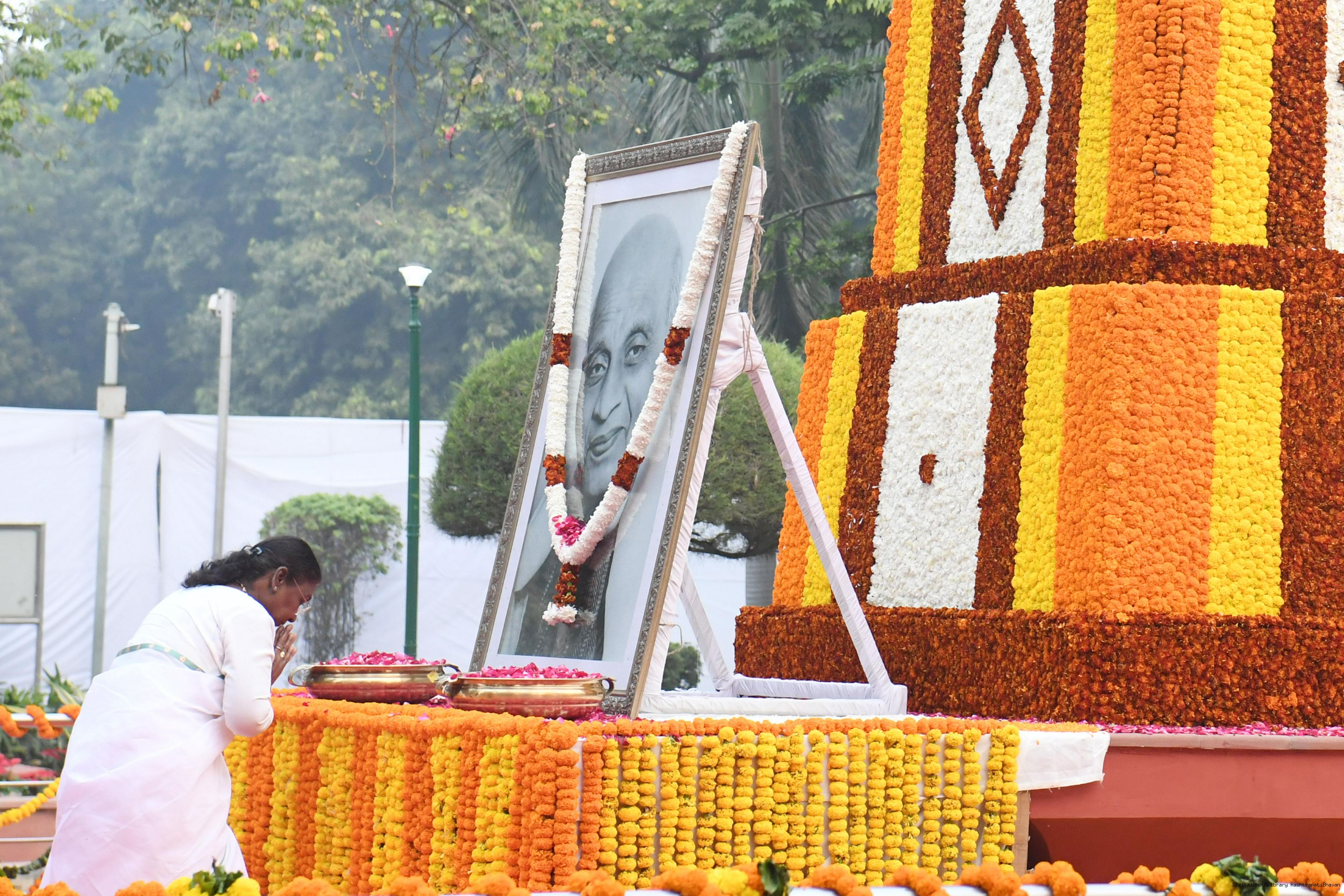 | Caption: | The President of India Smt. Droupadi Murmu paid homage at Patel Chowk in New Delhi and paid floral tributes to Sardar Vallabhbhai Patel on his birth anniversary at Rashtrapati Bhavan on October 31, 2024. |