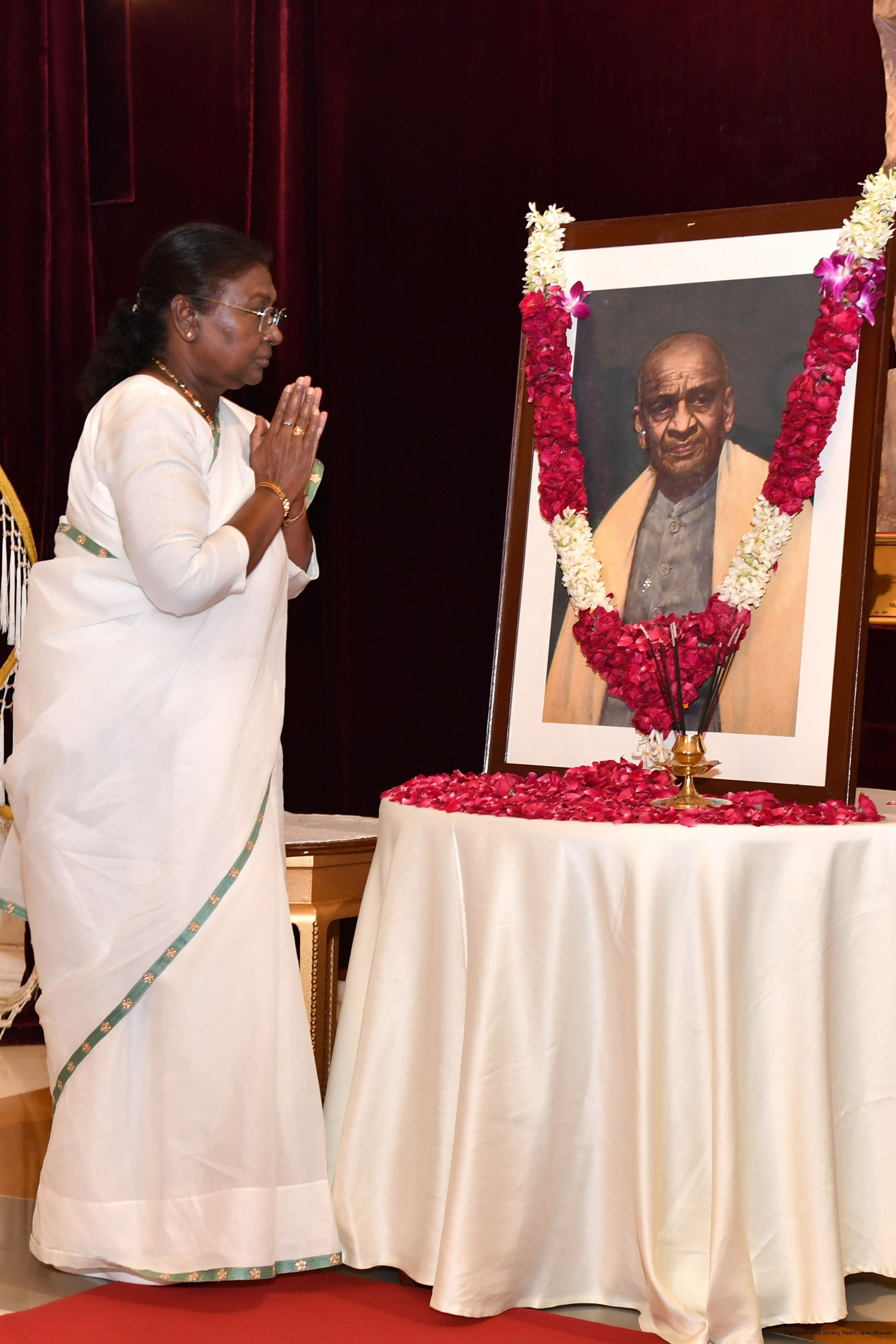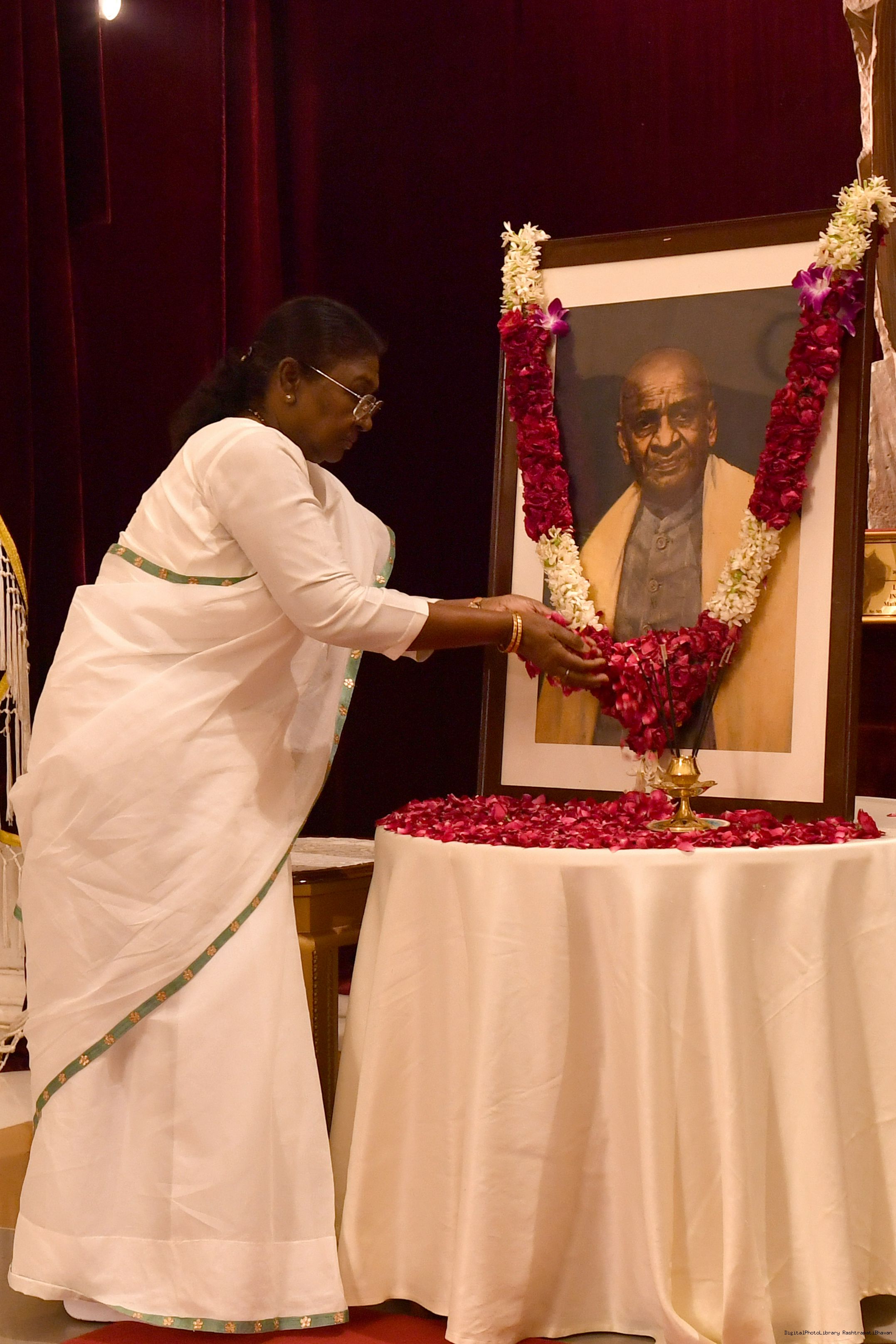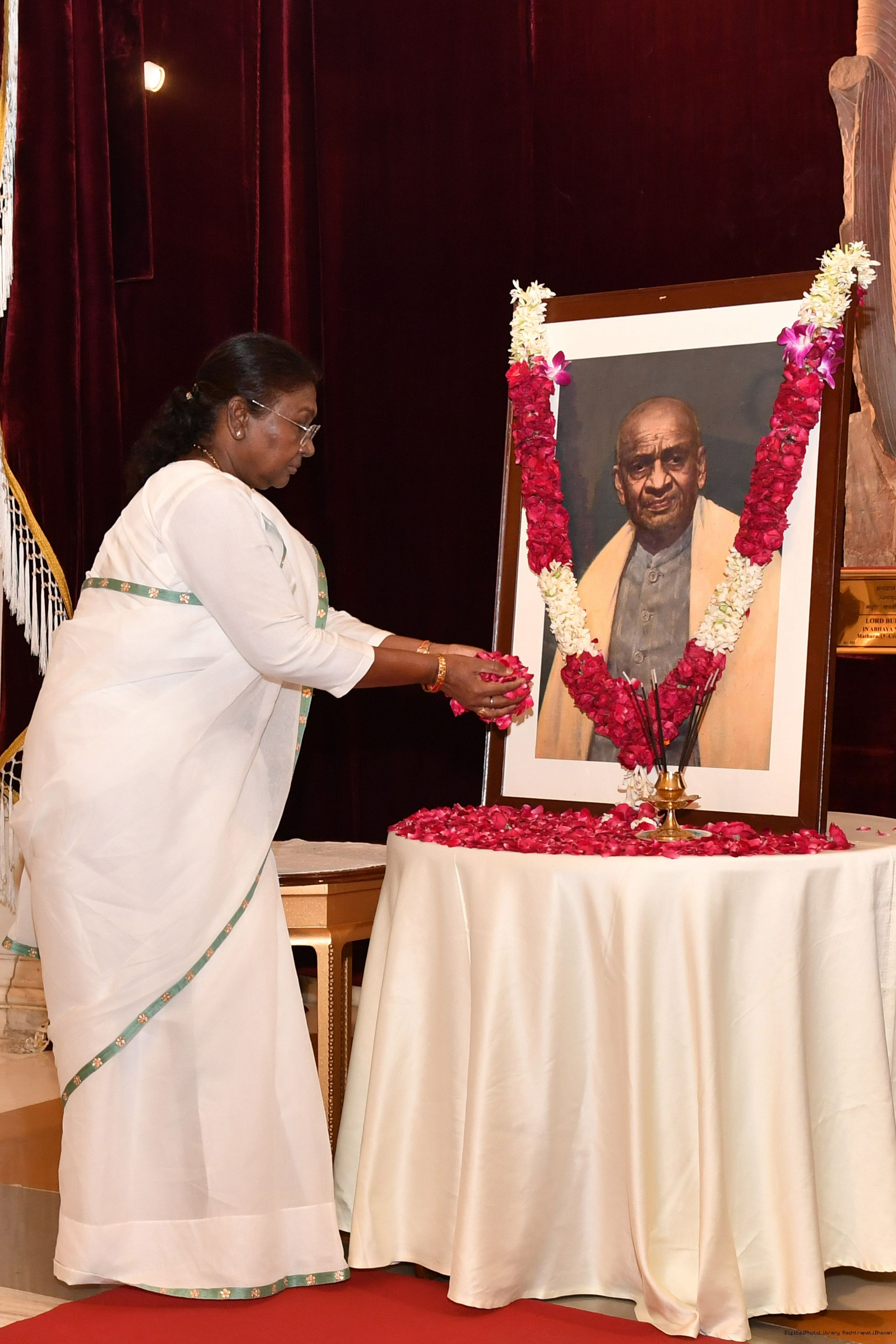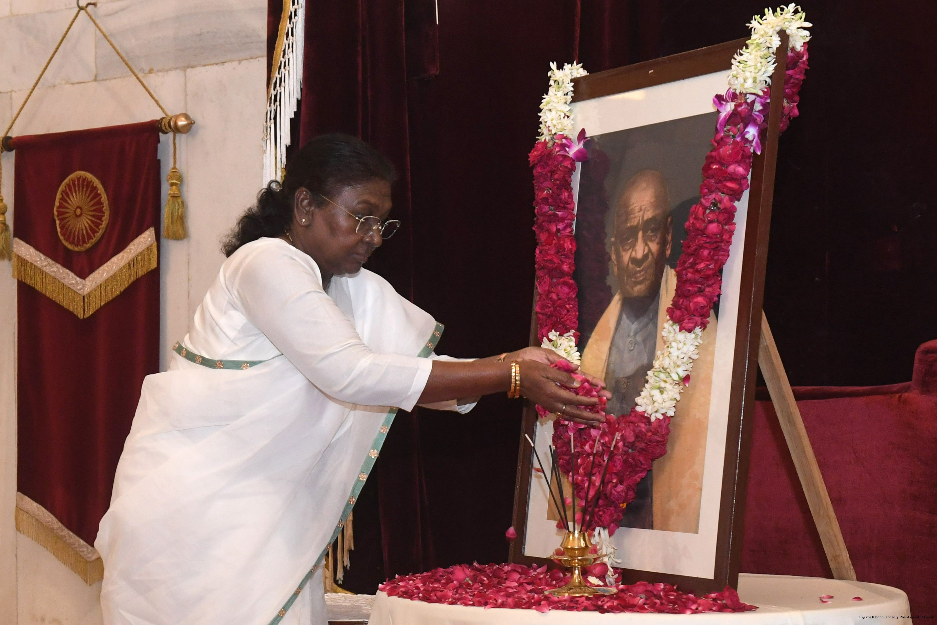 | Caption: | The President of India Smt. Droupadi Murmu paid homage at Patel Chowk in New Delhi and paid floral tributes to Sardar Vallabhbhai Patel on his birth anniversary at Rashtrapati Bhavan on October 31, 2024. |