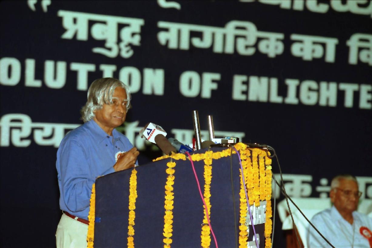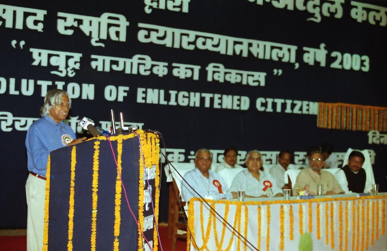 | Caption: | The President of India, Dr A P J Abdul Kalam addressing the Thakur Prasad Memorial Lecture at Bodh Gaya in Bihar on May 31, 2003 |
