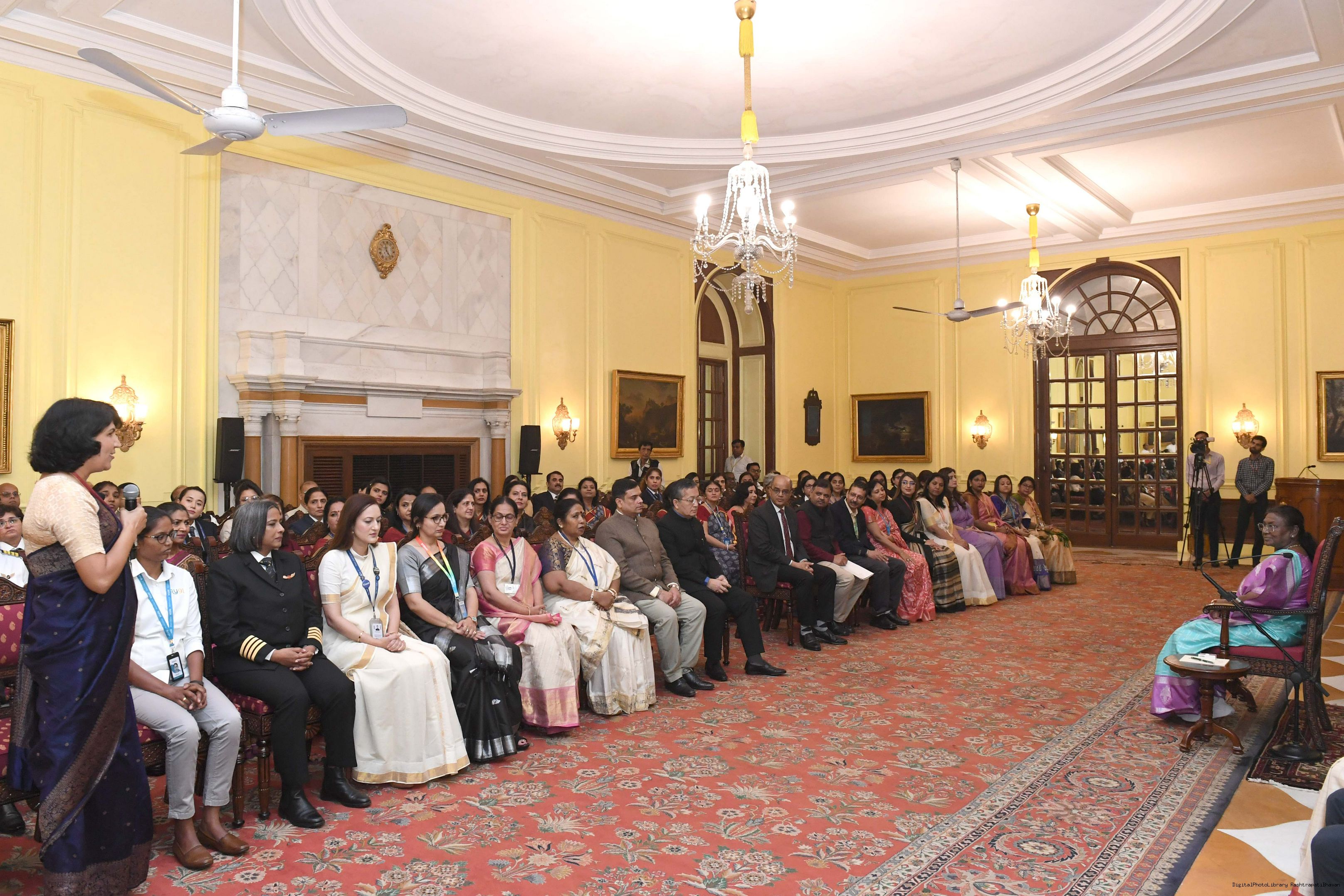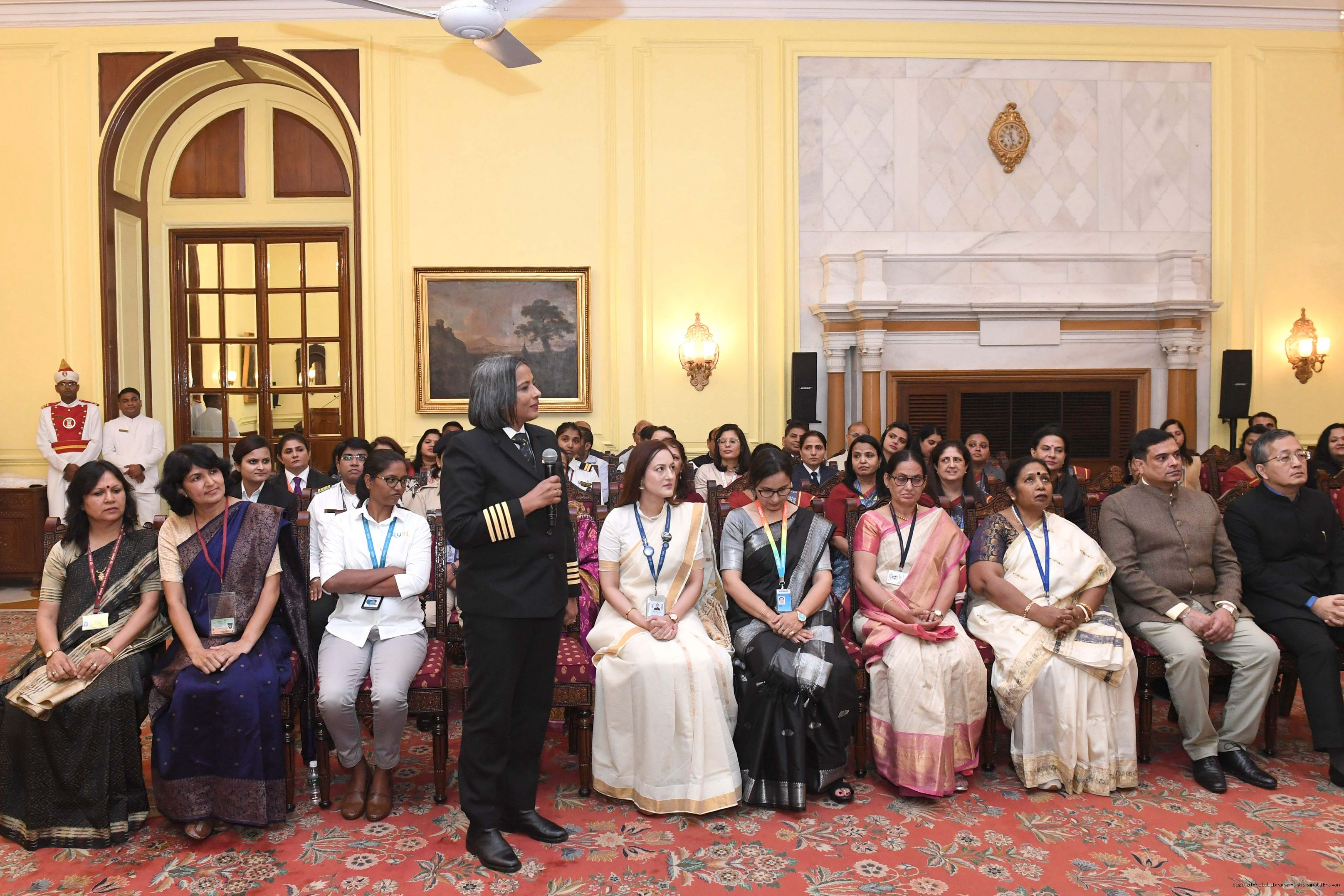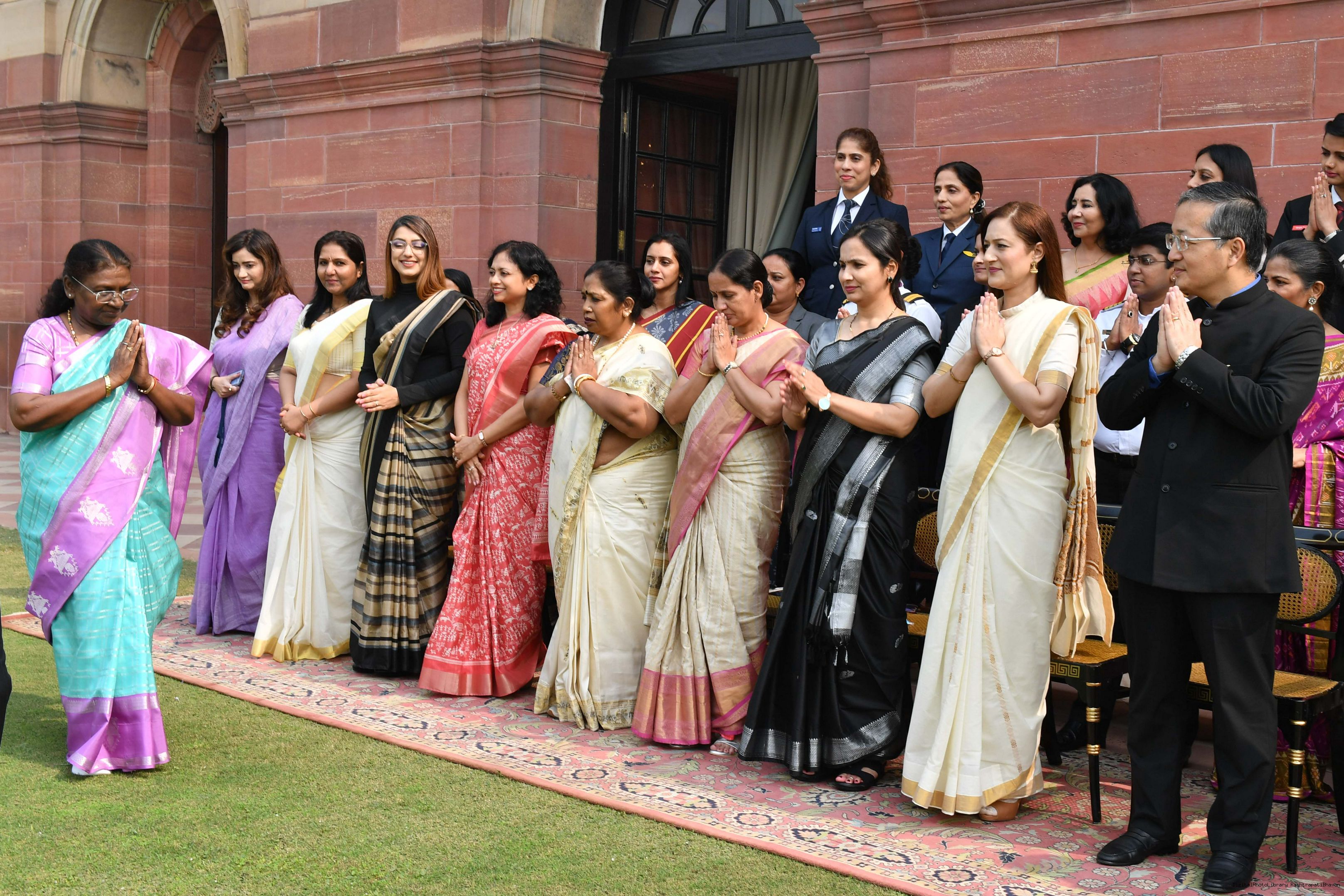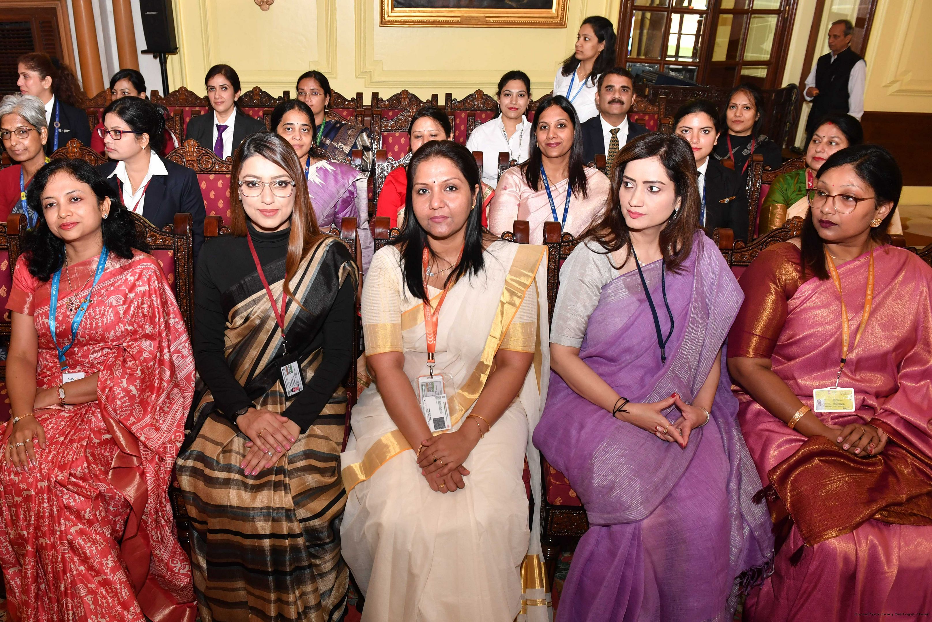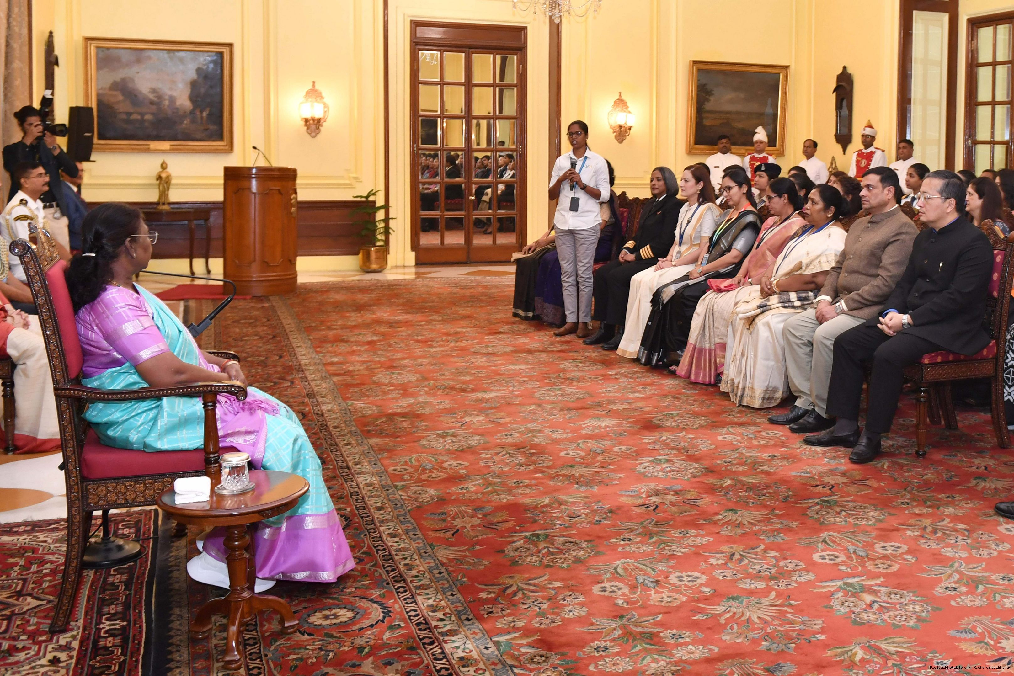 | Caption: | The President of India, Smt Droupadi Murmu interacted with a group of women achievers in the Indian Aviation Sector at Rashtrapati Bhavan on November 4, 2024. |