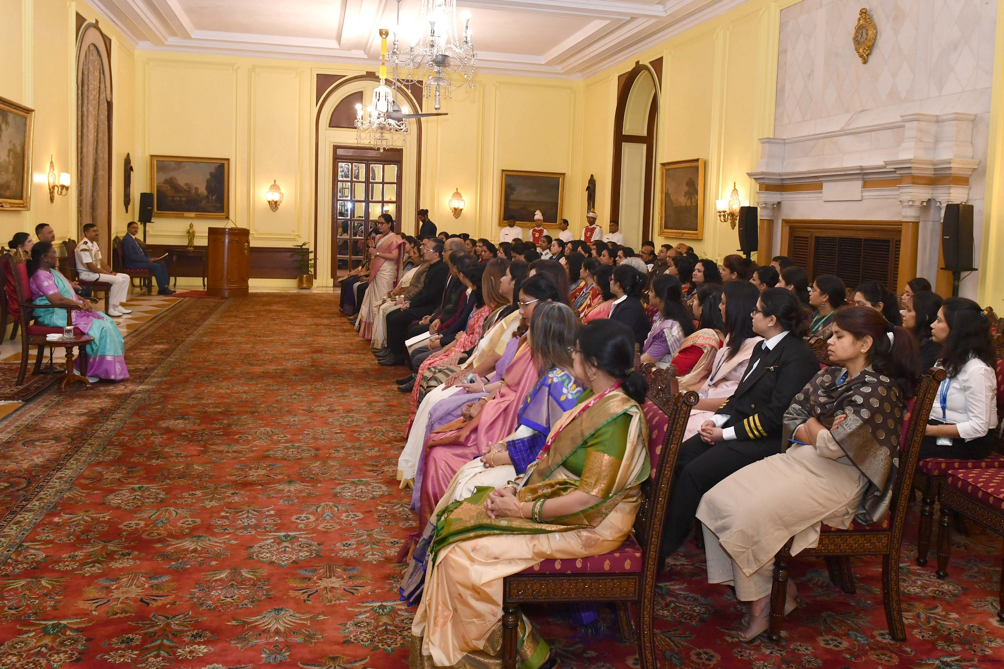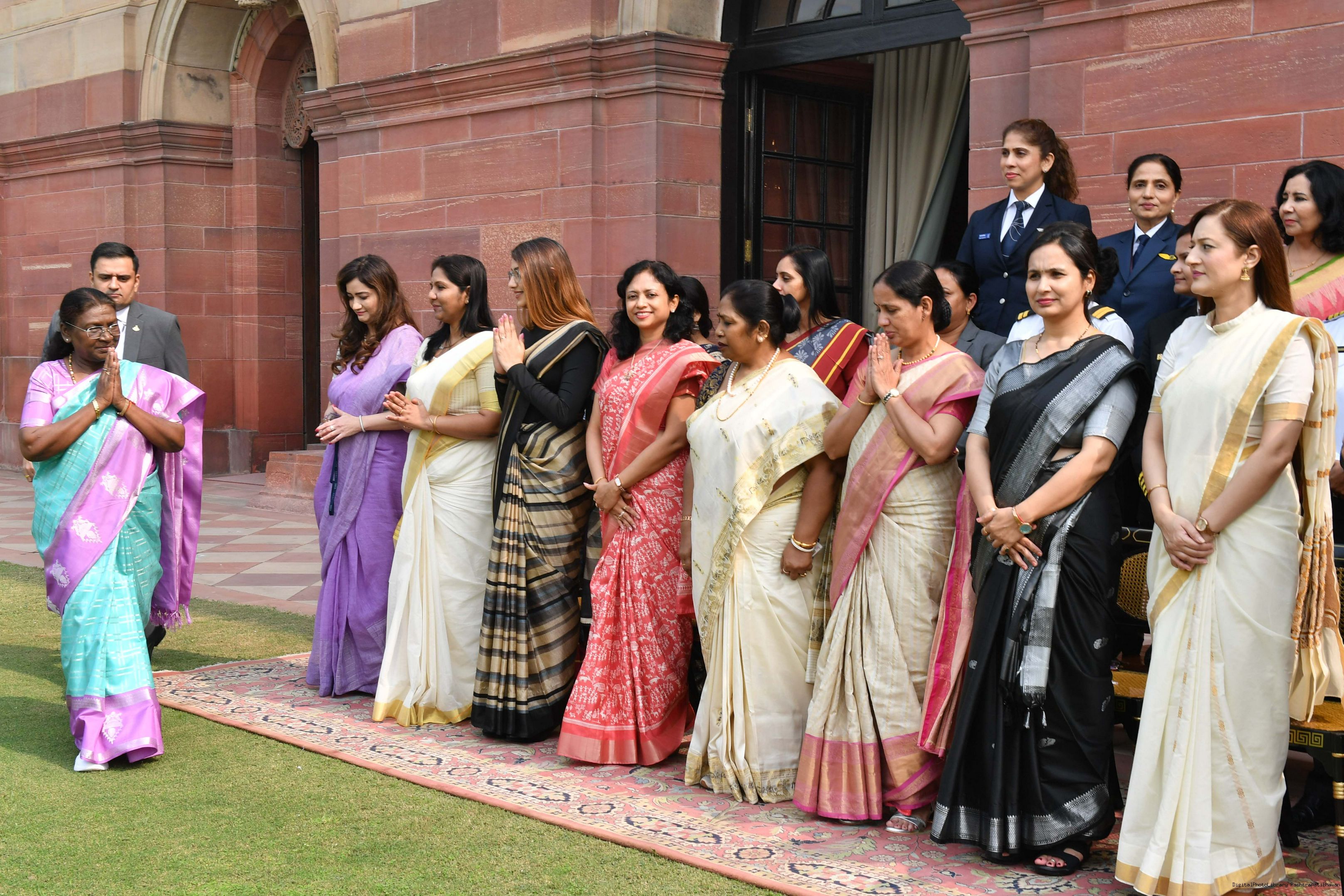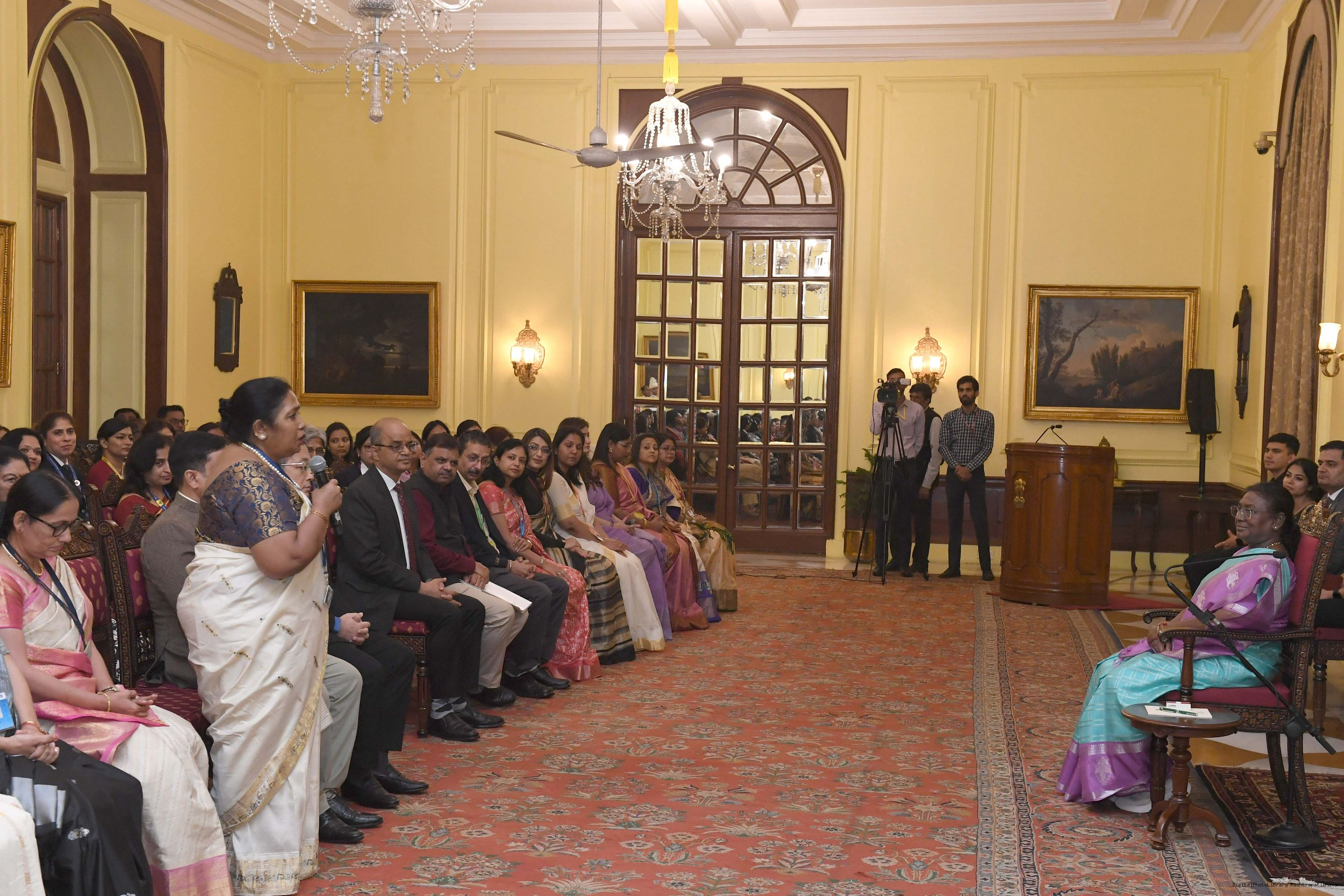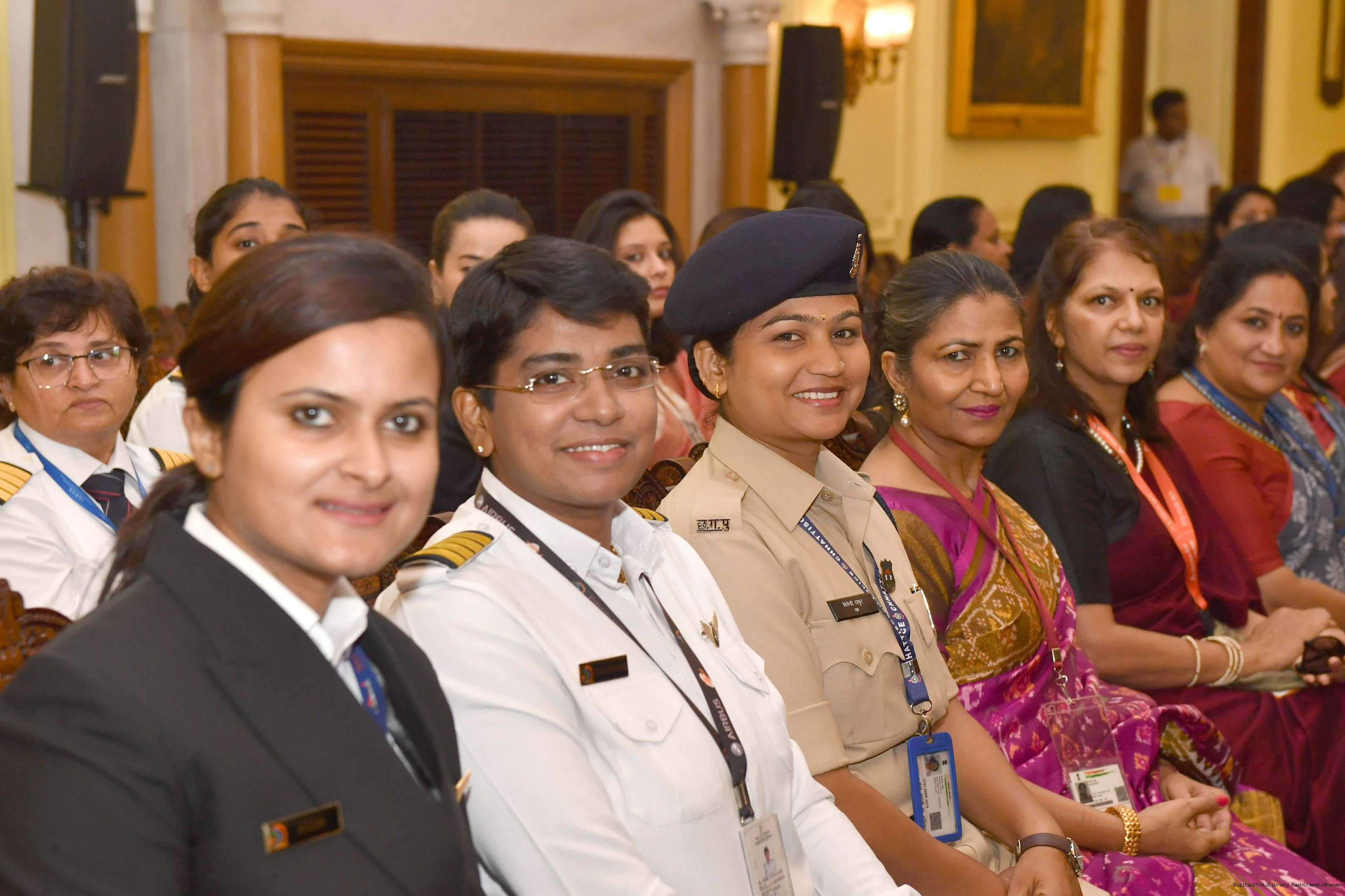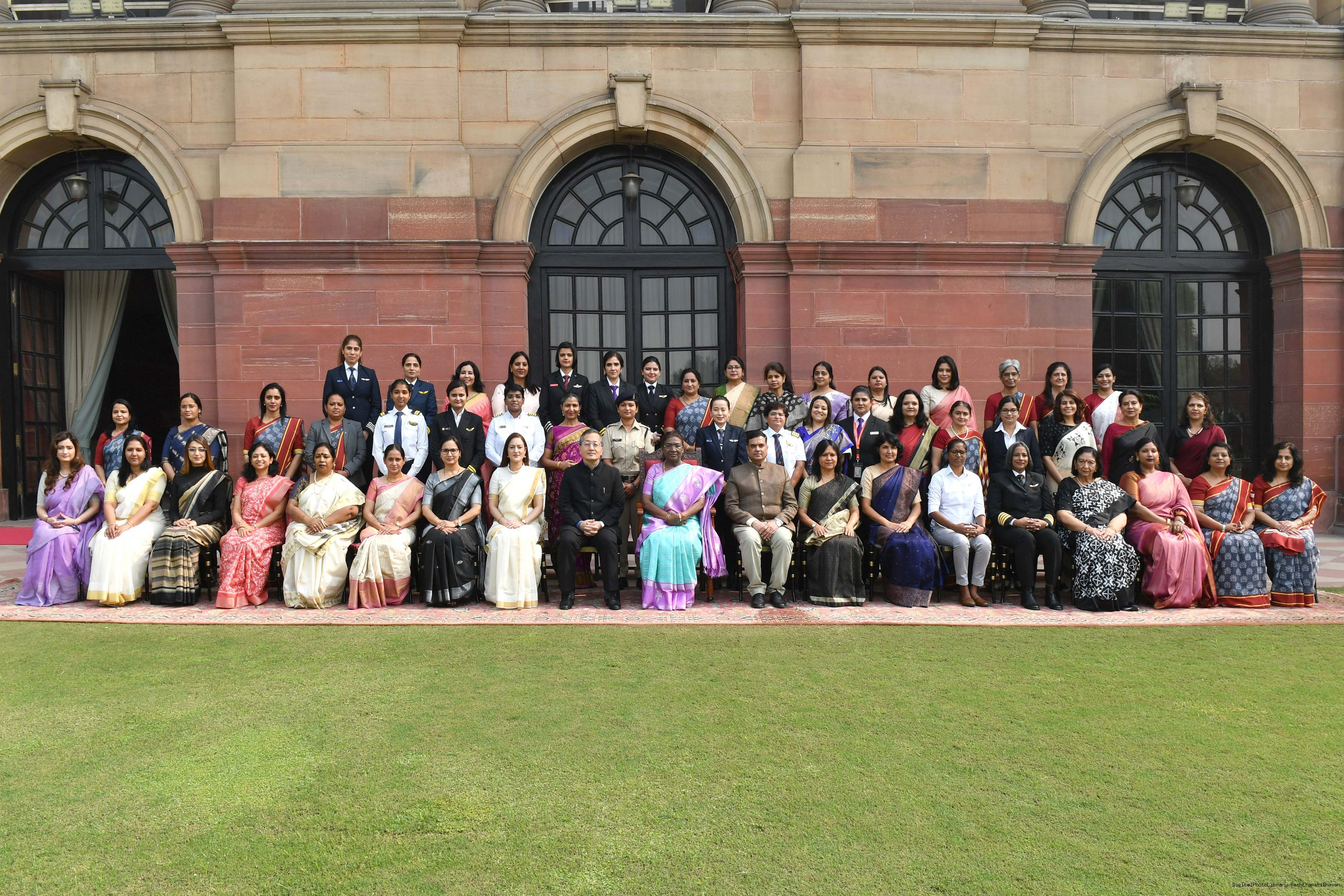 | Caption: | The President of India, Smt Droupadi Murmu interacted with a group of women achievers in the Indian Aviation Sector at Rashtrapati Bhavan on November 4, 2024. |