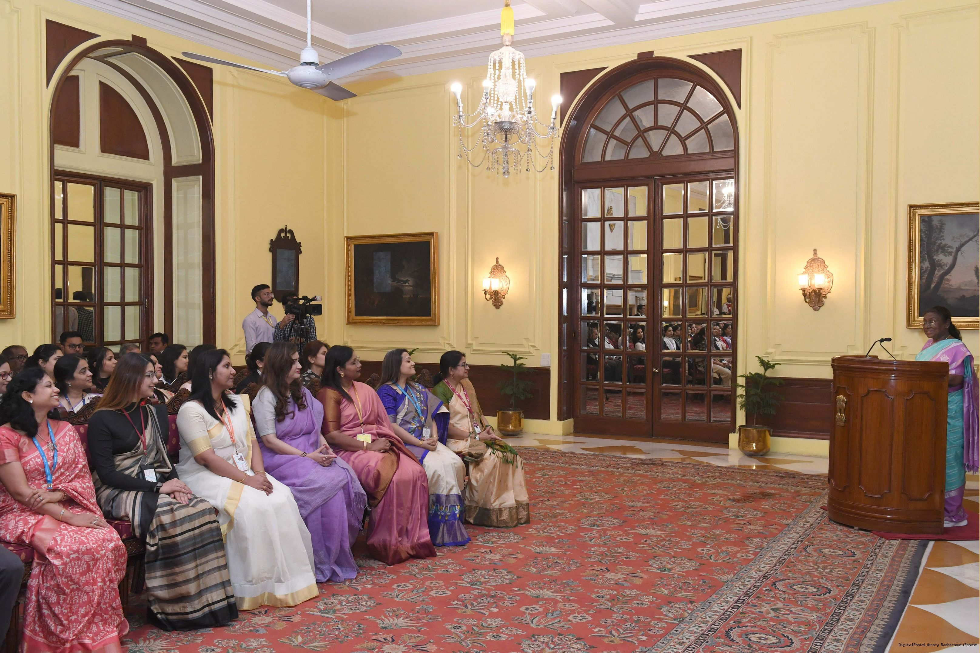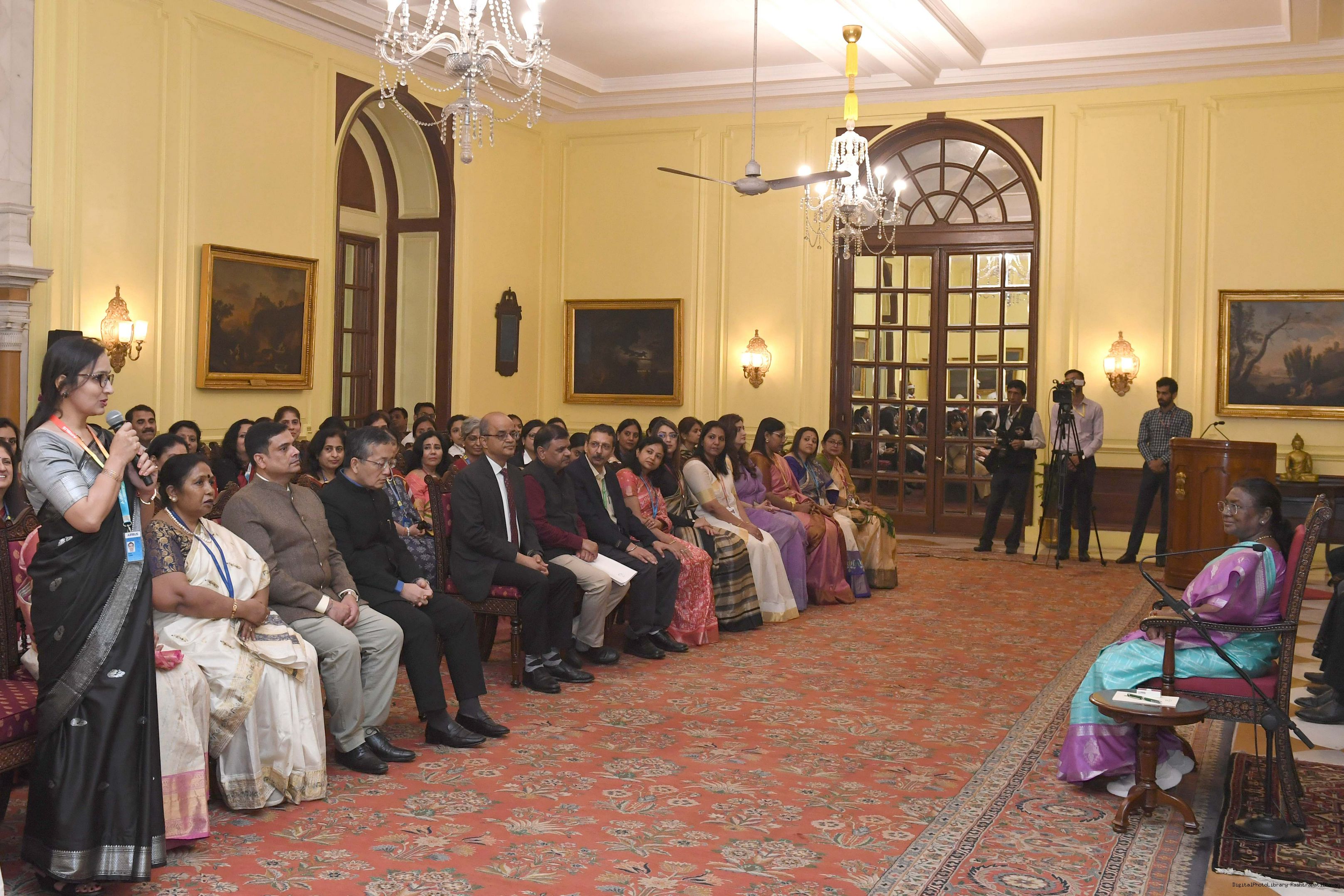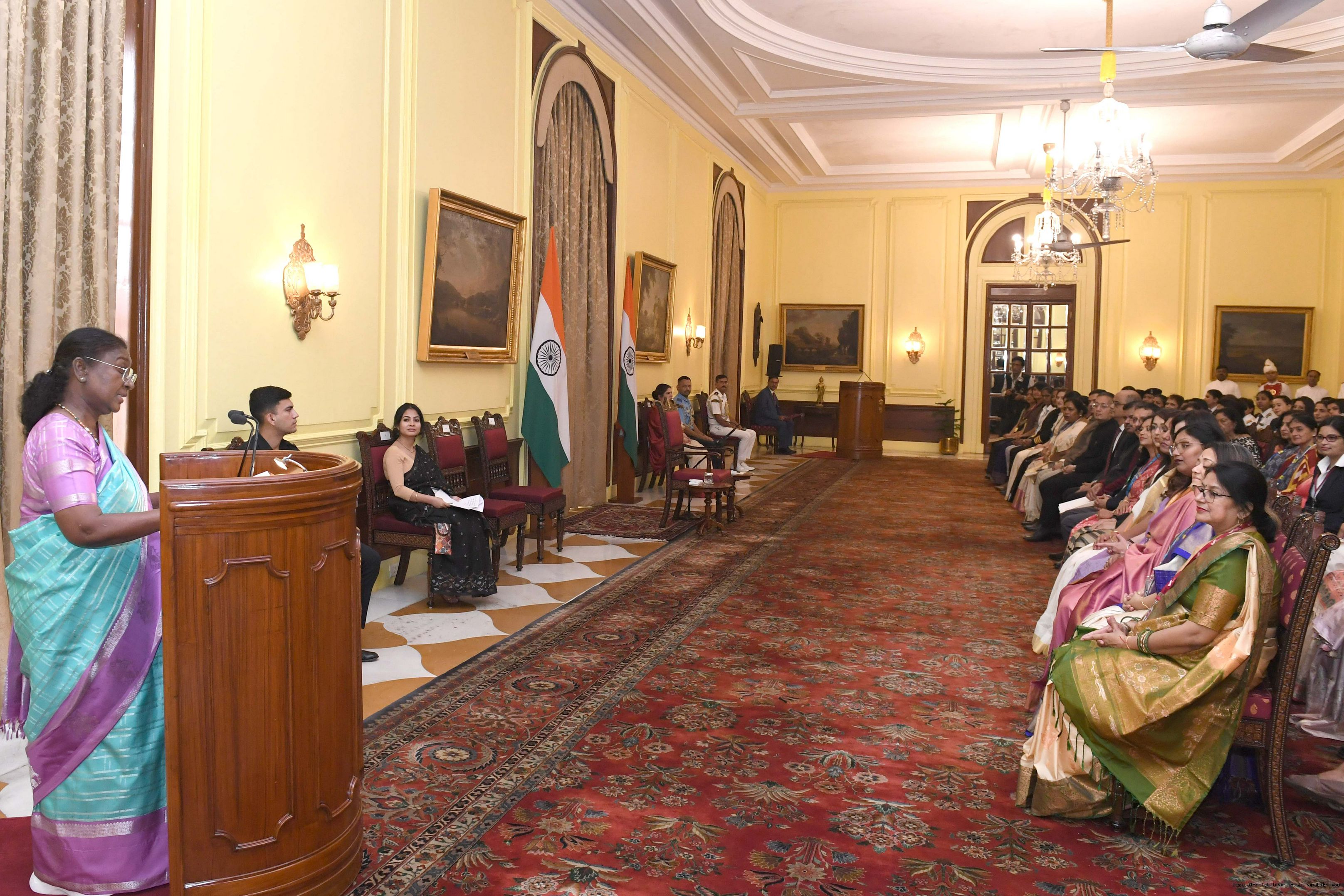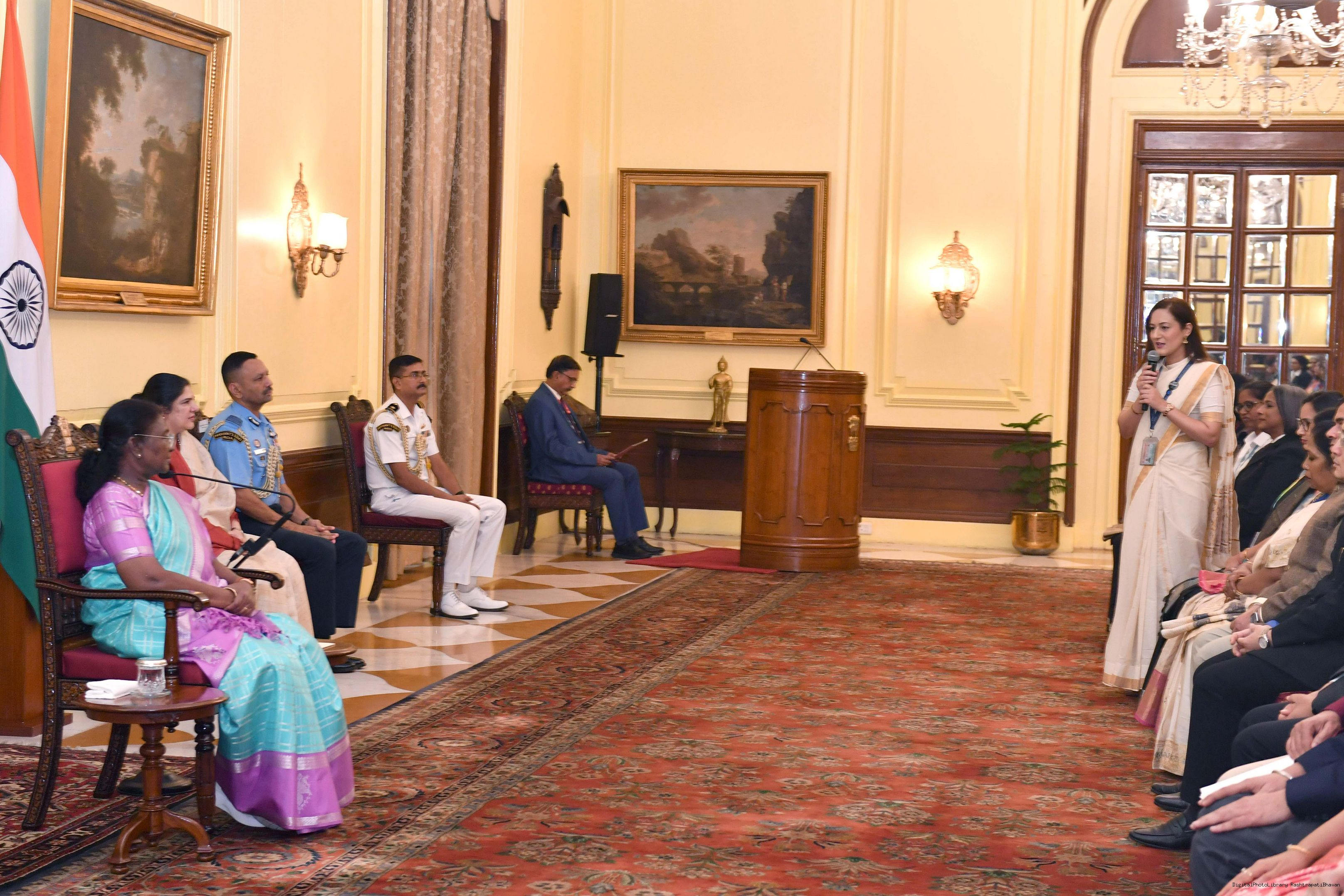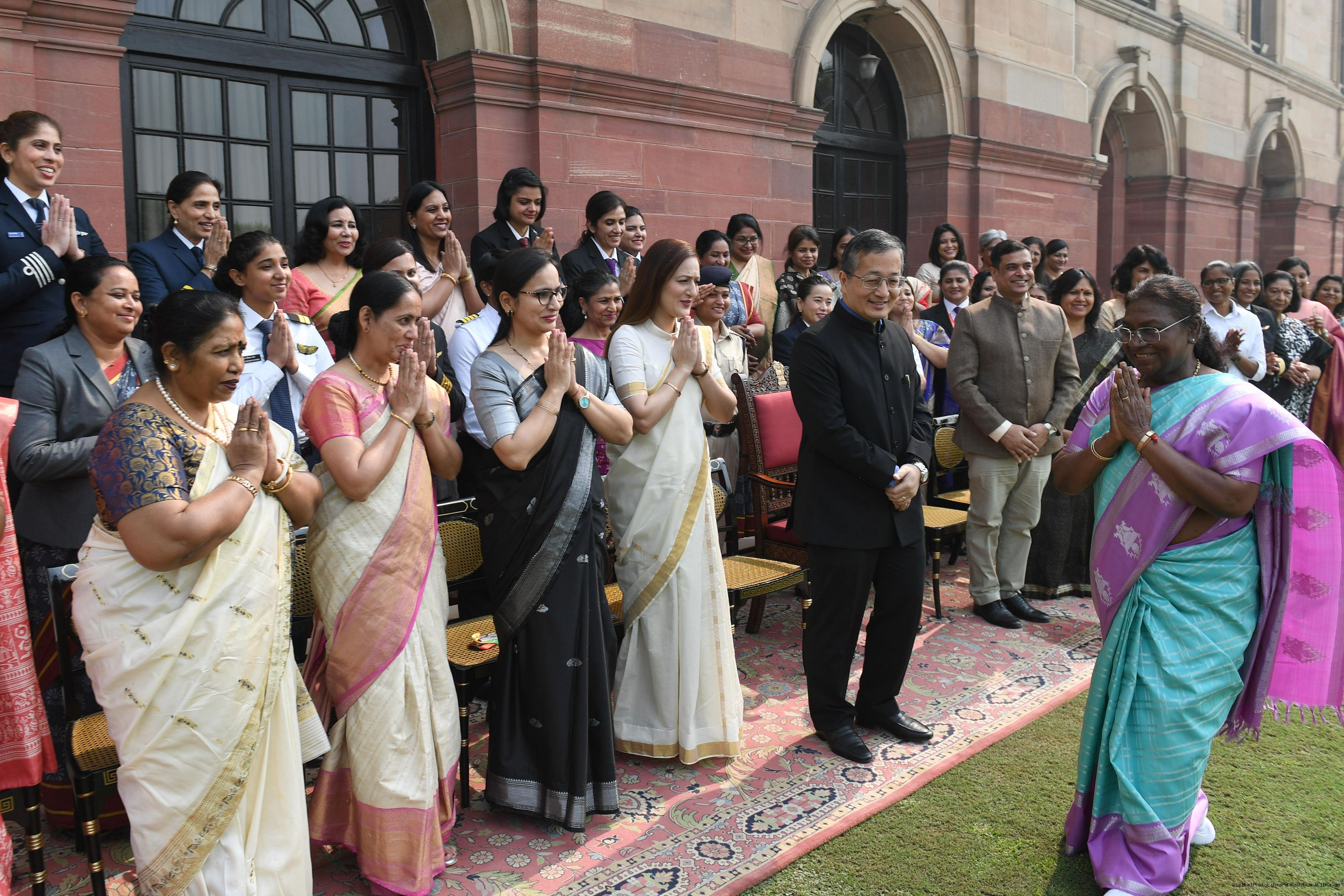 | Caption: | The President of India, Smt Droupadi Murmu interacted with a group of women achievers in the Indian Aviation Sector at Rashtrapati Bhavan on November 4, 2024. |