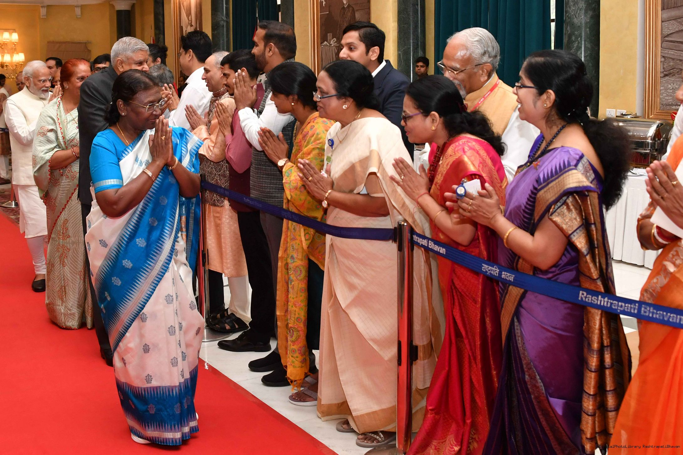| Caption: | The President of India, Smt. Droupadi Murmu hosted 'At Home' reception on the occasion of the 77th Independence Day, at Rashtrapati Bhavan Cultural Centre on August 15, 2023. |