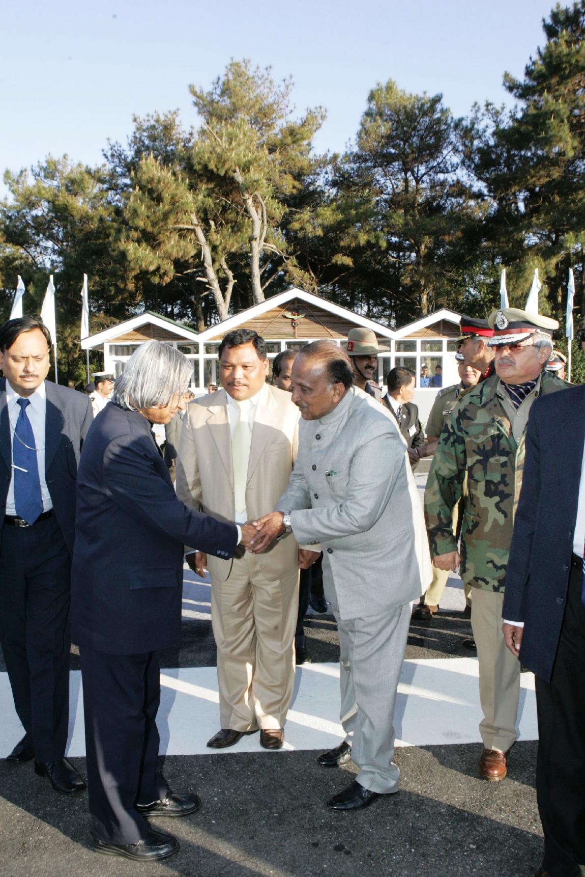 | Caption: | The President of India, Dr A P J Abdul Kalam being seen off by the Governor of Meghalaya, Shri M M Jacob from Shillong Airport in Maghalaya on March 16, 2007 |