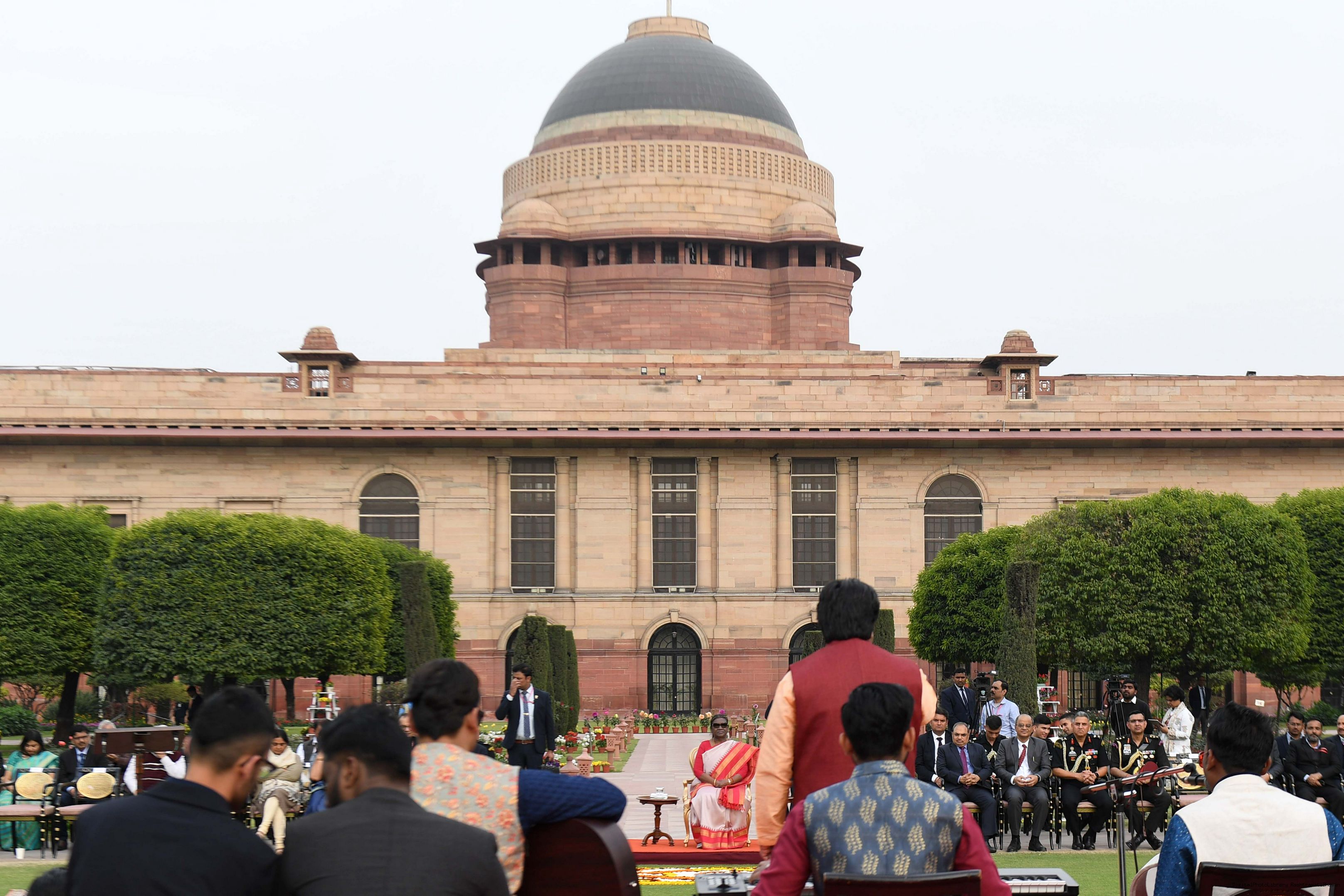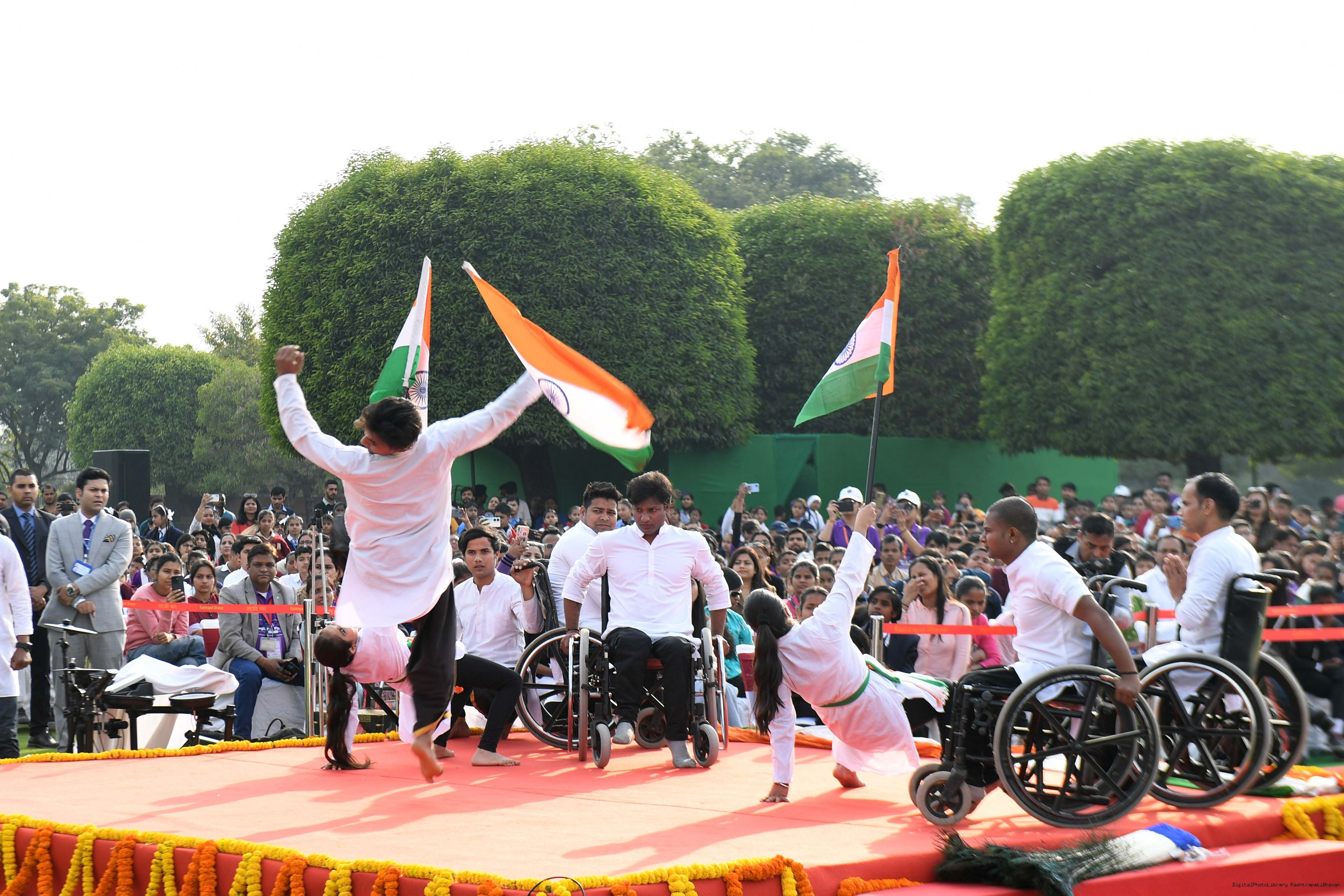 | Caption: | The President of India, Smt Droupadi Murmu witnessed the cultural performances by Divyangjan organised as part of the 'Purple Fest', after the cultural event, the President met and interacted with Divyangjan at Rashtrapati Bhavan on February 26, 2024. |