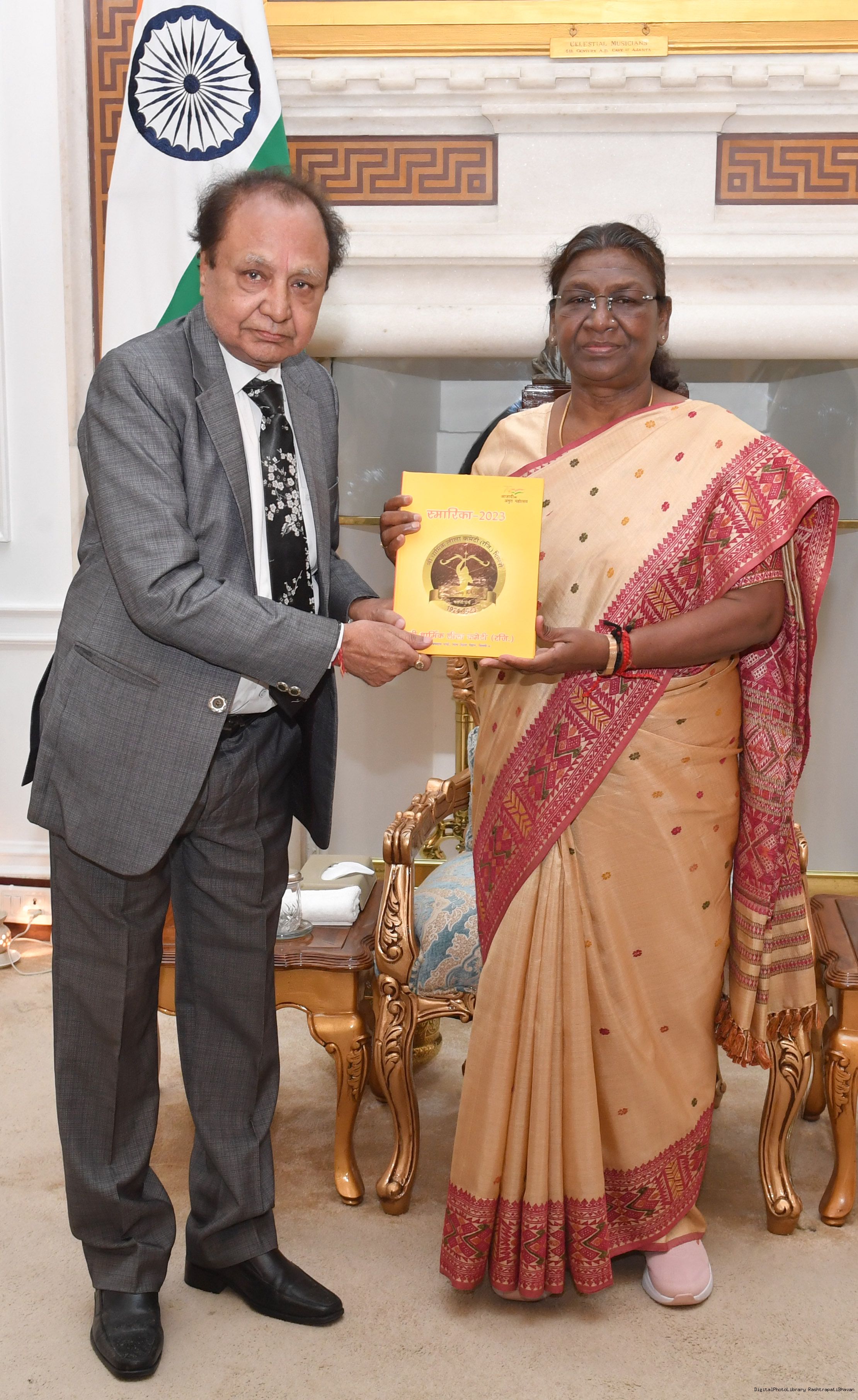| Caption: | Shri Dhiraj Dhar Cupta, General Secretary, Shri Dharmic Leela Committee along with others meeting with the President of India, Smt. Droupadi Murmu at Rashtrapati Bhavan on October 17, 2023. |
