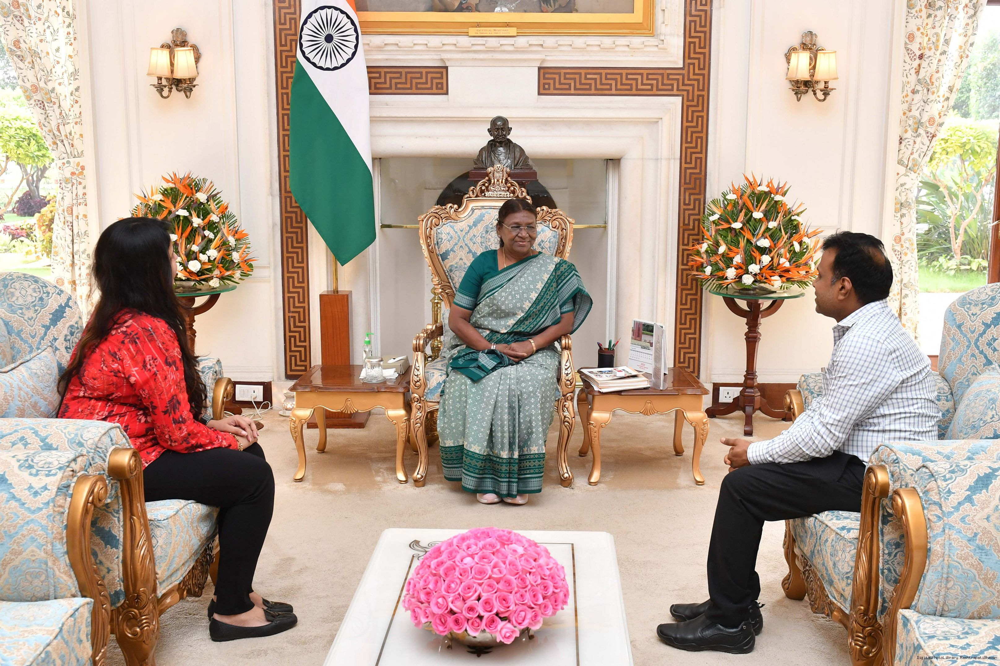 | Caption: | Smt. Kinjal Desai along with Shri Sunil Kumar Patwari meeting with the President of India, Smt. Droupadi Murmu at Rashtrapati Bhavan on August 18, 2023. |