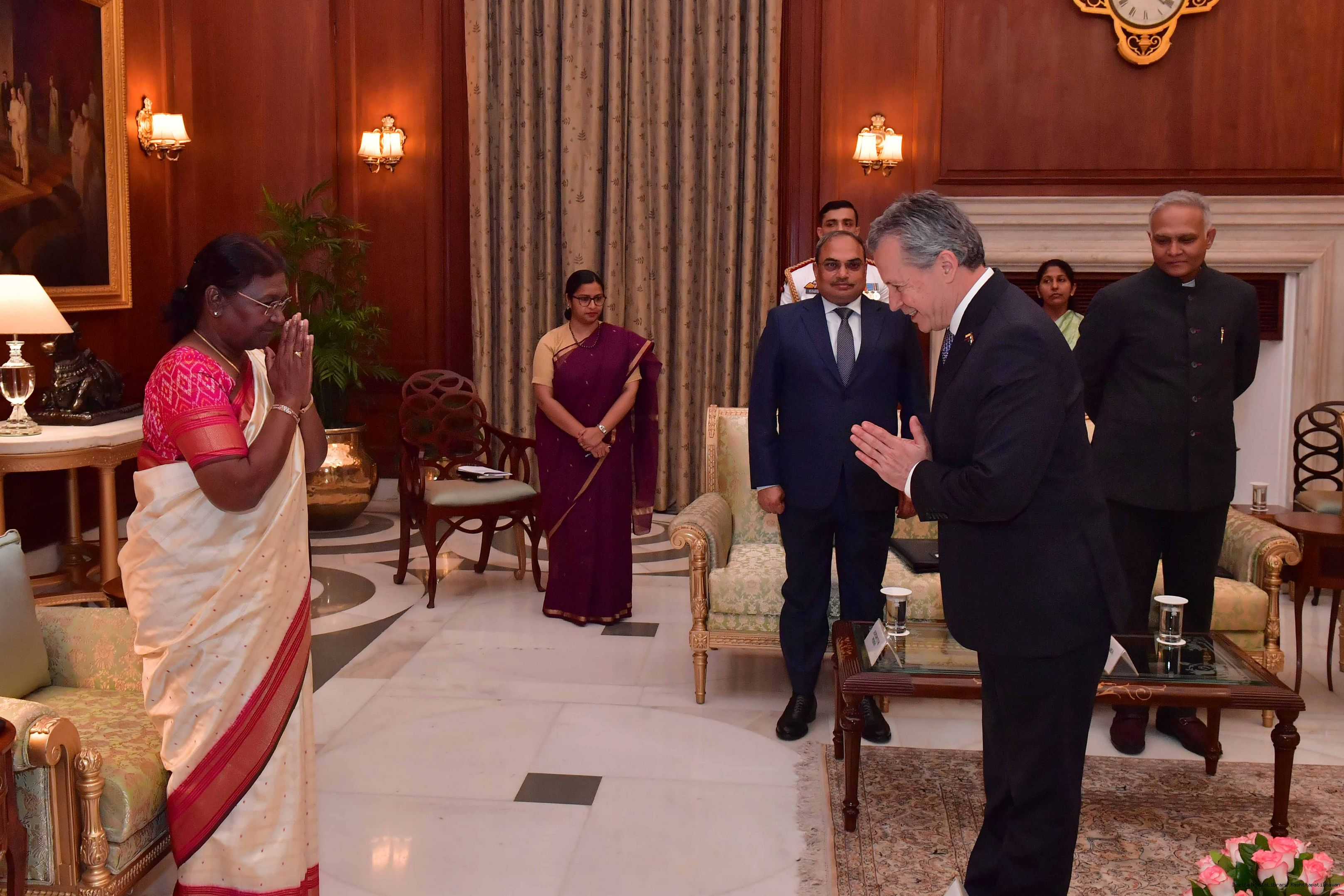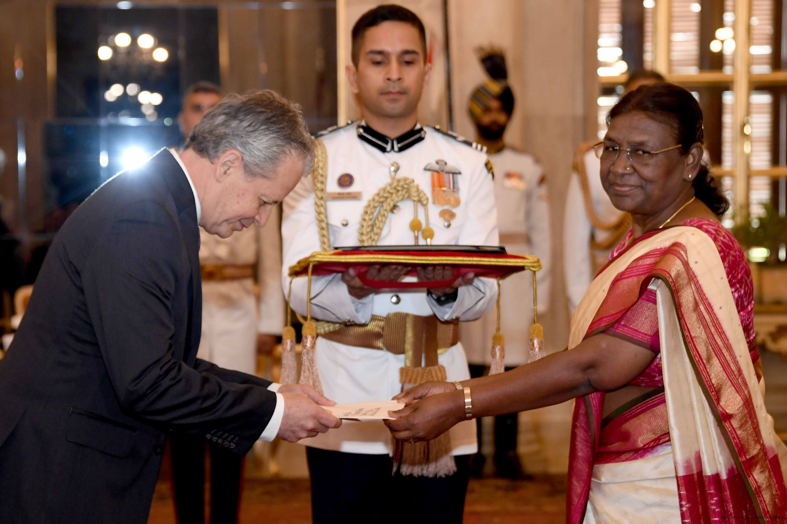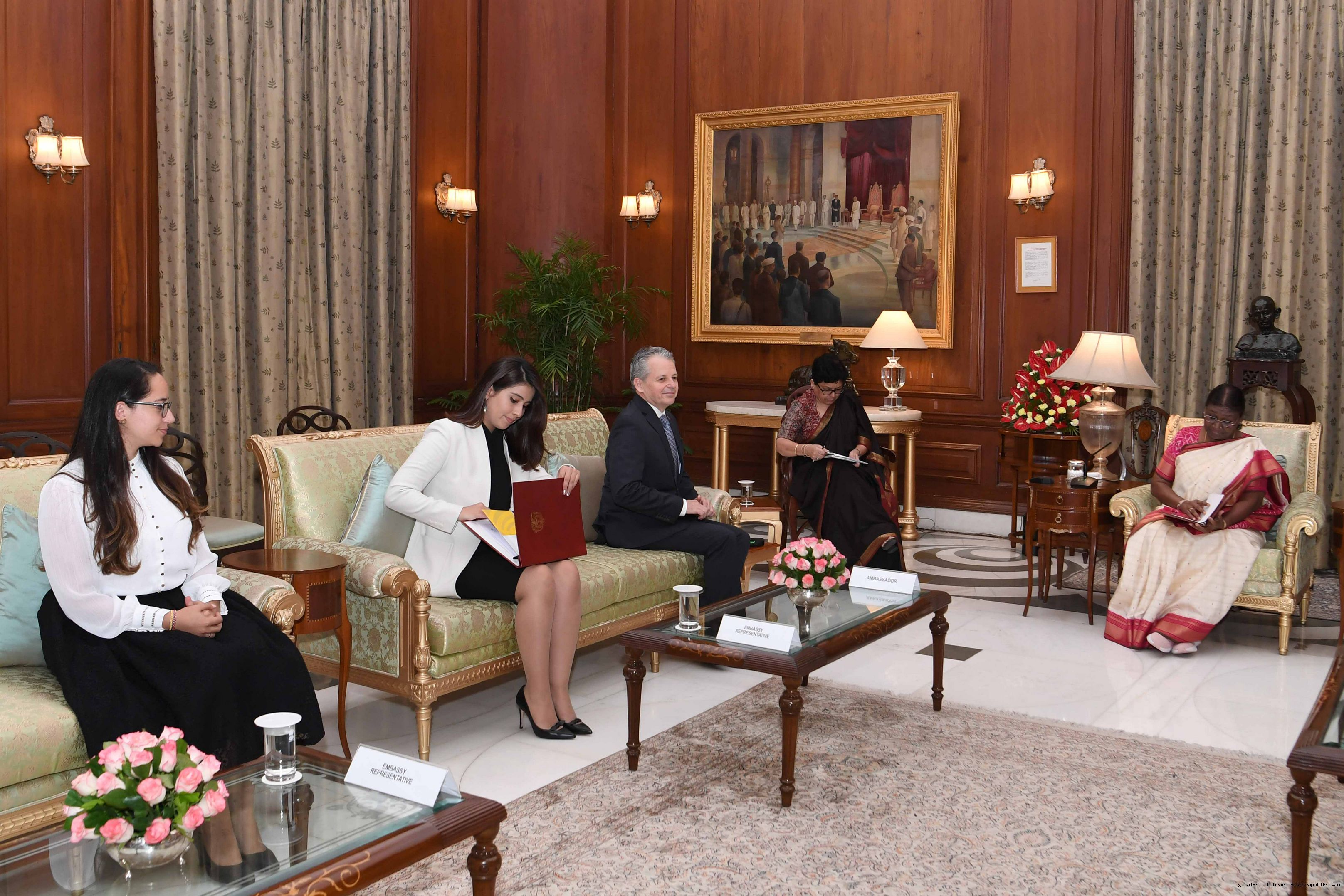 | Caption: | The Ambassador-designate of the Republic of Colombia, H.E. Mr. Victor Hugo Echeverri Jaramillo presenting his credentials to the President of India, Smt Droupadi Murmu at Rashtrapati Bhavan in New Delhi on August 21, 2023. |