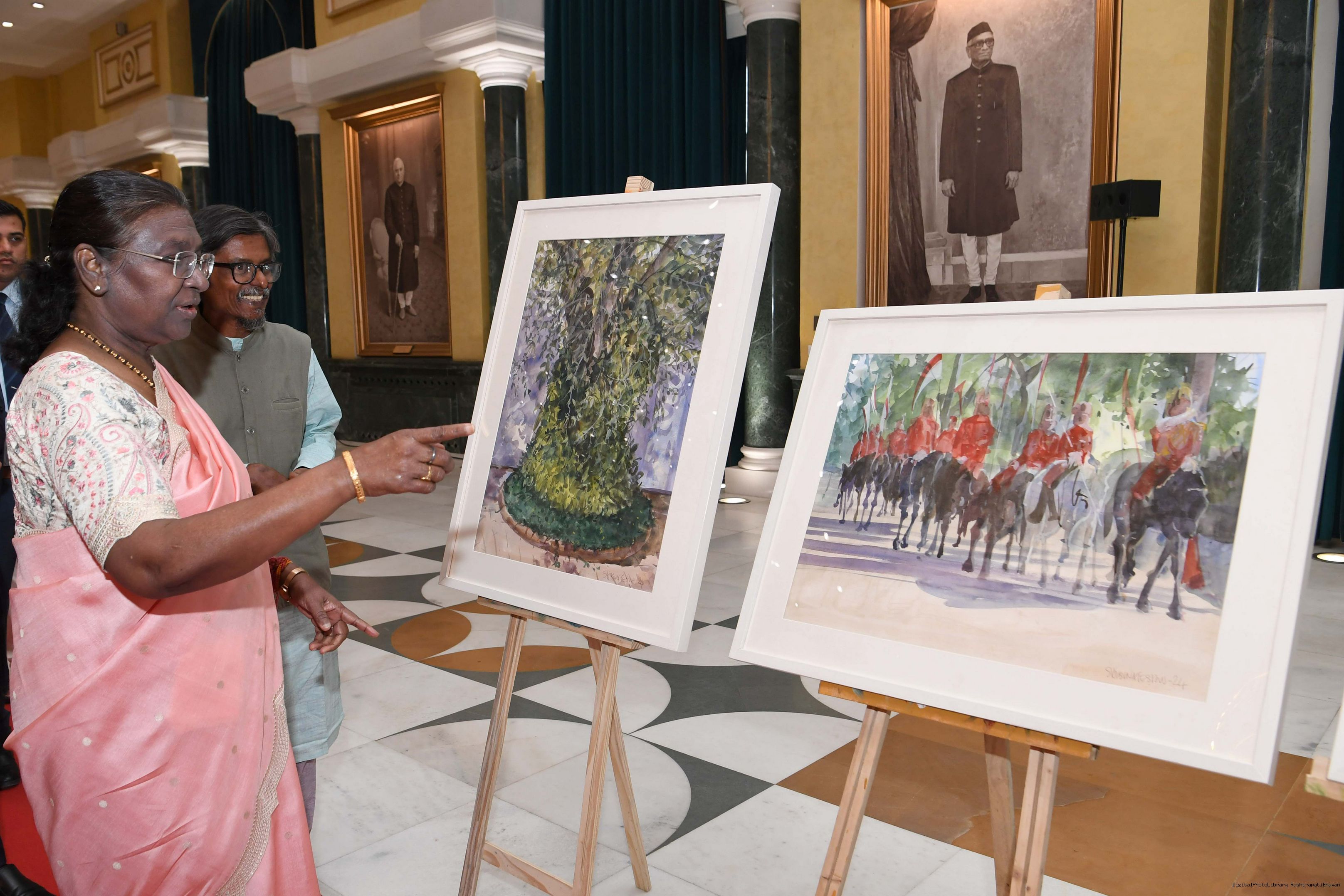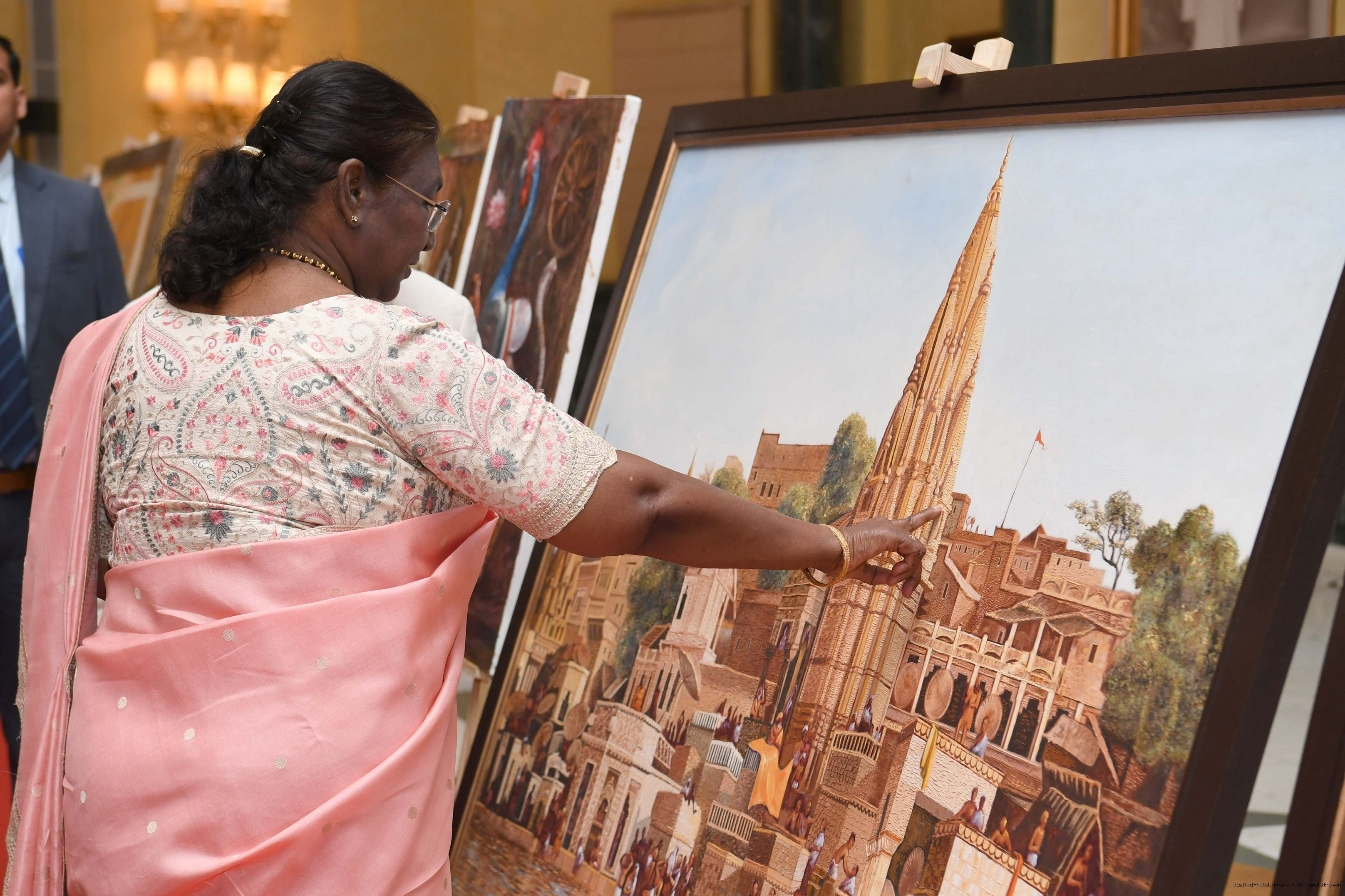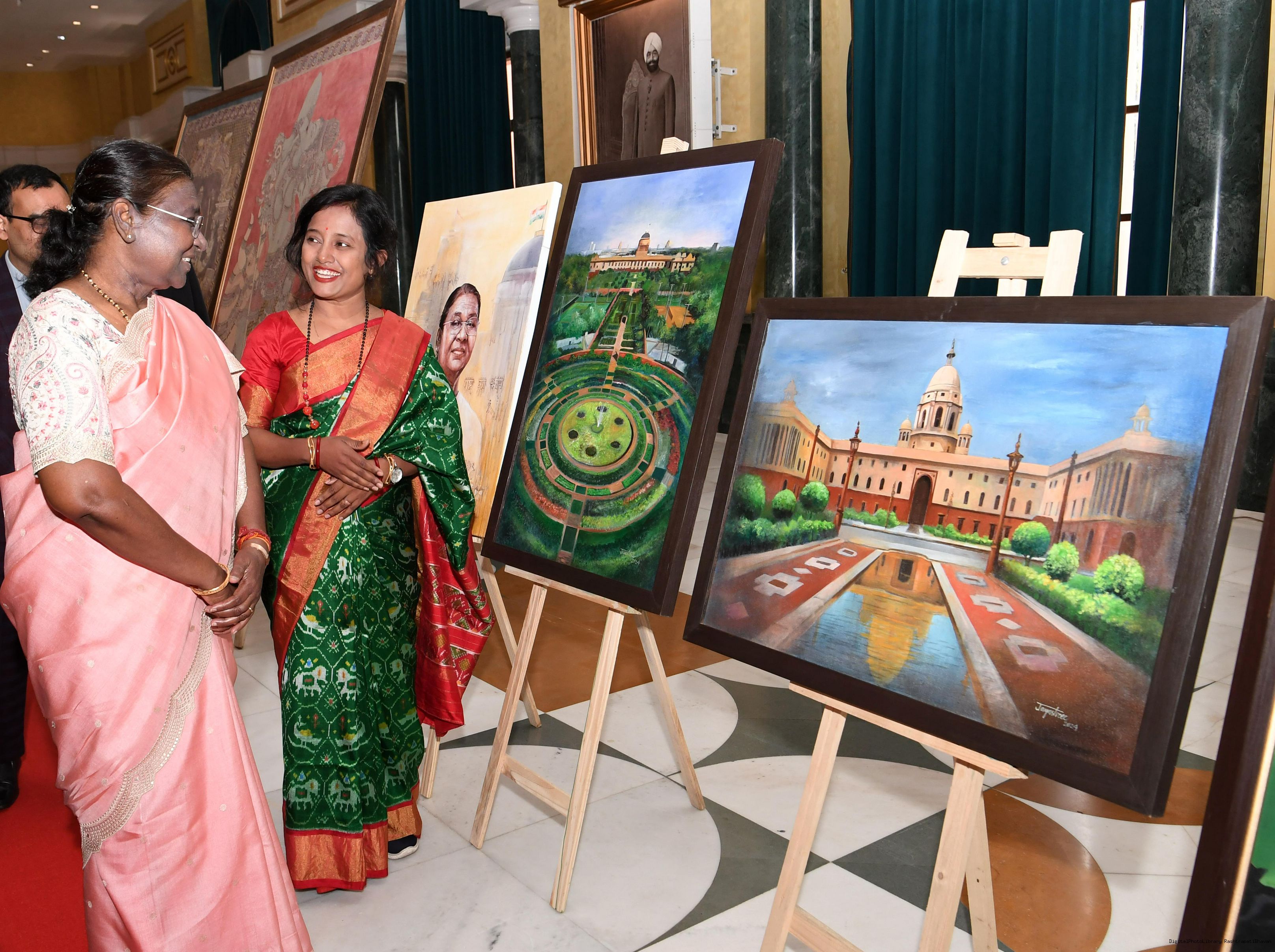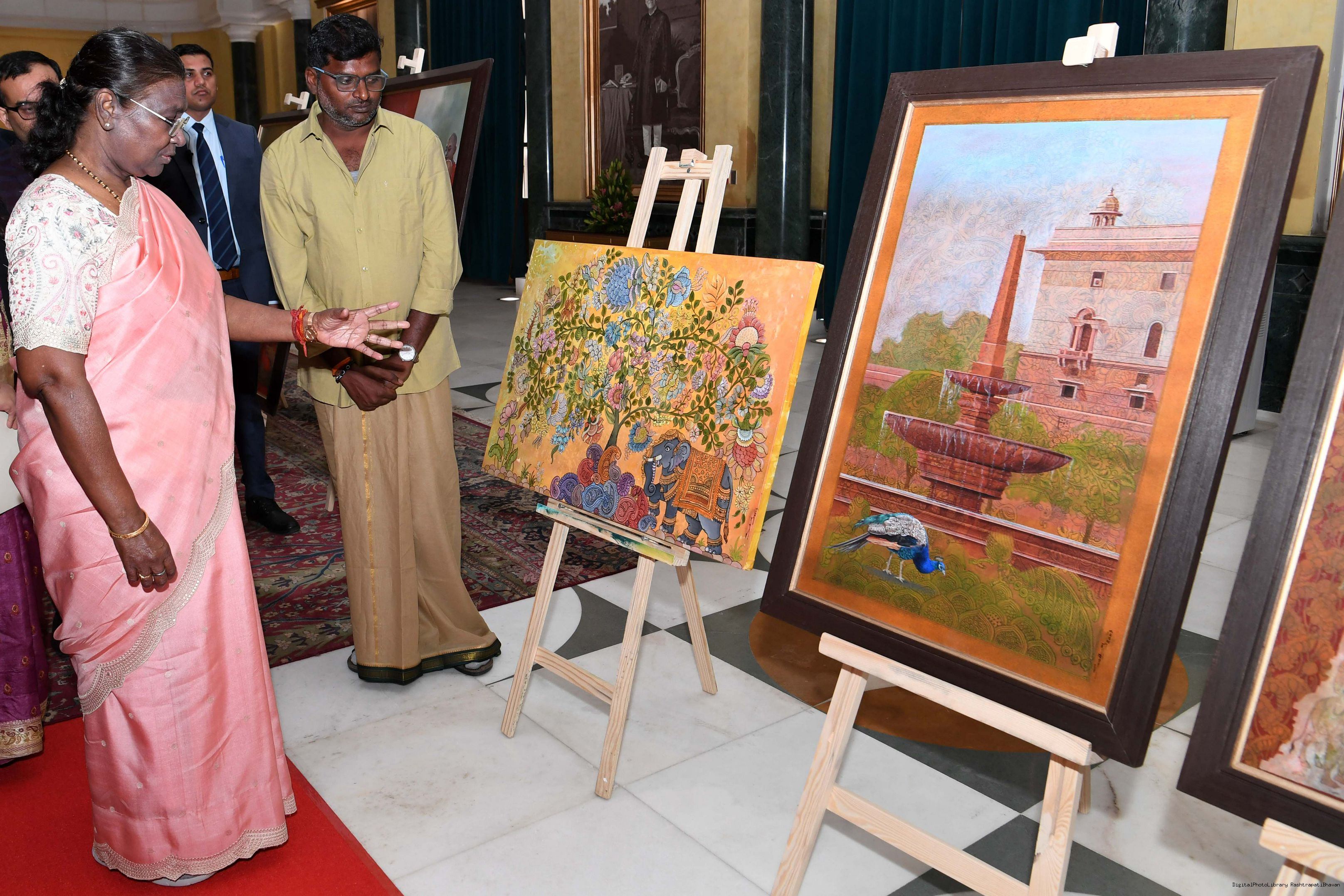 | Caption: | The President of India, Smt Droupadi Murmu witnessed an Art Exhibition at Rashtrapati Bhavan Cultural Centre on February 27, 2024. |