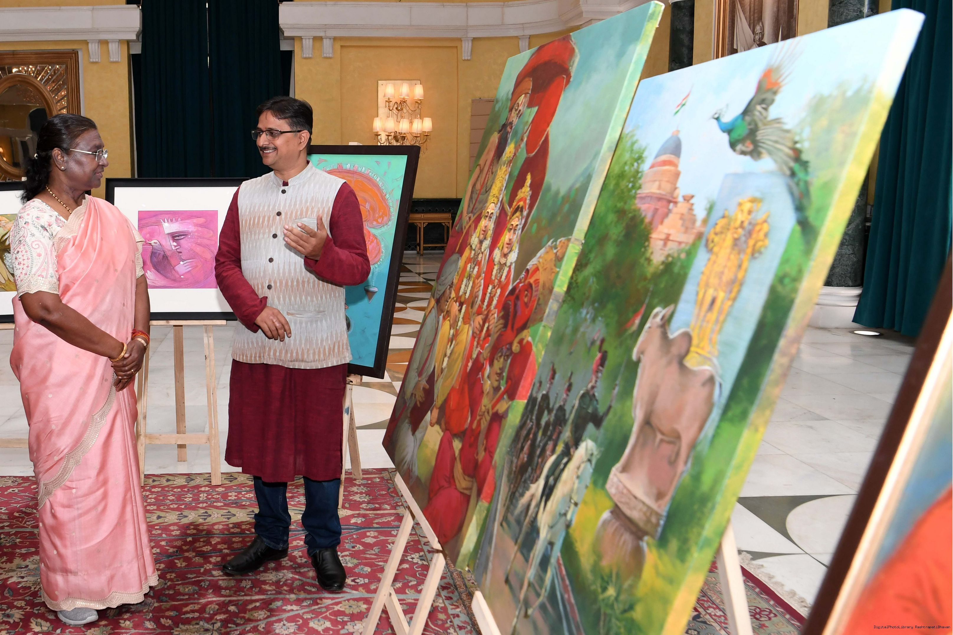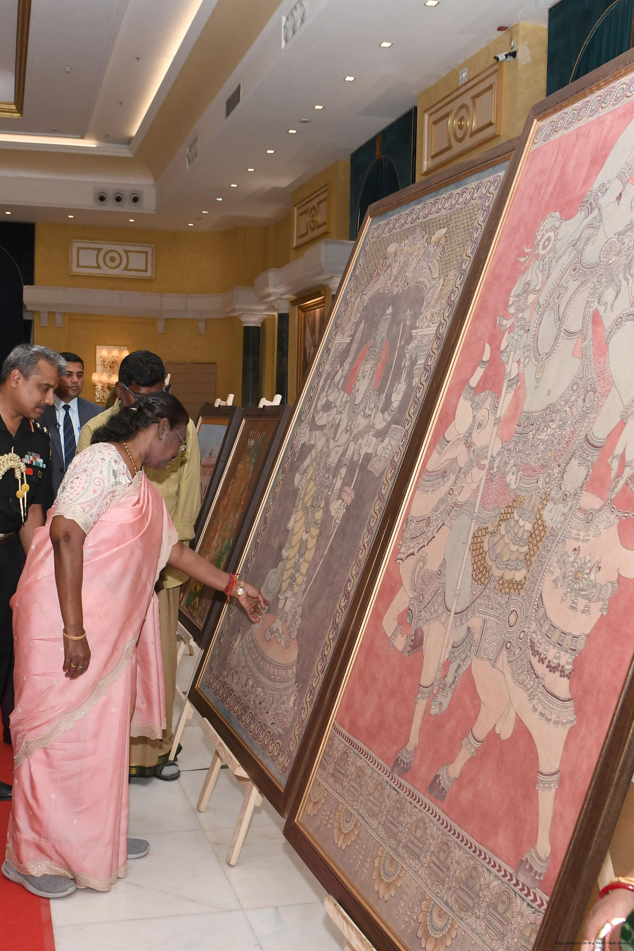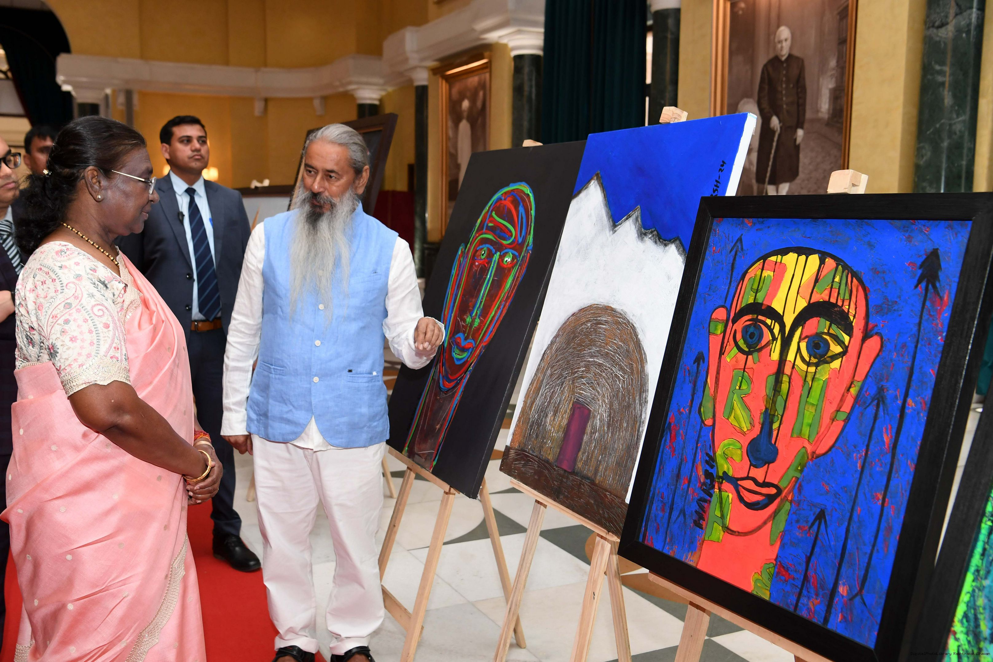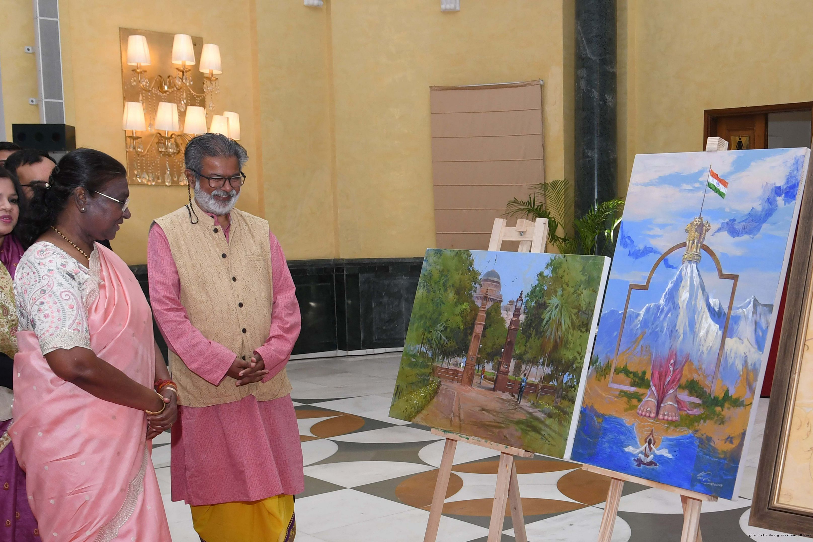 | Caption: | The President of India, Smt Droupadi Murmu witnessed an Art Exhibition at Rashtrapati Bhavan Cultural Centre on February 27, 2024. |