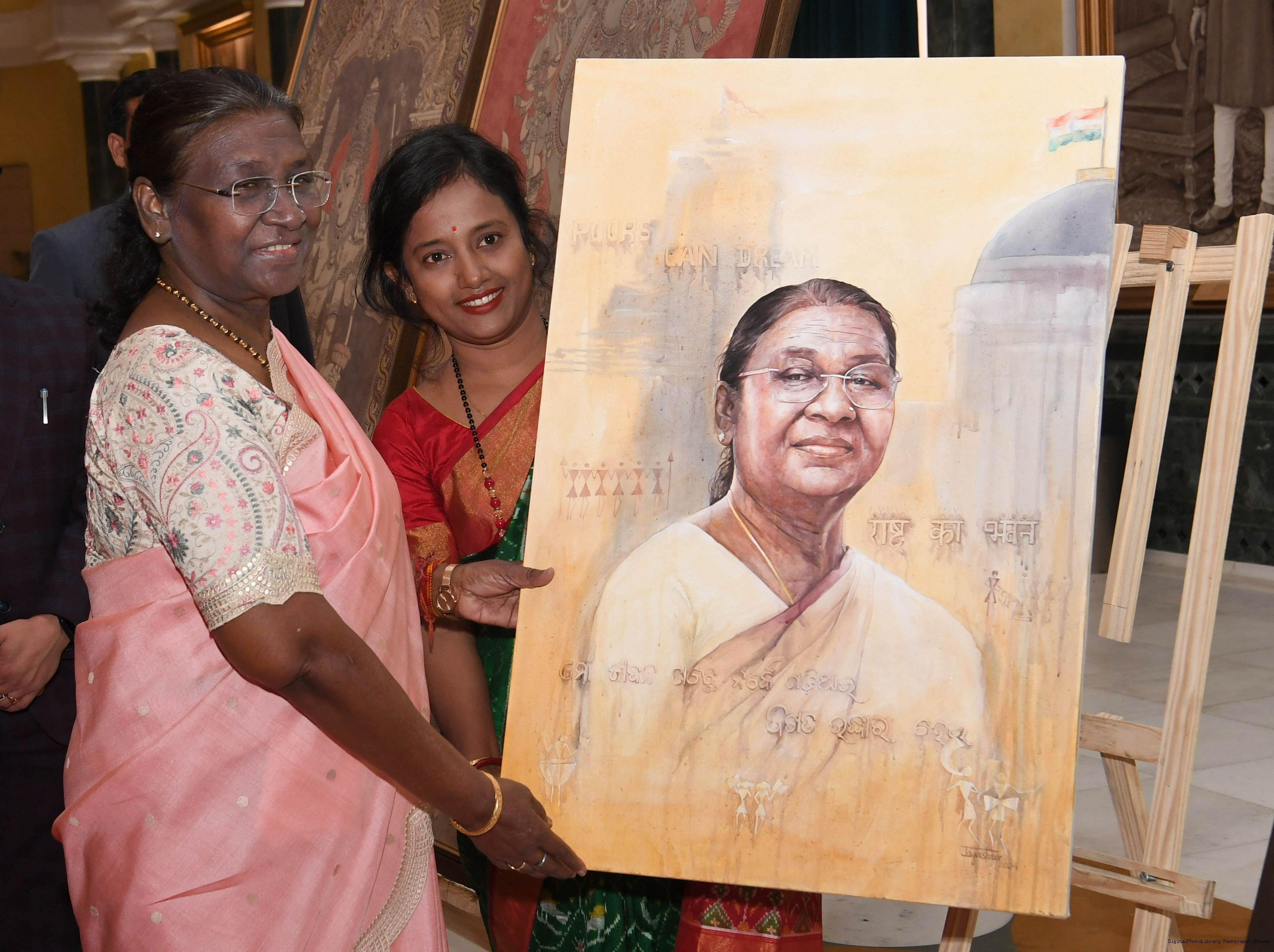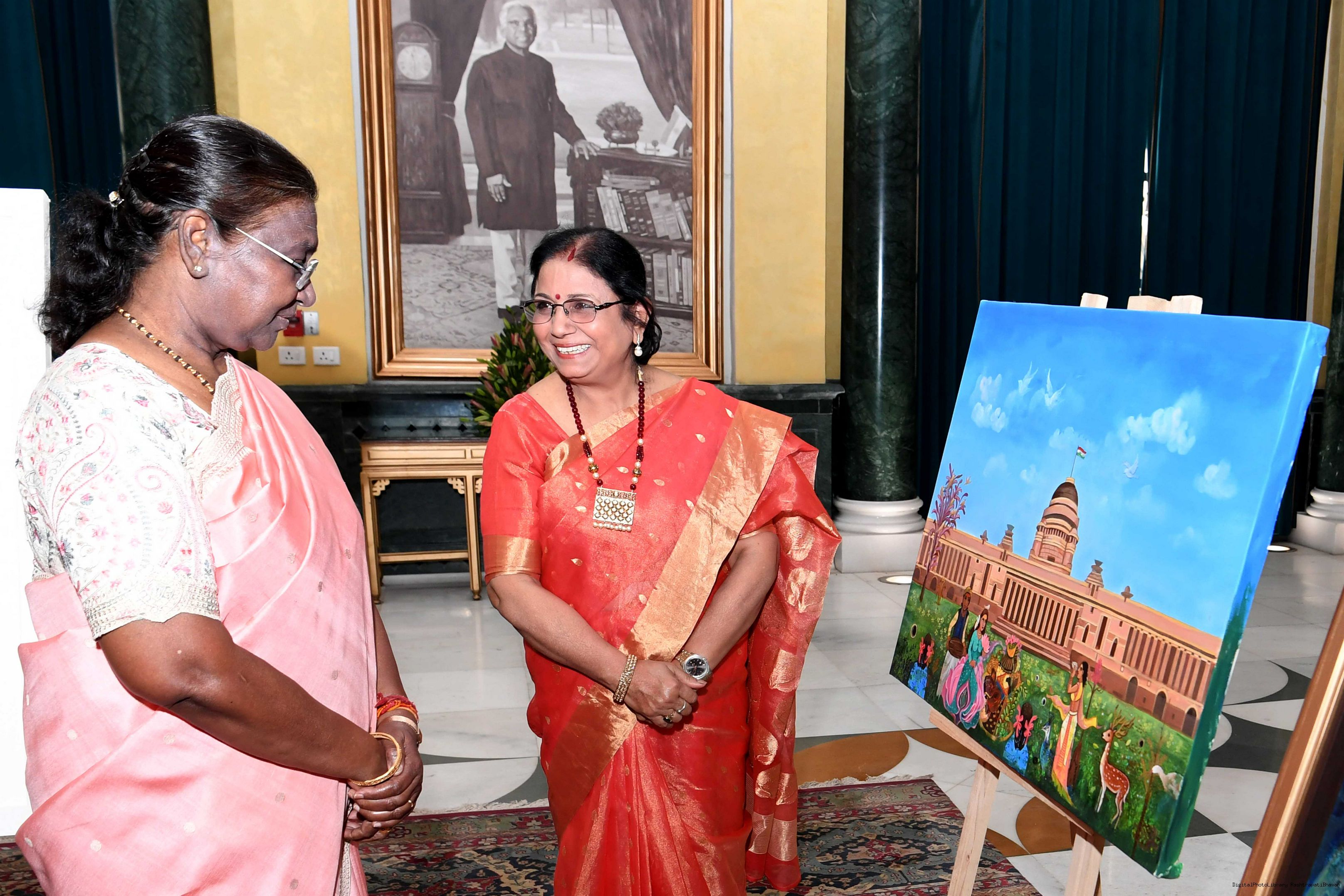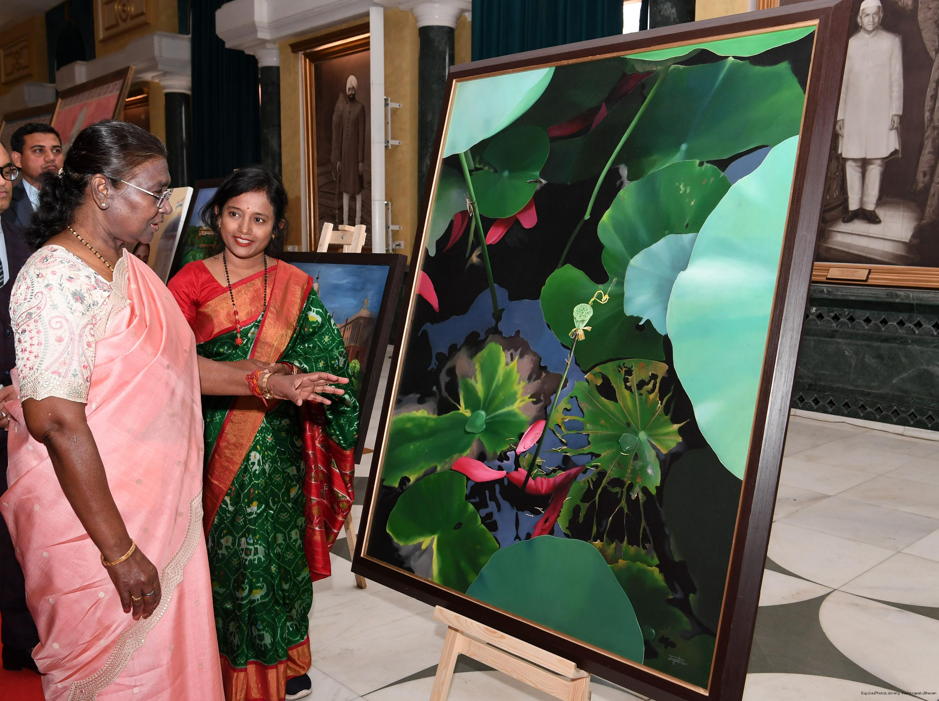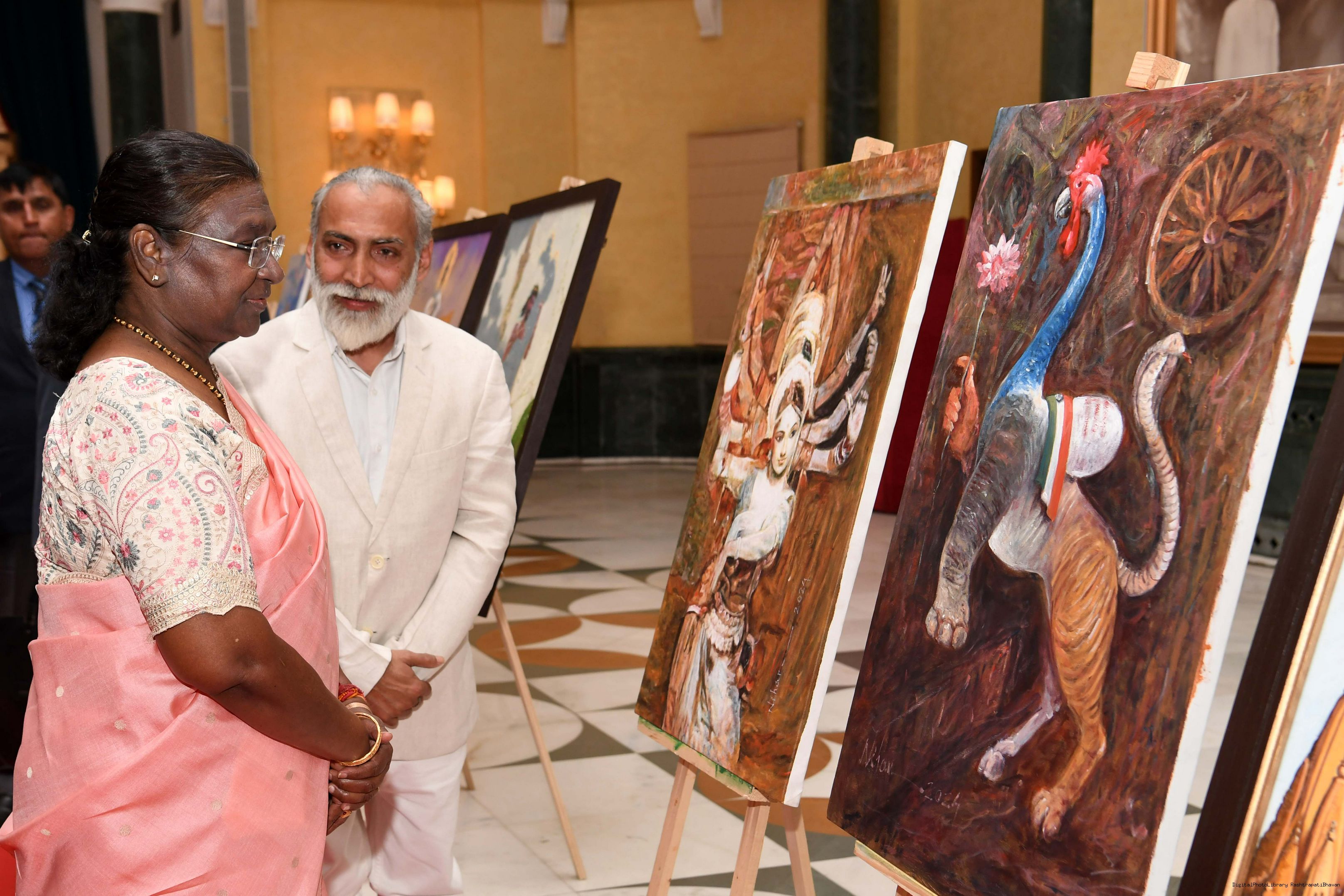 | Caption: | The President of India, Smt Droupadi Murmu witnessed an Art Exhibition at Rashtrapati Bhavan Cultural Centre on February 27, 2024. |