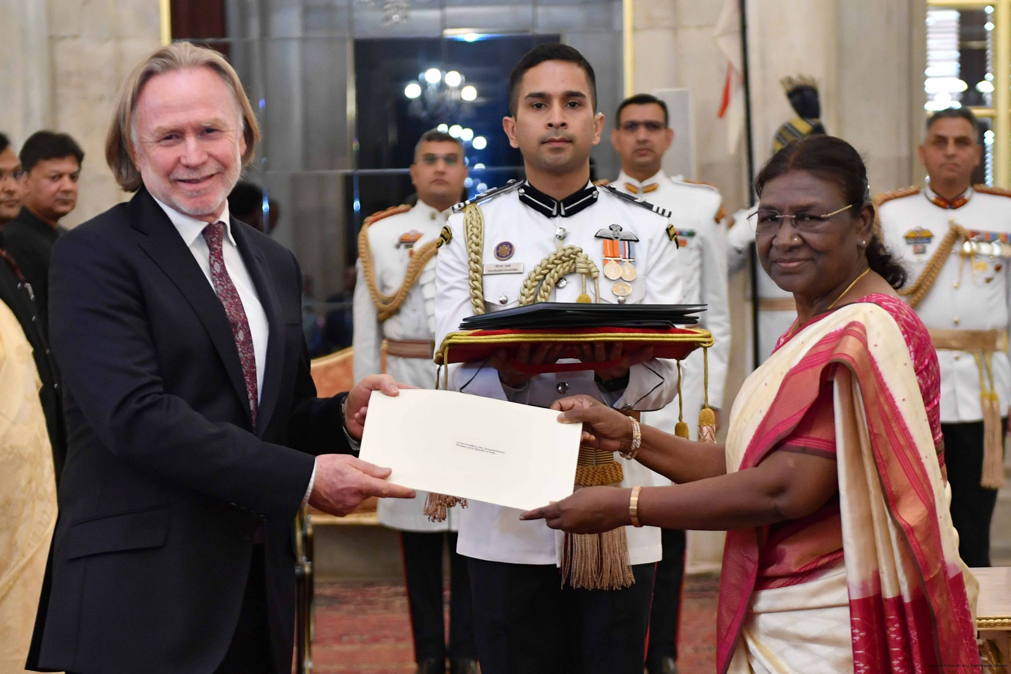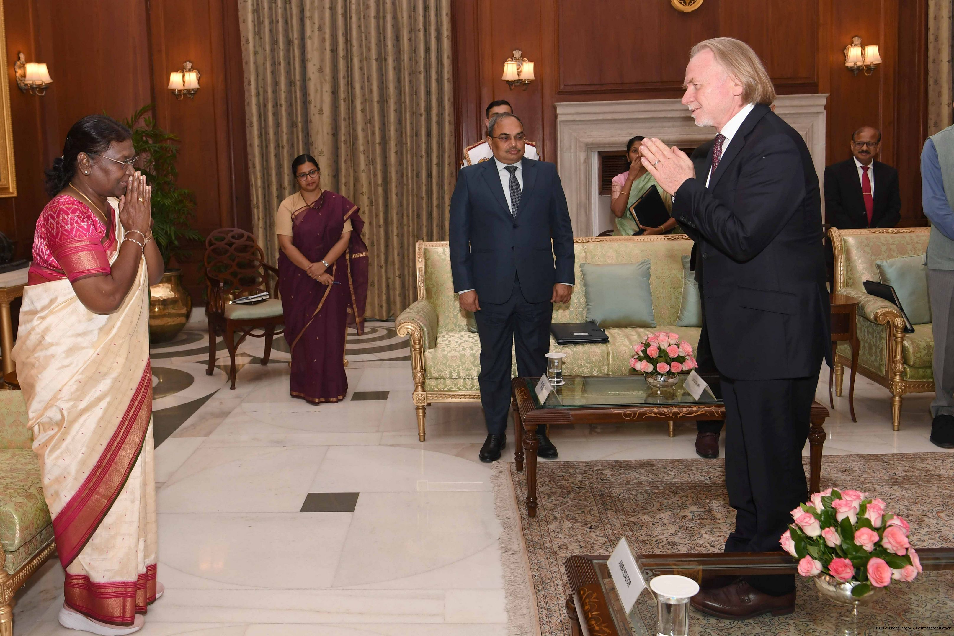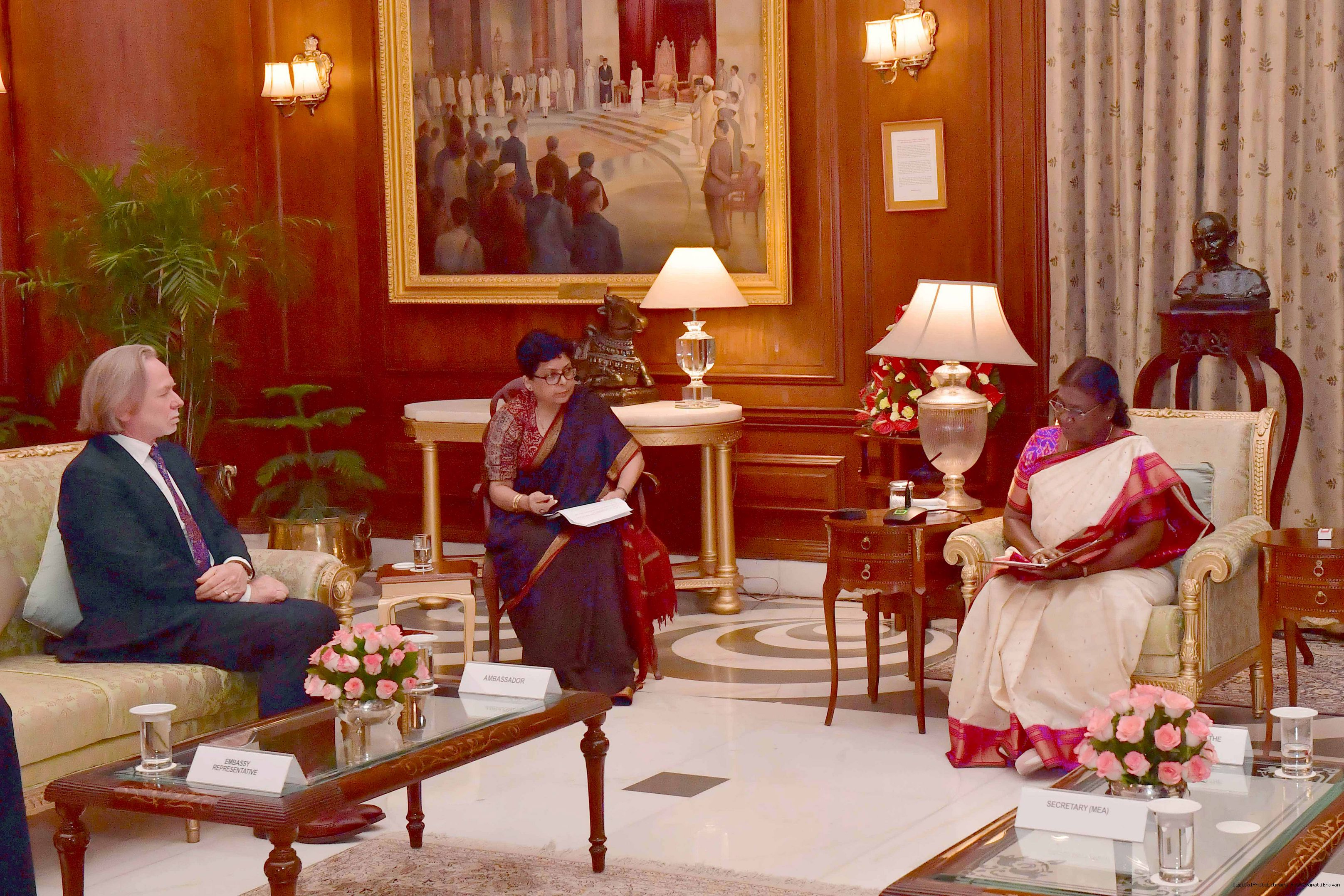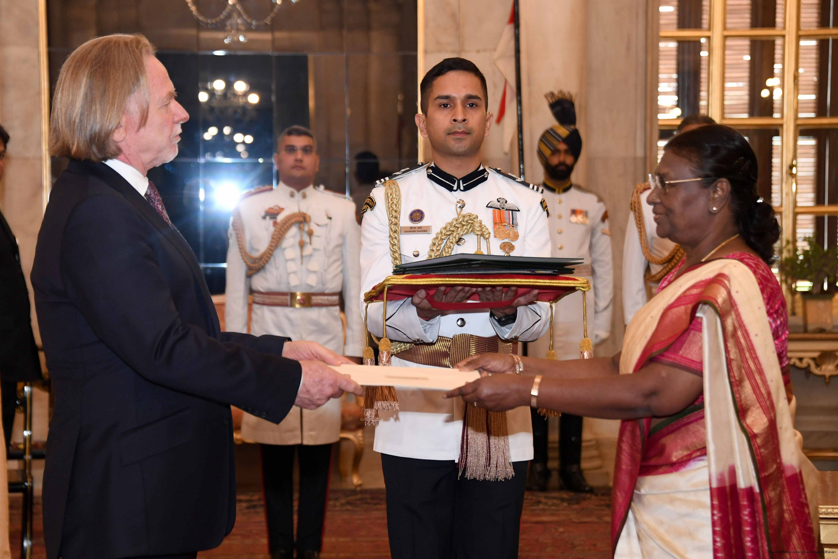 | Caption: | The High Commissioner-designate of Australia, H.E. Mr. Philip Victor Green presenting his credentials to the President of India, Smt Droupadi Murmu at Rashtrapati Bhavan in New Delhi on August 21, 2023. |