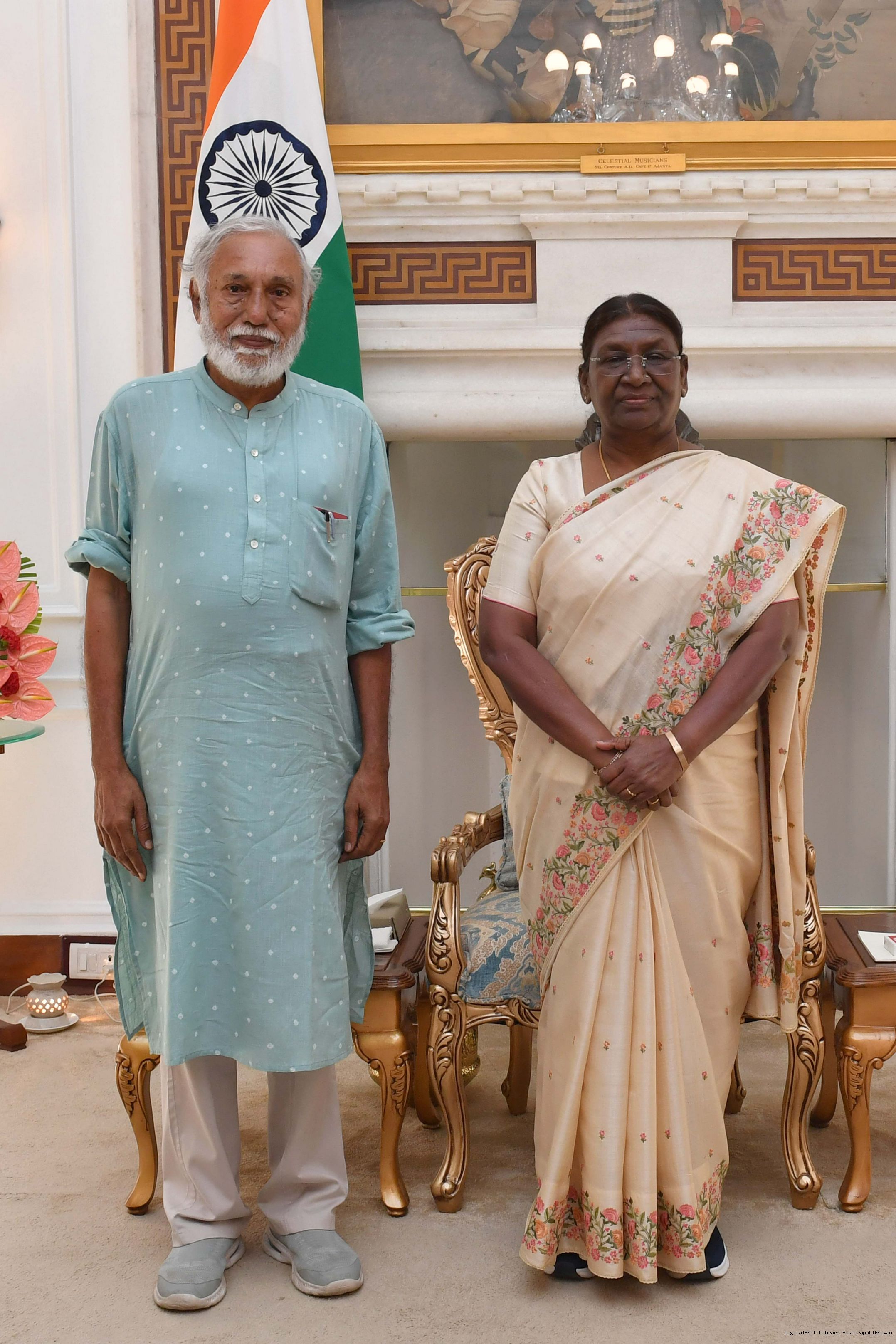 | Caption: | Prof. Jayadhir Thirumal Rao, Adya Kala Founder Trustee, Adi Dhwani Foundation meeting with the President of India, Smt. Droupadi Murmu at Rashtrapati Bhavan on August 25, 2023. |