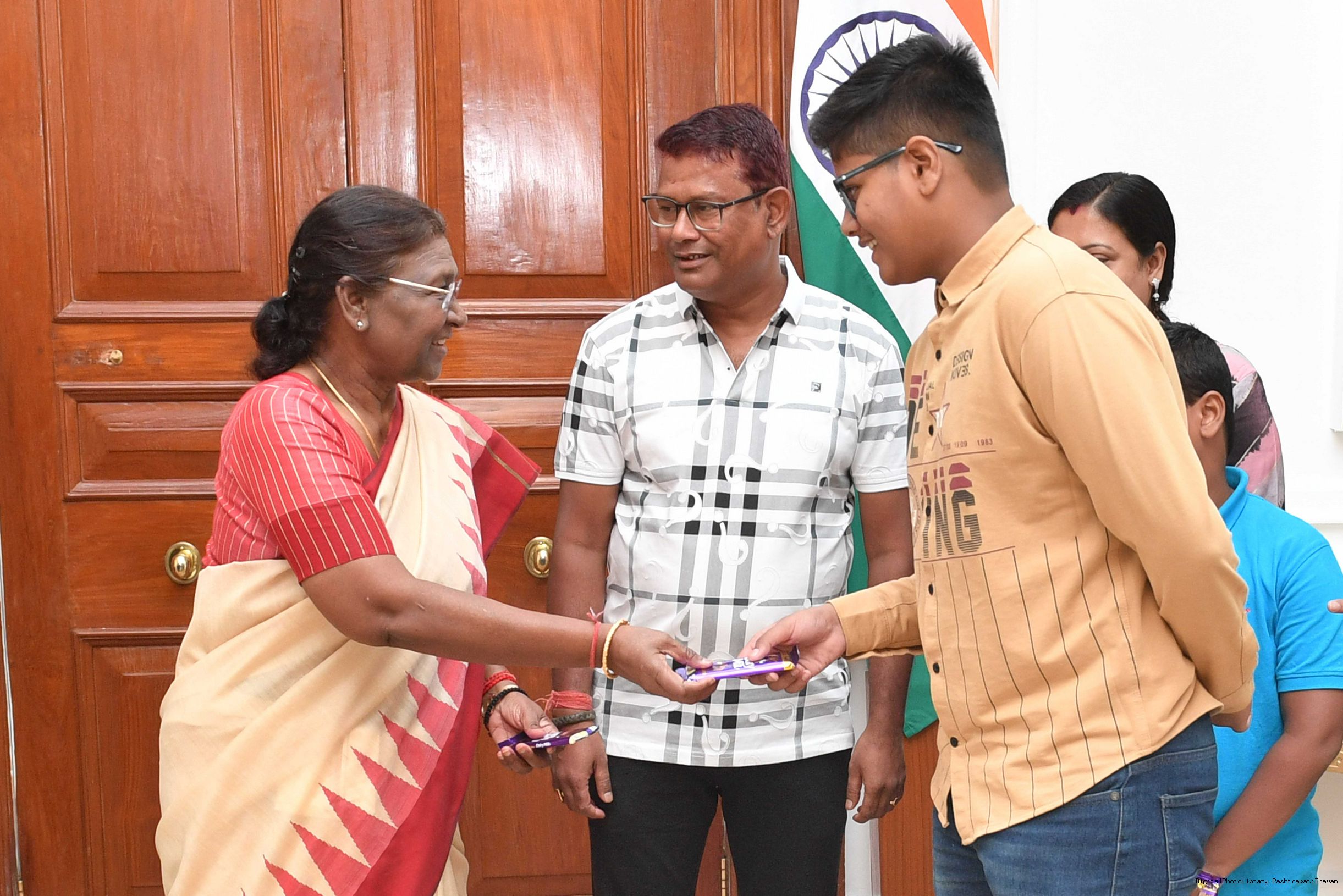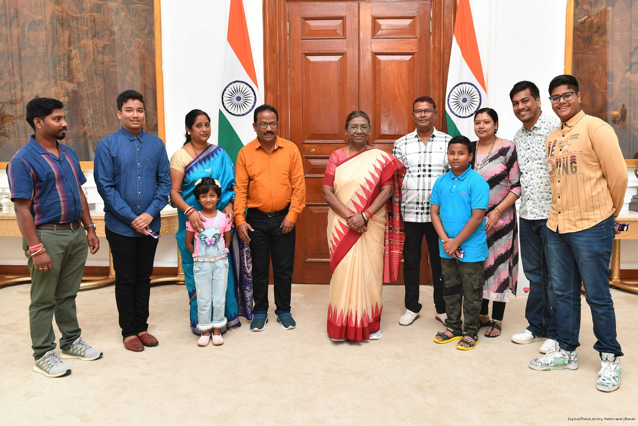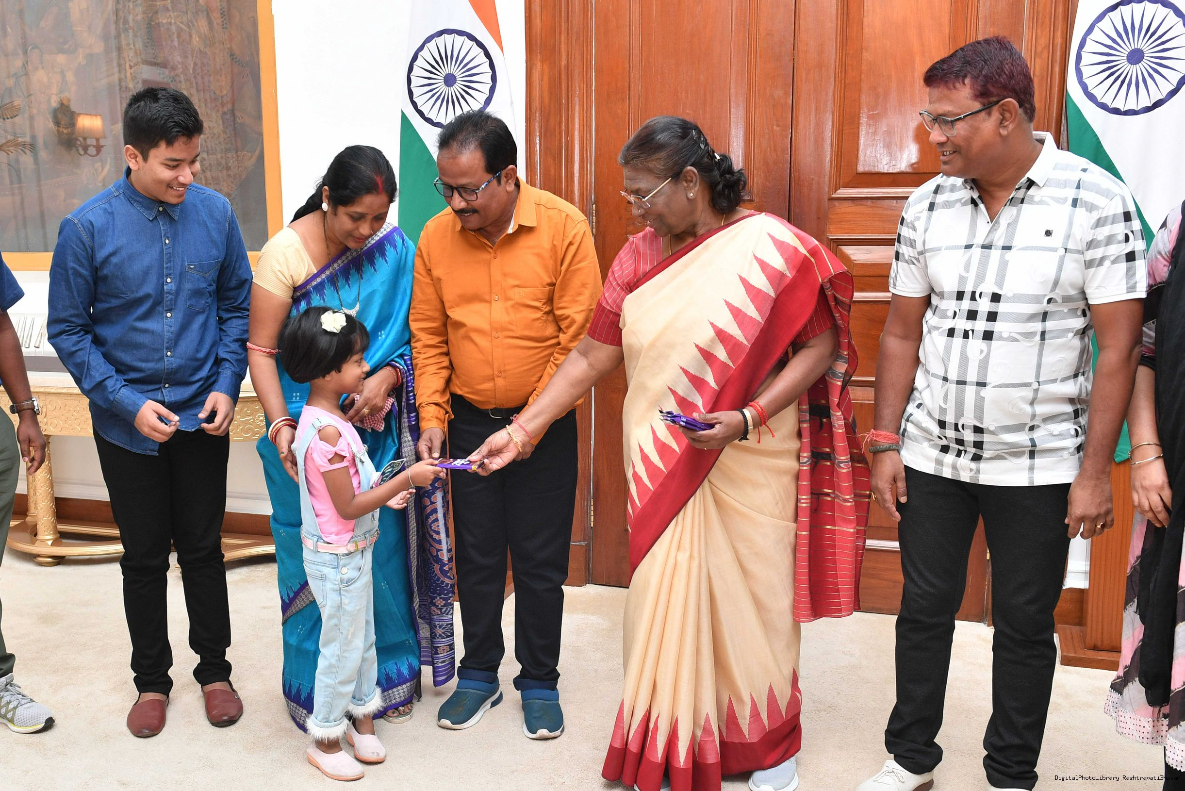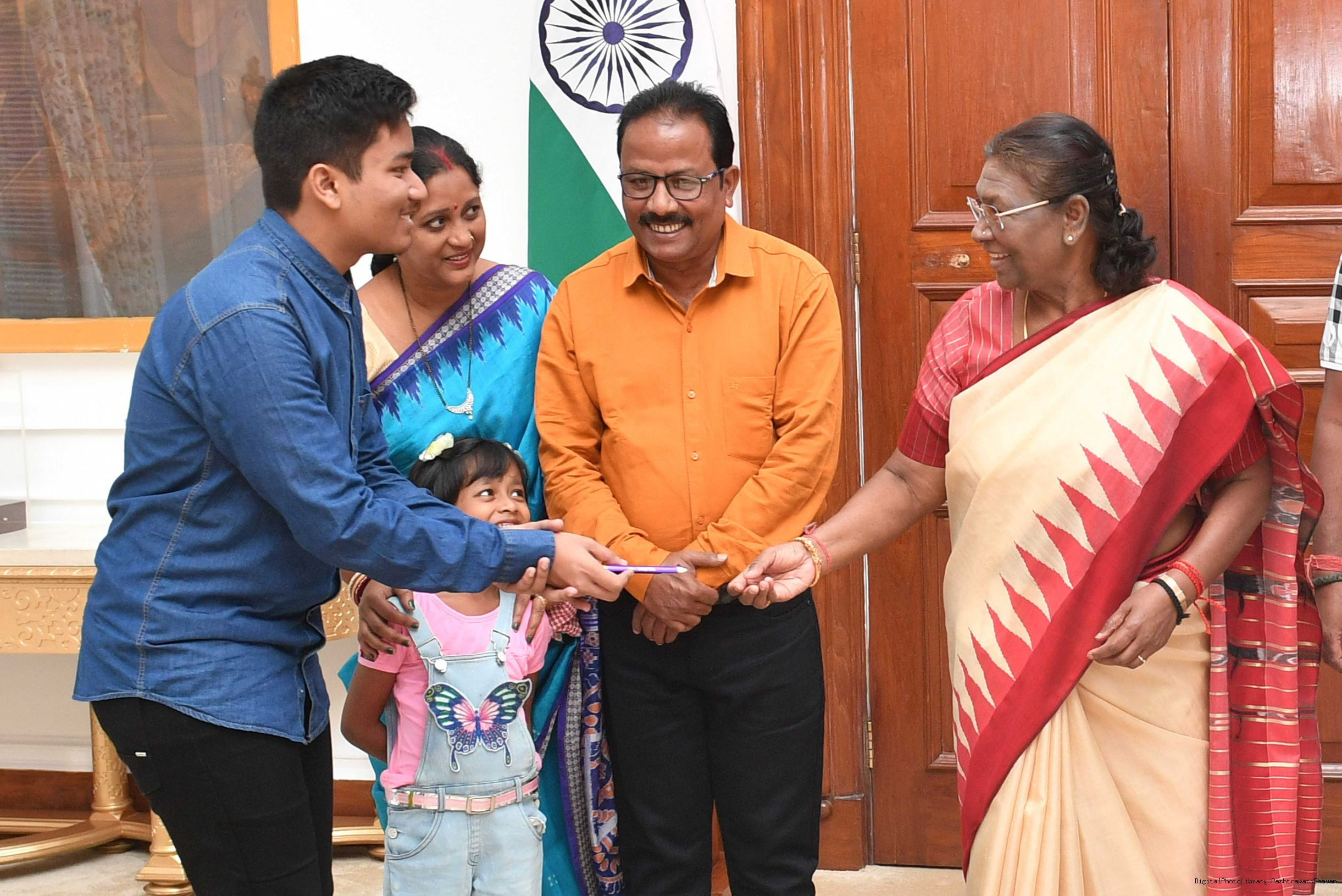| Caption: | Shri Anurag Kumar Gupta from Rairangpur along with others meeting with the President of India, Smt. Droupadi Murmu at Rashtrapati Bhavan on October 17, 2023. |