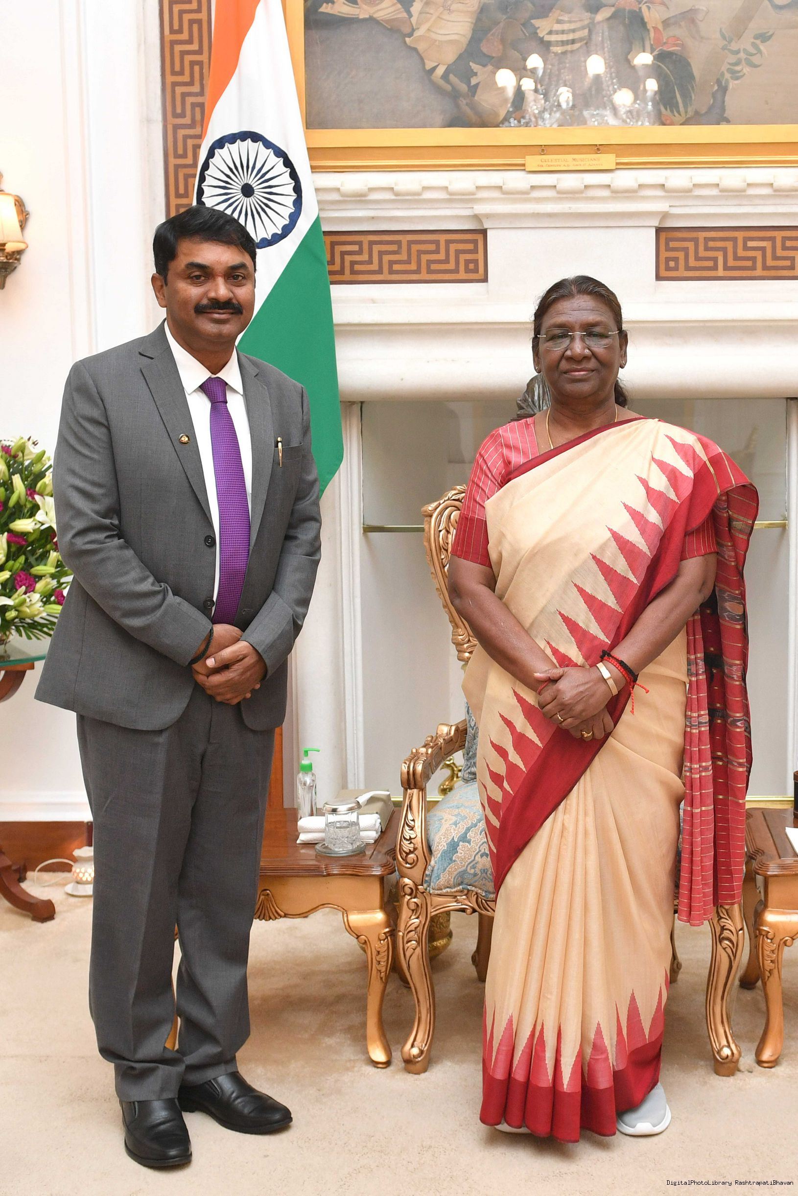 | Caption: | The President of india Smt. Dropadi Murmu, with Dr. G. Satheesh Reddy, at Rashtrapati Bhawan on October 23, 2023. |