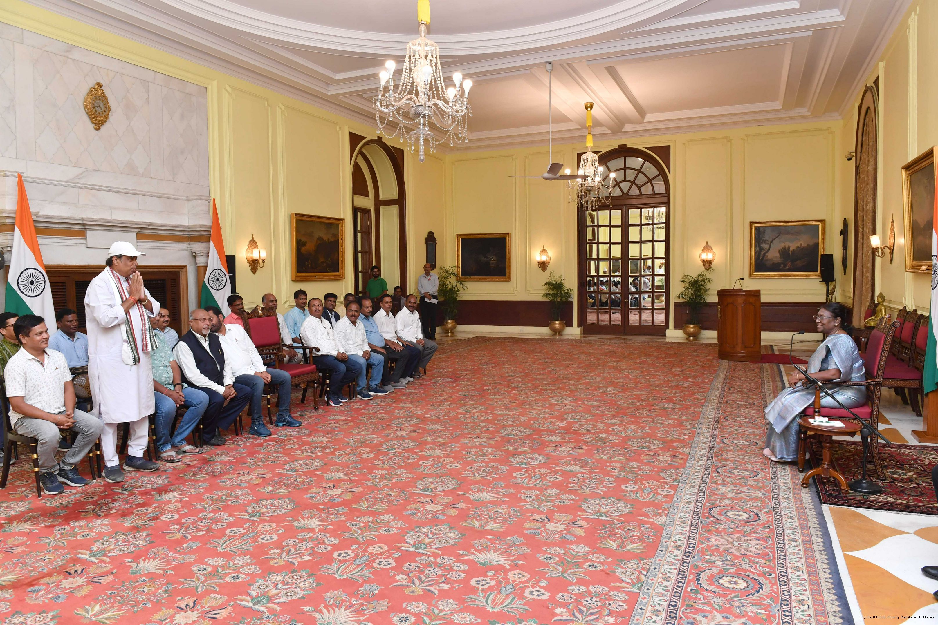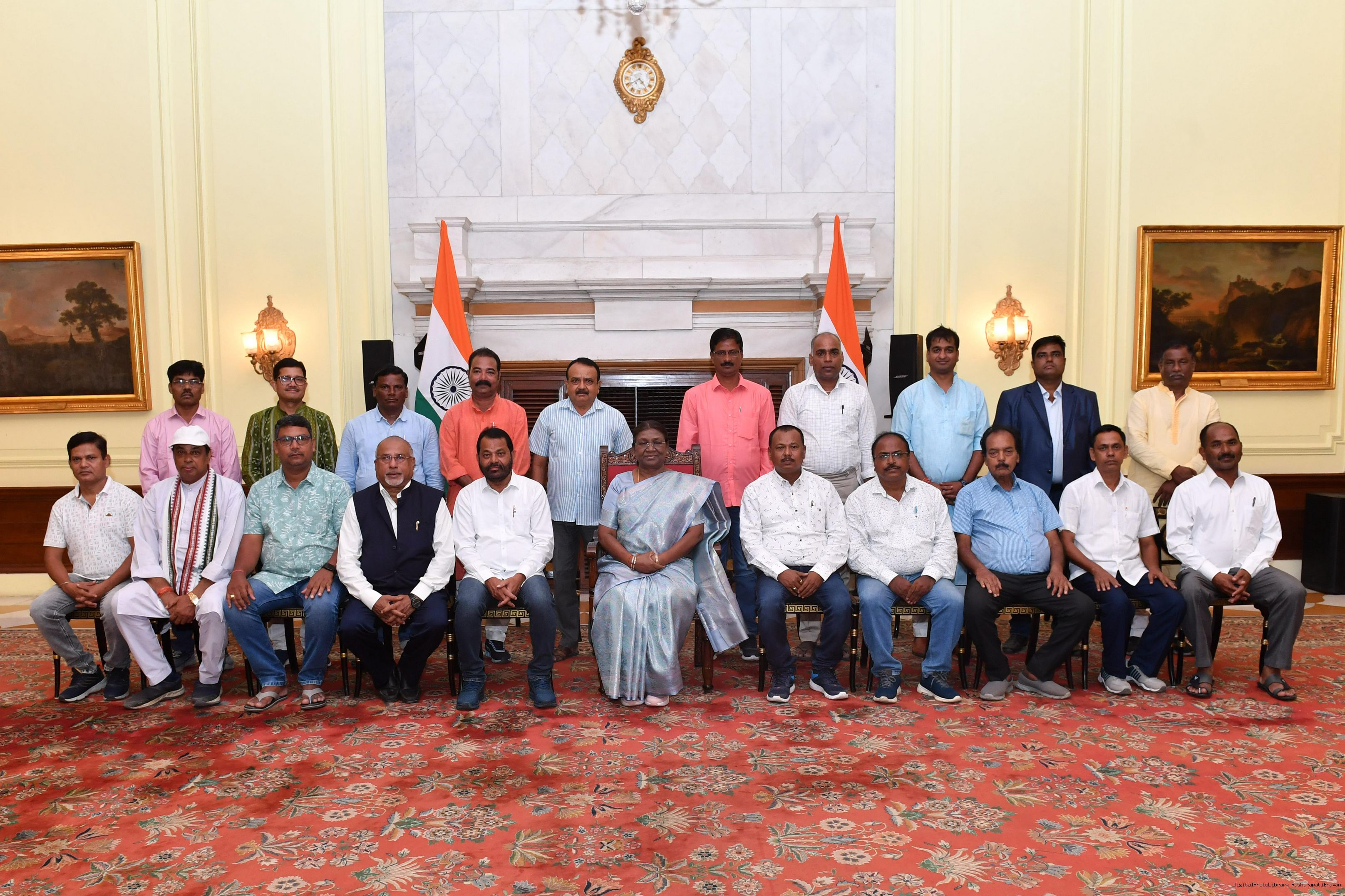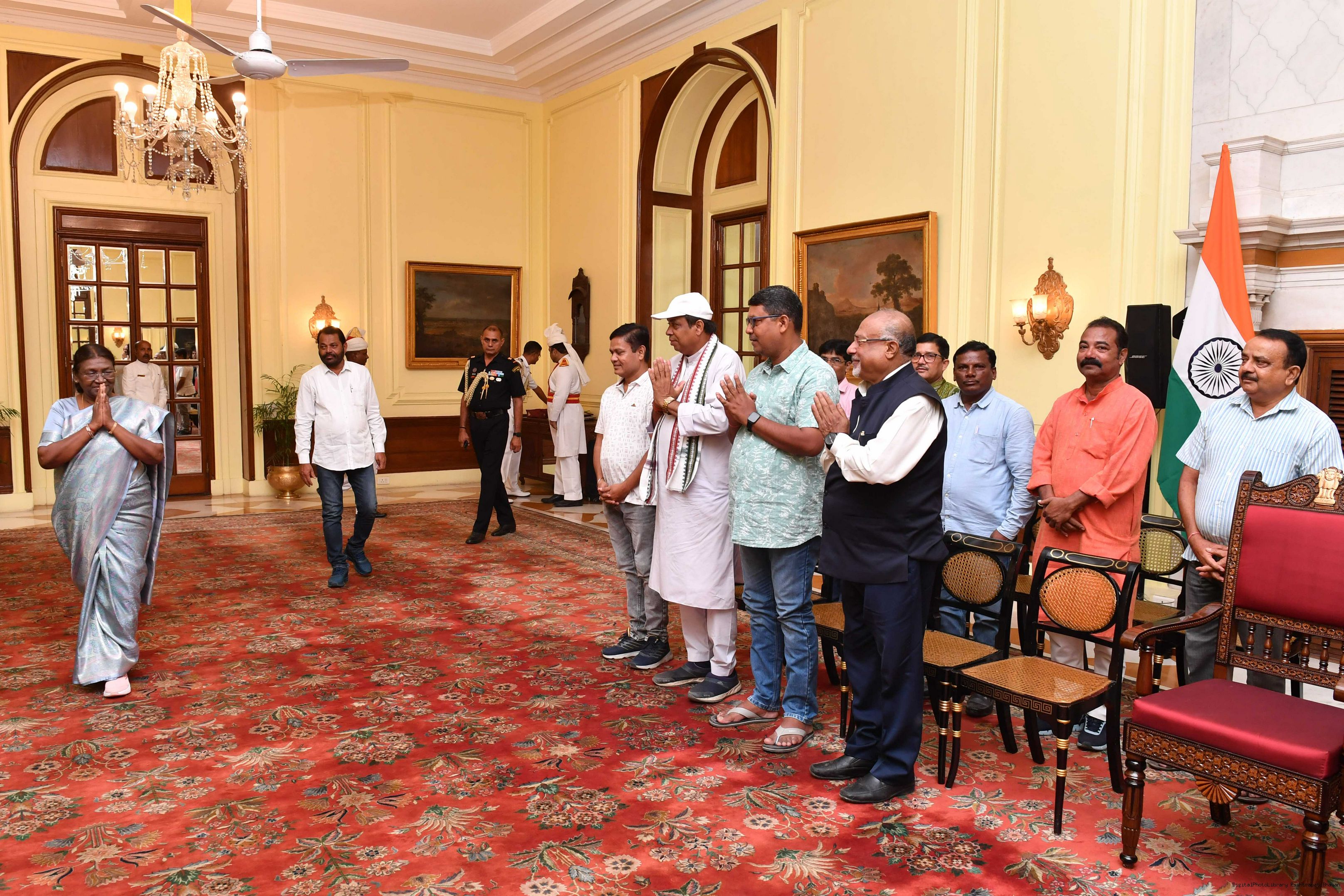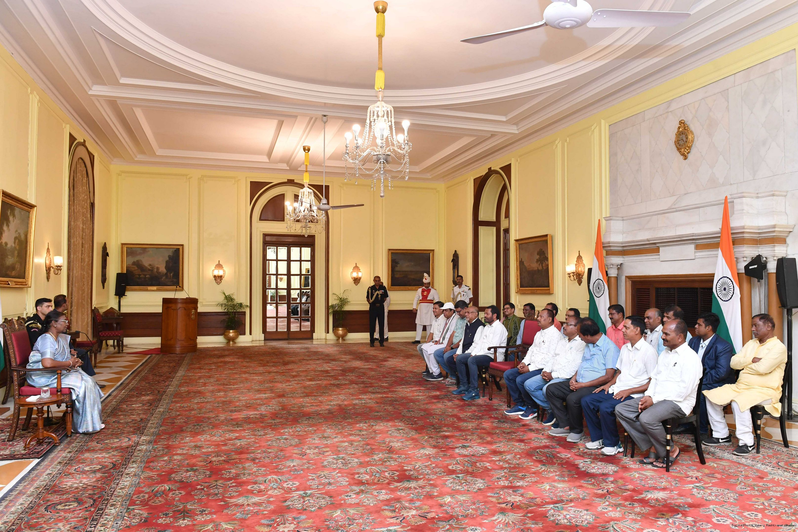 | Caption: | Shri Manoj Das and 24 others from Odisha meeting with the President of India, Smt. Droupadi Murmu at Rashtrapati Bhavan on August 28, 2023. |