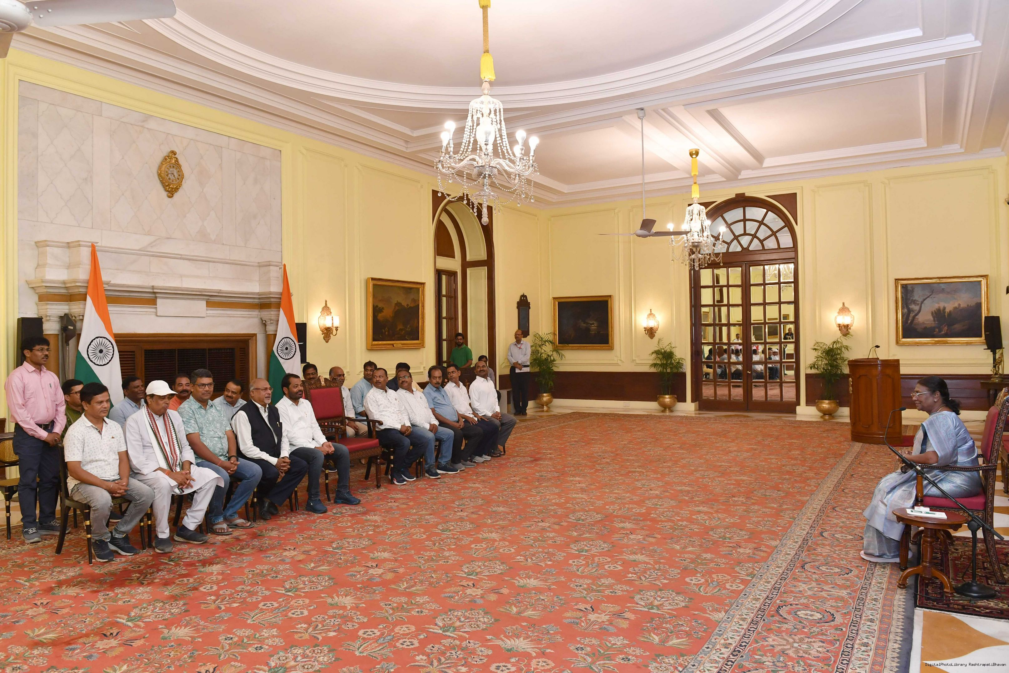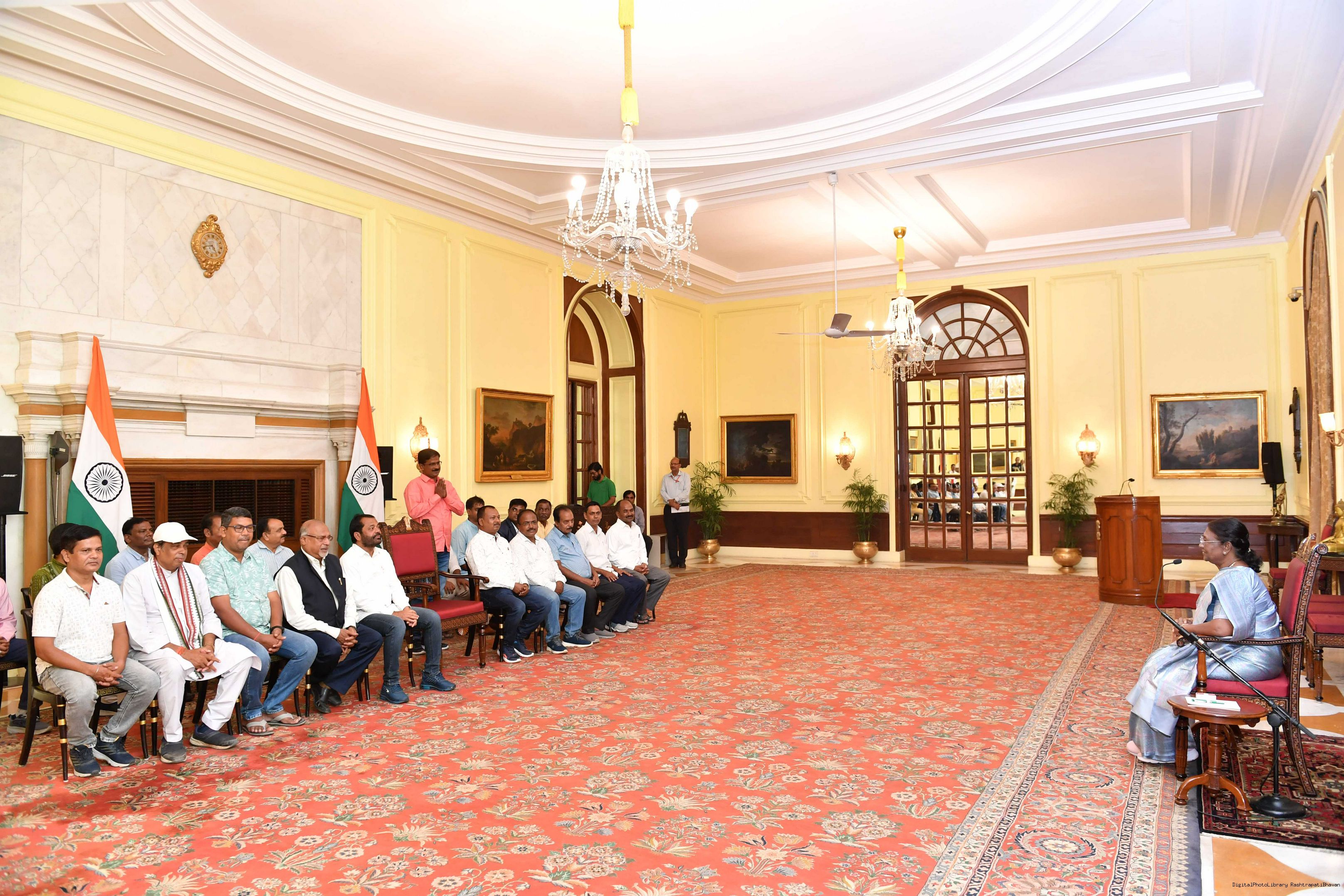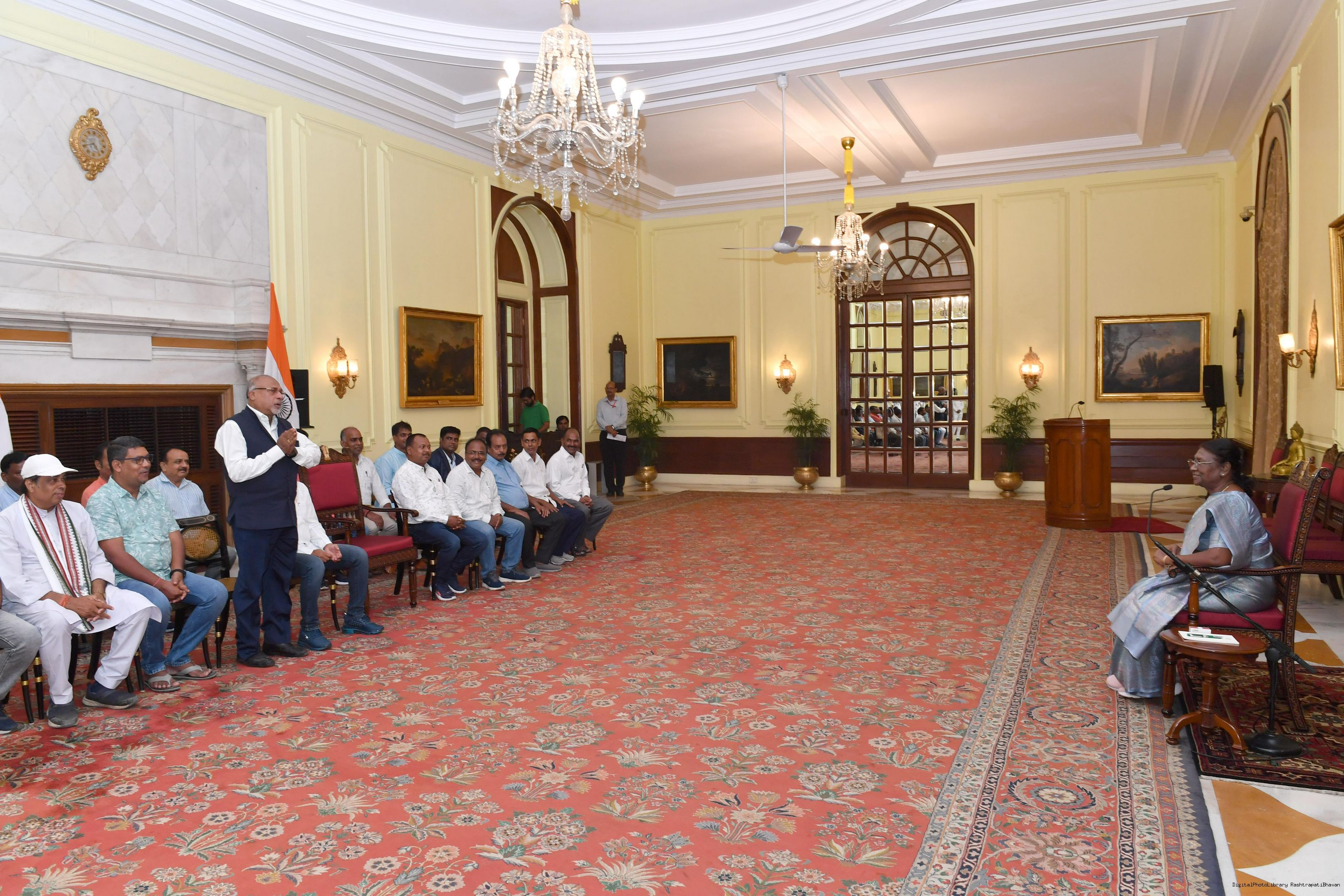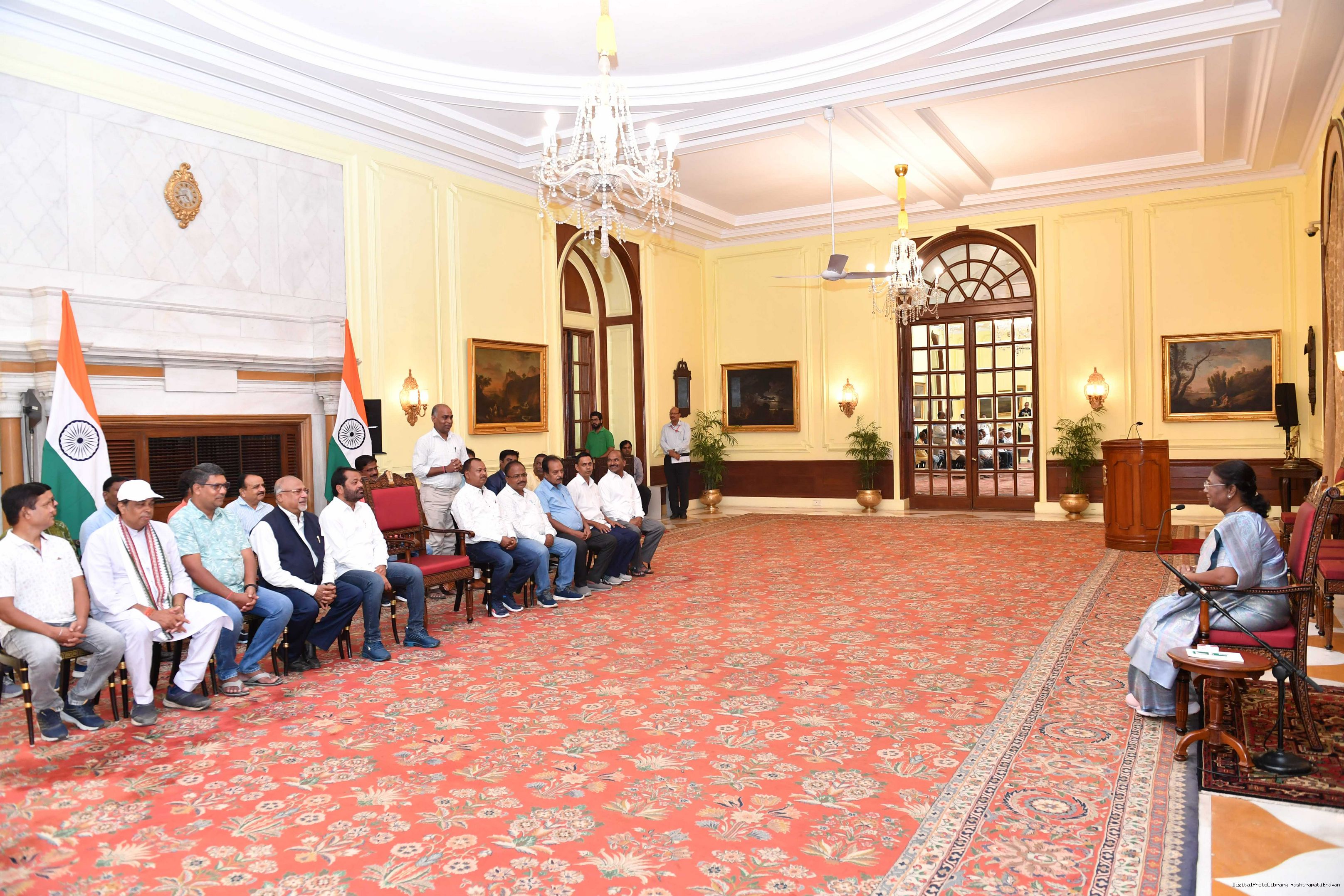| Caption: | Shri Manoj Das and 24 others from Odisha meeting with the President of India, Smt. Droupadi Murmu at Rashtrapati Bhavan on August 28, 2023. |