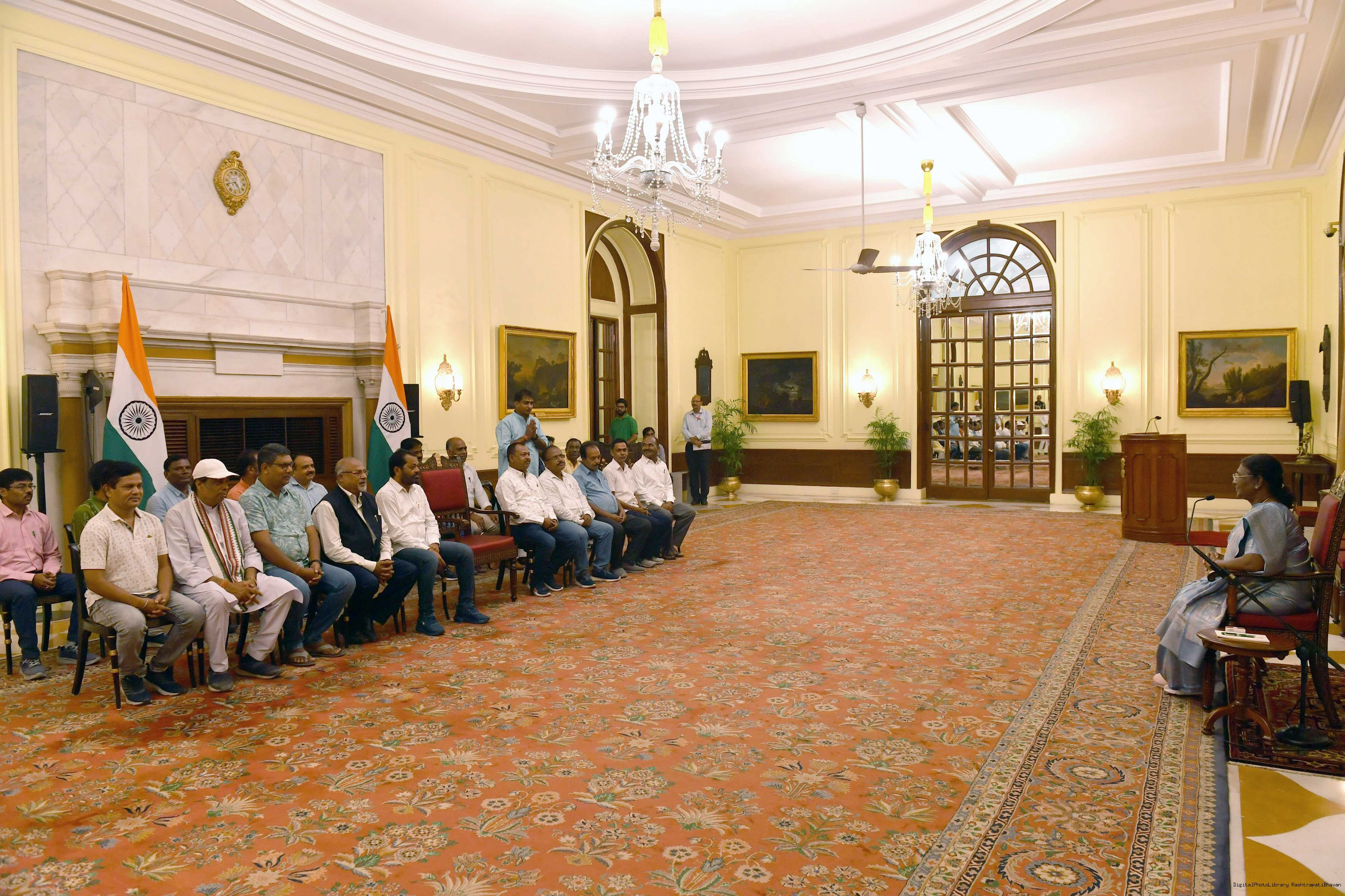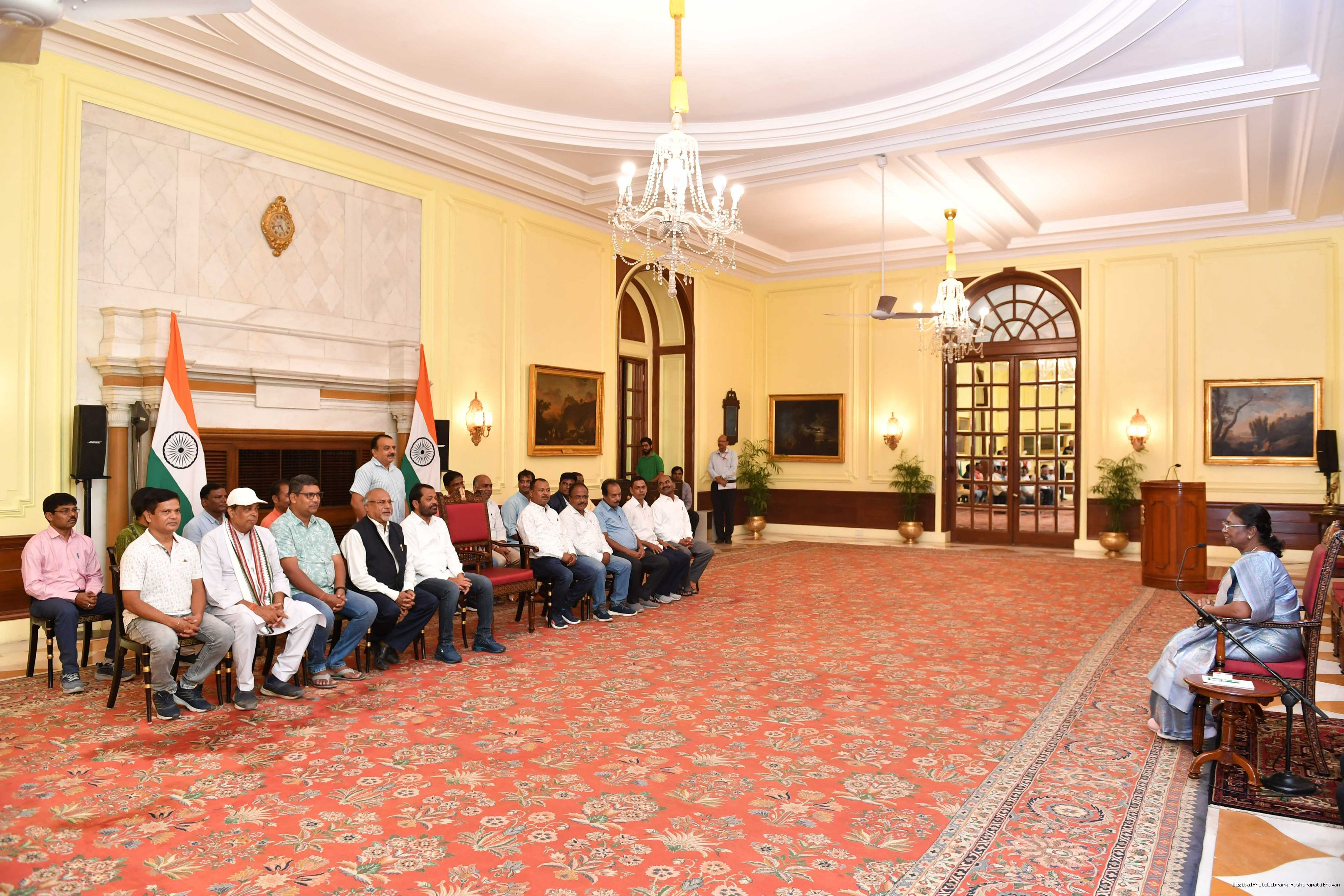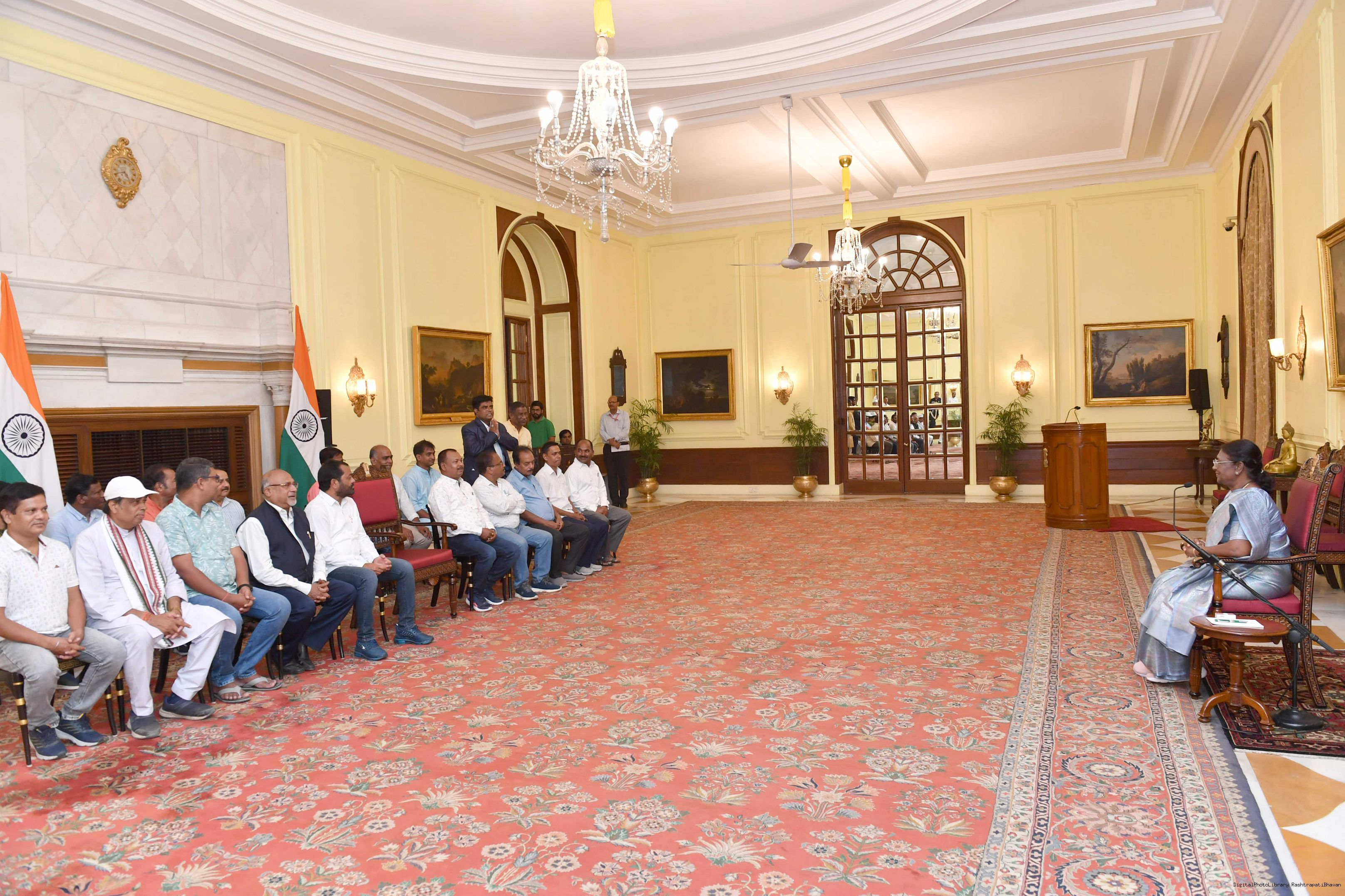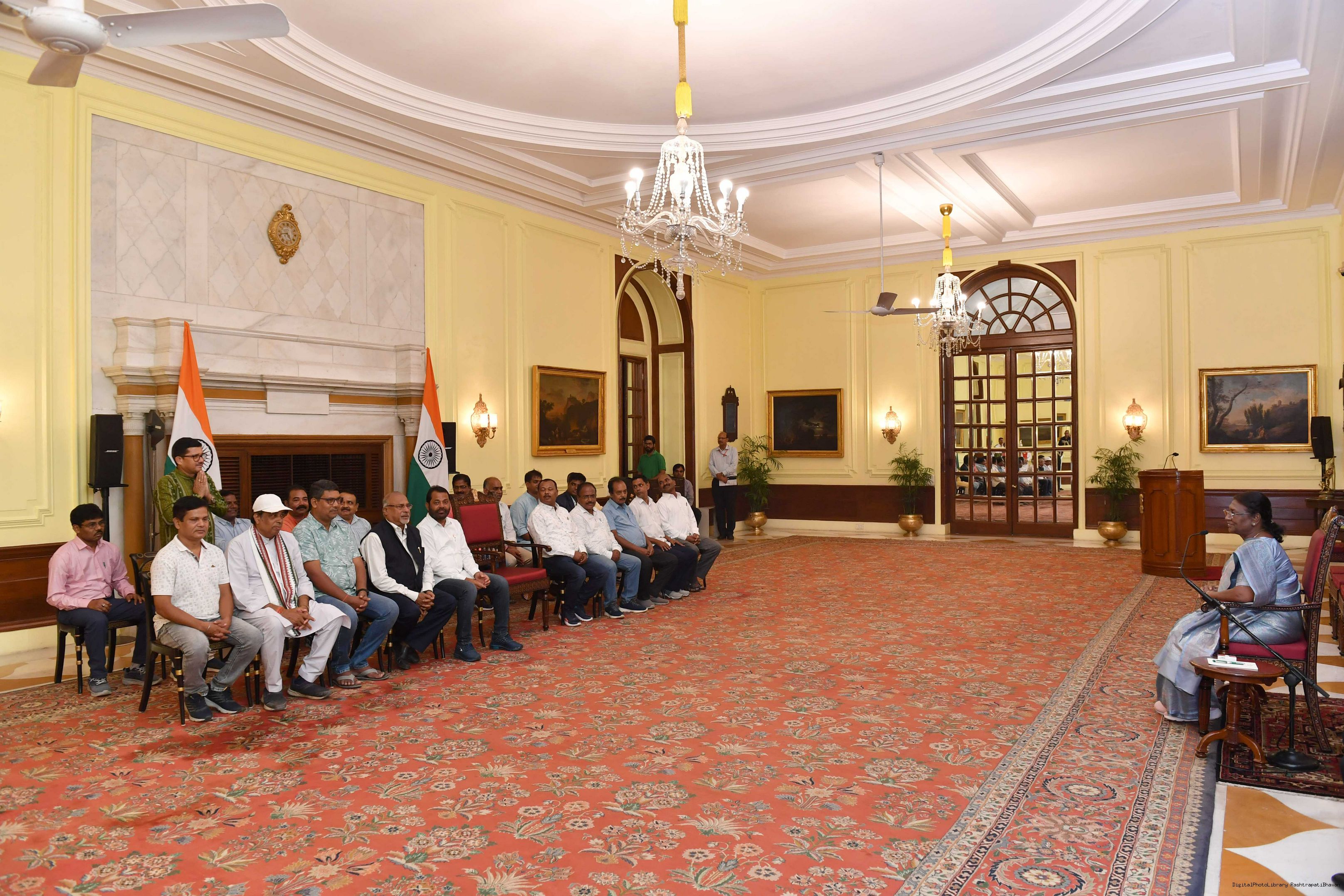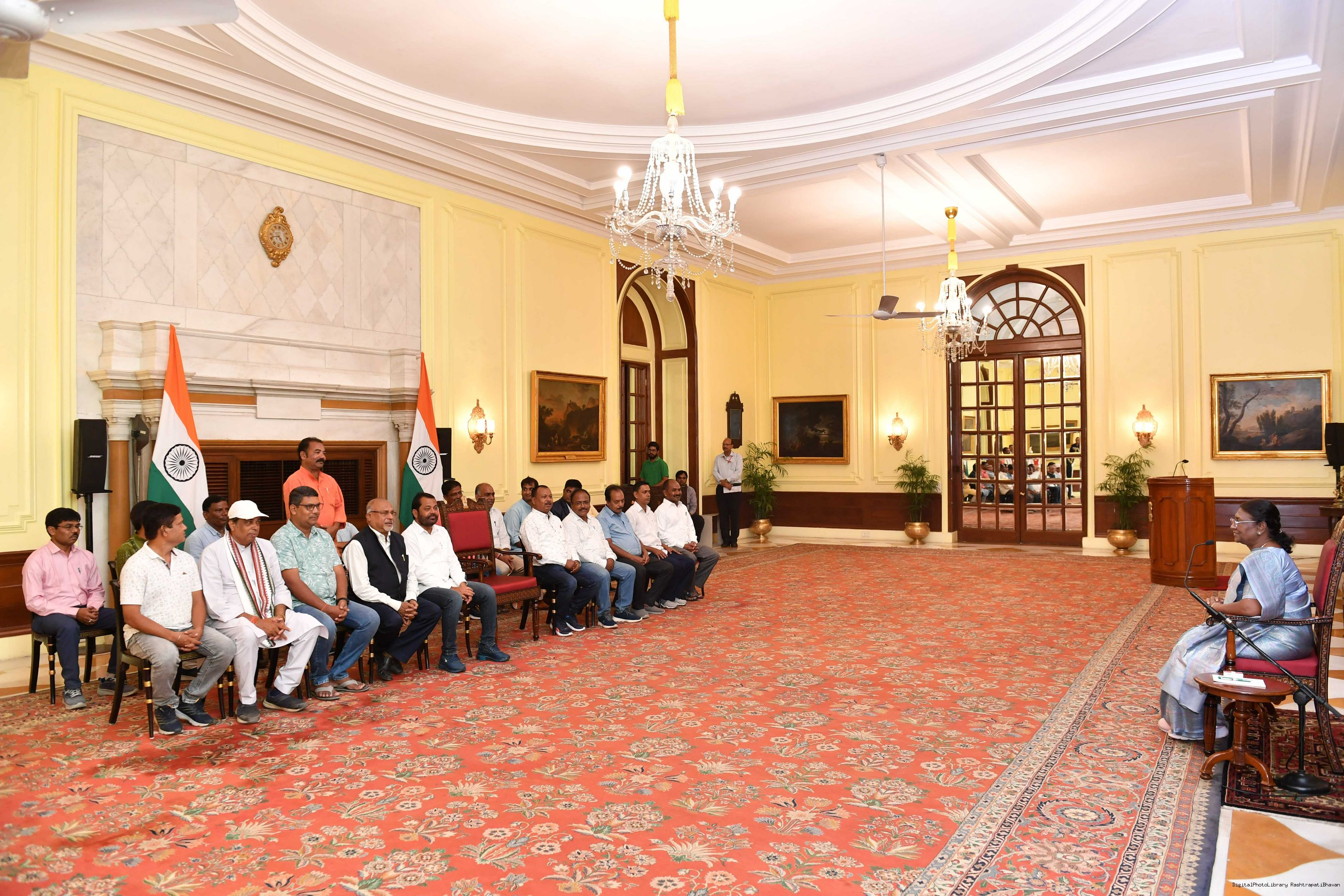 | Caption: | Shri Manoj Das and 24 others from Odisha meeting with the President of India, Smt. Droupadi Murmu at Rashtrapati Bhavan on August 28, 2023. |