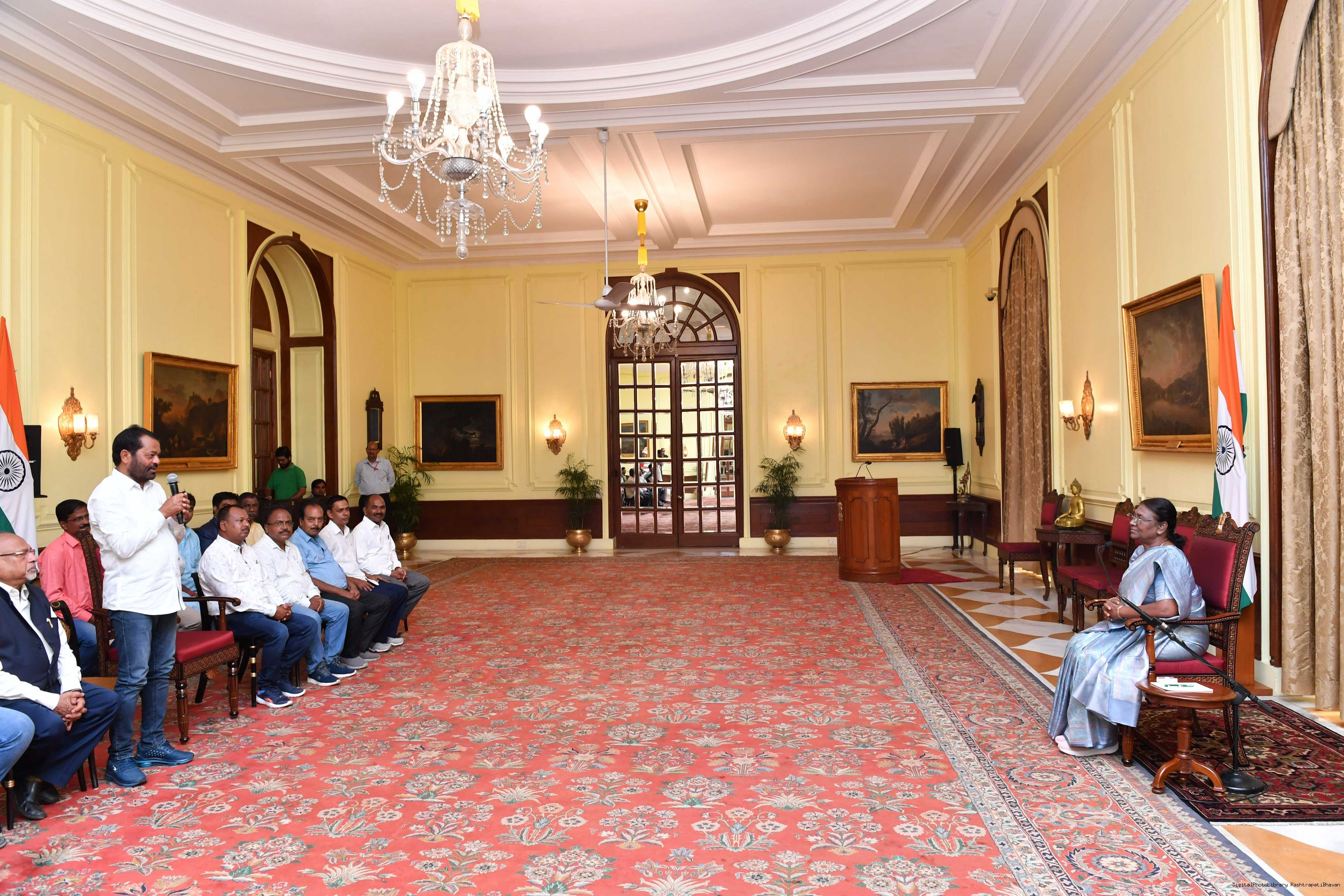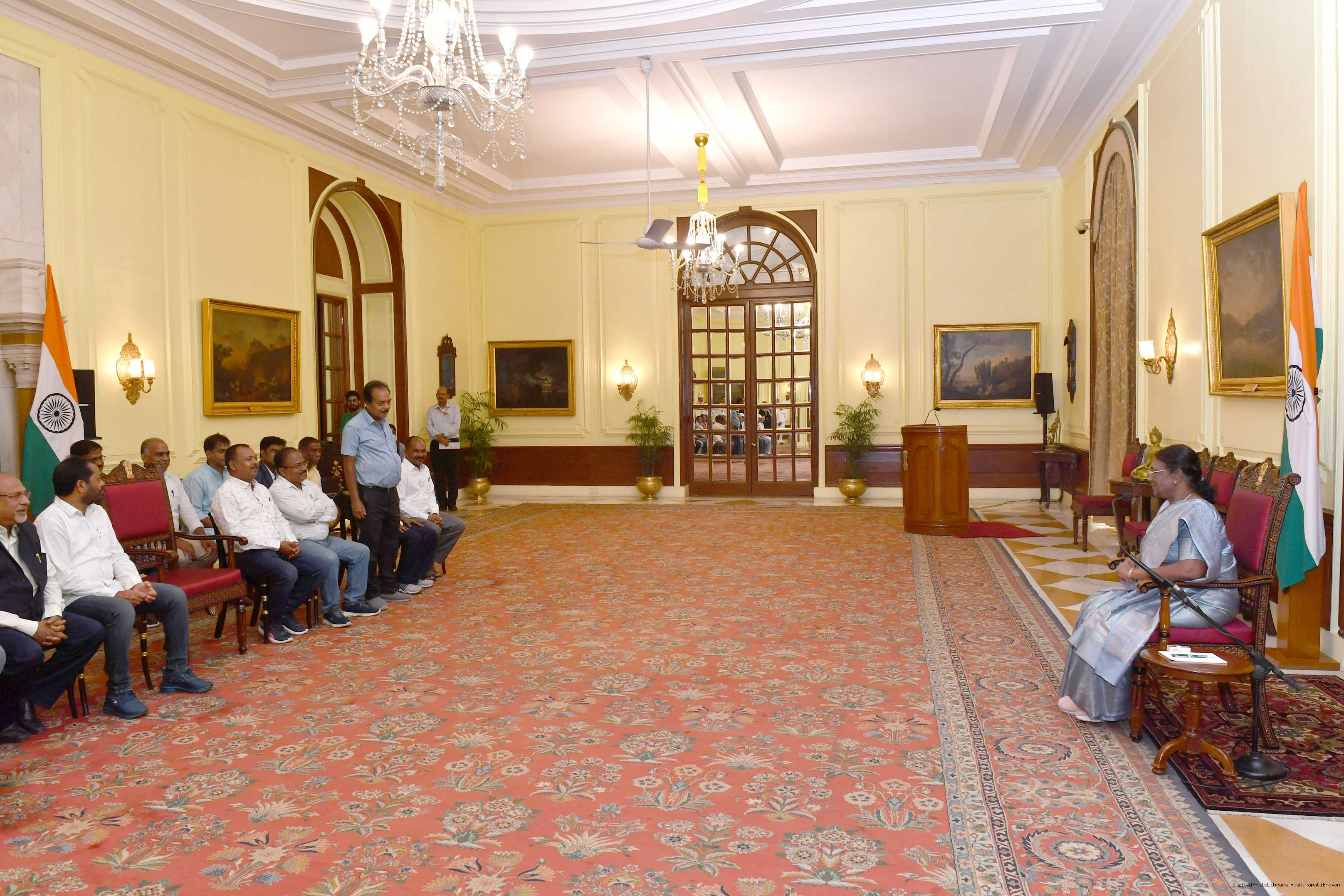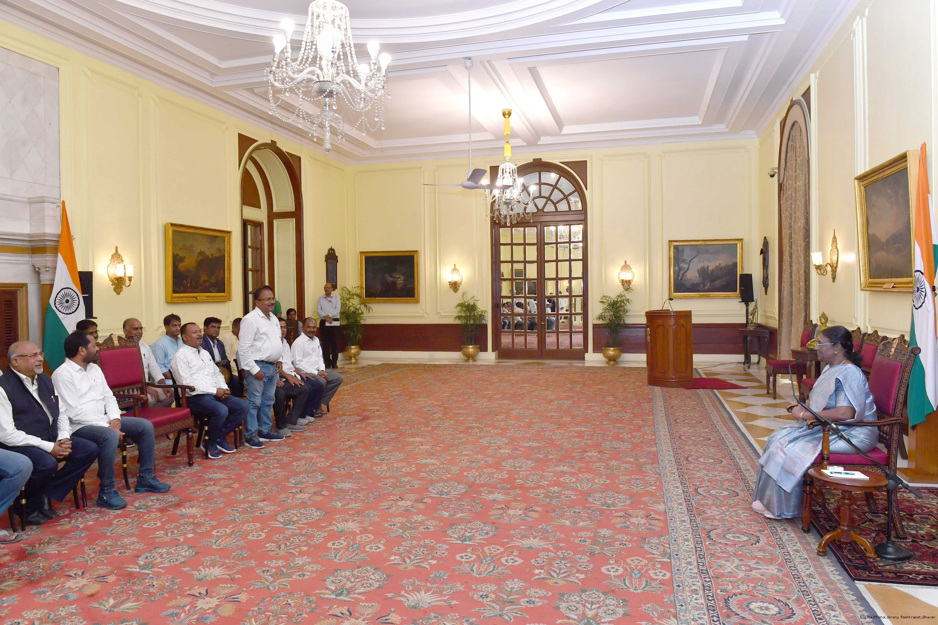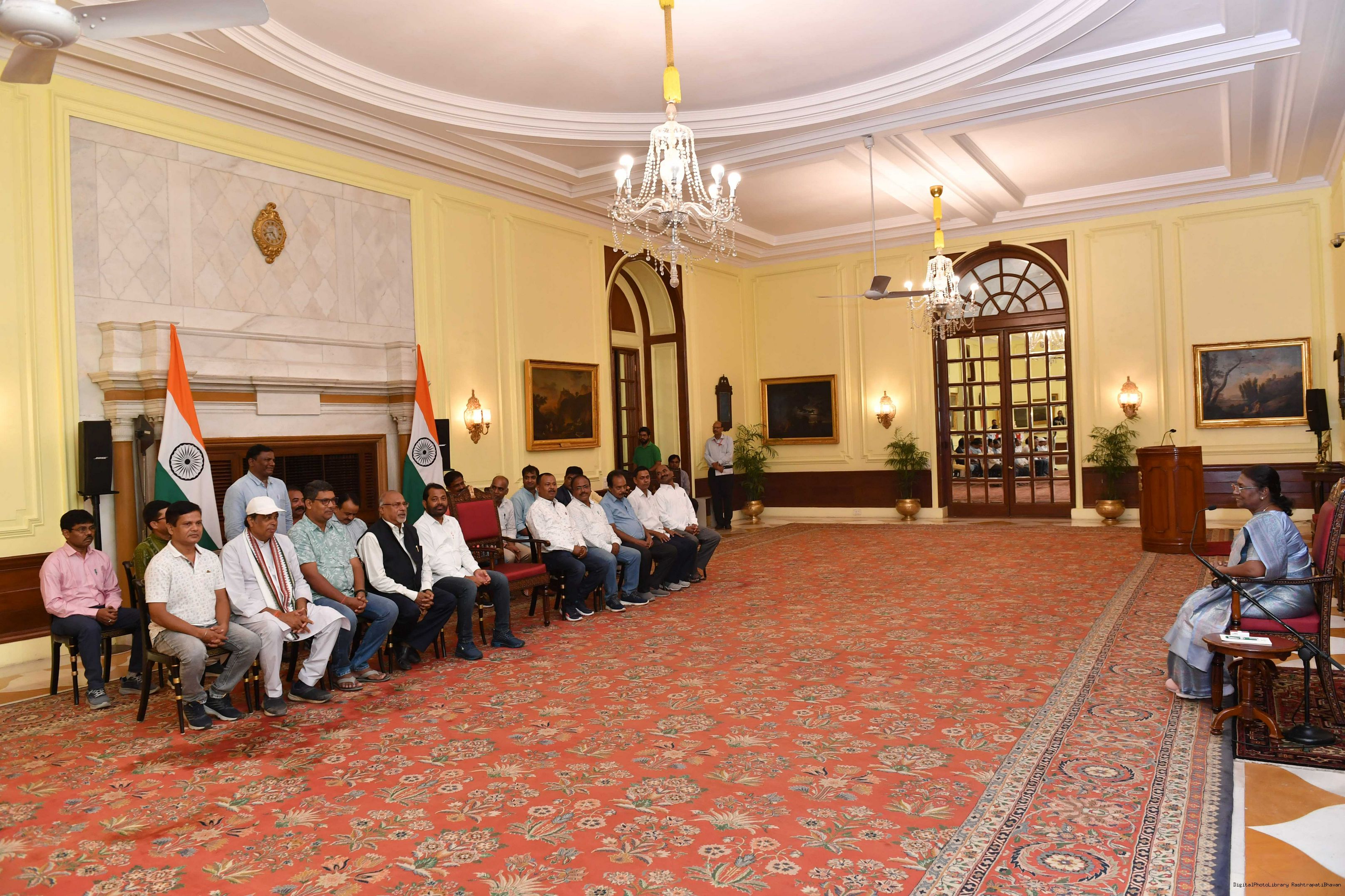 | Caption: | Shri Manoj Das and 24 others from Odisha meeting with the President of India, Smt. Droupadi Murmu at Rashtrapati Bhavan on August 28, 2023. |