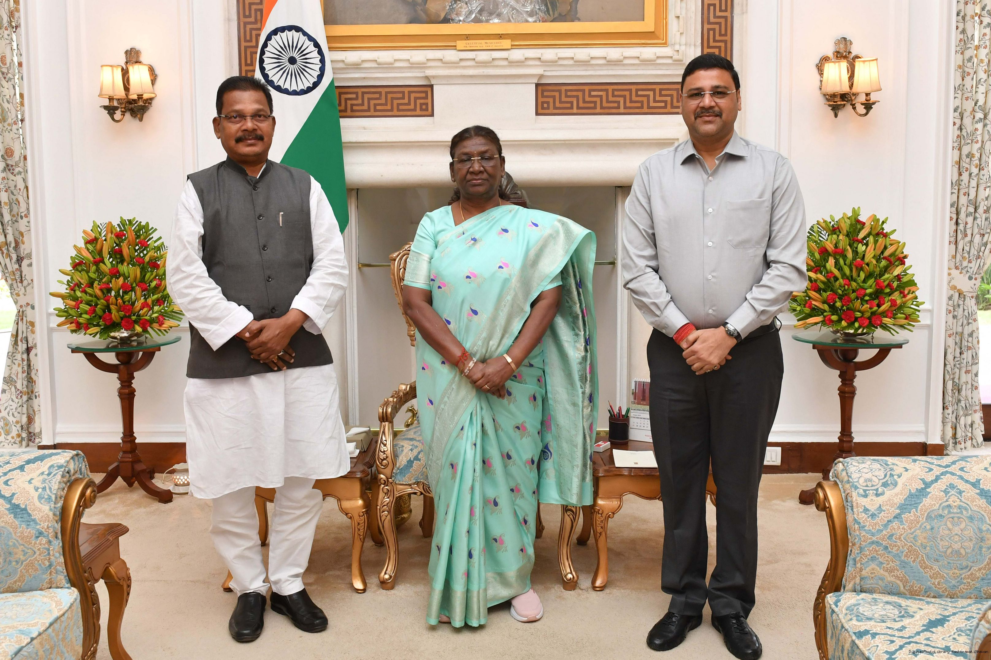 | Caption: | Shri Laxman Tudu, In-charge BJP ST Morcha Odisha EX-MLA along with others meeting with the President of India, Smt. Droupadi Murmu at Rashtrapati Bhavan on August 28, 2023. |