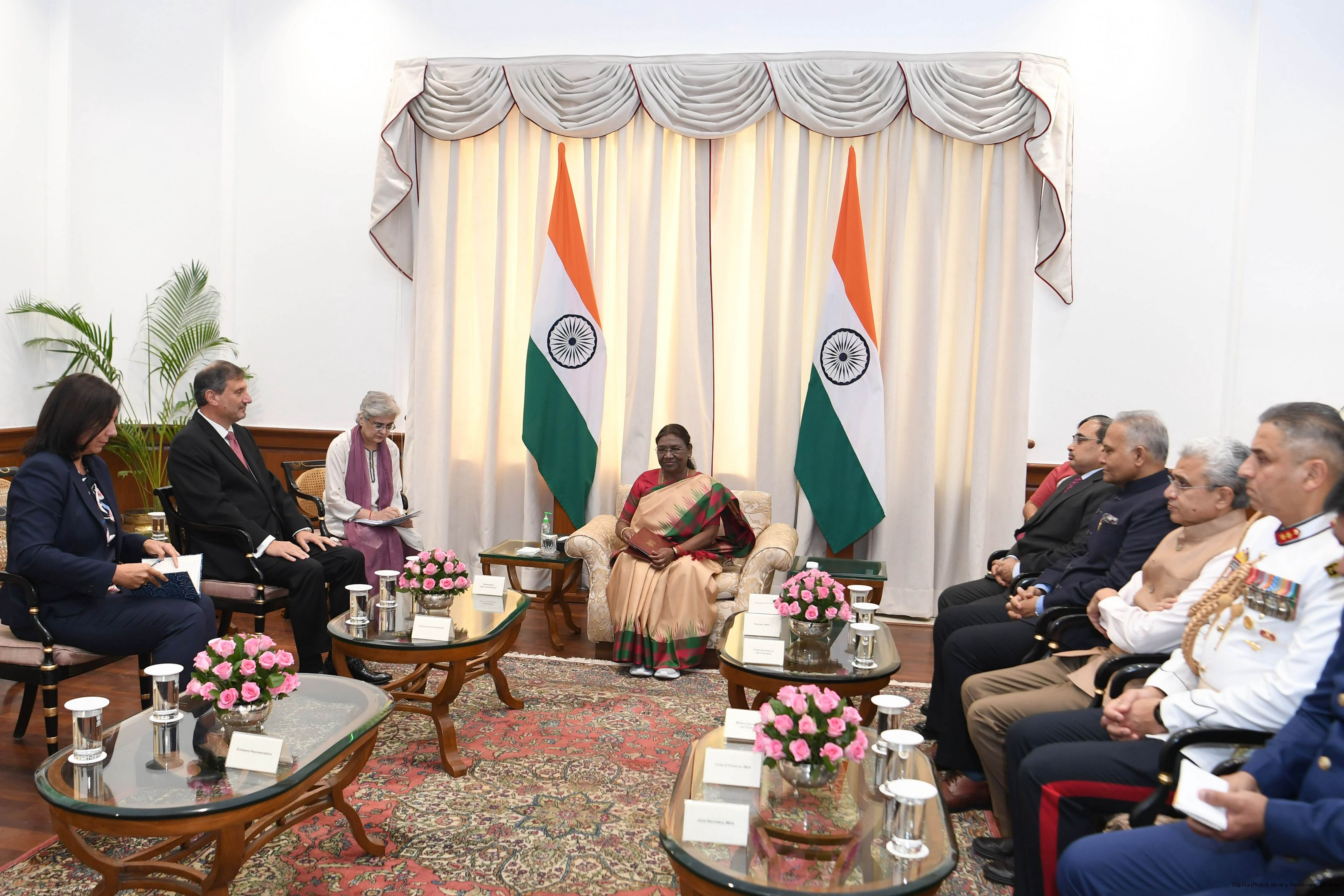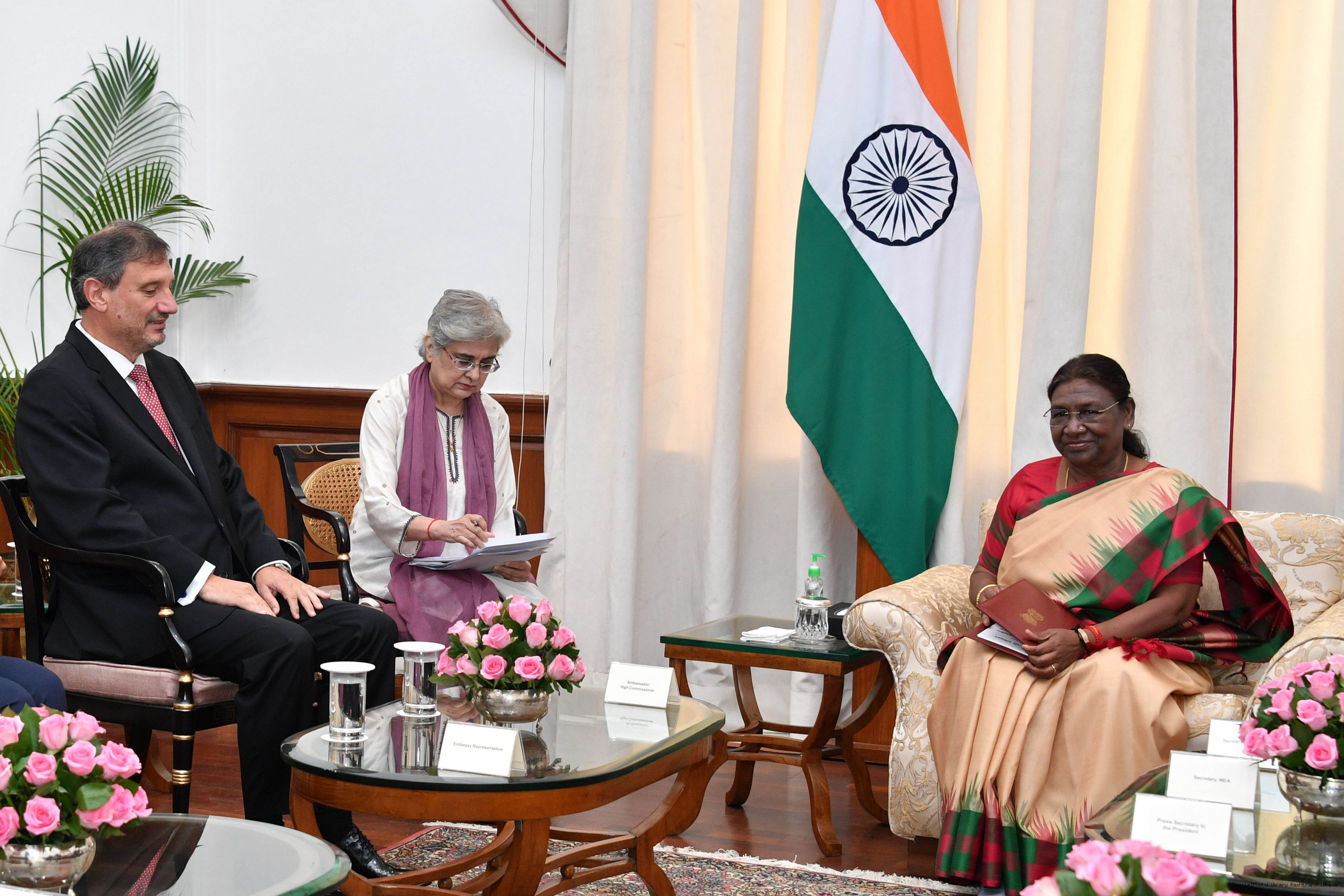 | Caption: | The Ambassador-Designate of the Republic of Bulgaria, H.E. Mr Nikolay Hristov Yankov presenting his credentials to the President of India, Smt Droupadi Murmu at Rashtrapati Bhavan on October 23, 2023. |