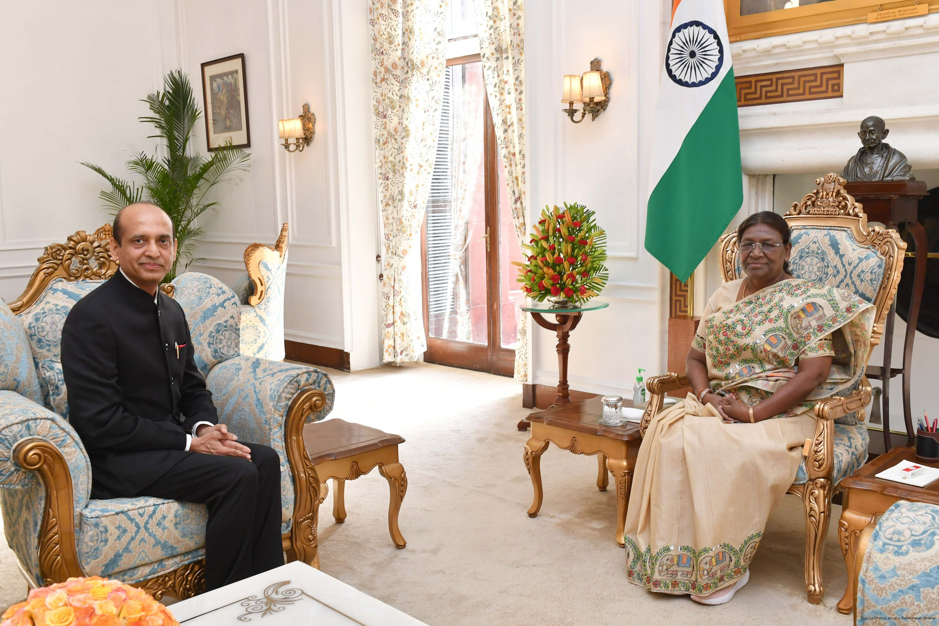 | Caption: | The Ambassador-designate of India to Burkina Faso, Shri Bhaskar Bhatt meeting with the President of India, Smt. Droupadi Murmu at Rashtrapati Bhavan on August 29, 2023. |