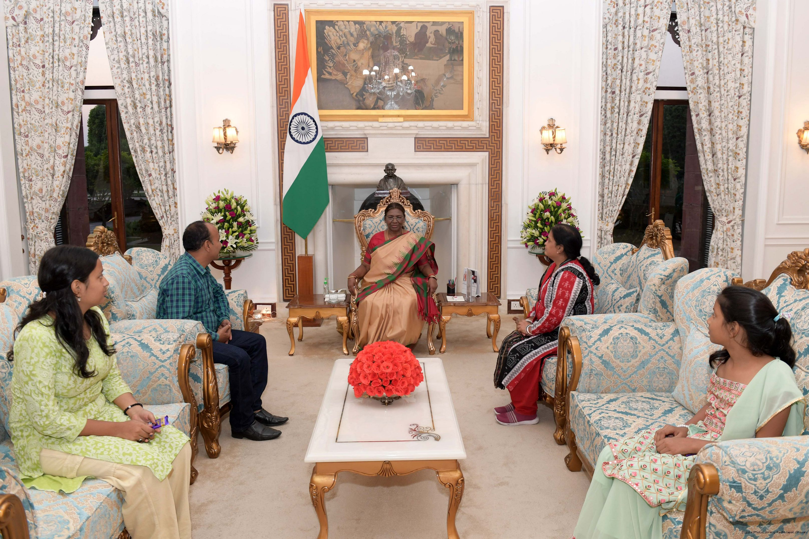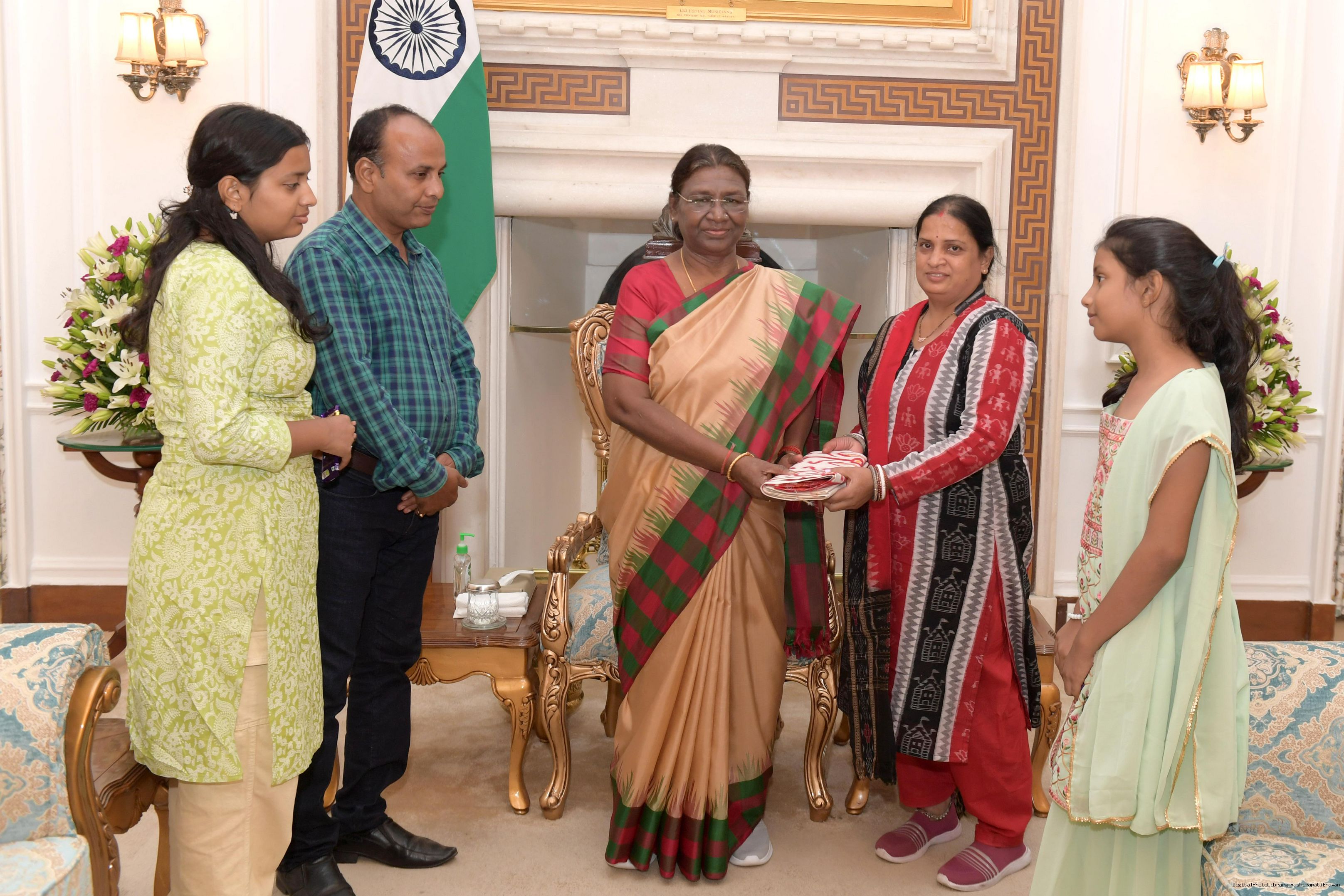 | Caption: | Shri Tapan Kumar Lenka from Rairangpur, Mayurbhanj along with others meeting with the President of India, Smt. Droupadi Murmu at Rashtrapati Bhavan on October 23, 2023 |