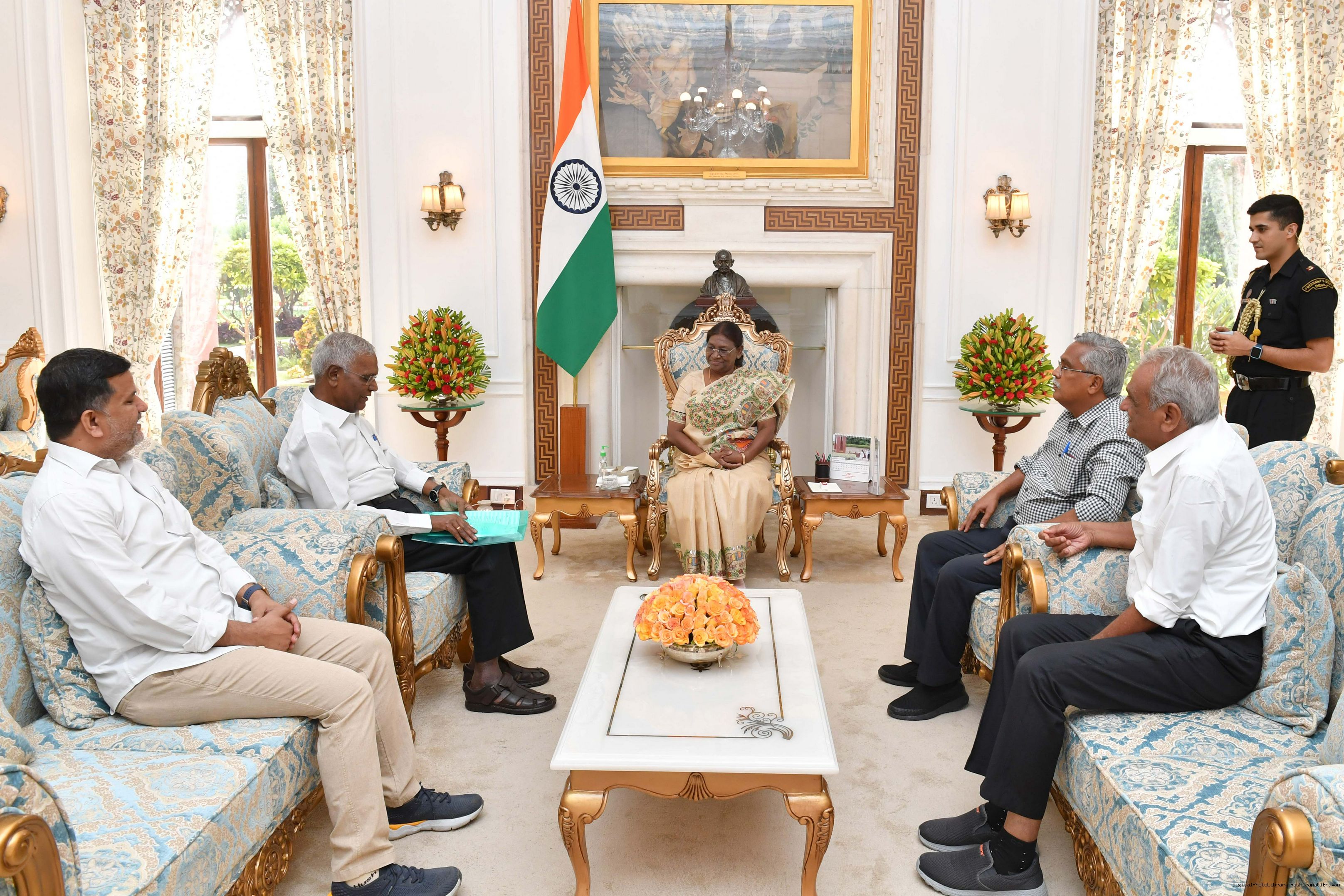 | Caption: | Shri D. Raja, Ex-MP and General Secretary, CPI along with others meeting with the President of India, Smt. Droupadi Murmu at Rashtrapati Bhavan on August 29, 2023. |
