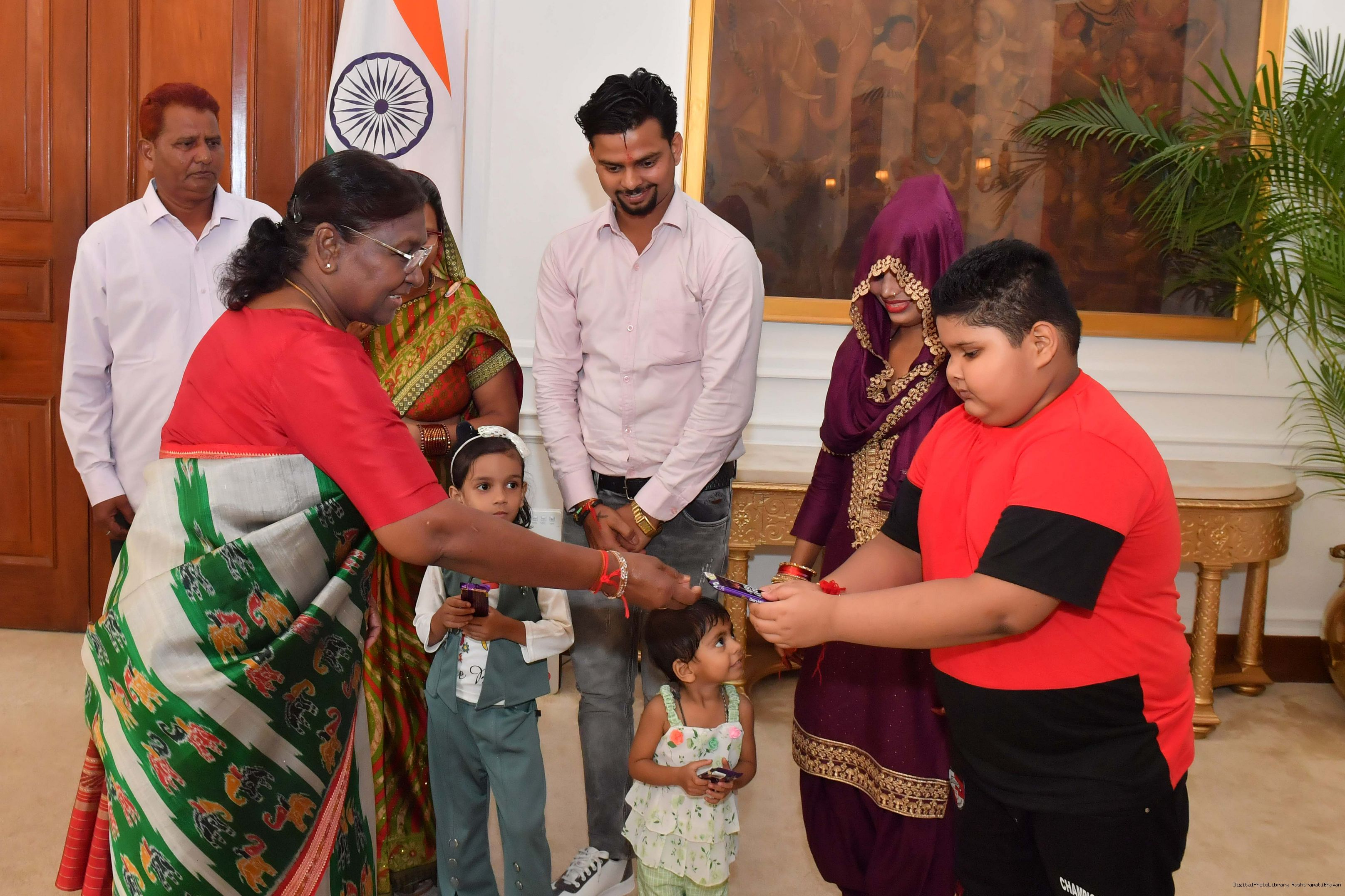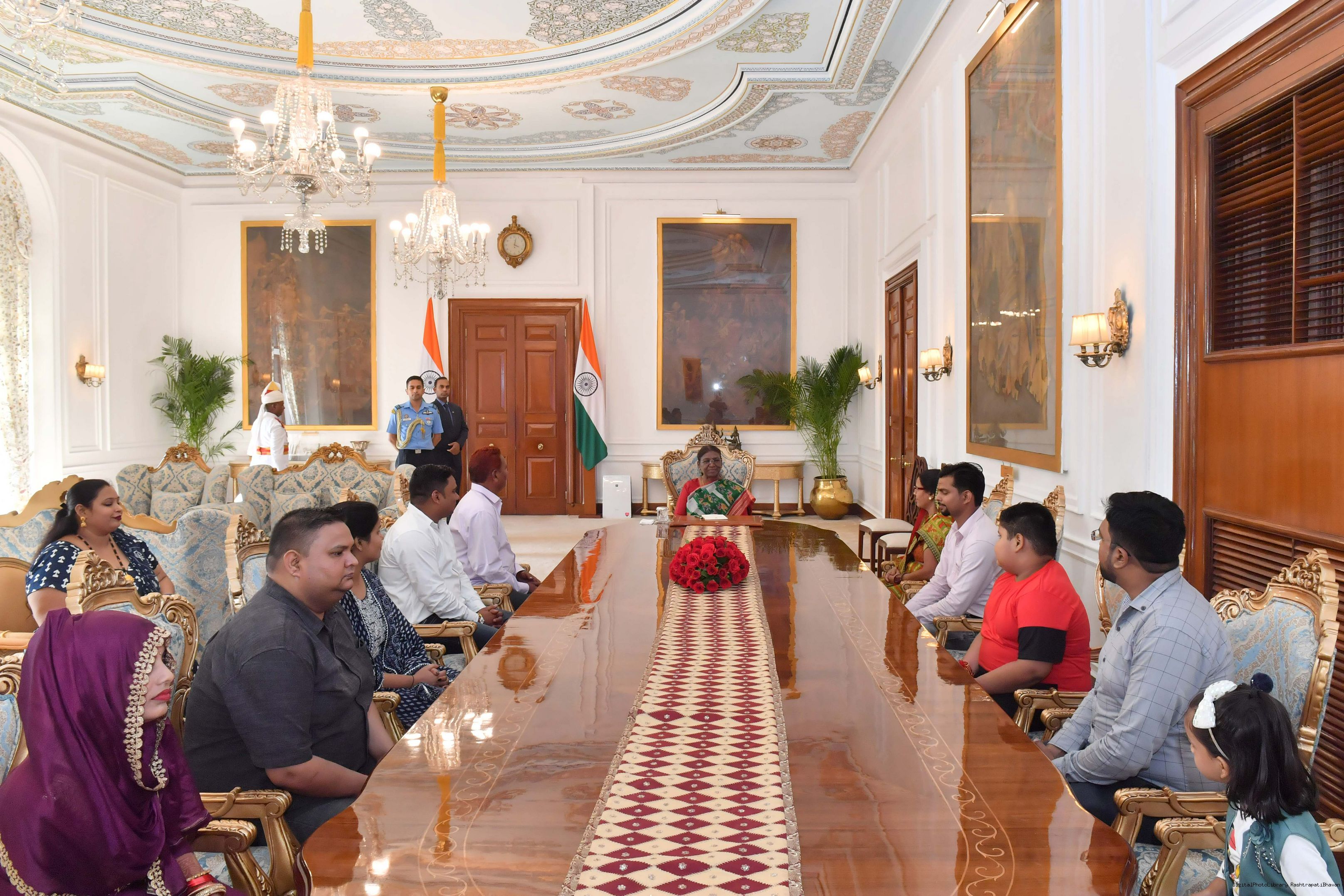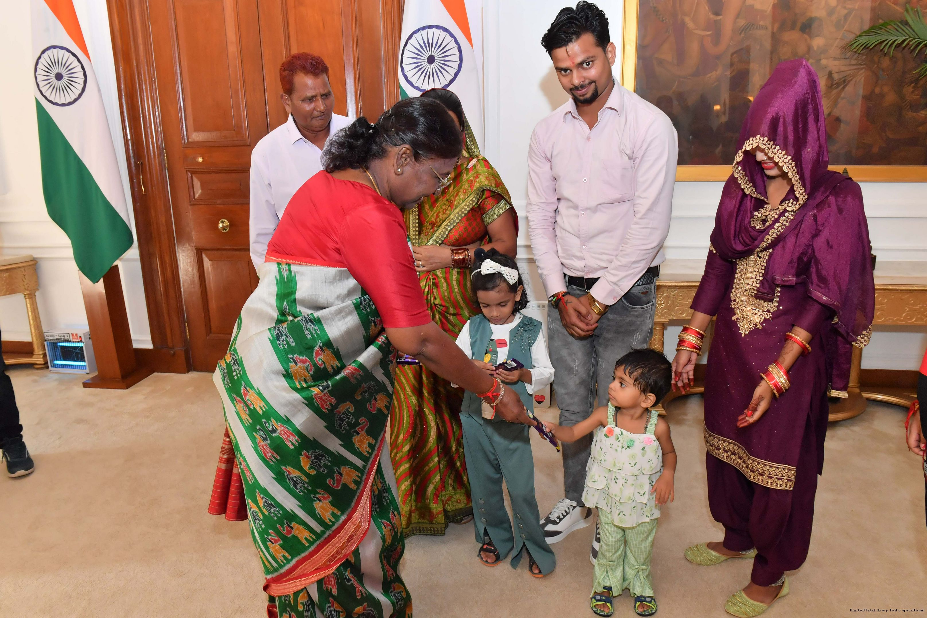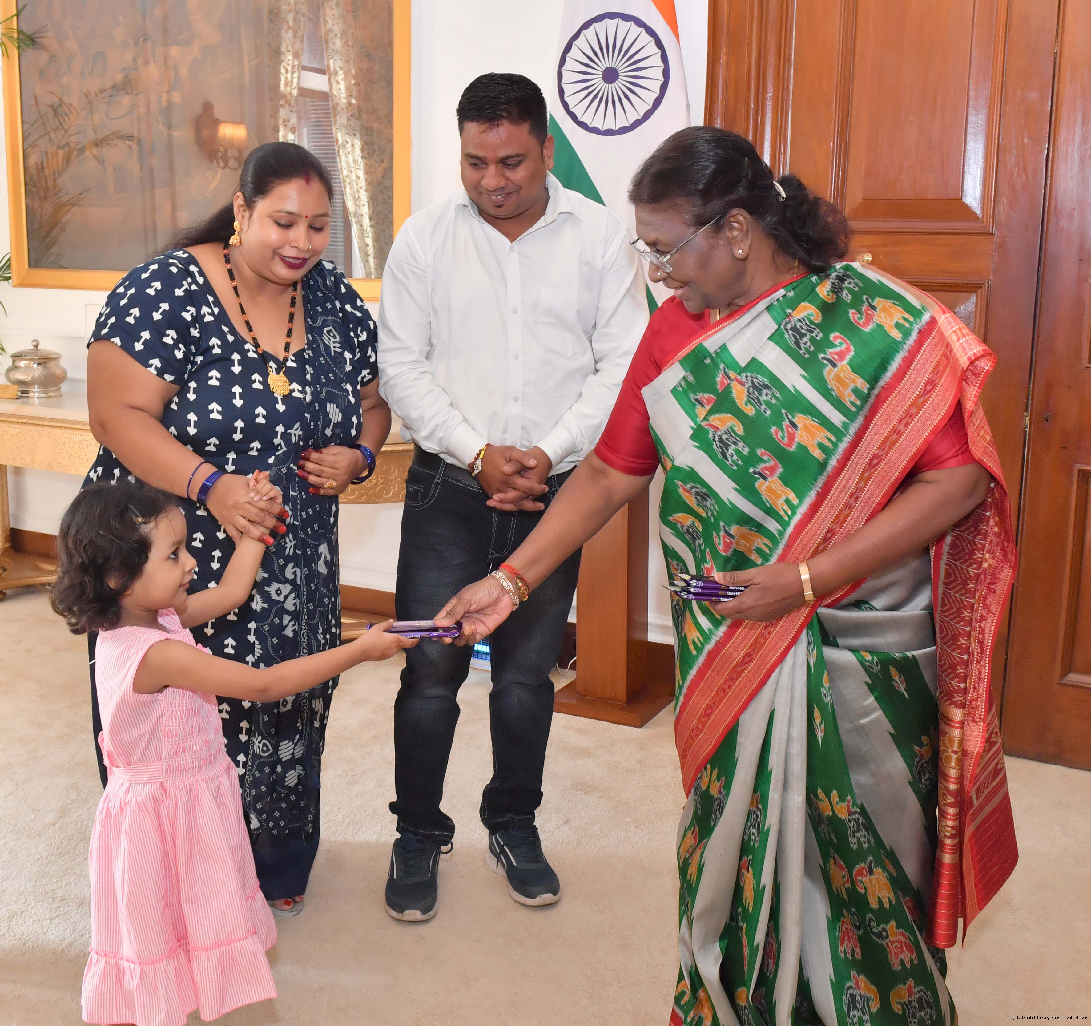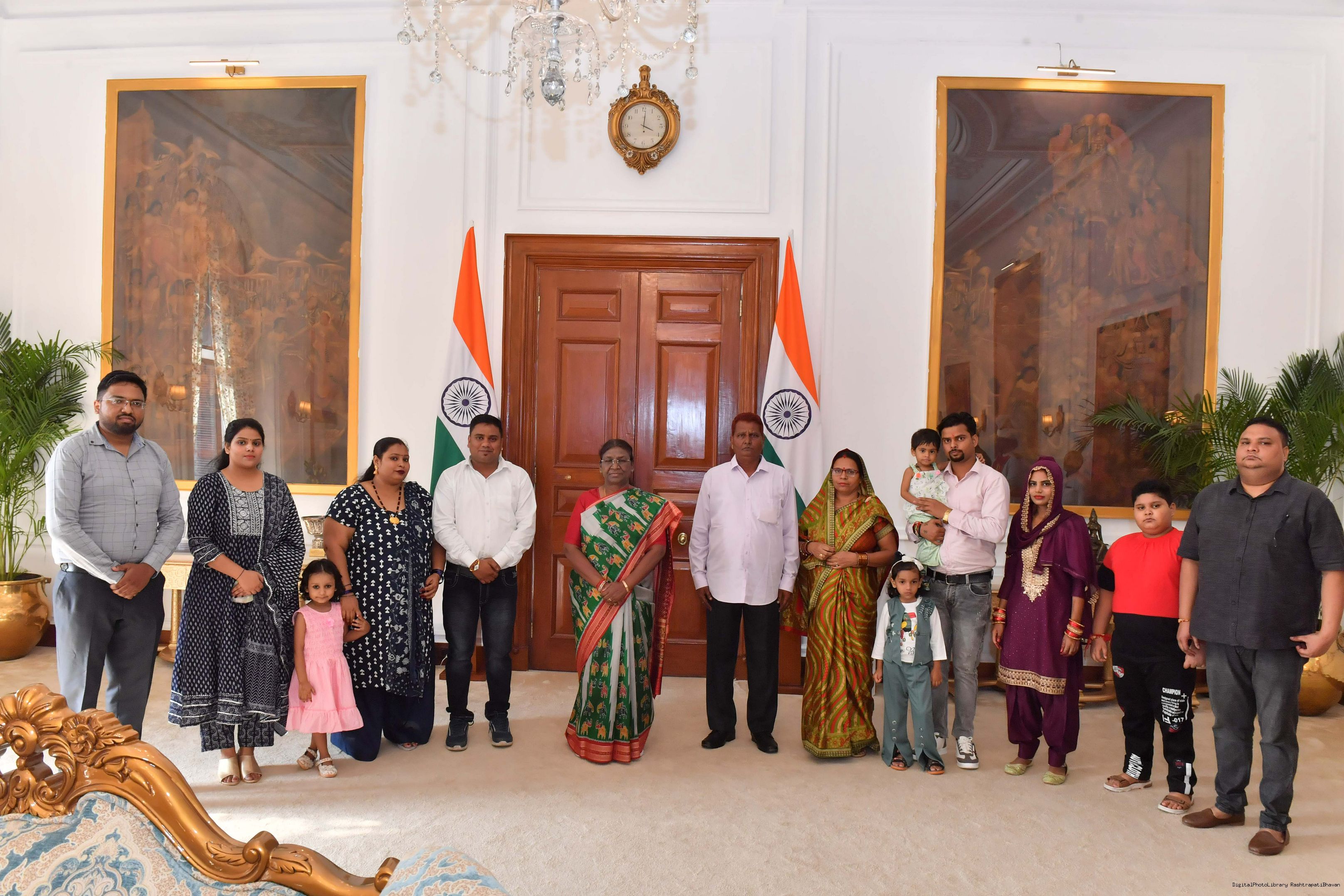 | Caption: | Shri Dharampal, Senior Mali along with others meeting with the President of India, Smt. Droupadi Murmu at Rashtrapati Bhavan on August 30, 2023. |