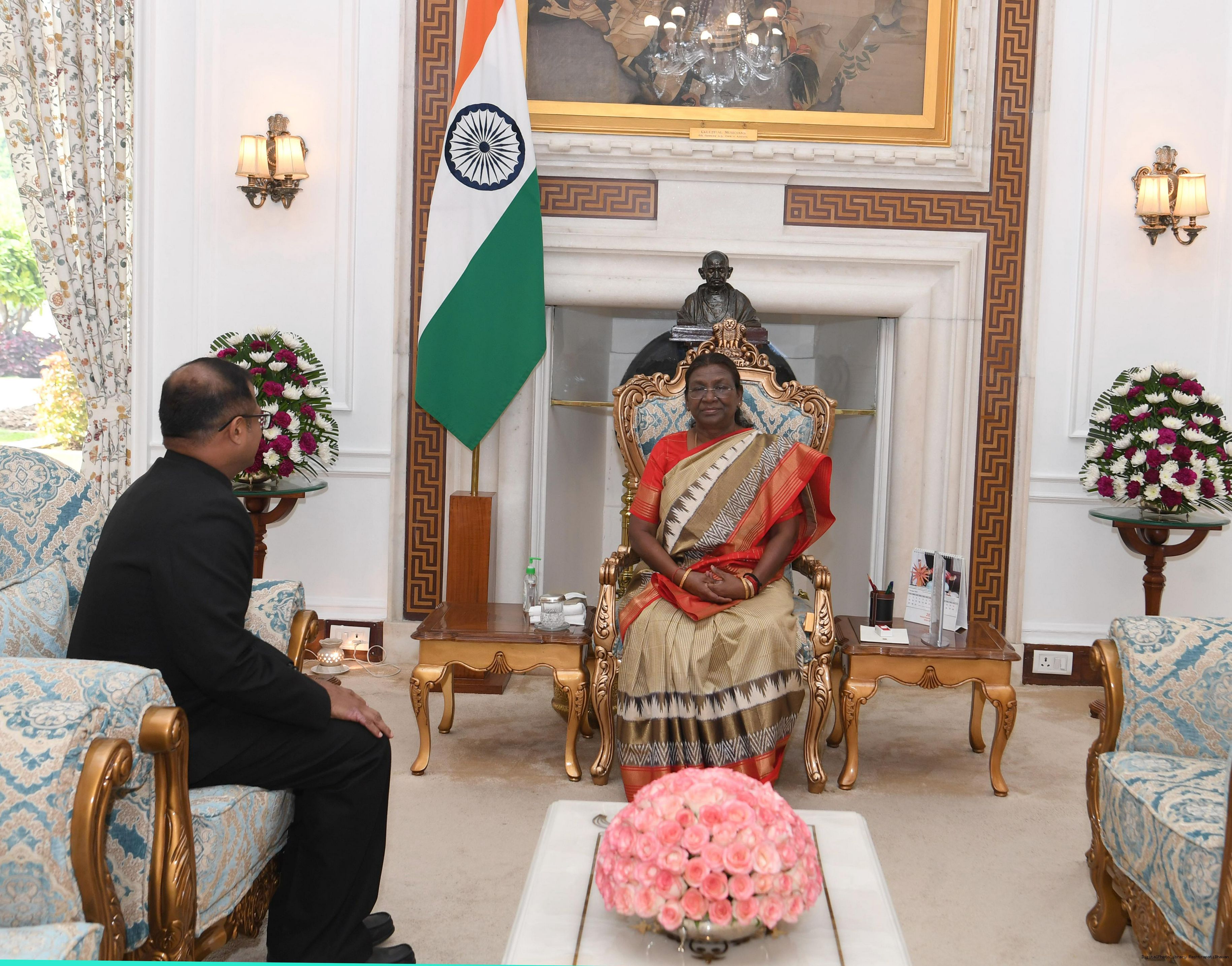 | Caption: | The Ambassador-designate of India to Venezuela, Shri Ashok Babu Puliyadi Kumaran meeting with the President of India, Smt. Droupadi Murmu at Rashtrapati Bhavan on October 30, 2023. |