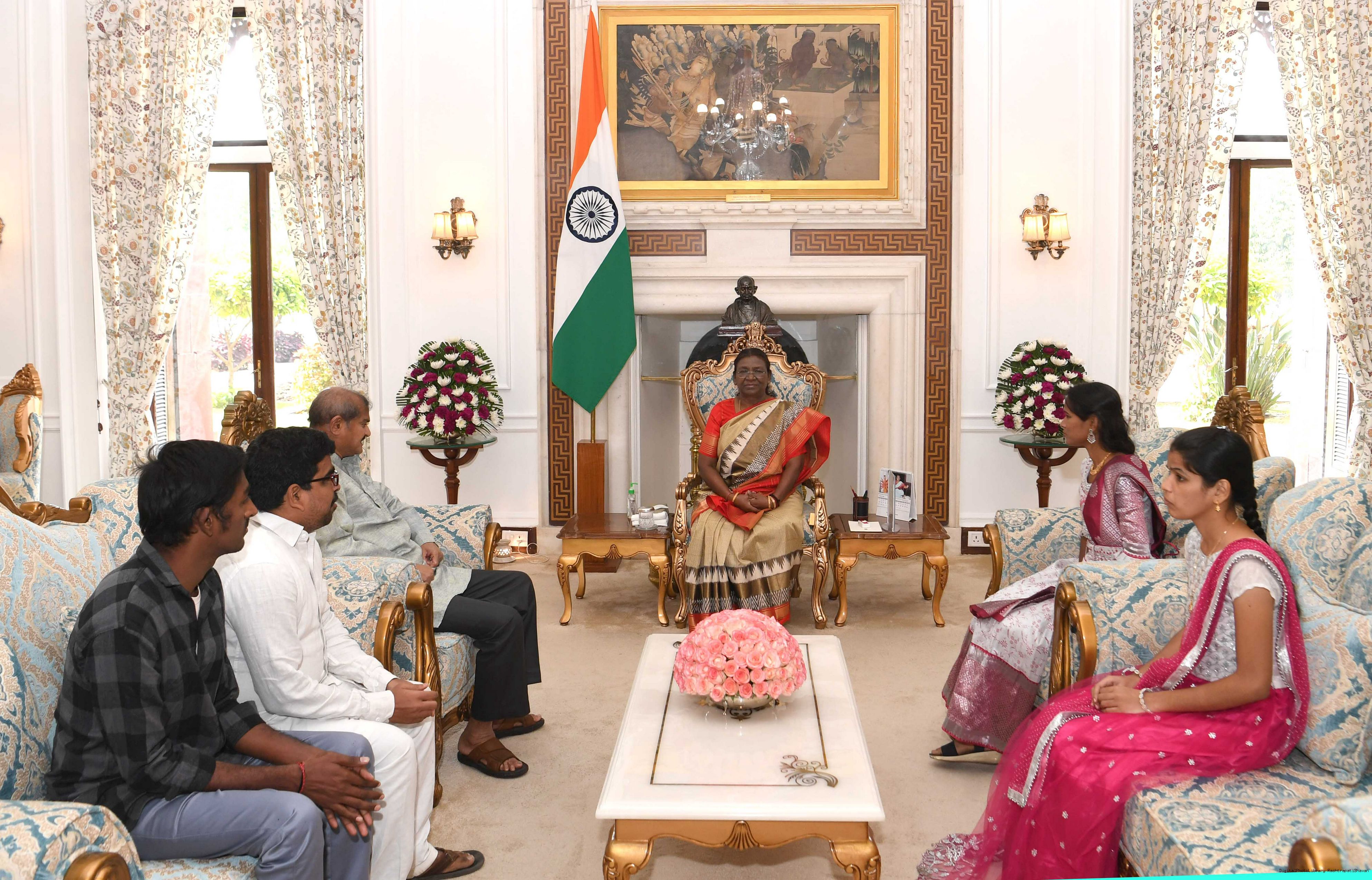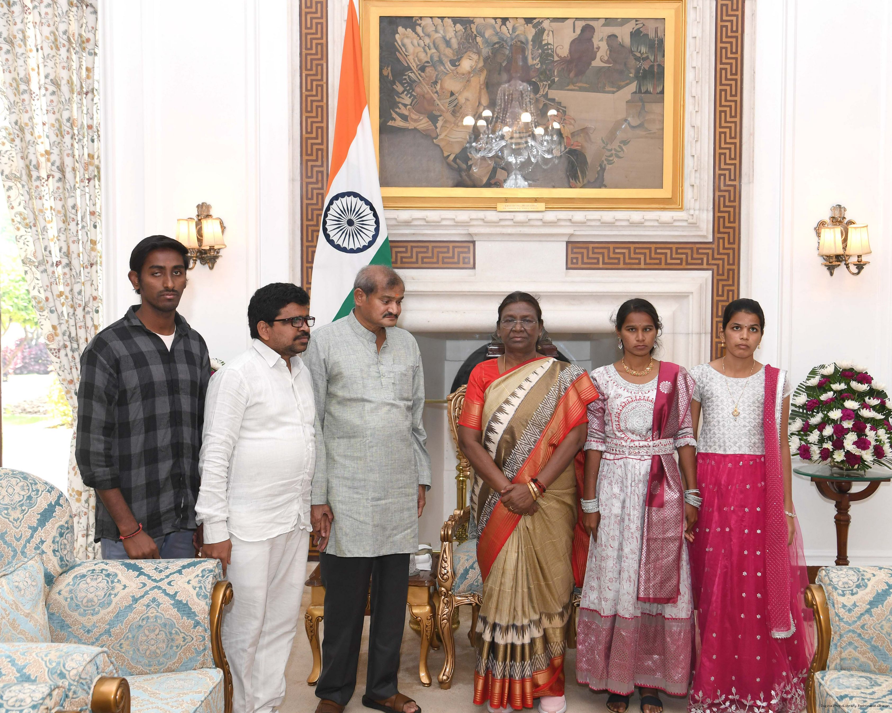 | Caption: | Shri Ponugoti Chokka Rao, General Secretary, Development Welfare Association of the Blind, Telangana State along with others meeting with the President of India, Smt. Droupadi Murmu at Rashtrapati Bhavan on October 30, 2023. |
