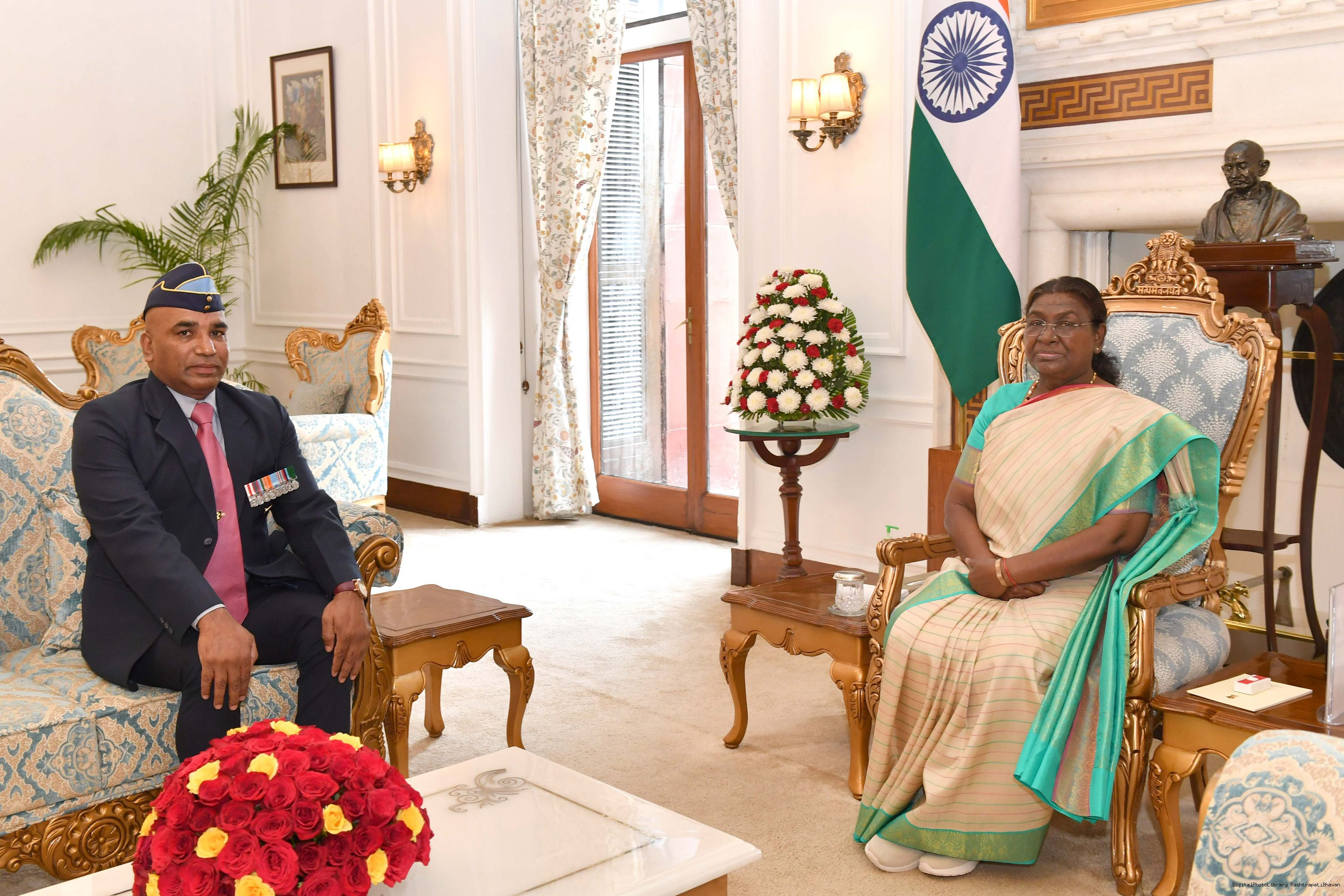 | Caption: | Lt. Col (Dr.) Dharamdatt Goel (Retd), a war-disabled soldier meeting with the President of India Smt. Droupadi Murmu at Rashtrapati Bhavan on September 9, 2024. |