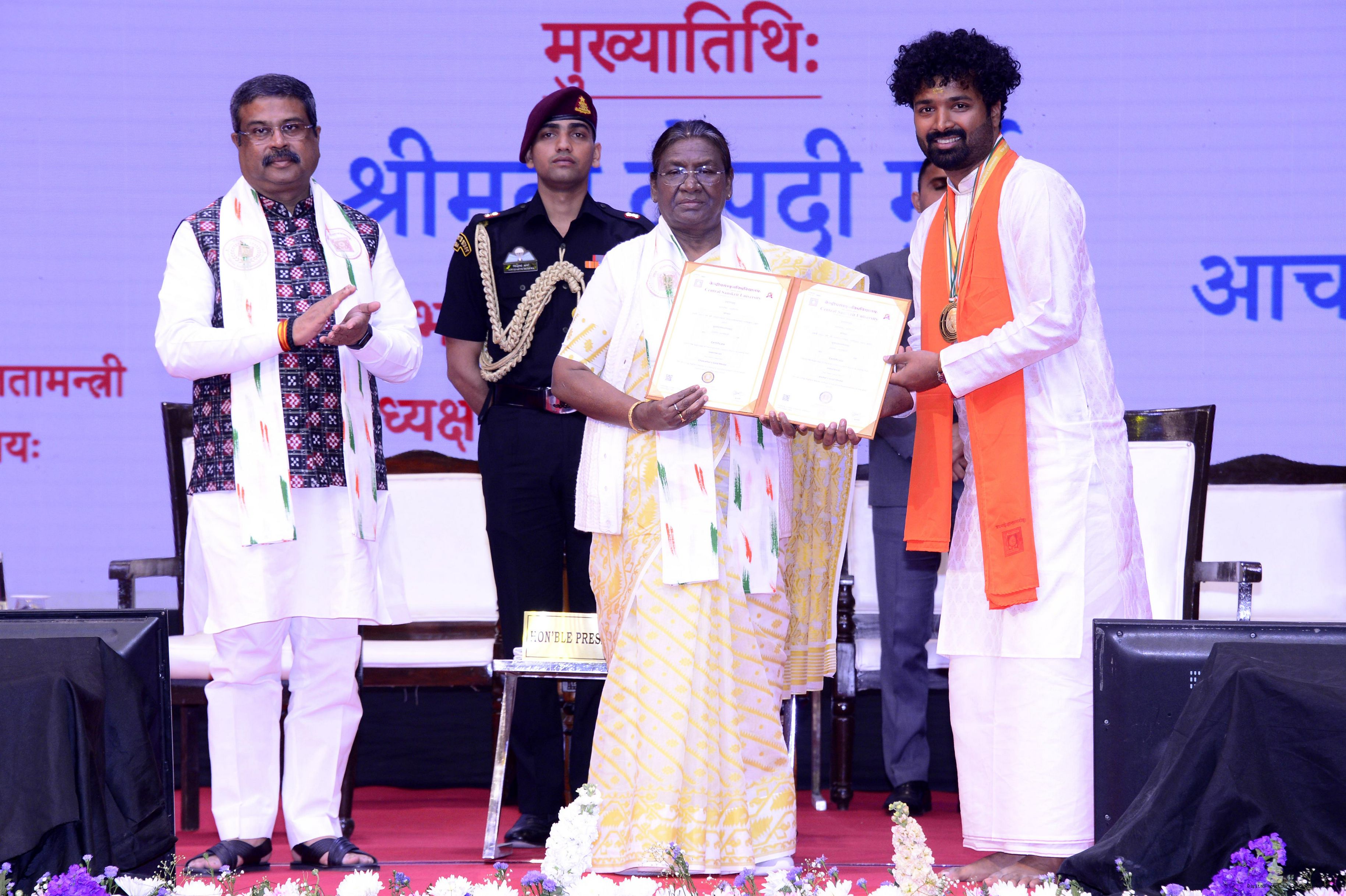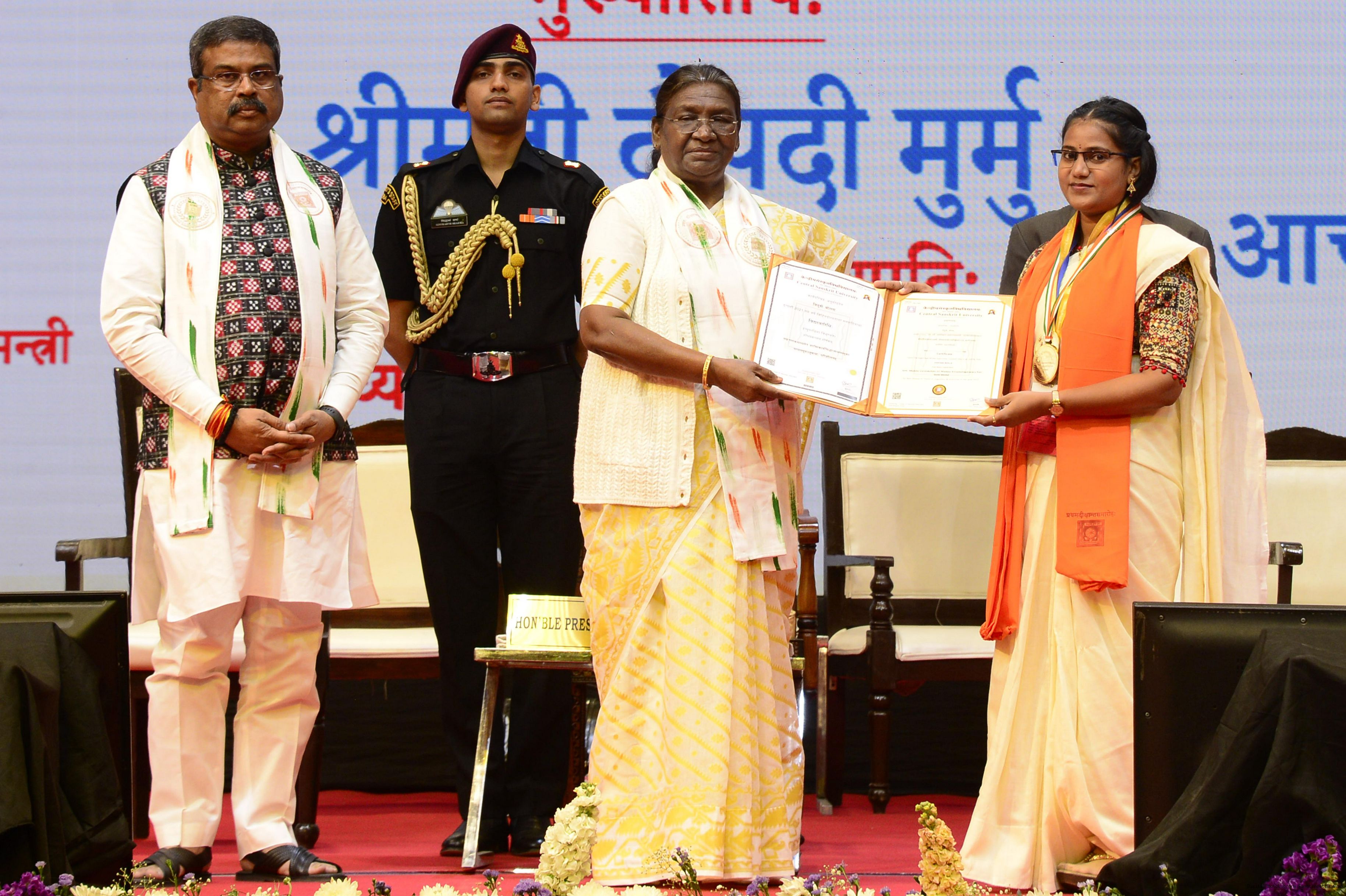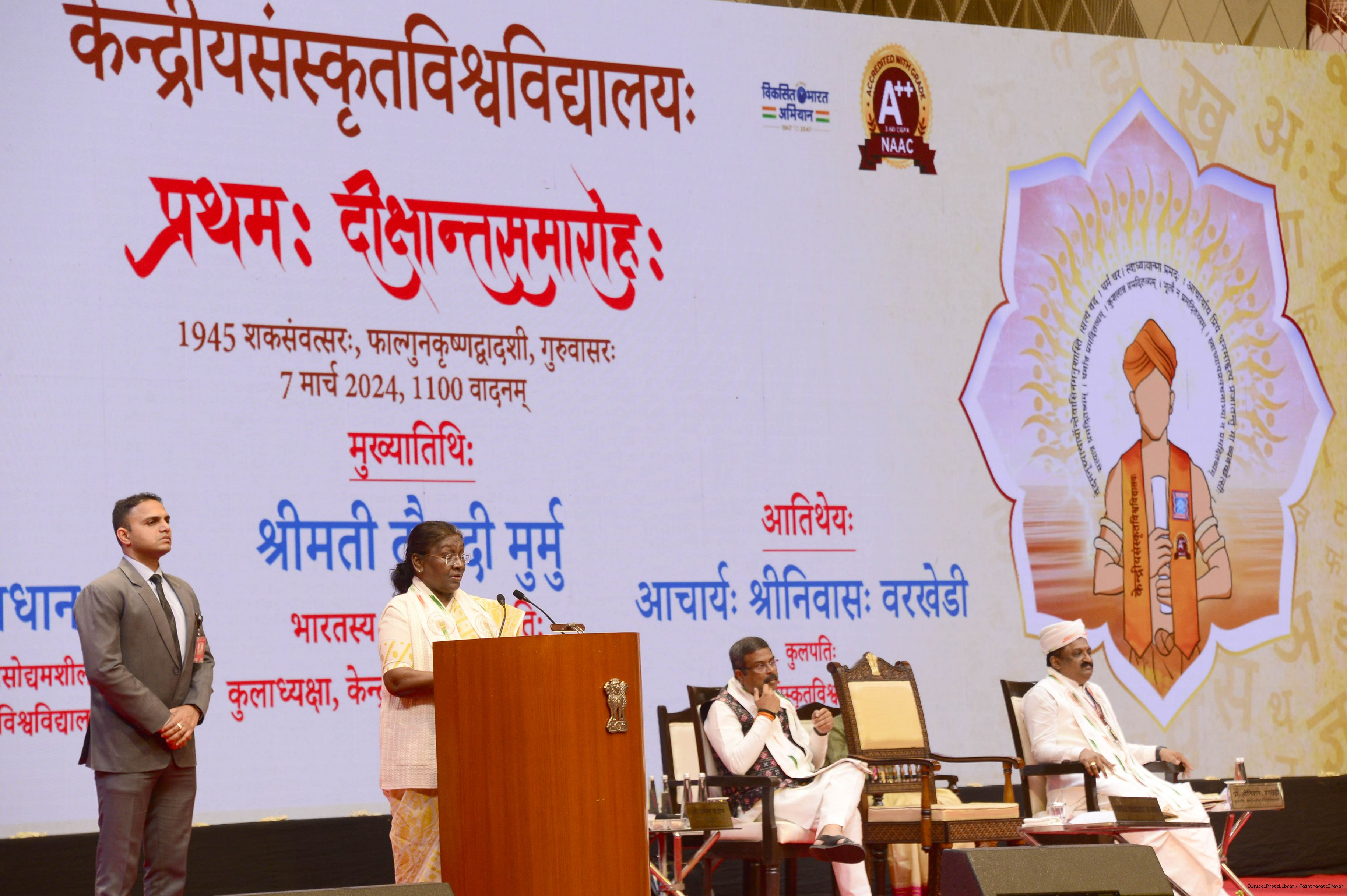 | Caption: | The President of India, Smt Droupadi Murmu graced and addressed the first convocation of Central Sanskrit University in New Delhi on March 7, 2024. |