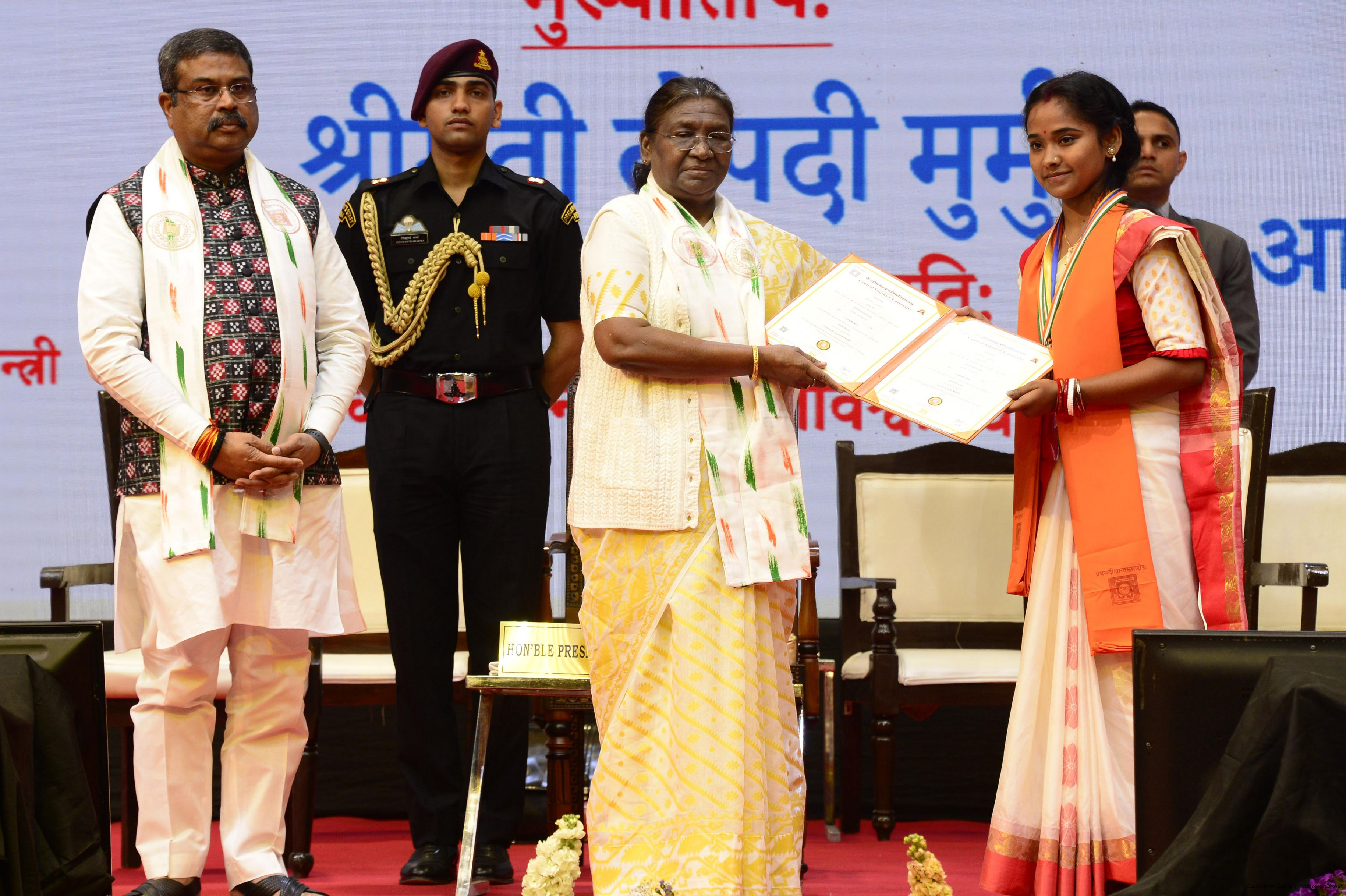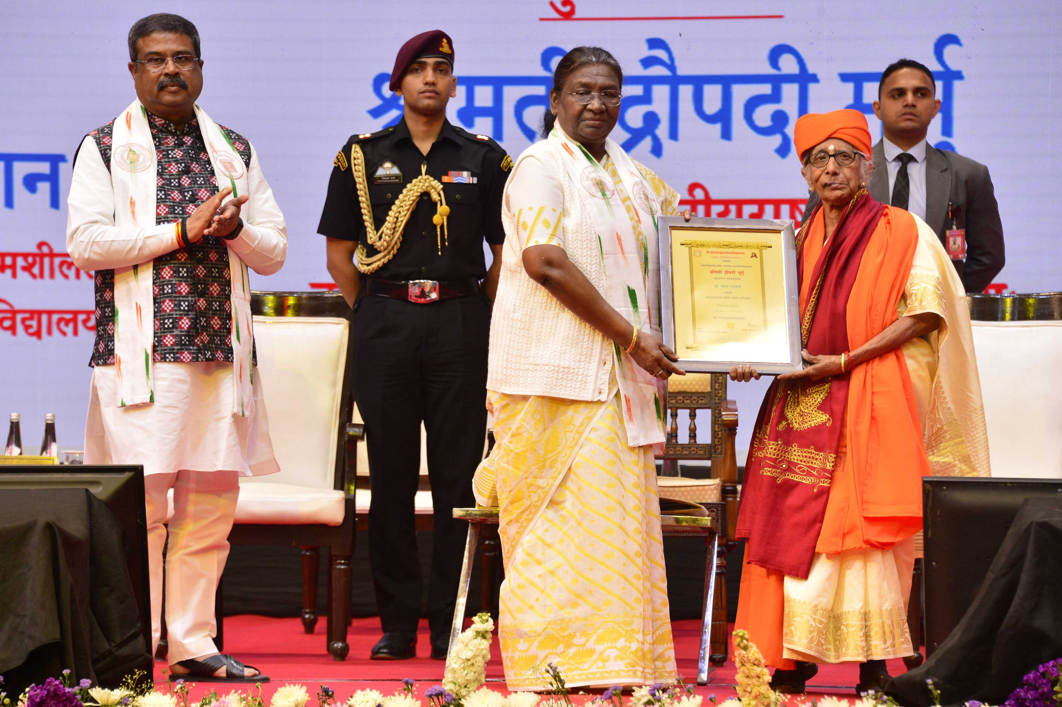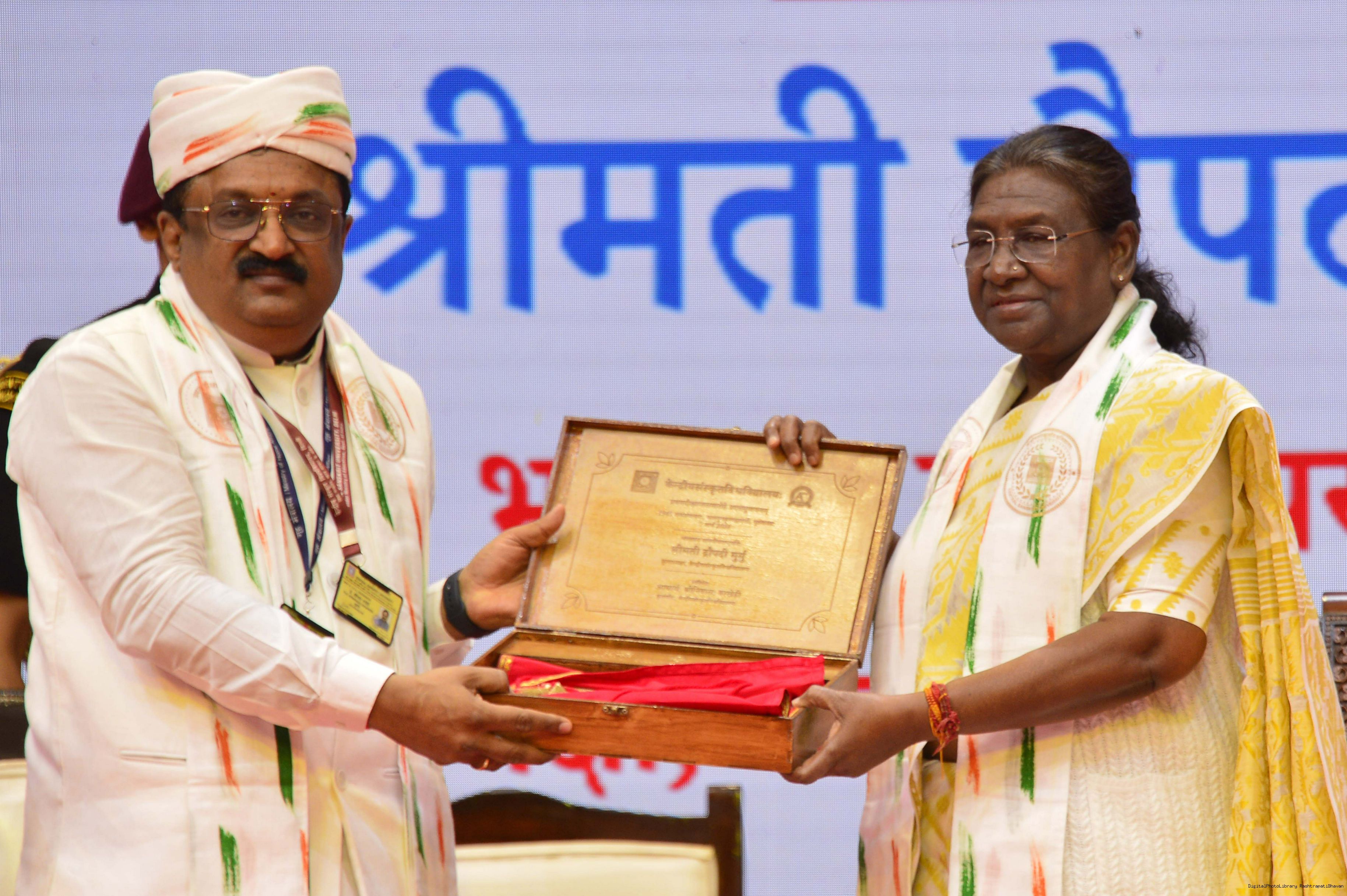 | Caption: | The President of India, Smt Droupadi Murmu graced and addressed the first convocation of Central Sanskrit University in New Delhi on March 7, 2024. |