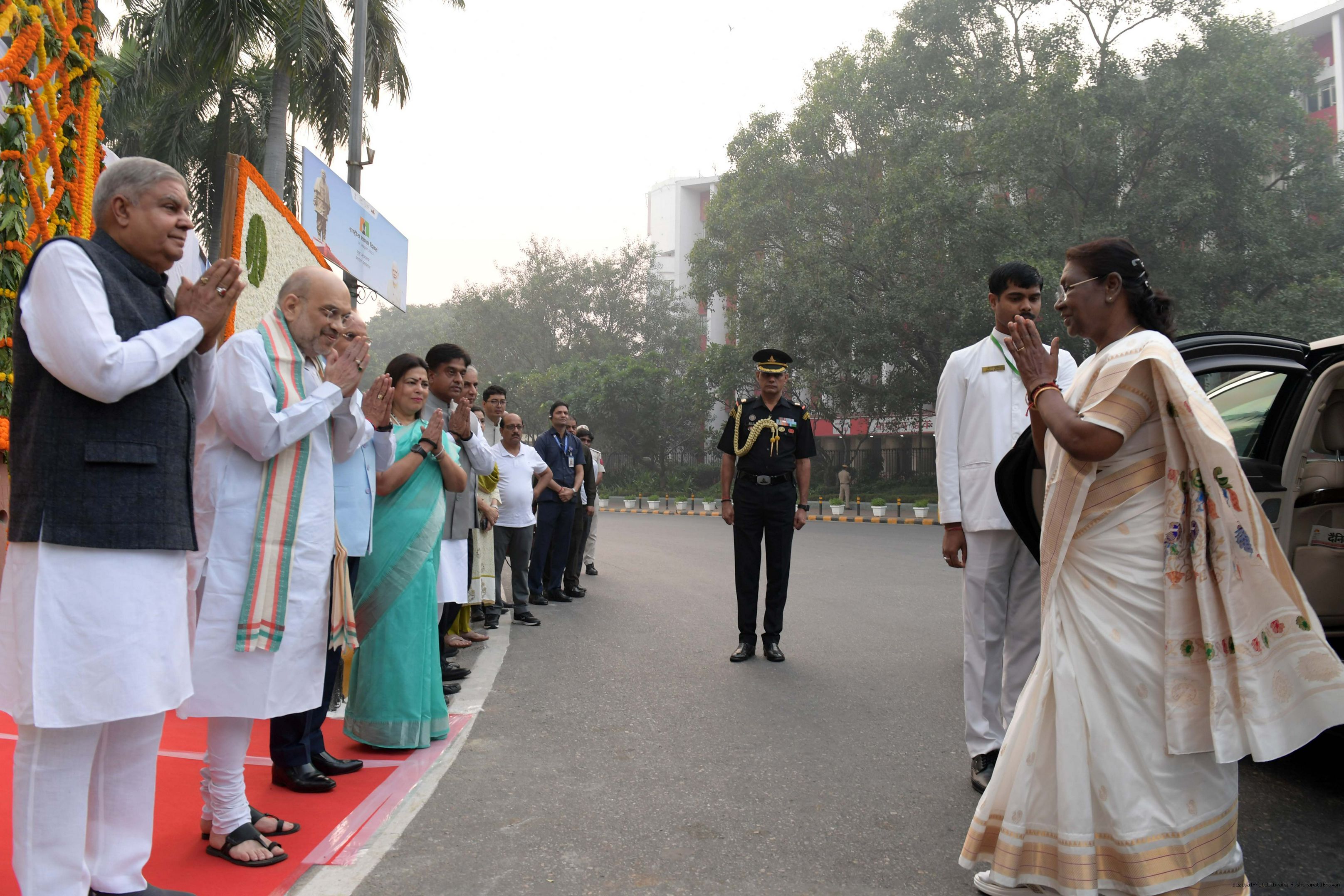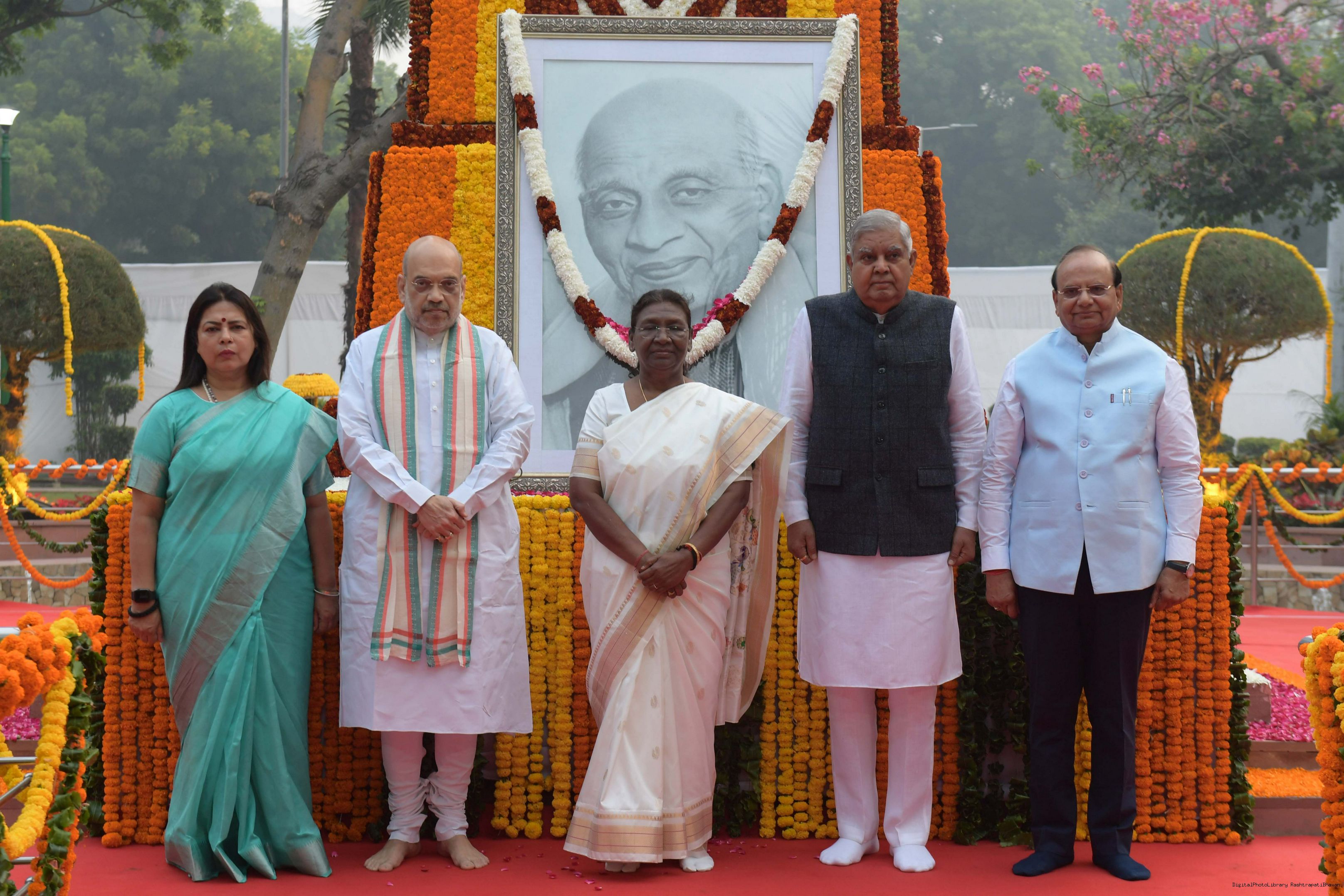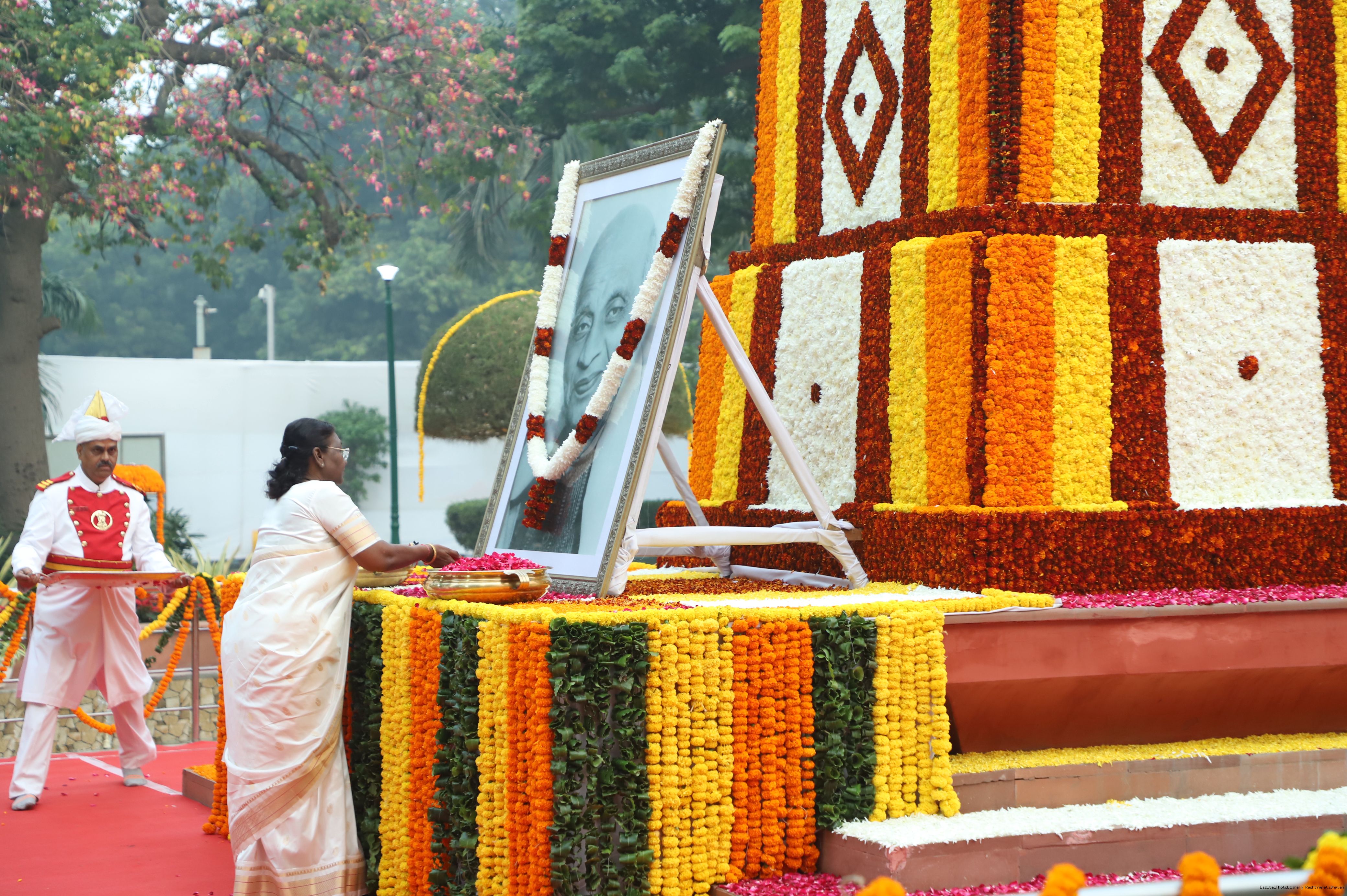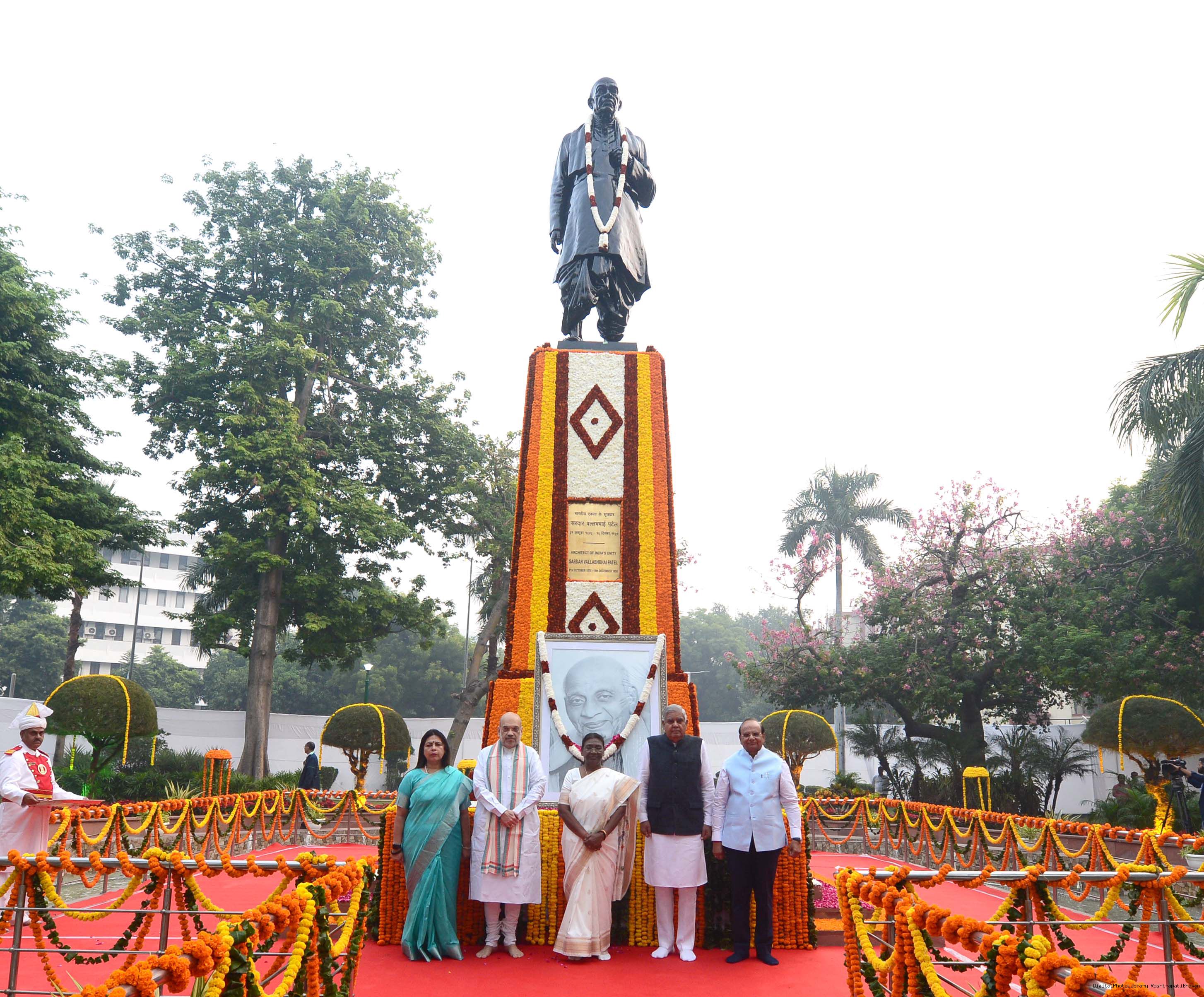 | Caption: | The President of India Smt. Droupadi Murmu, Paying floral tributes at the statue of Sardar Vallabhbhai Patel on his Birth Anniversary observed as Rashtriya Ekta Diwas at Rashtrapati Bhawan on October 30, 2023. |