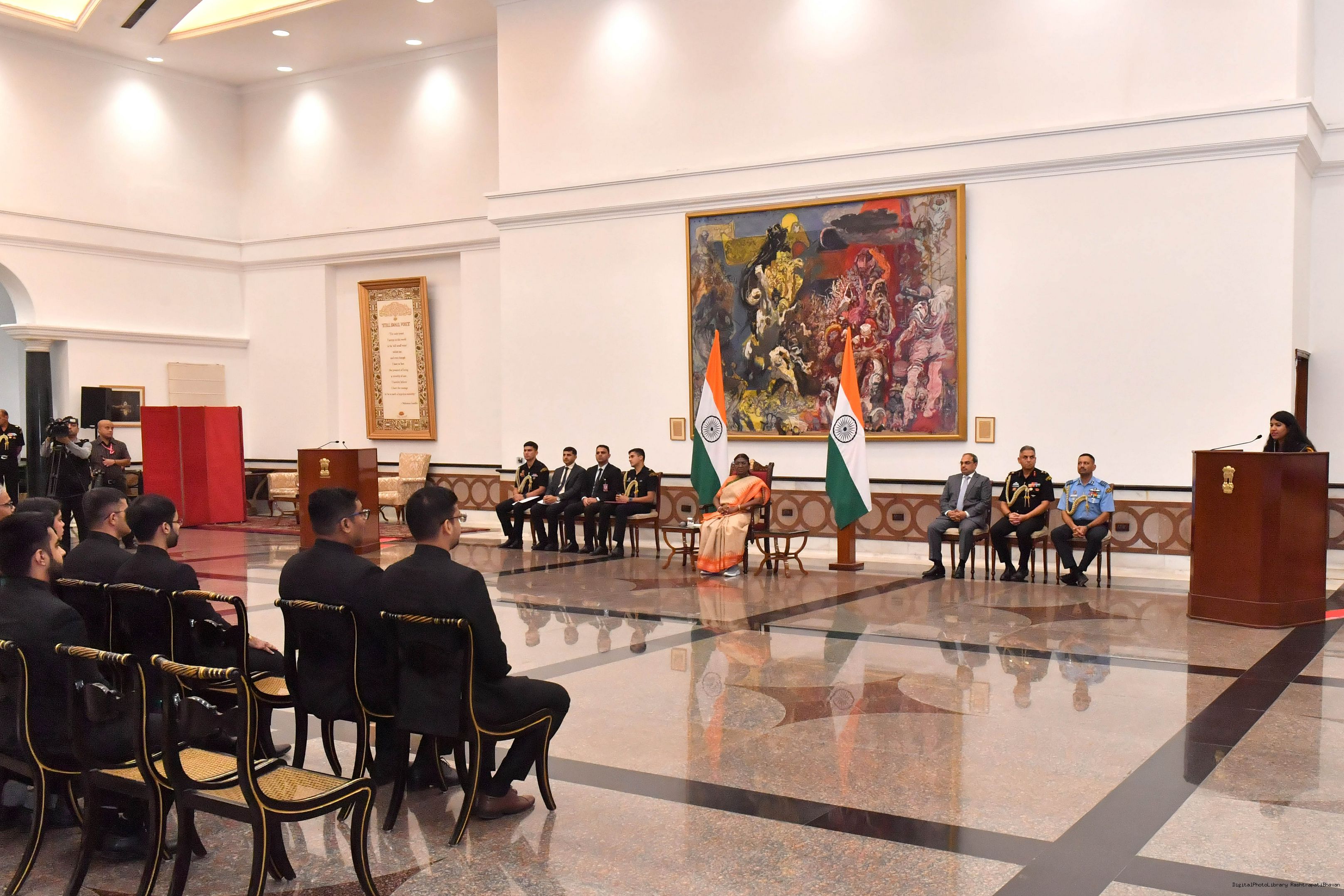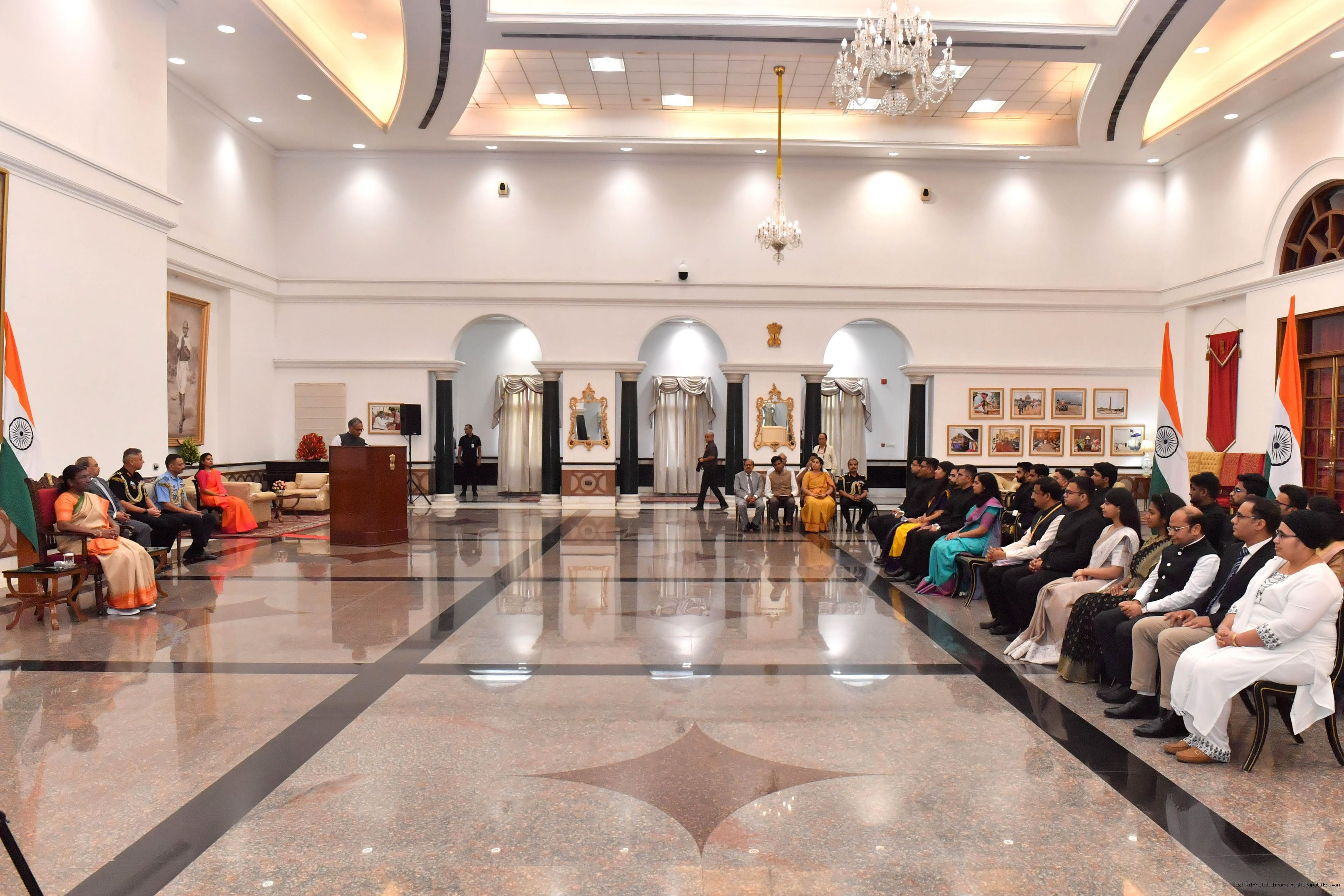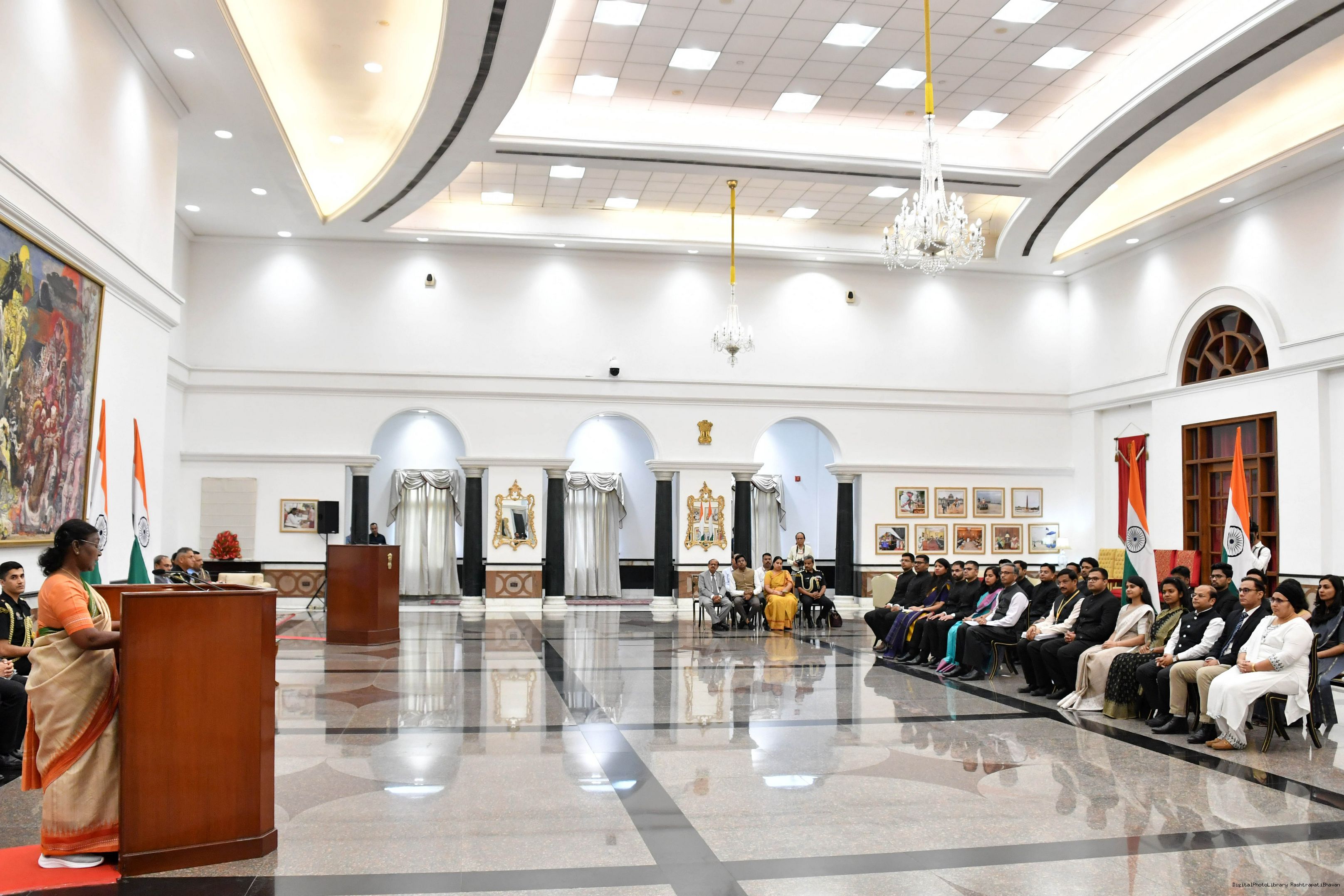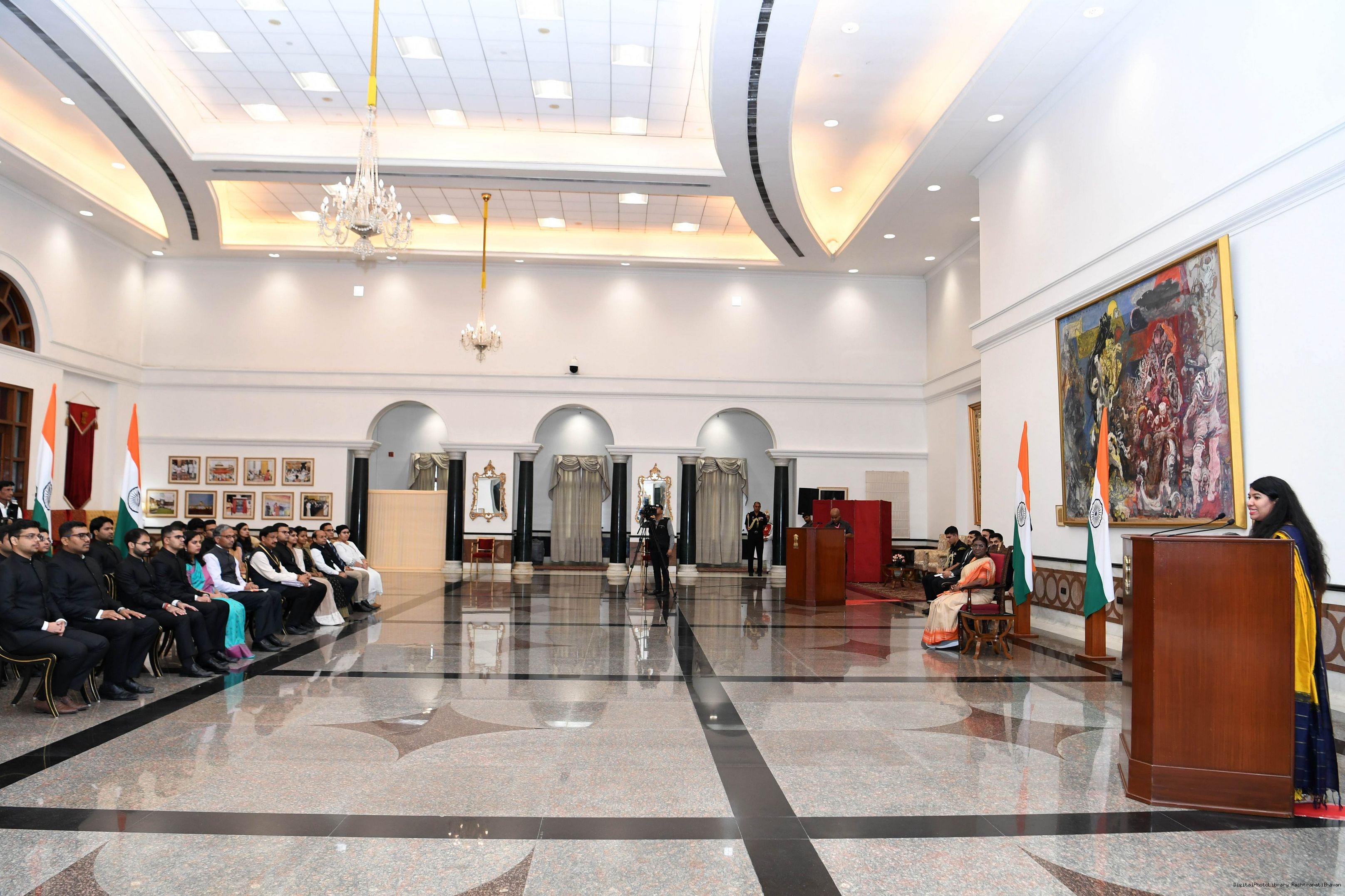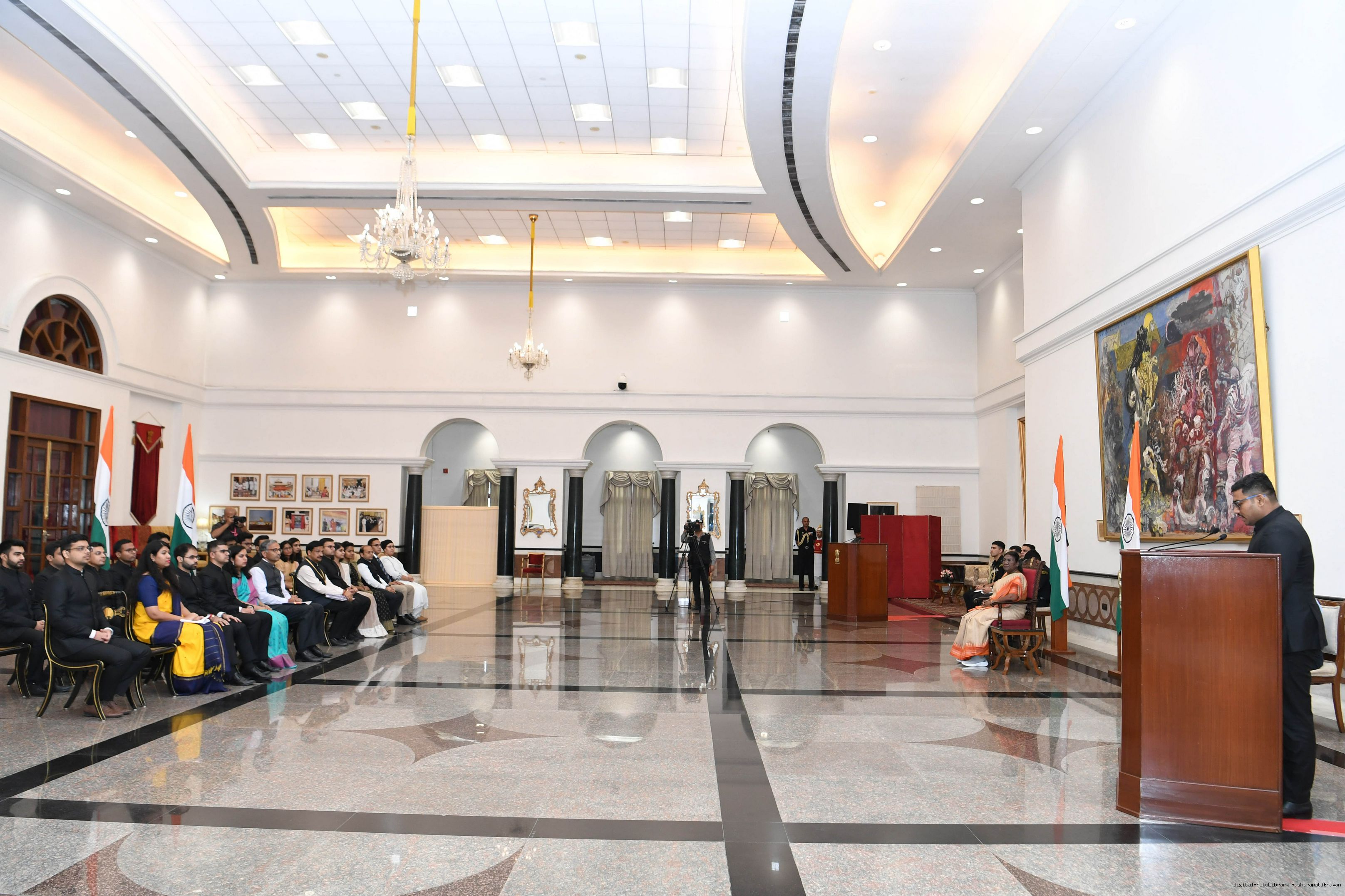 | Caption: | The probationers of Indian Corporate Law Service (2021 and 2022 Batch) called on the President of India, Smt Droupadi Murmu at Rashtrapati Bhavan on September 04, 2023. |