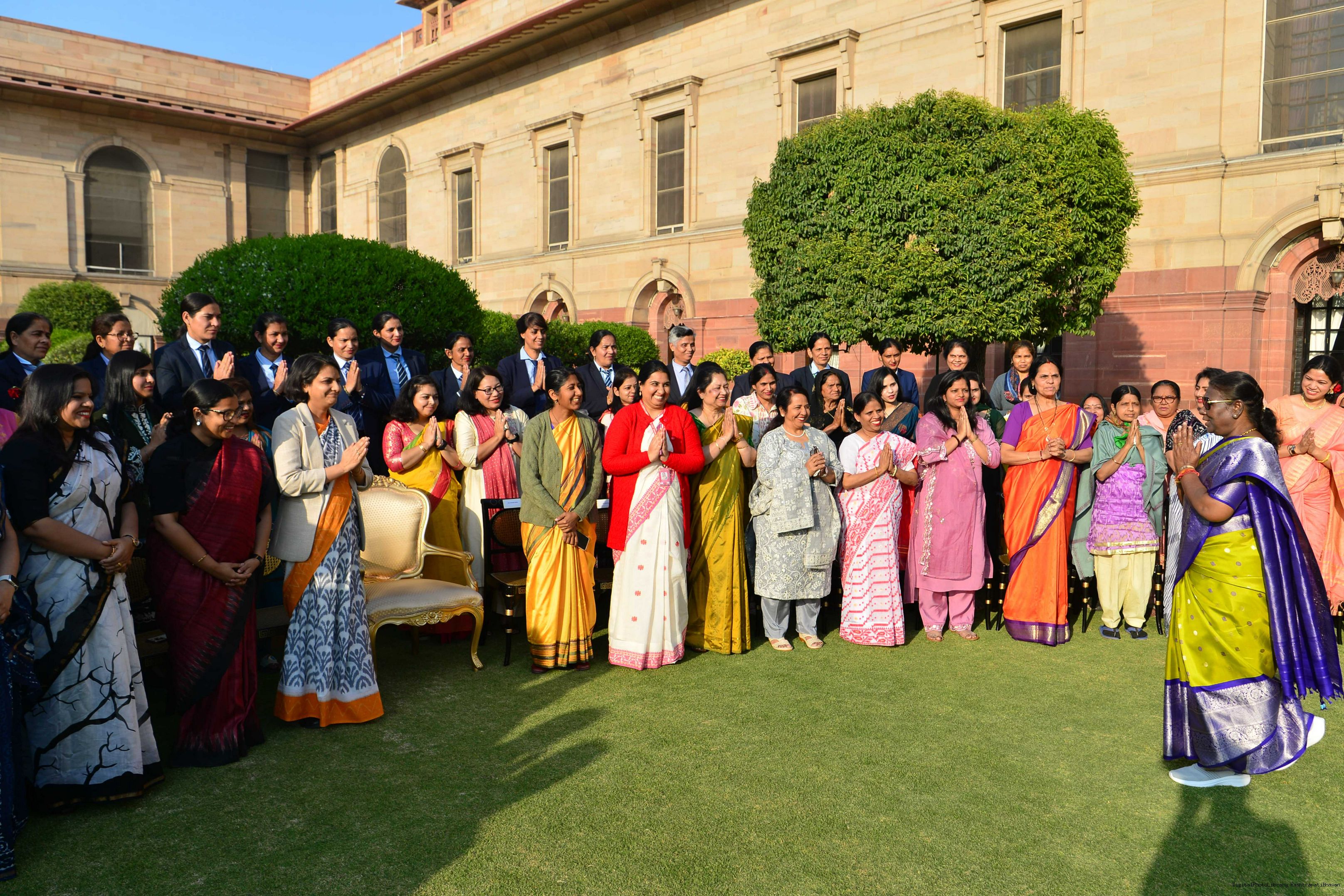 | Caption: | The President of india, Smt Droupadi Murmu posing a group Photograph with Women Officers (Regular) and Women Employees (Regular) at Rashtrapati Bhavan on the occasion of the 'International Women's Day' on March 8, 2024 |