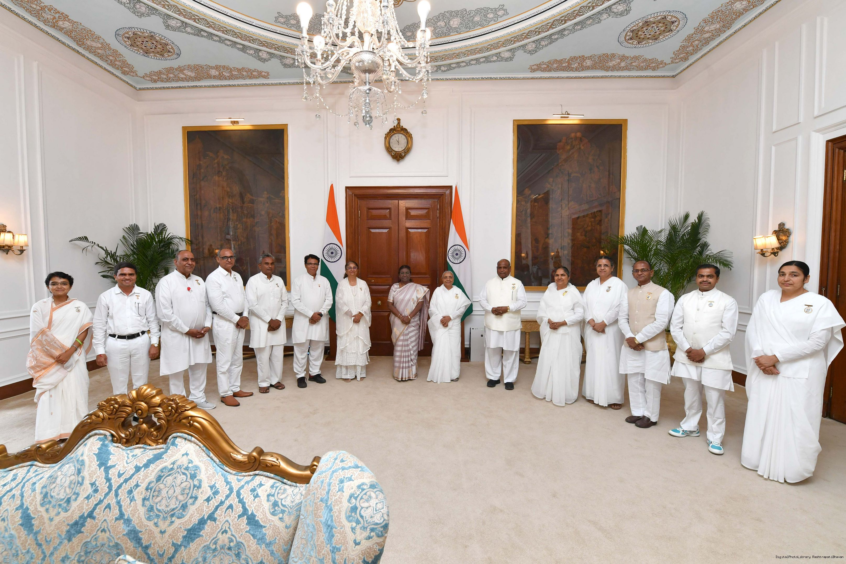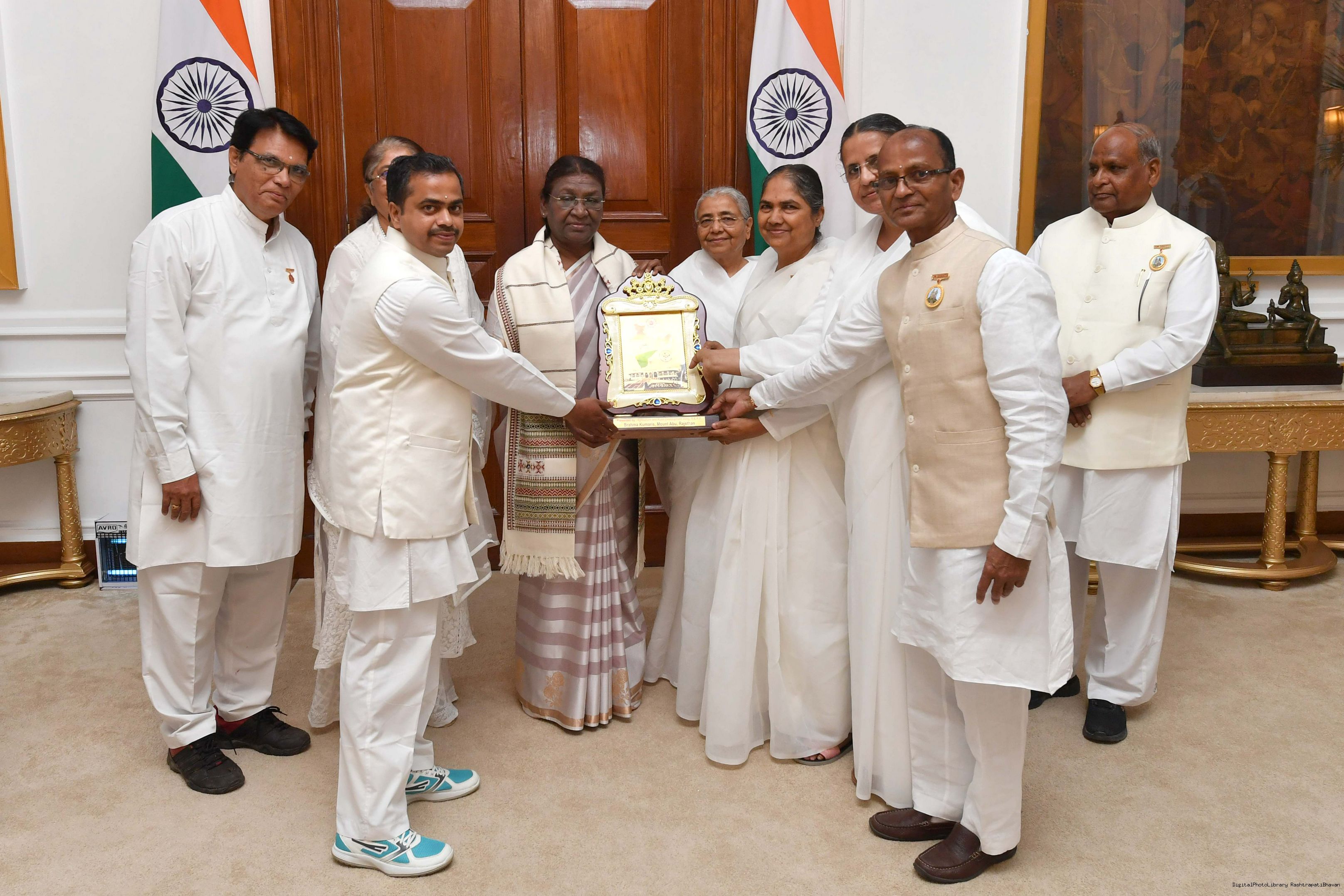| Caption: | BK Raju, Vice Chairman, Agriculture Rural Development Wing, Rajyoga Education Research Foundation along with others meeting with the President of India, Smt. Droupadi Murmu at Rashtrapati Bhavan on September 06, 2023. |